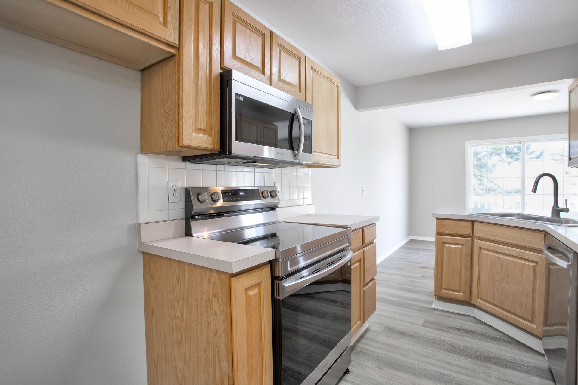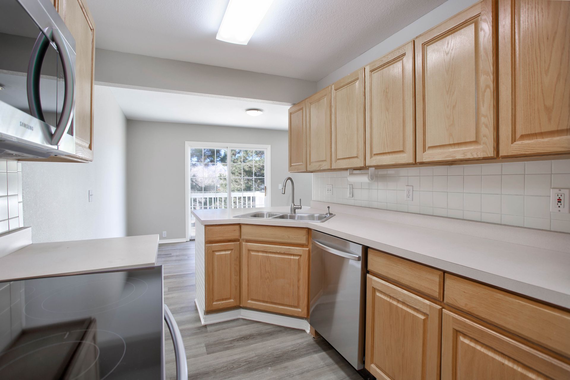 Discover luxury living in this rare three-bed, three and one-half-bath townhouse in Elite Terrace with an attached two-car garage. This is a supreme location near High Plains Elementary boasting mountain views and every convenience at your fingertips. Enter into a welcoming foyer with a coat closet, adorned with new luxury vinyl plank flooring throughout the main living space. An office/ sitting room adds versatility to your lifestyle with laundry hookups for your convenience. The kitchen boasts brand new Samsung stainless steel appliances featuring a top-rated dishwasher, range/oven with air fryer and built-in microwave oven as well as a generous pantry and adjacent dining area. The great room, complete with a gas log fireplace, opens to a private deck with absolutely incredible Pike's Peak views to enjoy year round!