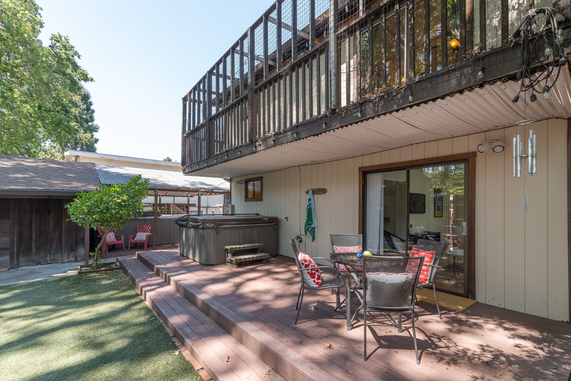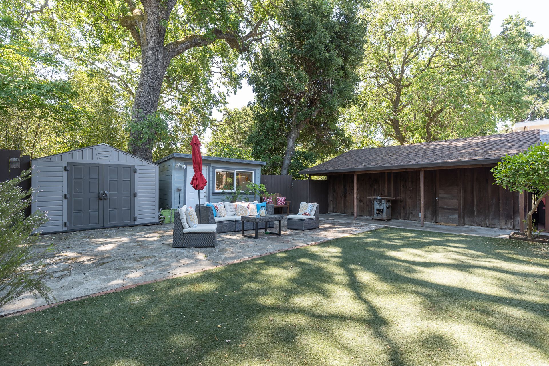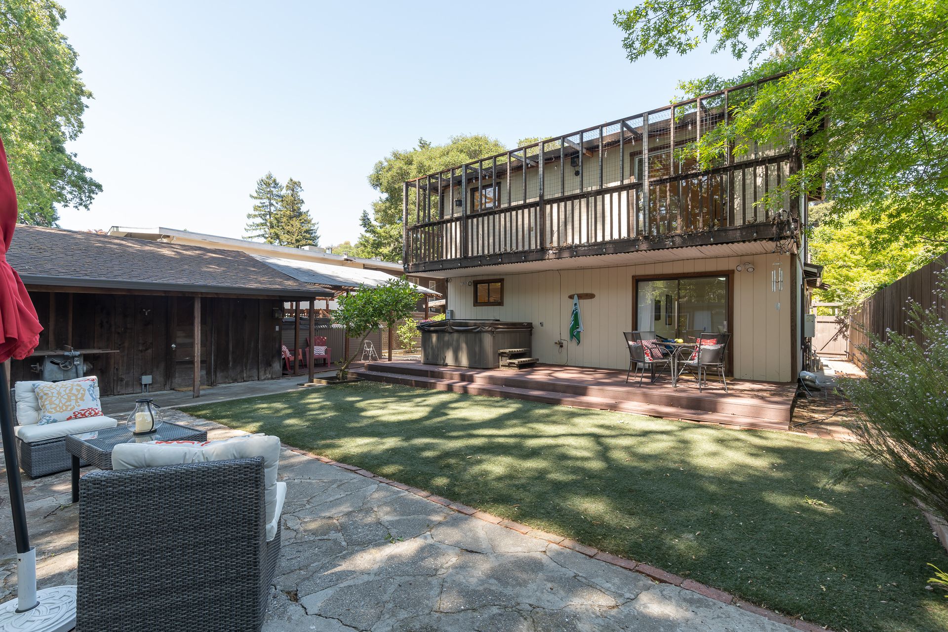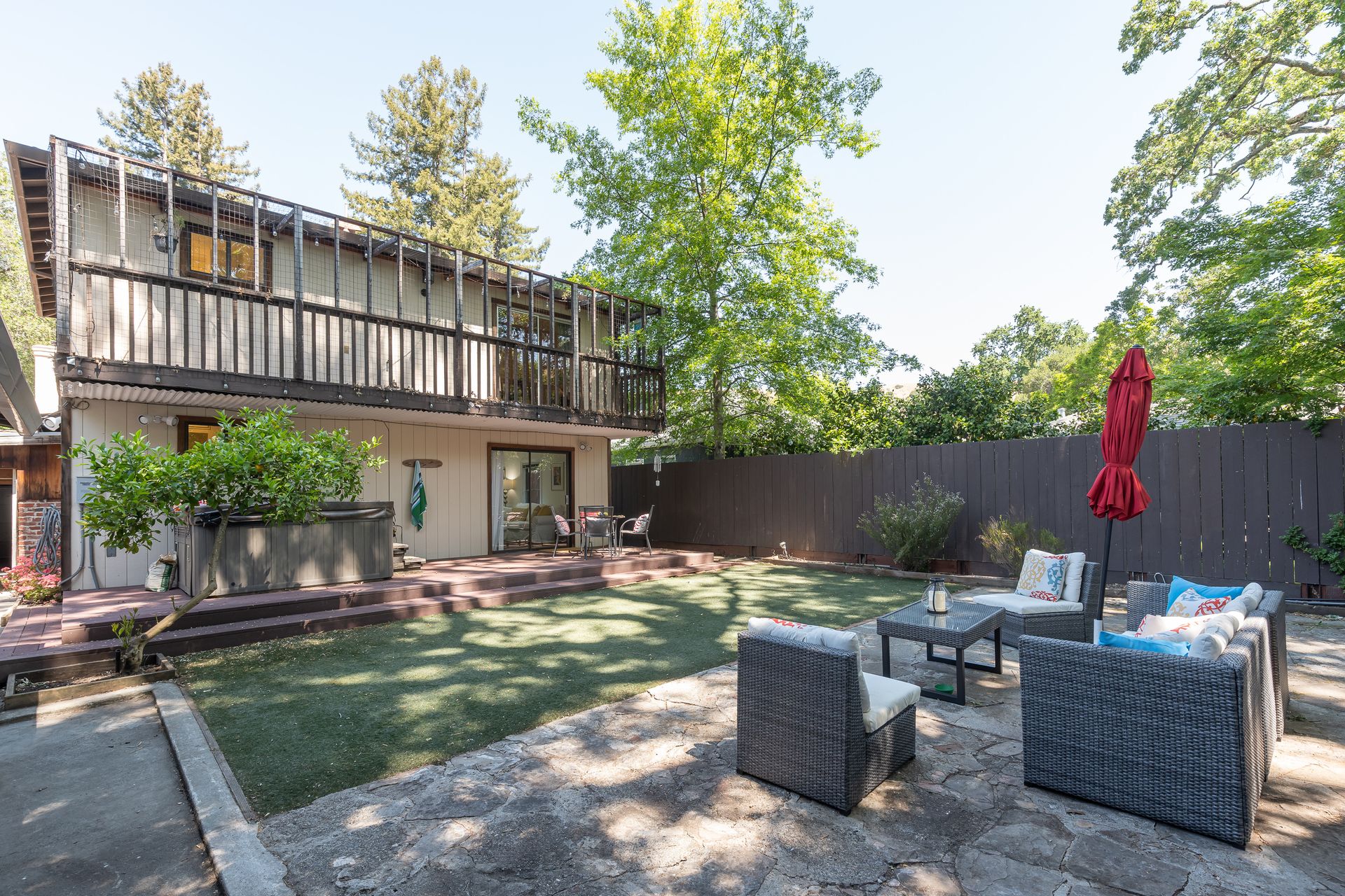 Unassuming in appearance from the front, this spacious family home opens up to an amazing compound. On a favorite street in San Anselmo close to Millennium Park, fabulous hiking and biking trails, Red Hill Shopping Center and transportation. The living room has a brick fireplace with a gas insert, there's a large family room with a wet bar, full bathroom and a master suite on the main level. Upstairs we have another full bathroom and 3 additional bedrooms, one being used as a den - ideal for a home office with an attached deck. Hardwood and Pergo floors, ceiling fans, tankless water heater plus lots of light and space. The large level yard has a detached studio and half bath, perfect for an art studio, workout room etc. There are several sheds on the property for maximum storage, one with power which could be another great office, and there's also a hot tub and large swim spa plus a 2-car tandem garage and lots of parking. Excellent location and school district!