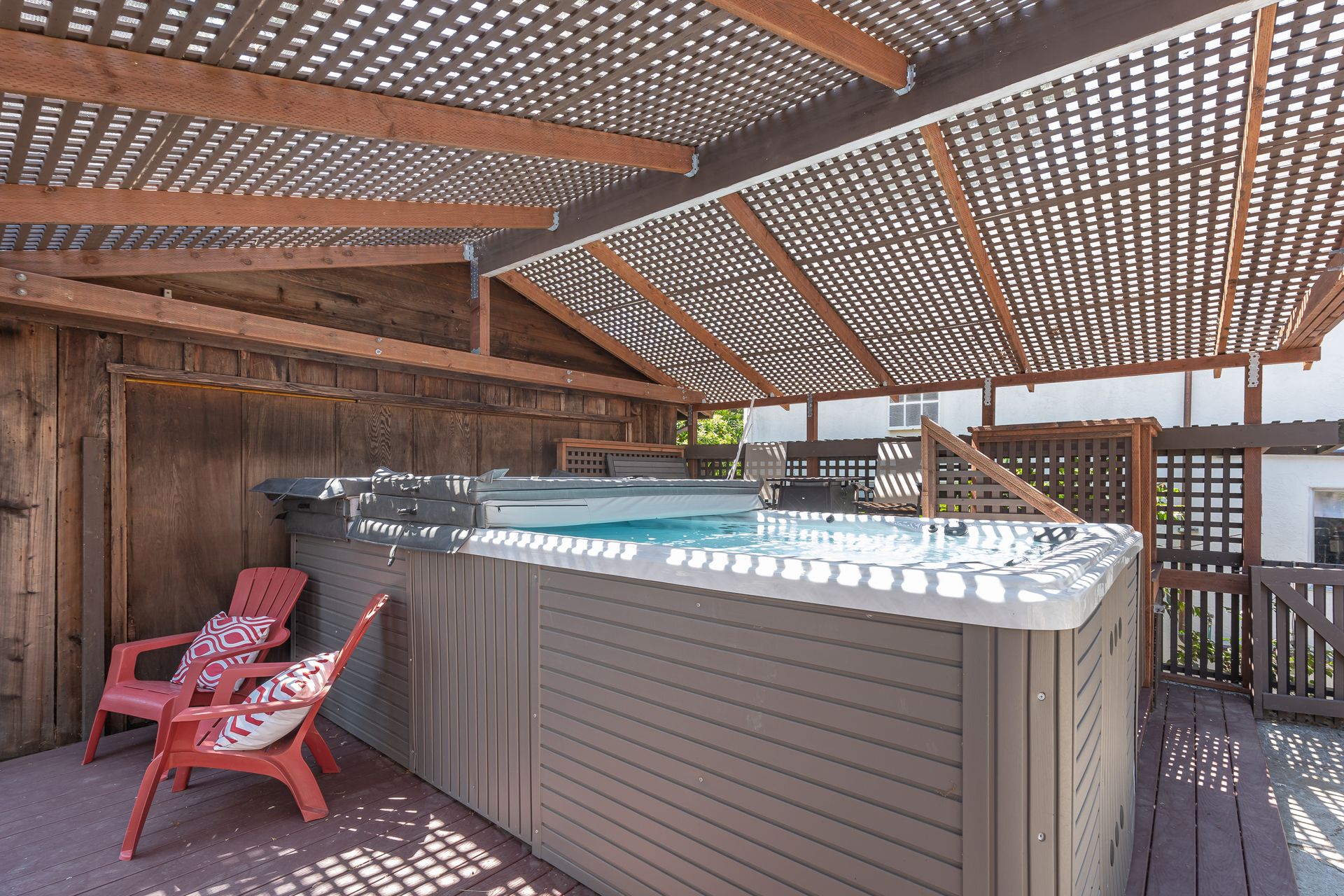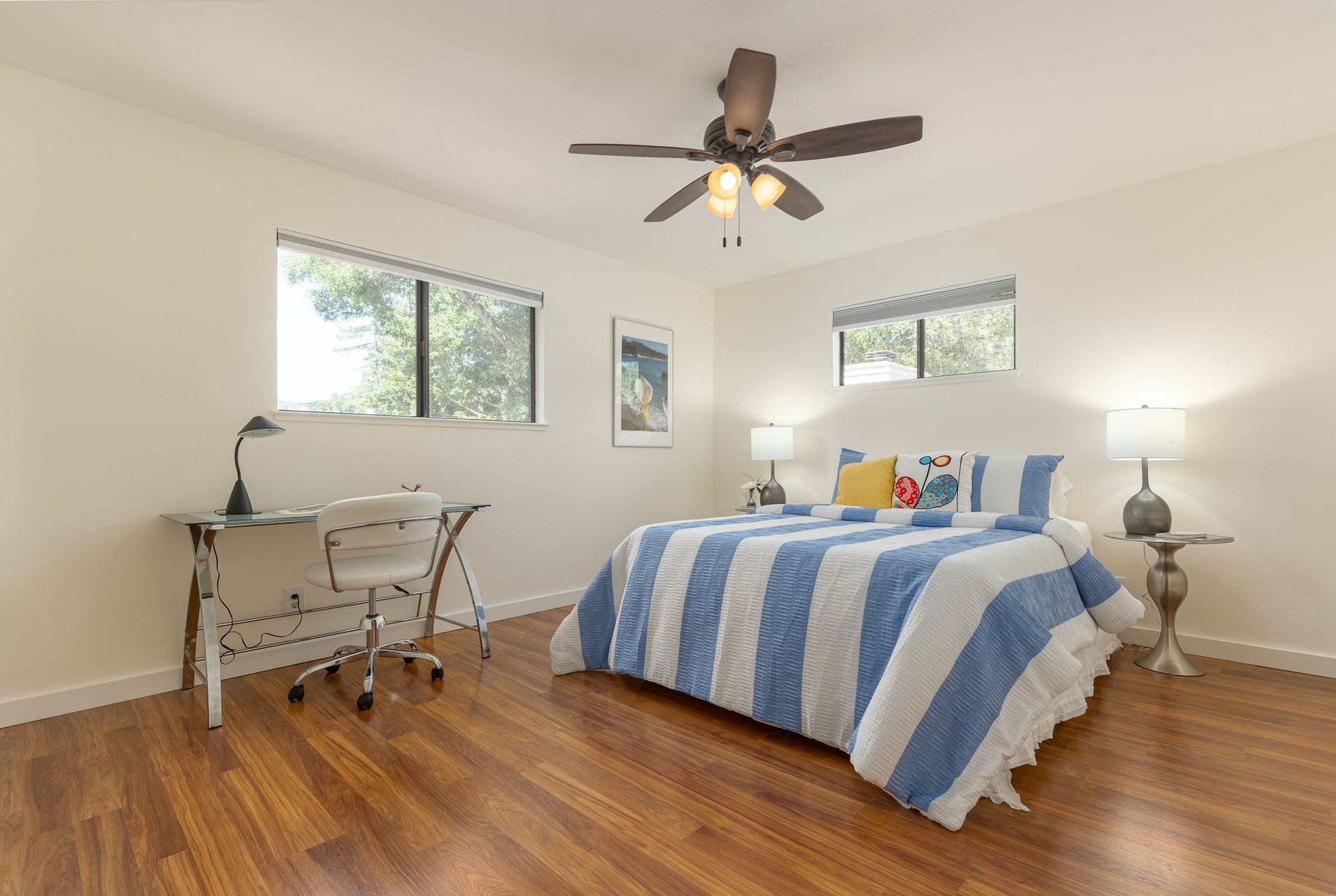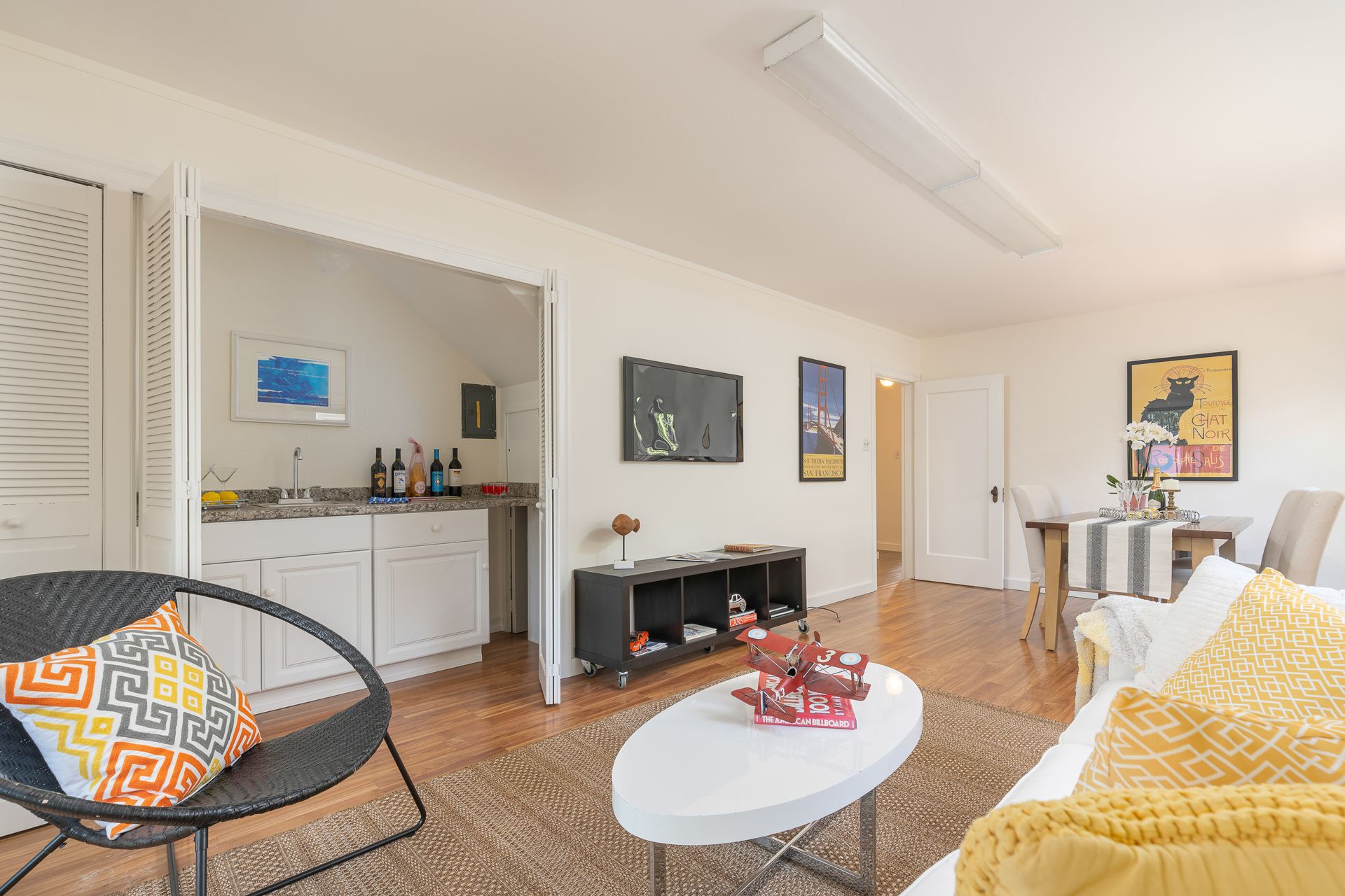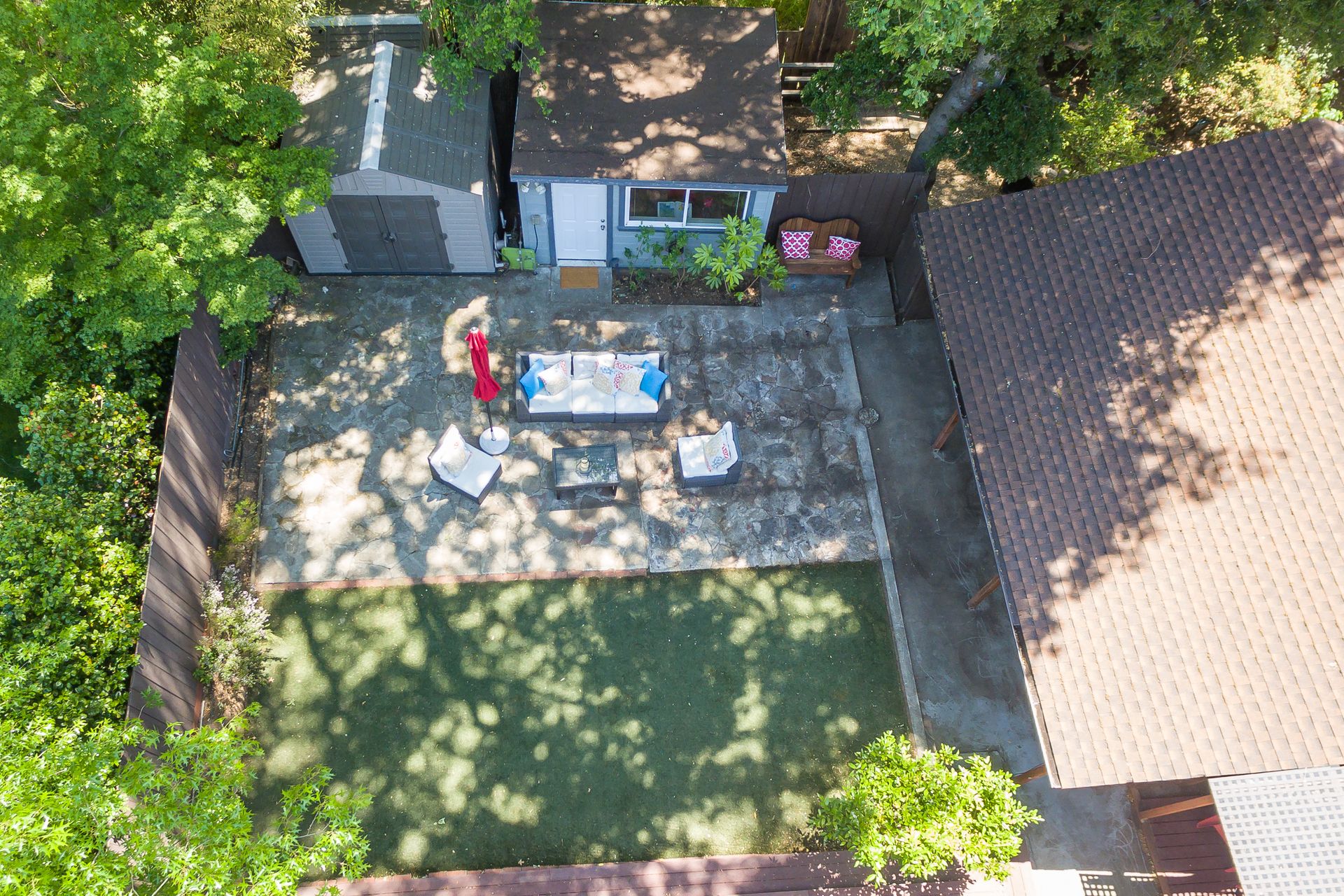 Unassuming in appearance from the front, this spacious family home opens up to an amazing compound. On a favorite street in San Anselmo close to Millennium Park, fabulous hiking and biking trails, Red Hill Shopping Center and transportation. The living room has a brick fireplace with a gas insert, there's a large family room with a wet bar, full bathroom and a master suite on the main level. Upstairs we have another full bathroom and 3 additional bedrooms, one being used as a den - ideal for a home office with an attached deck. Hardwood and Pergo floors, ceiling fans, tankless water heater plus lots of light and space. The large level yard has a detached studio and half bath, perfect for an art studio, workout room etc. There are several sheds on the property for maximum storage, one with power which could be another great office, and there's also a hot tub and large swim spa plus a 2-car tandem garage and lots of parking. Excellent location and school district!