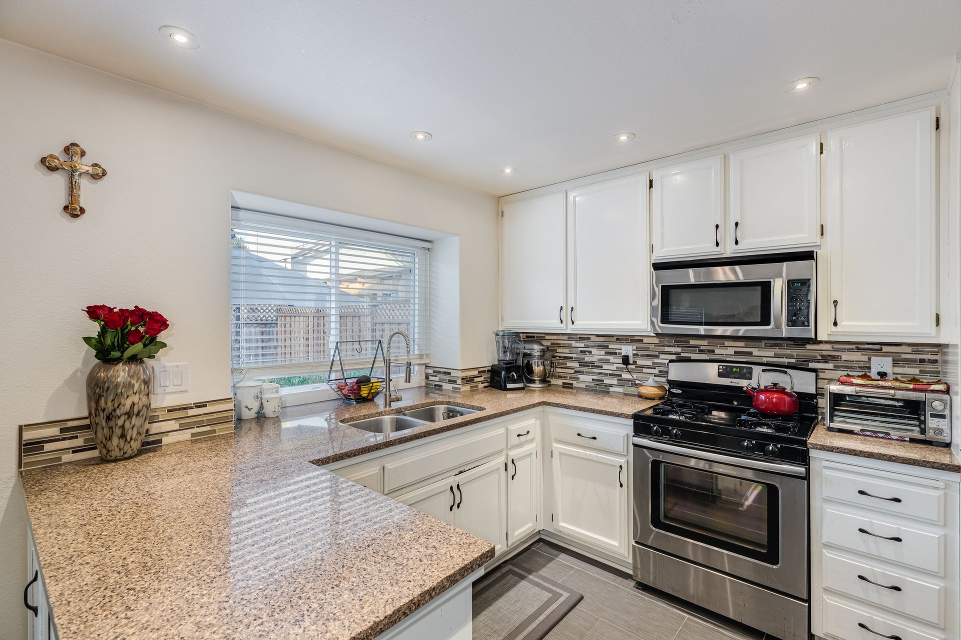Welcome home to a beautiful single-story three bedroom, two bathroom, approximately 1,554 square foot home located on a cul-de-sac on a nearly 5,909 square foot lot. Enjoy convenient living in a desirable floorplan that includes a living room with a fireplace, a formal dining room and a great room adjacent to the remodeled kitchen with stainless steel appliances, slab granite counters and an interior laundry room. This incredible home was built in 1993 and has been upgraded with the following features: replaced garage door, installed exterior lights on each side of the garage door, paver walkway, landscaping, replaced two fences, installed approximately 400 square feet of artificial turf, replaced three windows, replaced garage side door to backyard, replaced front door light, updated master bathroom with a shower panel, a barn door and master closet organizer, added ceiling lights in two bedrooms plus light fixtures, an installed barn door to the laundry room, a replaced dishwasher, updated lighting fixtures, ceilings fans, recessed lighting and more.