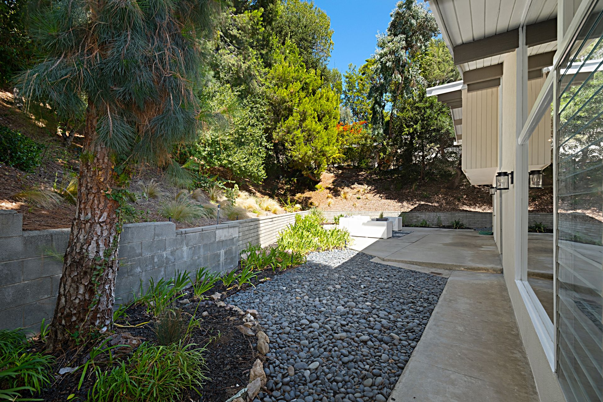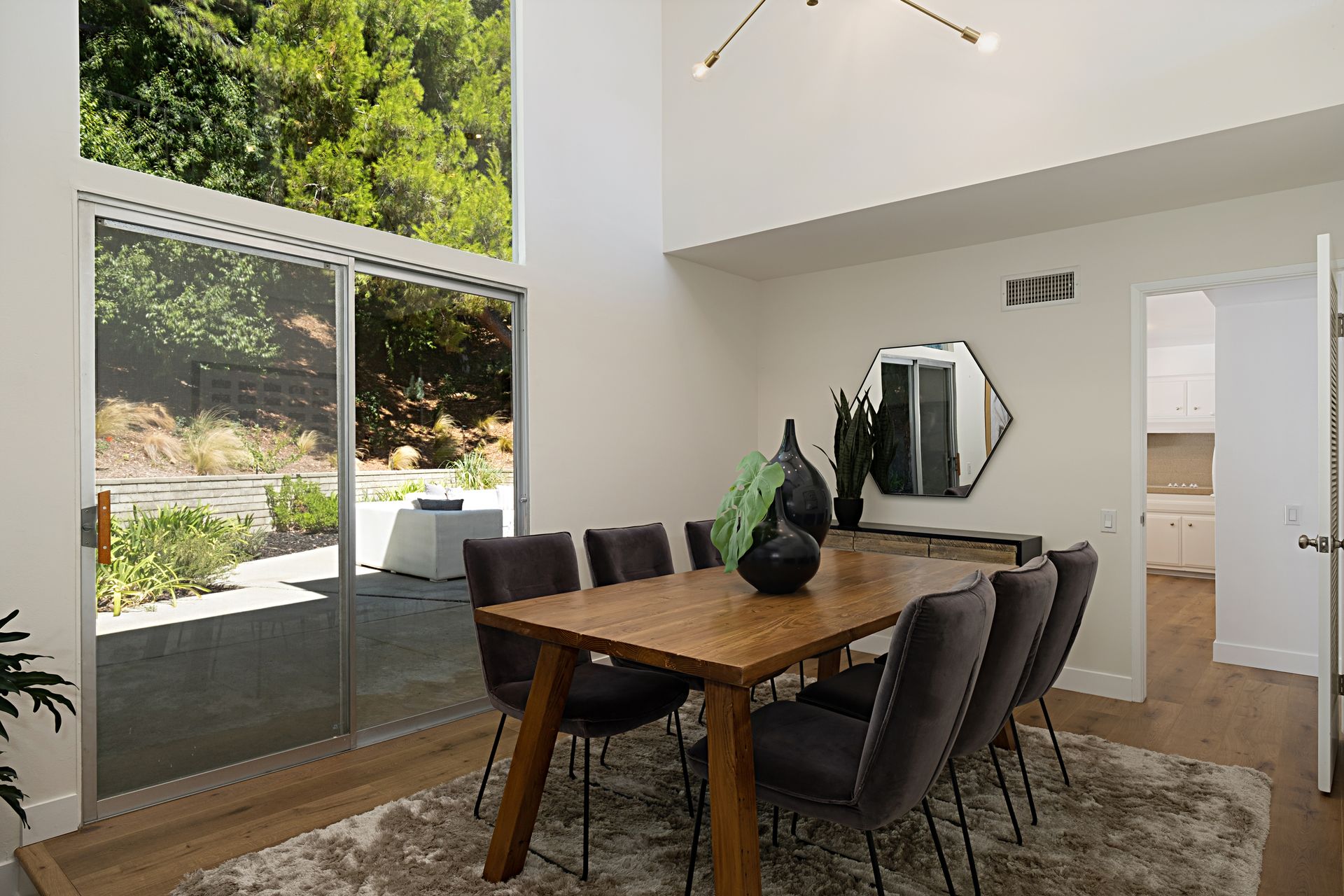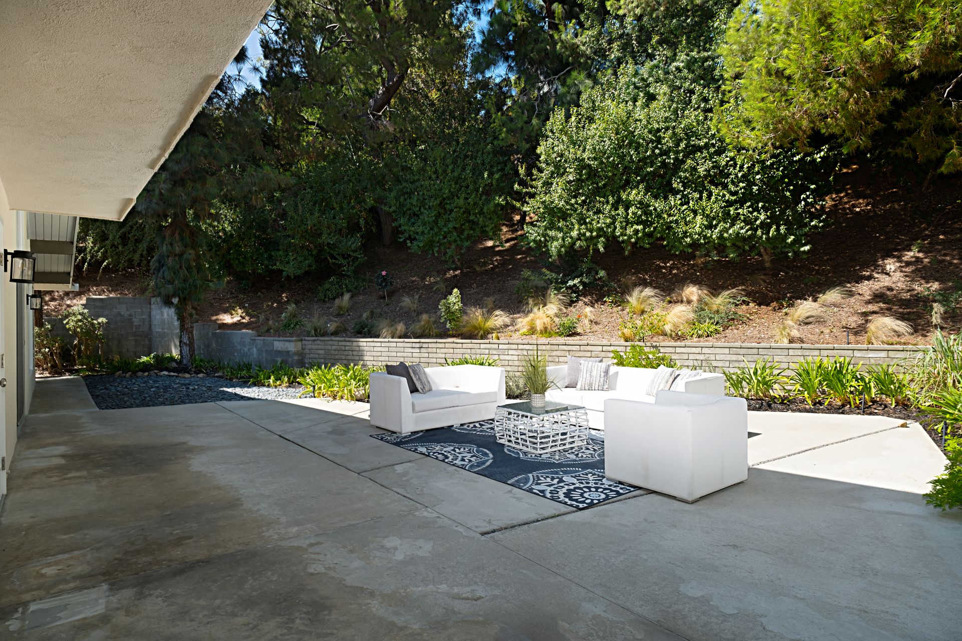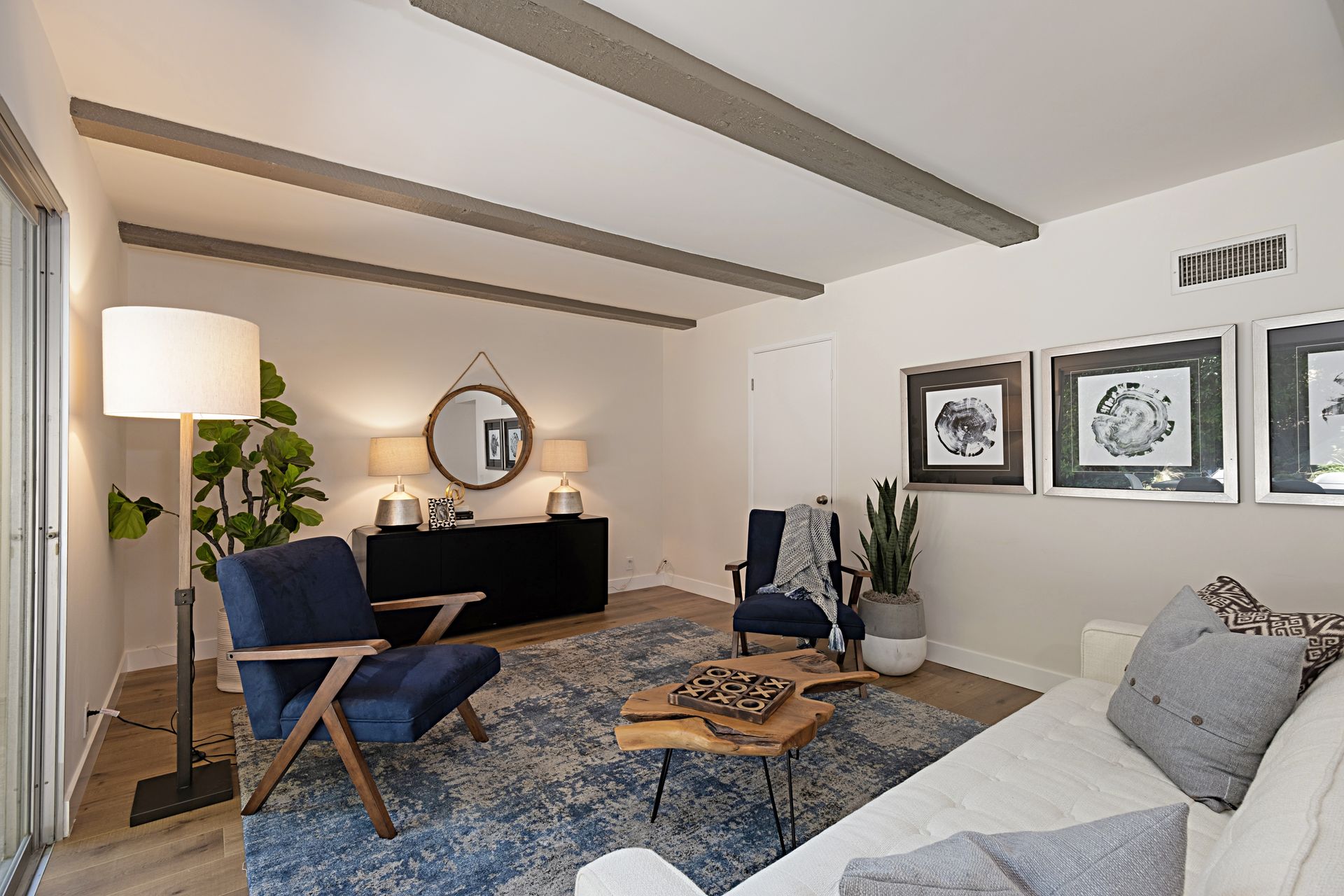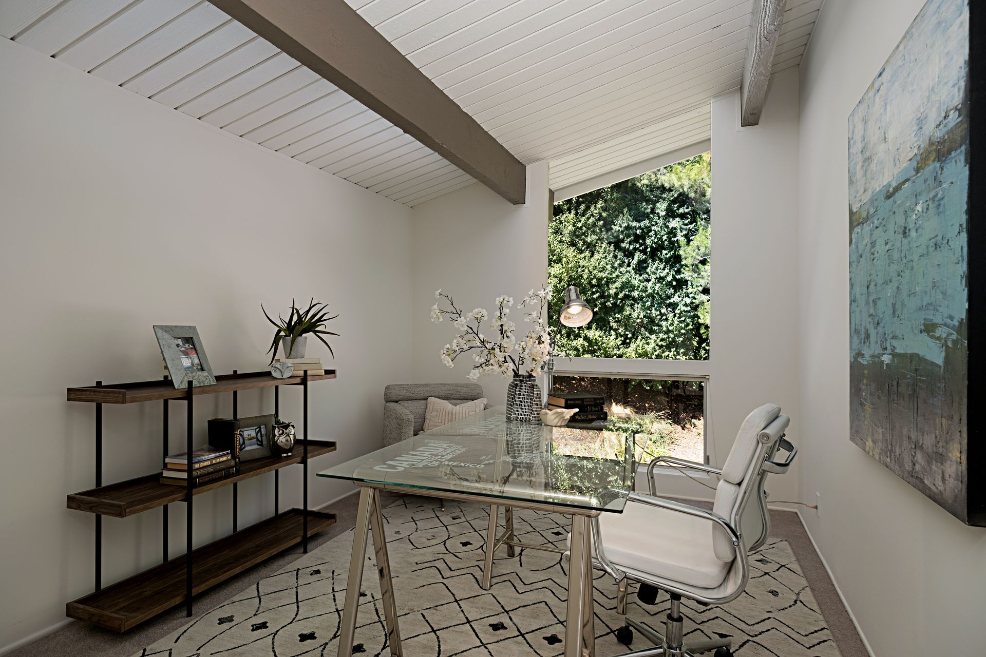 Located at the back of a peaceful cul-de-sac sits this newly re-imagined home. As you enter through the double doors you are welcomed into this very inspiring home. The two-story entrance has newer wood-like flooring throughout the downstairs and a Sputnik chandelier in the foyer. The main bedroom suite features expansive closets, a vaulted ceiling, a private enclosed patio and an updated bathroom. The large open living room has a real wood burning fireplace clad in Palisades Stone, substantial glass windows, soaring ceiling and an open dining room. The kitchen with clean lines includes a breakfast counter, double ovens, newer stove, newer sink and hardware. The adjacent family room has a sliding glass door to a spacious side yard ideal for outdoor dining. It also includes a laundry room adjacent as well as half bath. There is a separate powder room off of the foyer. Upstairs has three secondary bedrooms with a shared full bath plus a separate den/office and a bonus loft/sitting area. The backyard is private and tranquil with a large concrete patio and planters with black river rock. The two-car SxS garage has an updated door and direct access. Washer/dryer and refrigerator included. Professionally staged by Pampa Casa.