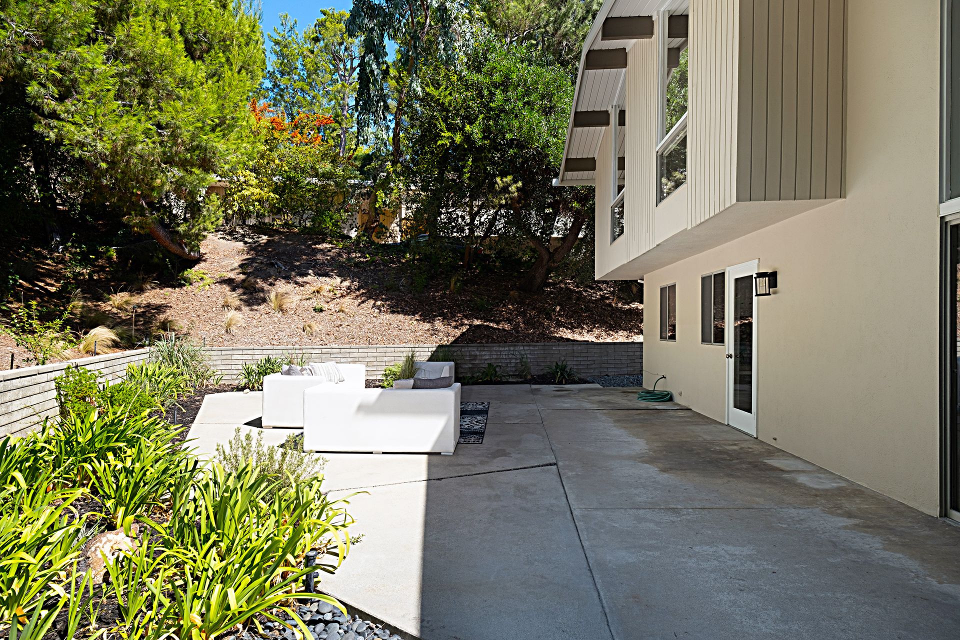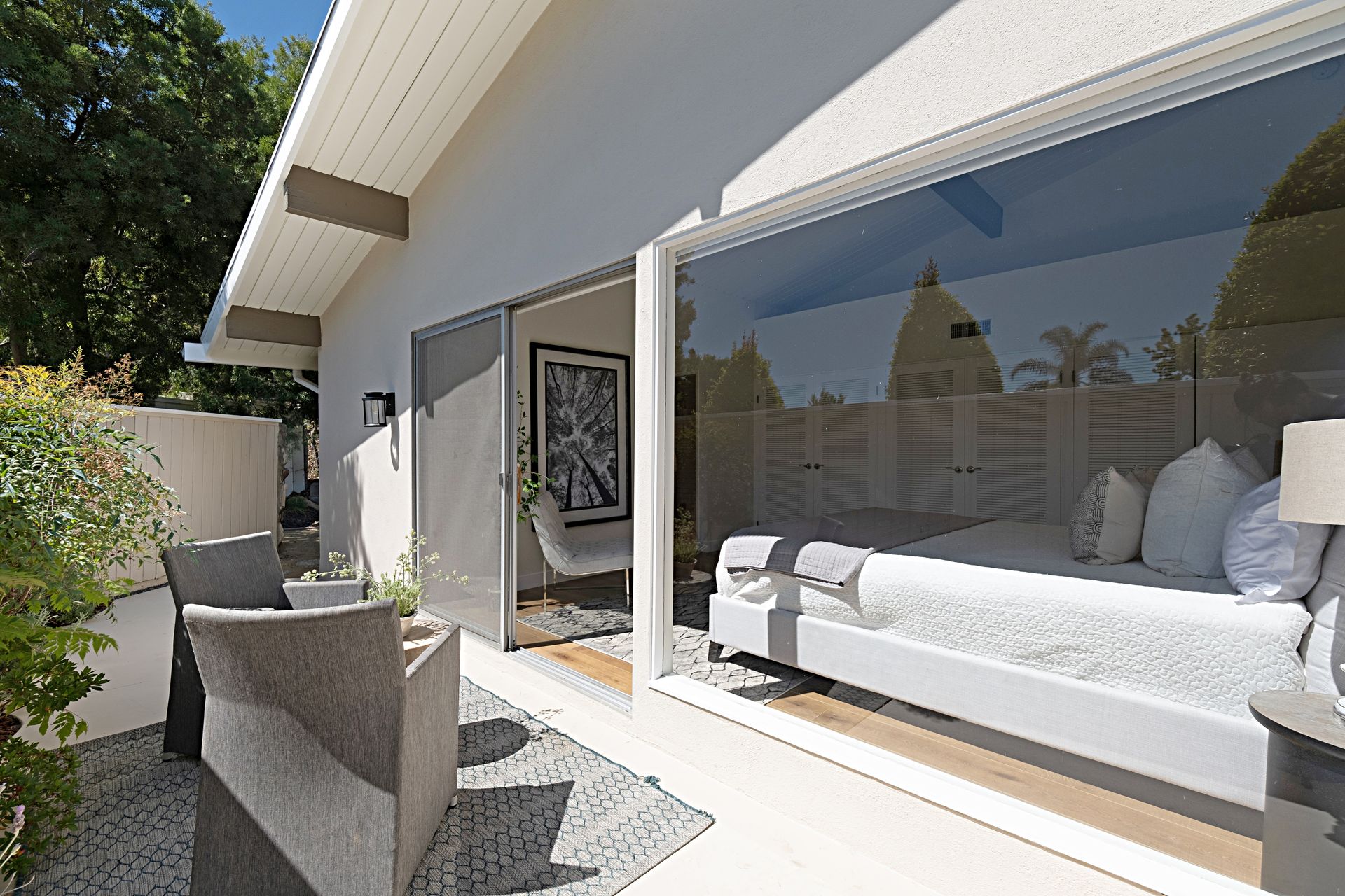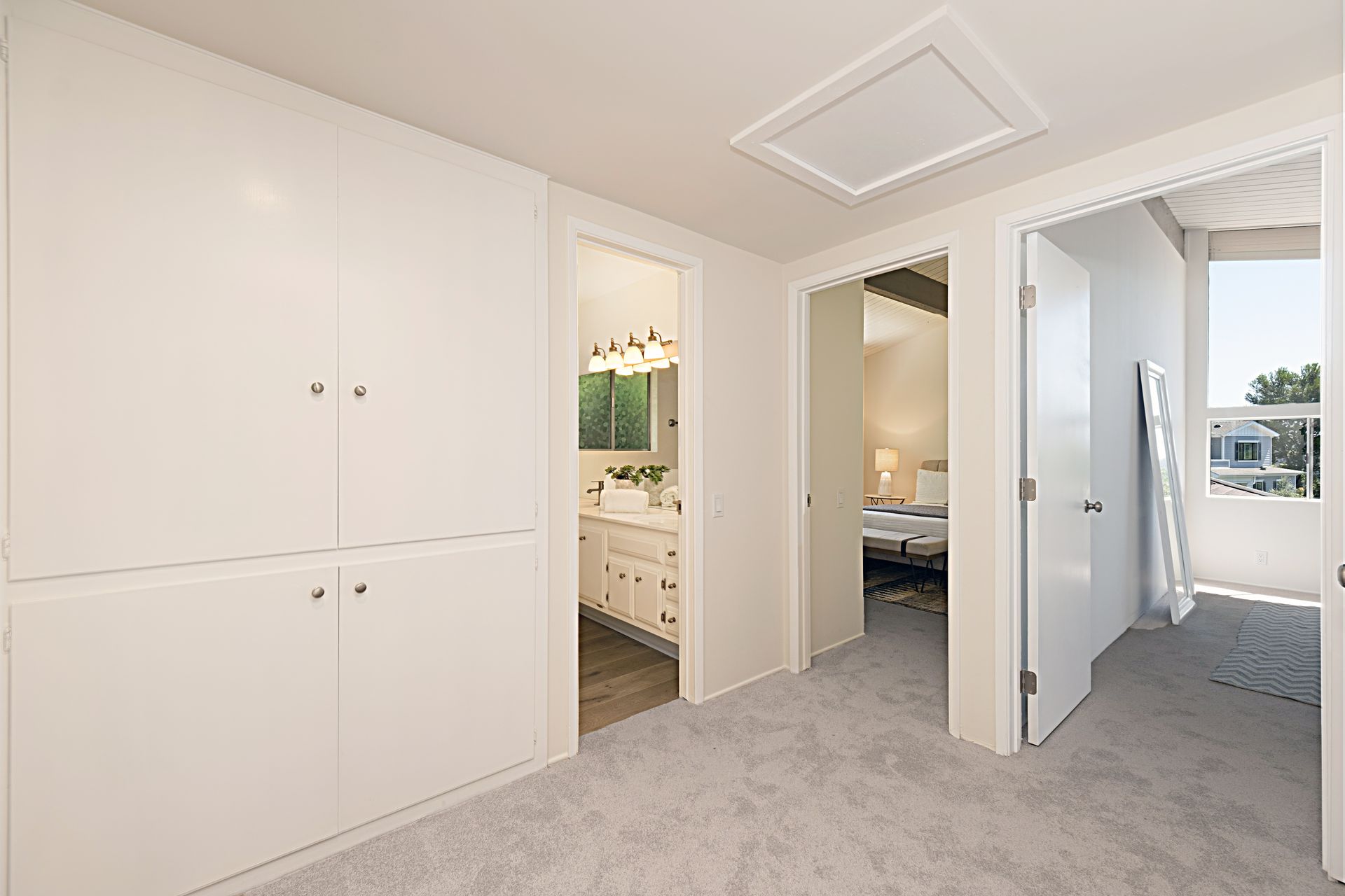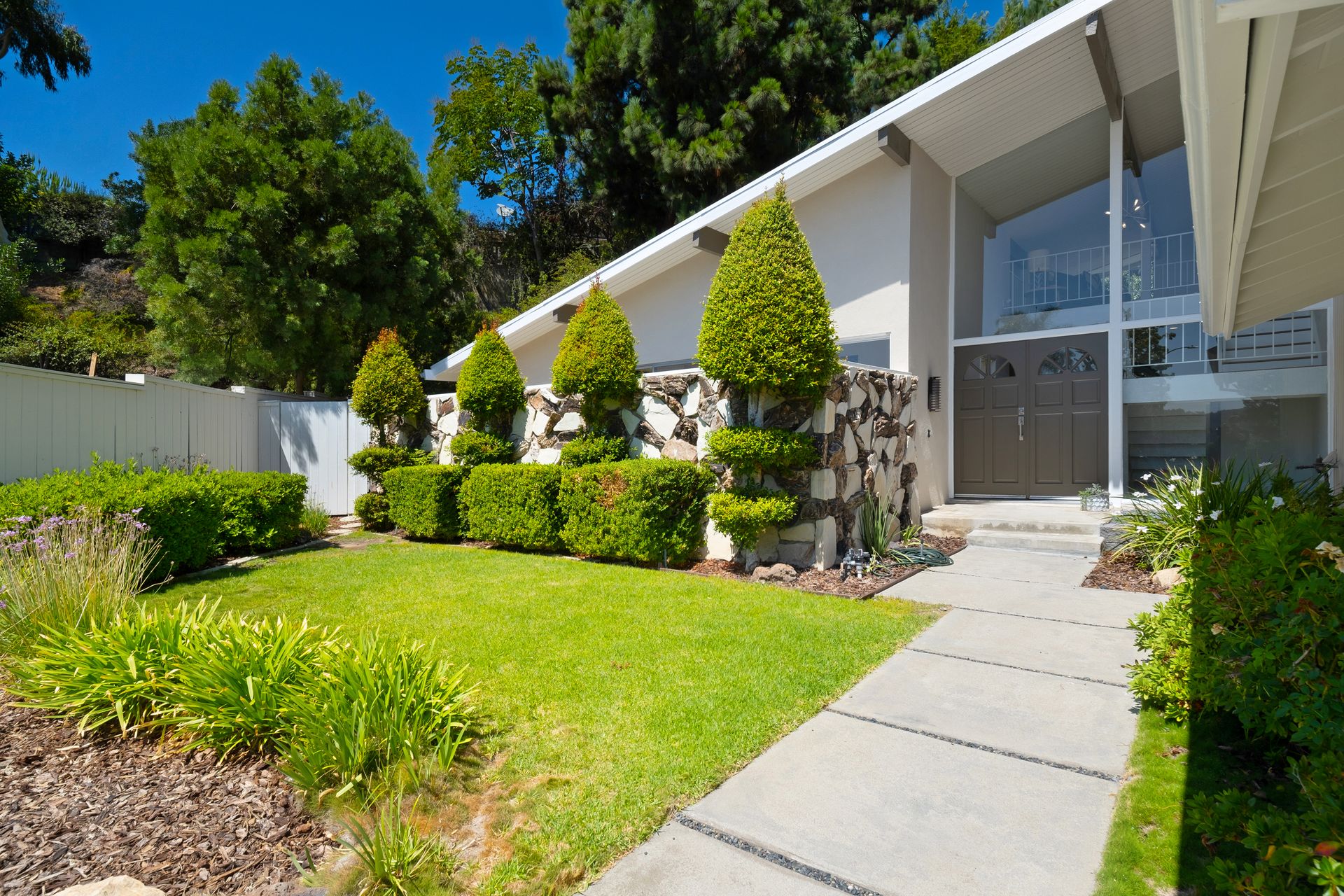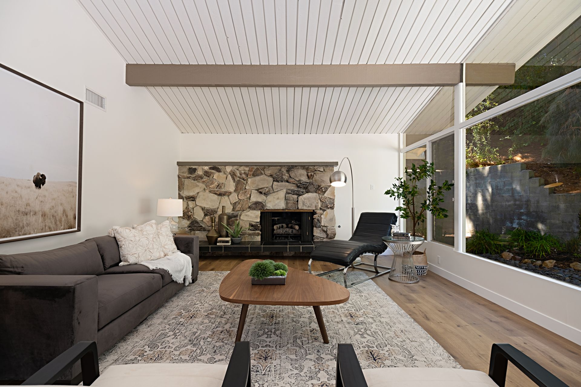 Located at the back of a peaceful cul-de-sac sits this newly re-imagined home. As you enter through the double doors you are welcomed into this very inspiring home. The two-story entrance has newer wood-like flooring throughout the downstairs and a Sputnik chandelier in the foyer. The main bedroom suite features expansive closets, a vaulted ceiling, a private enclosed patio and an updated bathroom. The large open living room has a real wood burning fireplace clad in Palisades Stone, substantial glass windows, soaring ceiling and an open dining room. The kitchen with clean lines includes a breakfast counter, double ovens, newer stove, newer sink and hardware. The adjacent family room has a sliding glass door to a spacious side yard ideal for outdoor dining. It also includes a laundry room adjacent as well as half bath. There is a separate powder room off of the foyer. Upstairs has three secondary bedrooms with a shared full bath plus a separate den/office and a bonus loft/sitting area. The backyard is private and tranquil with a large concrete patio and planters with black river rock. The two-car SxS garage has an updated door and direct access. Washer/dryer and refrigerator included. Professionally staged by Pampa Casa.
