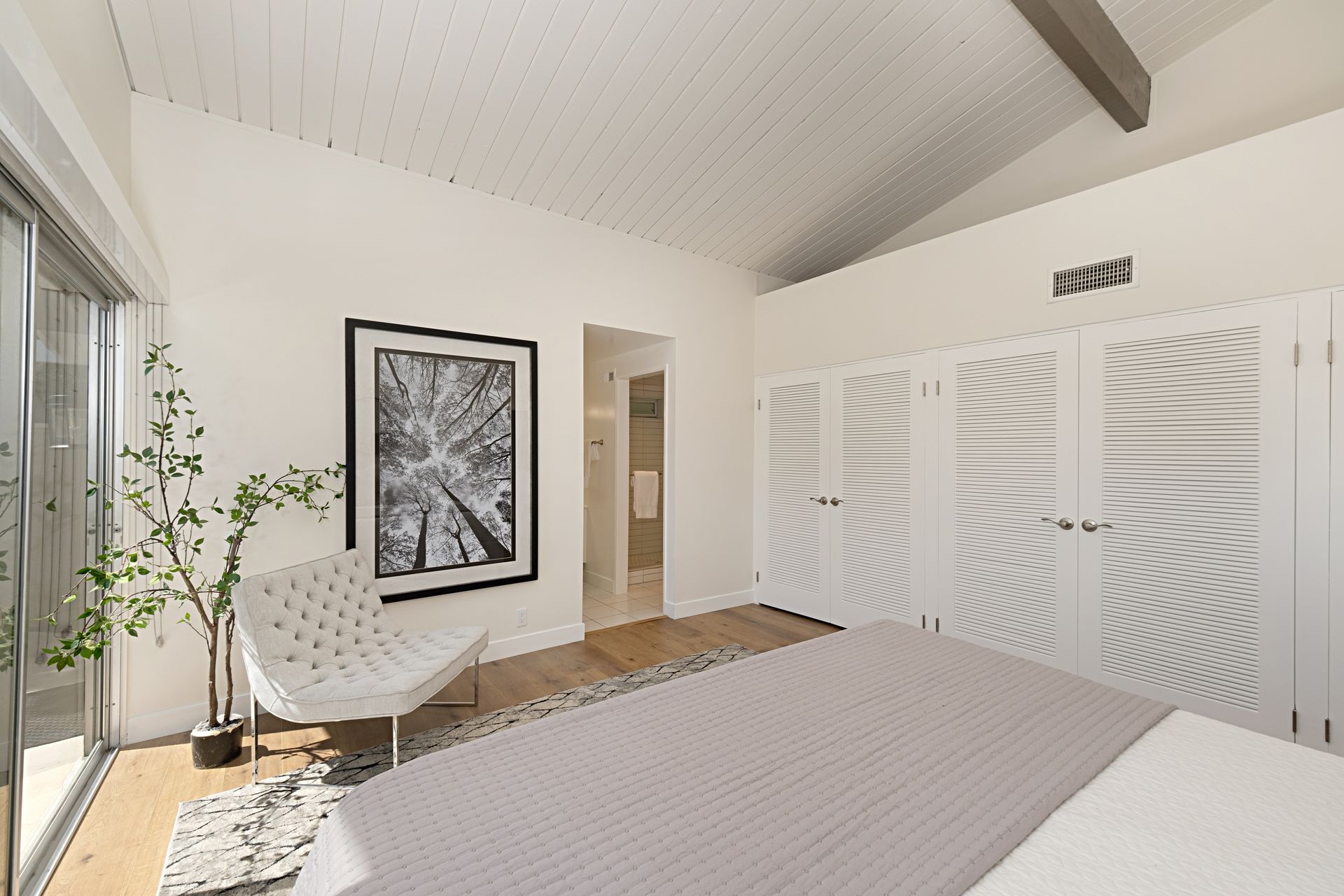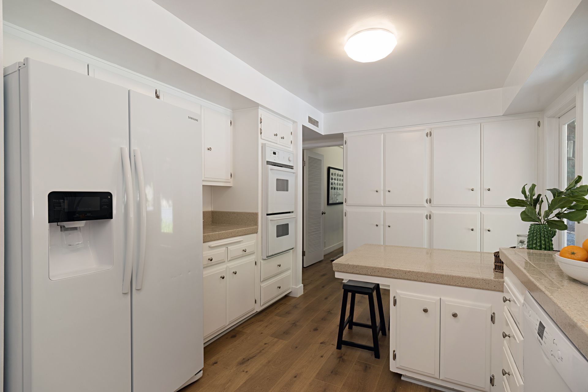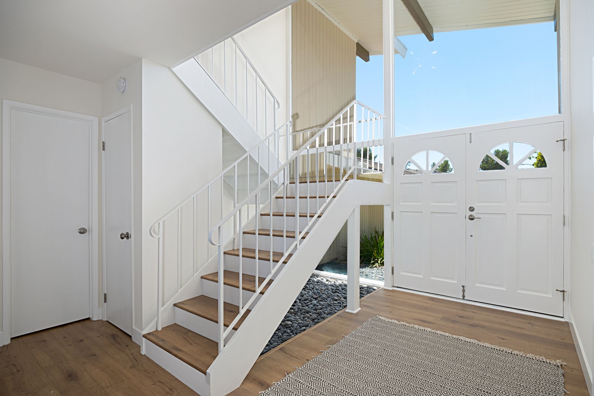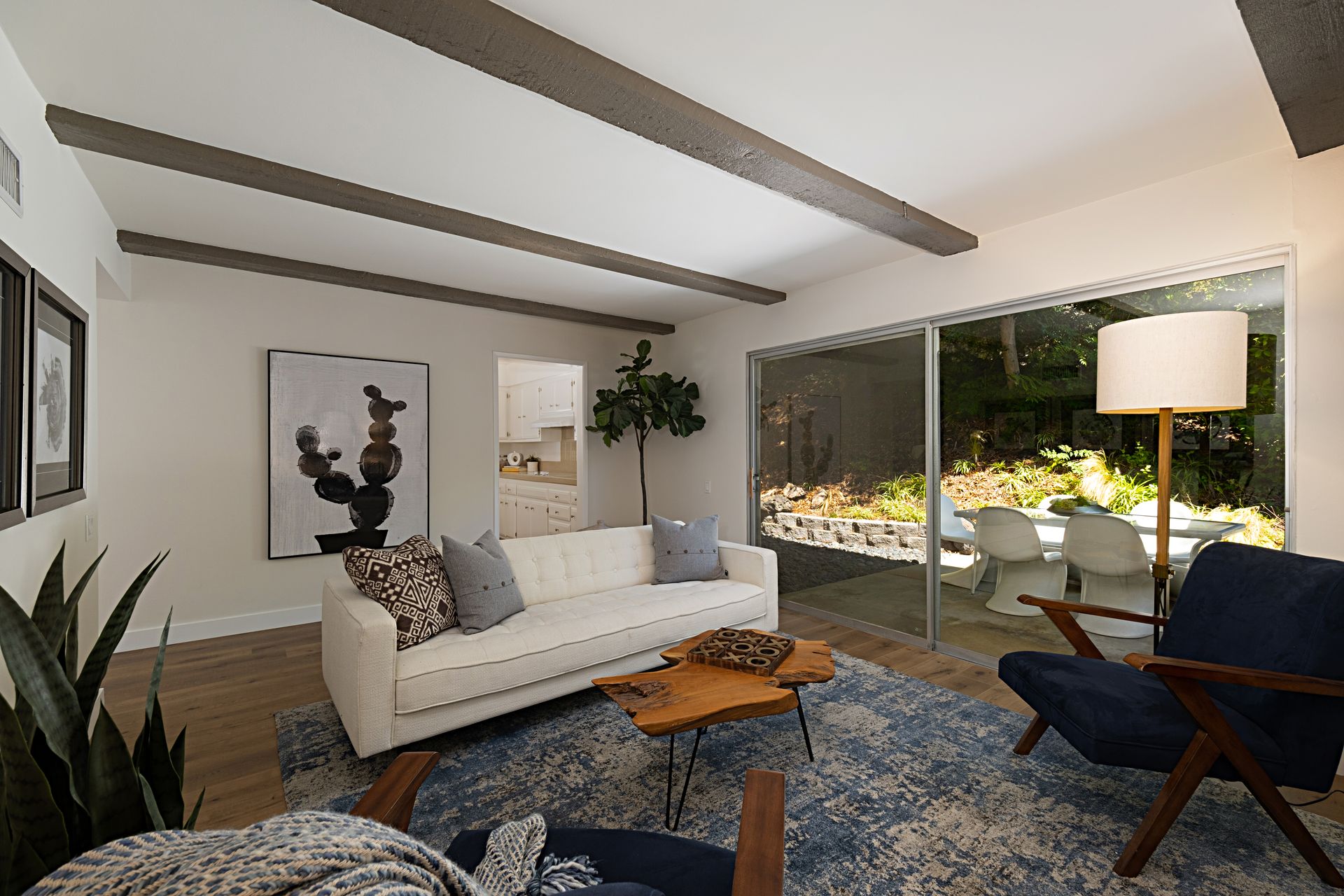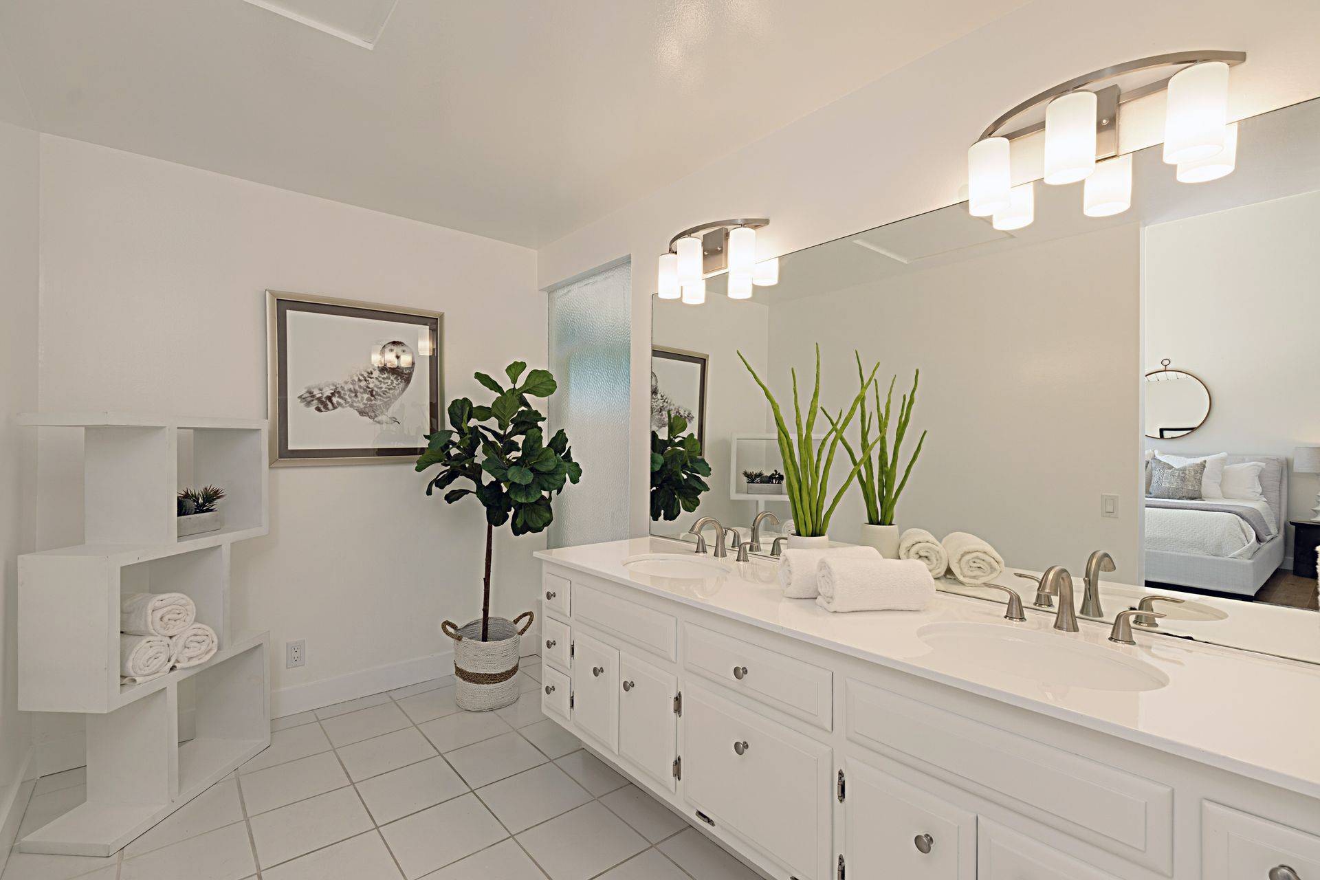 Located at the back of a peaceful cul-de-sac sits this newly re-imagined home. As you enter through the double doors you are welcomed into this very inspiring home. The two-story entrance has newer wood-like flooring throughout the downstairs and a Sputnik chandelier in the foyer. The main bedroom suite features expansive closets, a vaulted ceiling, a private enclosed patio and an updated bathroom. The large open living room has a real wood burning fireplace clad in Palisades Stone, substantial glass windows, soaring ceiling and an open dining room. The kitchen with clean lines includes a breakfast counter, double ovens, newer stove, newer sink and hardware. The adjacent family room has a sliding glass door to a spacious side yard ideal for outdoor dining. It also includes a laundry room adjacent as well as half bath. There is a separate powder room off of the foyer. Upstairs has three secondary bedrooms with a shared full bath plus a separate den/office and a bonus loft/sitting area. The backyard is private and tranquil with a large concrete patio and planters with black river rock. The two-car SxS garage has an updated door and direct access. Washer/dryer and refrigerator included. Professionally staged by Pampa Casa.