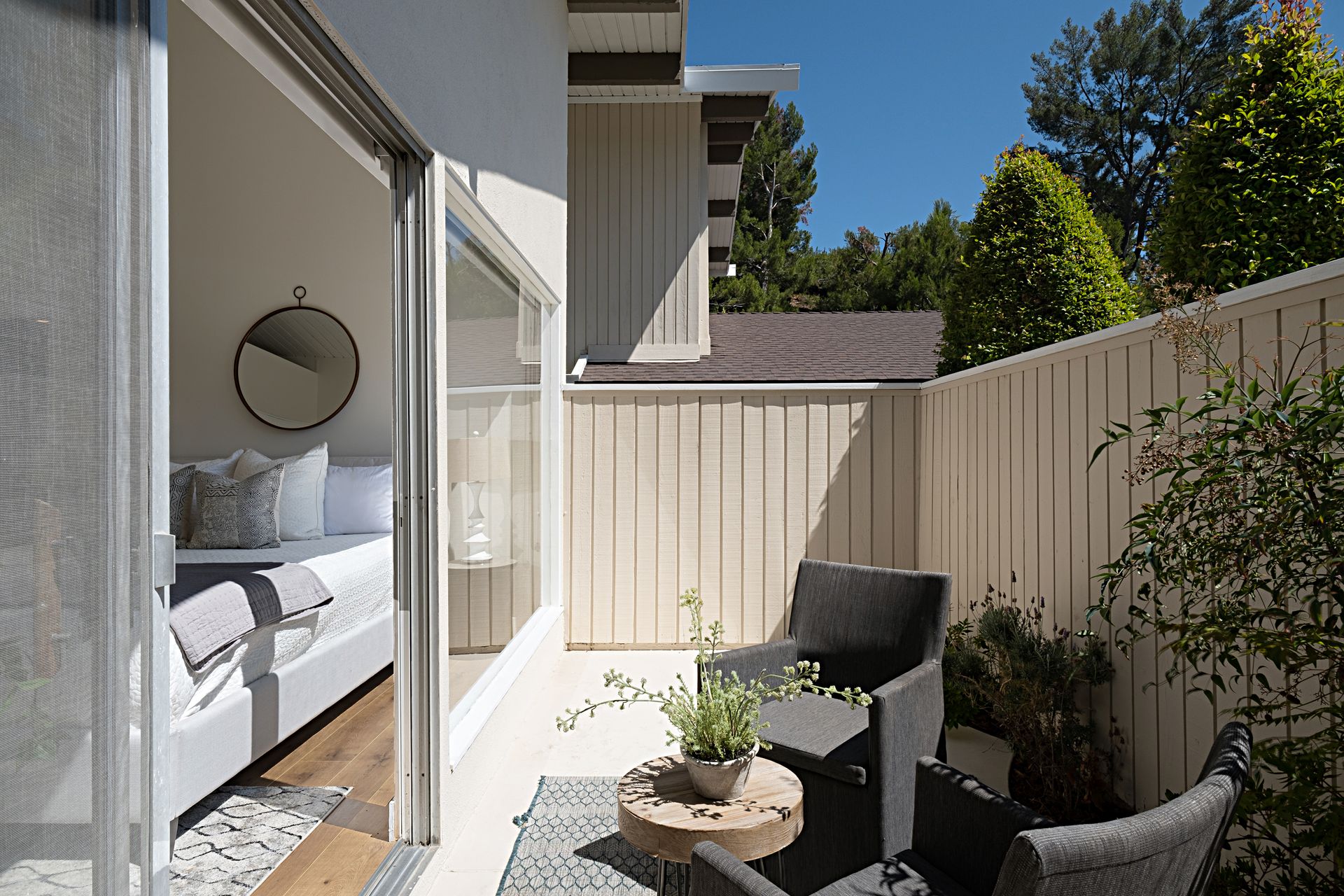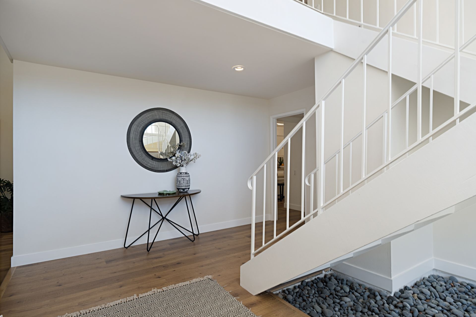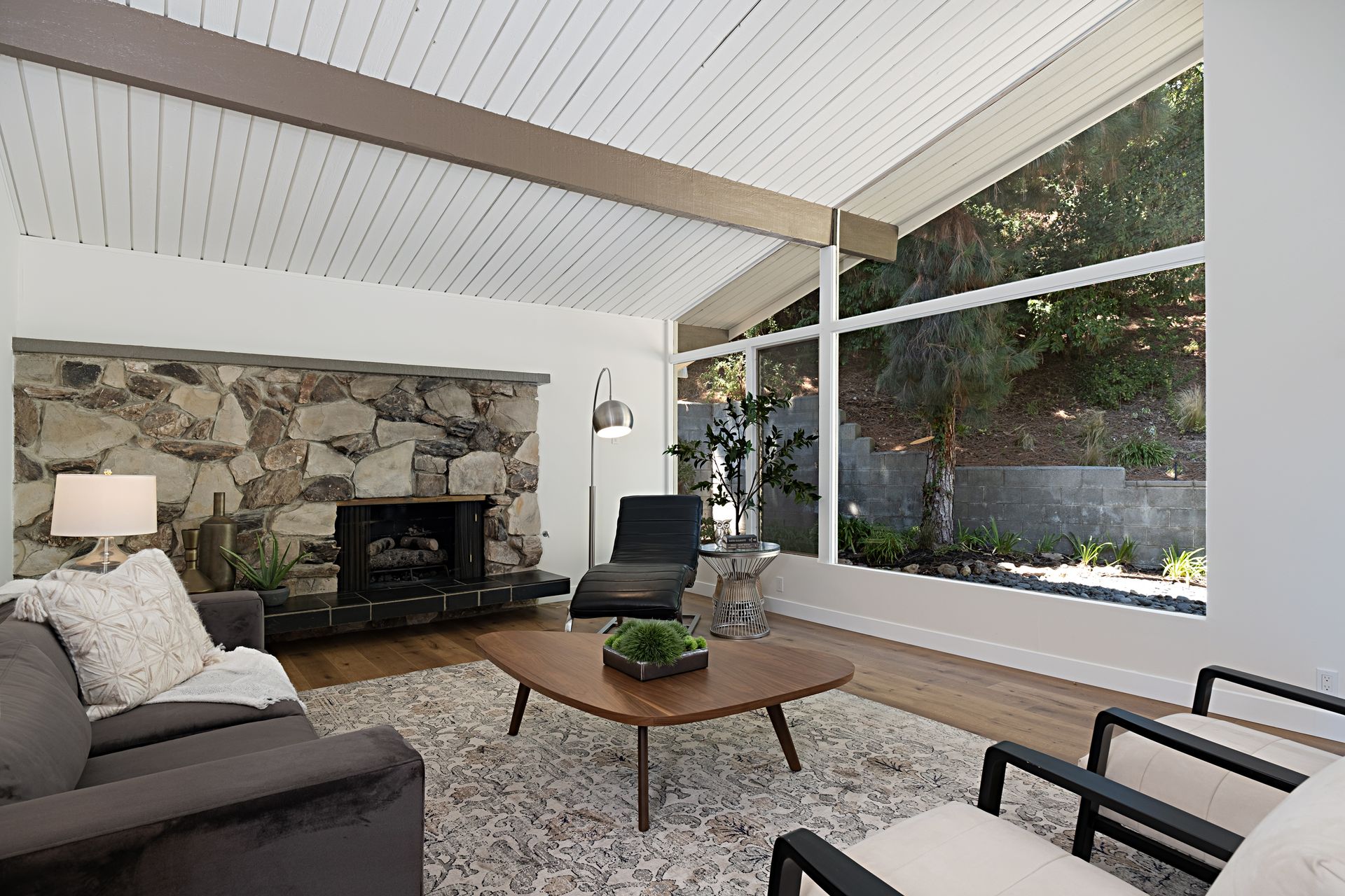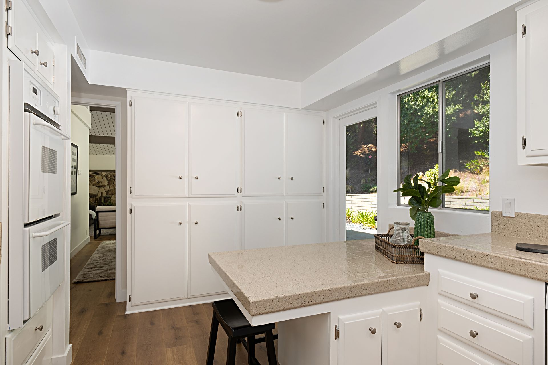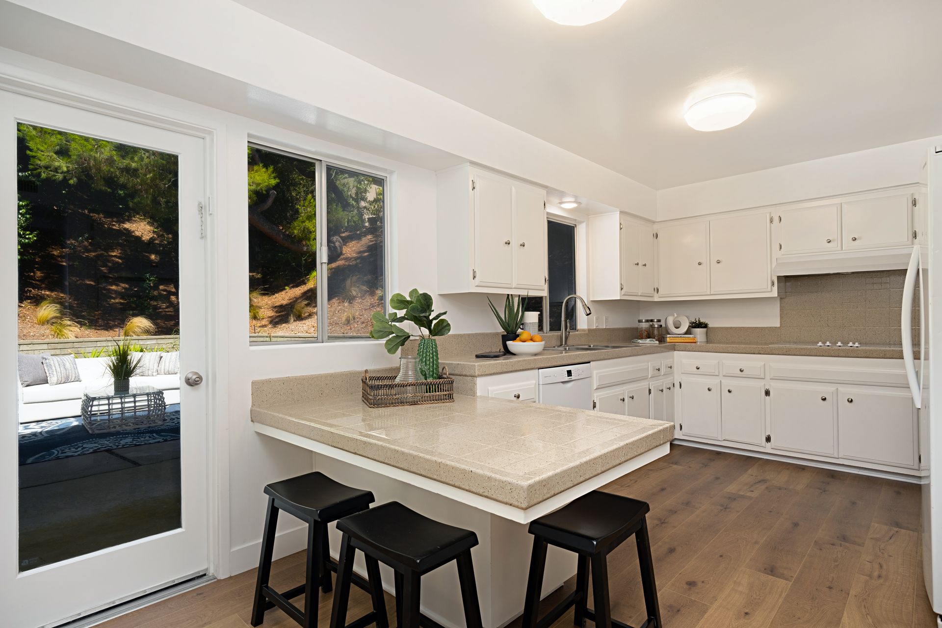 Located at the back of a peaceful cul-de-sac sits this newly re-imagined home. As you enter through the double doors you are welcomed into this very inspiring home. The two-story entrance has newer wood-like flooring throughout the downstairs and a Sputnik chandelier in the foyer. The main bedroom suite features expansive closets, a vaulted ceiling, a private enclosed patio and an updated bathroom. The large open living room has a real wood burning fireplace clad in Palisades Stone, substantial glass windows, soaring ceiling and an open dining room. The kitchen with clean lines includes a breakfast counter, double ovens, newer stove, newer sink and hardware. The adjacent family room has a sliding glass door to a spacious side yard ideal for outdoor dining. It also includes a laundry room adjacent as well as half bath. There is a separate powder room off of the foyer. Upstairs has three secondary bedrooms with a shared full bath plus a separate den/office and a bonus loft/sitting area. The backyard is private and tranquil with a large concrete patio and planters with black river rock. The two-car SxS garage has an updated door and direct access. Washer/dryer and refrigerator included. Professionally staged by Pampa Casa.