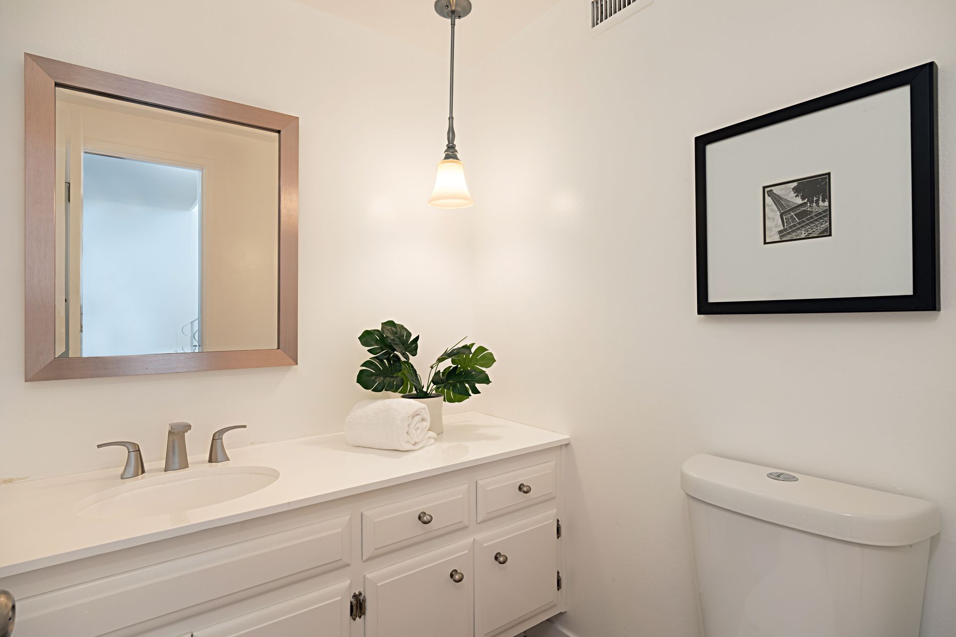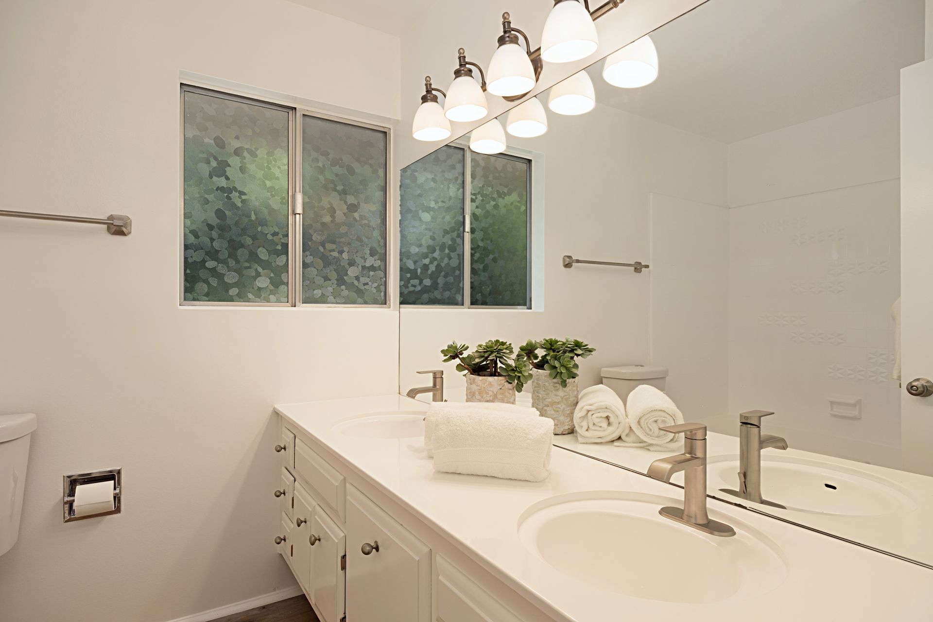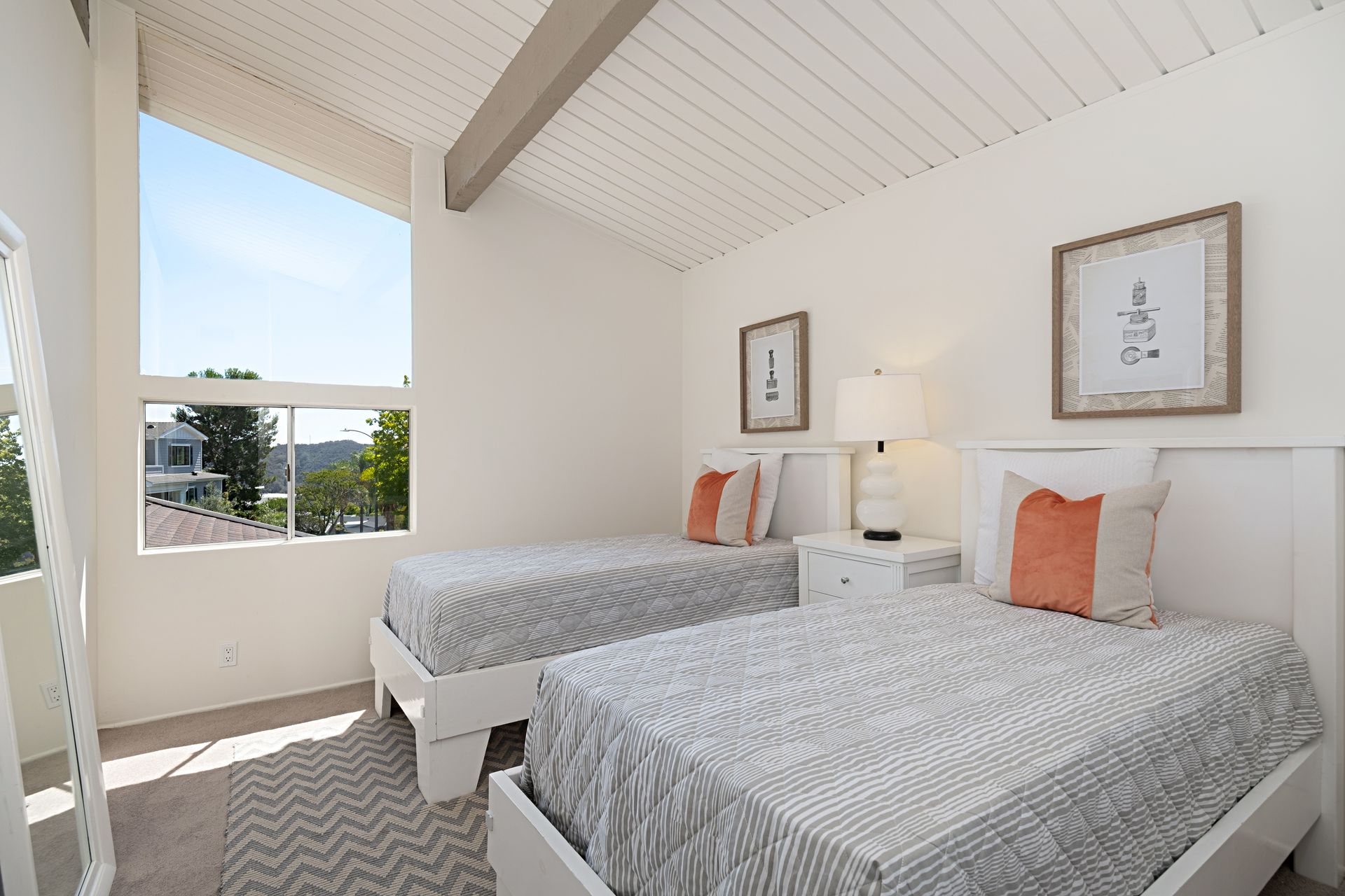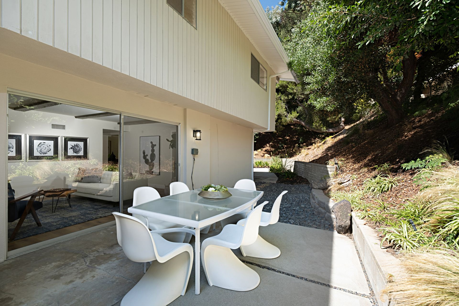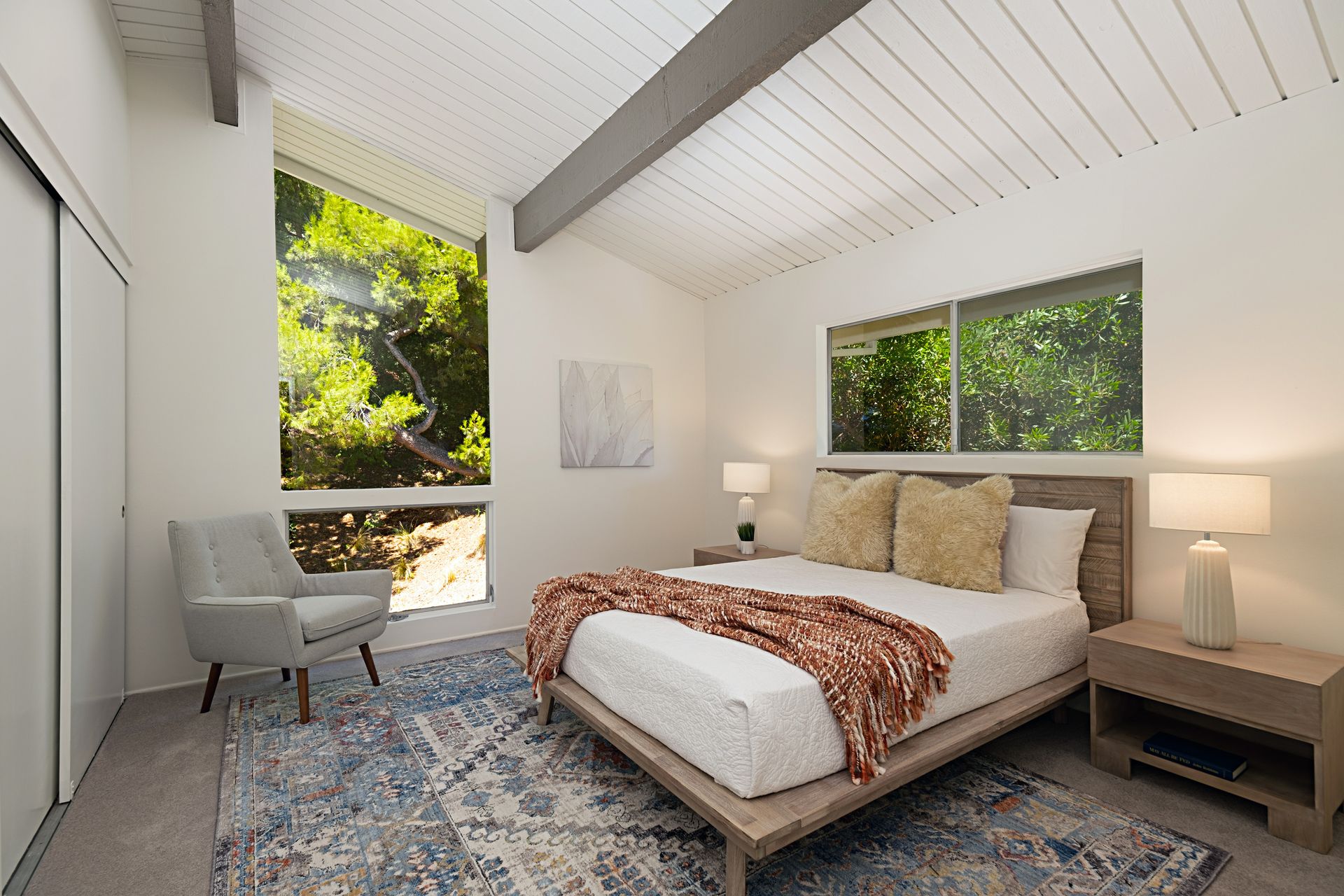 Located at the back of a peaceful cul-de-sac sits this newly re-imagined home. As you enter through the double doors you are welcomed into this very inspiring home. The two-story entrance has newer wood-like flooring throughout the downstairs and a Sputnik chandelier in the foyer. The main bedroom suite features expansive closets, a vaulted ceiling, a private enclosed patio and an updated bathroom. The large open living room has a real wood burning fireplace clad in Palisades Stone, substantial glass windows, soaring ceiling and an open dining room. The kitchen with clean lines includes a breakfast counter, double ovens, newer stove, newer sink and hardware. The adjacent family room has a sliding glass door to a spacious side yard ideal for outdoor dining. It also includes a laundry room adjacent as well as half bath. There is a separate powder room off of the foyer. Upstairs has three secondary bedrooms with a shared full bath plus a separate den/office and a bonus loft/sitting area. The backyard is private and tranquil with a large concrete patio and planters with black river rock. The two-car SxS garage has an updated door and direct access. Washer/dryer and refrigerator included. Professionally staged by Pampa Casa.