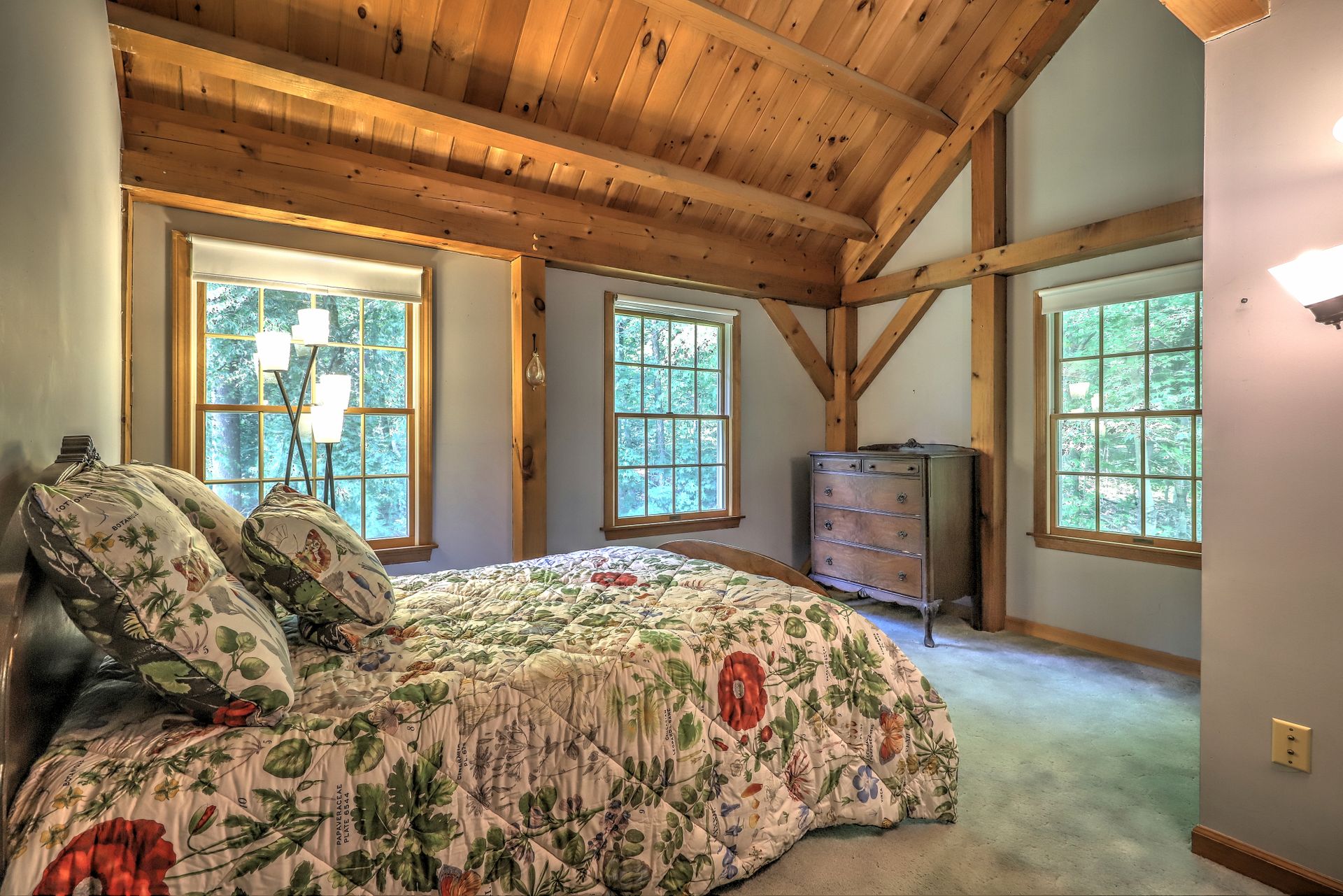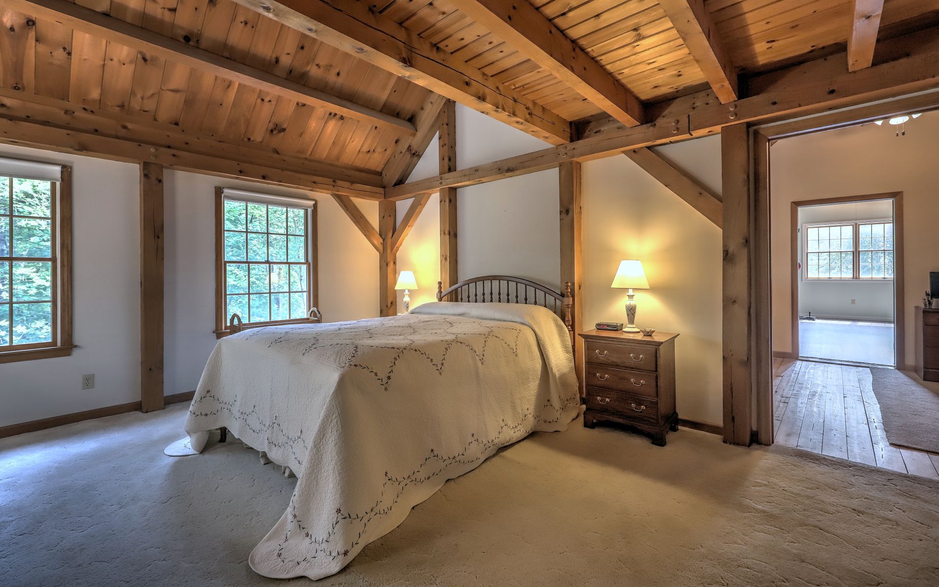 Spacious, custom-built, Energy Star Rated, "Classic" post & beam colonial with a wow at every turn! This Bridleway property is nicely situated at the end of a private drive with a generously proportioned entertaining deck overlooking a lovely yard & woods (backs up to open space). A dramatic, three story foyer opens to the formal dining room with a traditional fireplace & mantel. The formal living room offers another handsome stone fireplace & opens to the 1st floor family room. The family room & a 1st floor, full bath allows for aging in place. The home offers a spacious kitchen with stainless steel appliances, quartz countertops, peninsula/breakfast bar seating & laundry area. A sunroom with cathedral ceiling offers additional eating in space, the possibility of several uses & provides access to the large deck via a French door. The 2nd level offers another family room with a massive stone fireplace, palladium window & built-ins. The generous master bedroom suite includes a walk-in closet & spacious bath with whirlpool tub (for two) & separate recently renovated oversized stall shower with stone floor. There is an adjacent office & a bonus space, currently used as a gym. There are three additional bedrooms & a full bath. The 3rd floor bedroom & the additional office space have cathedral ceilings & skylights. The home offers a newer, energy efficient geothermal heating & A/C system, new deck, a newer well pump, hot water heater, dishwasher, range/oven, refrigerator, kitchen counters, 1st floor bath counters. Truly a “one of a kind”! Convenient location, close to Yale, UNH, SCSU, downtown New Haven, Yale Hospital, commuting routes, several shopping areas & trail systems. Call me today for your private showing!