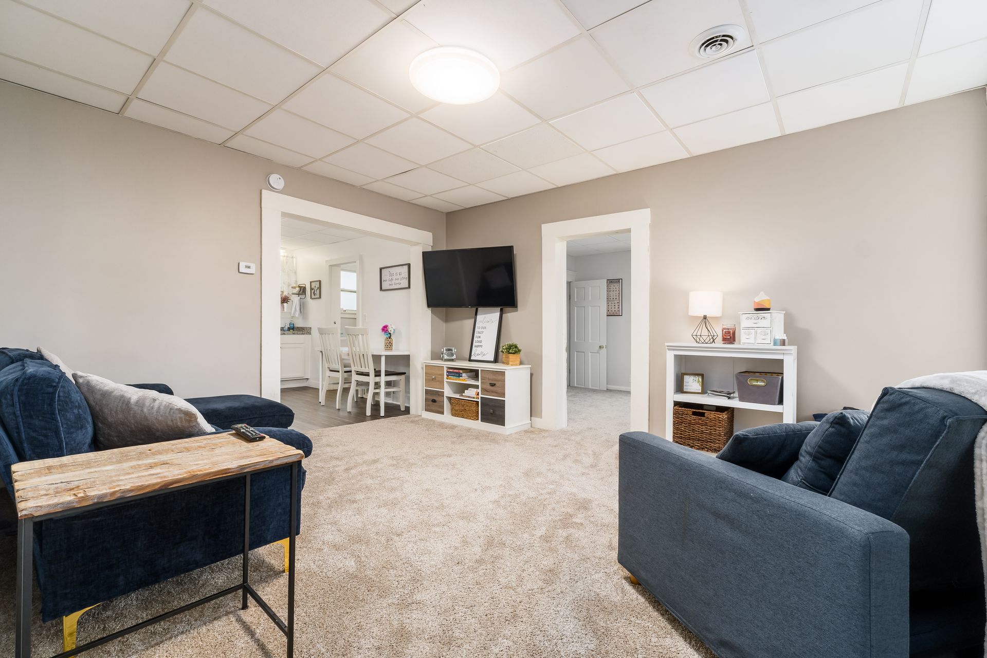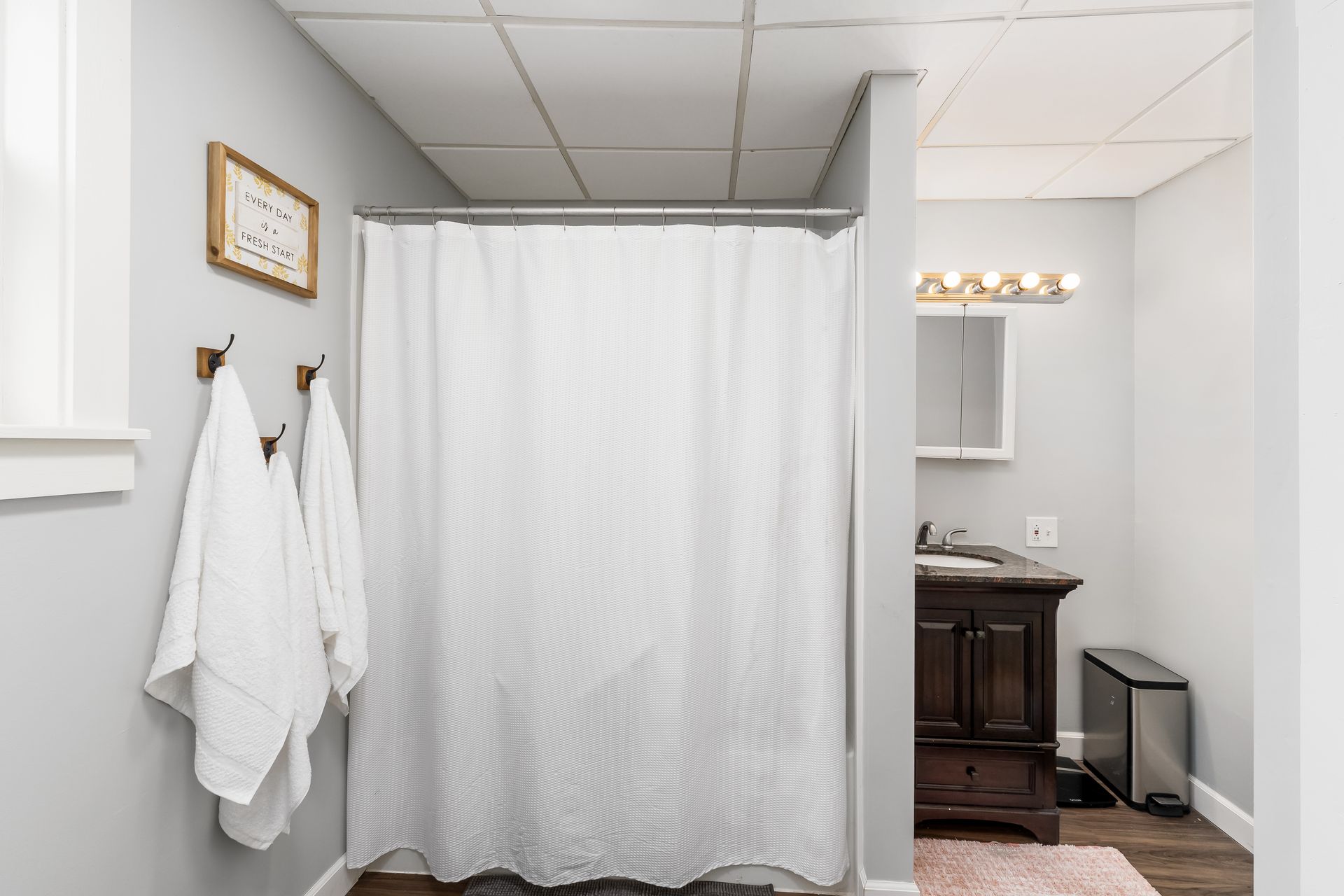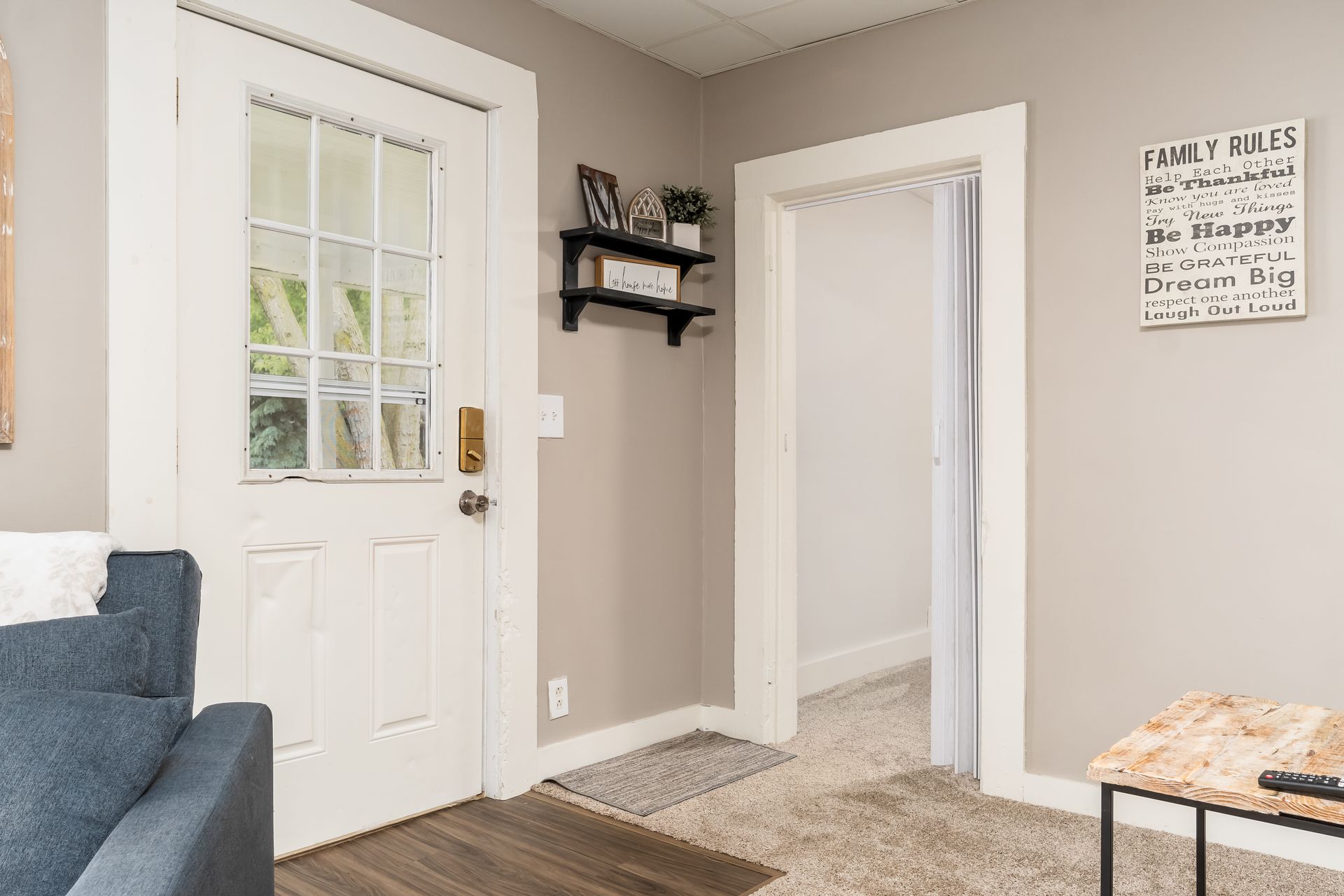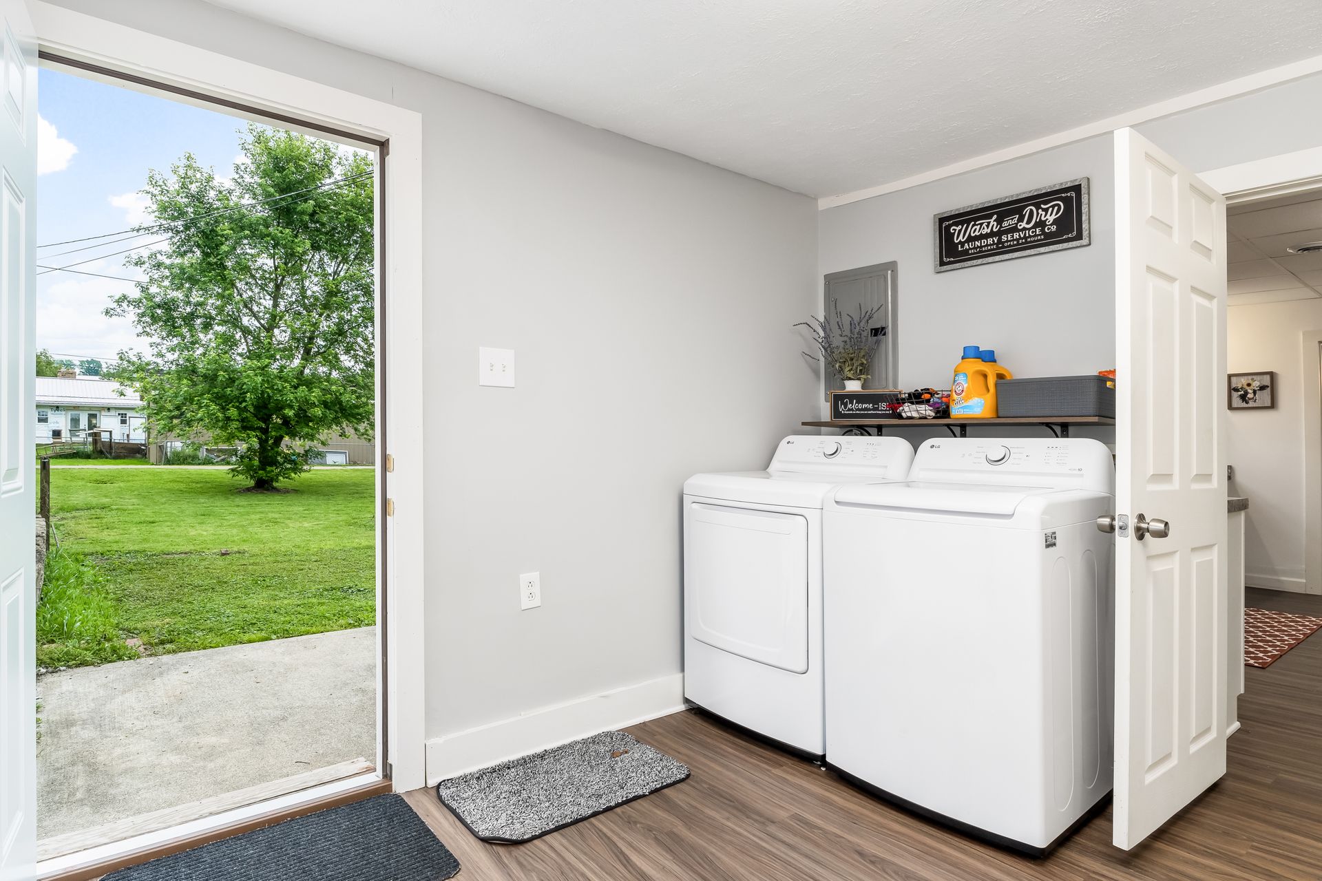 offers a large kitchen with updated cabinets, new counter tops, new flooring throughout, fresh paint, new hot water tank, and both full baths
