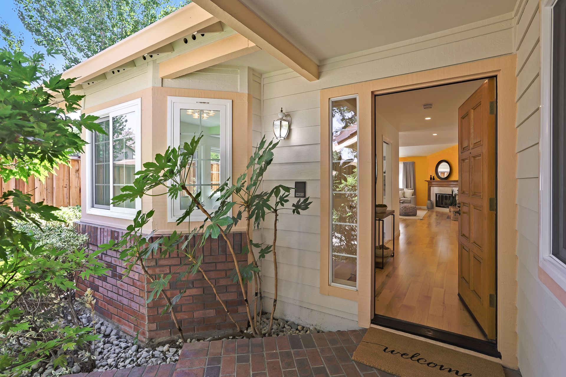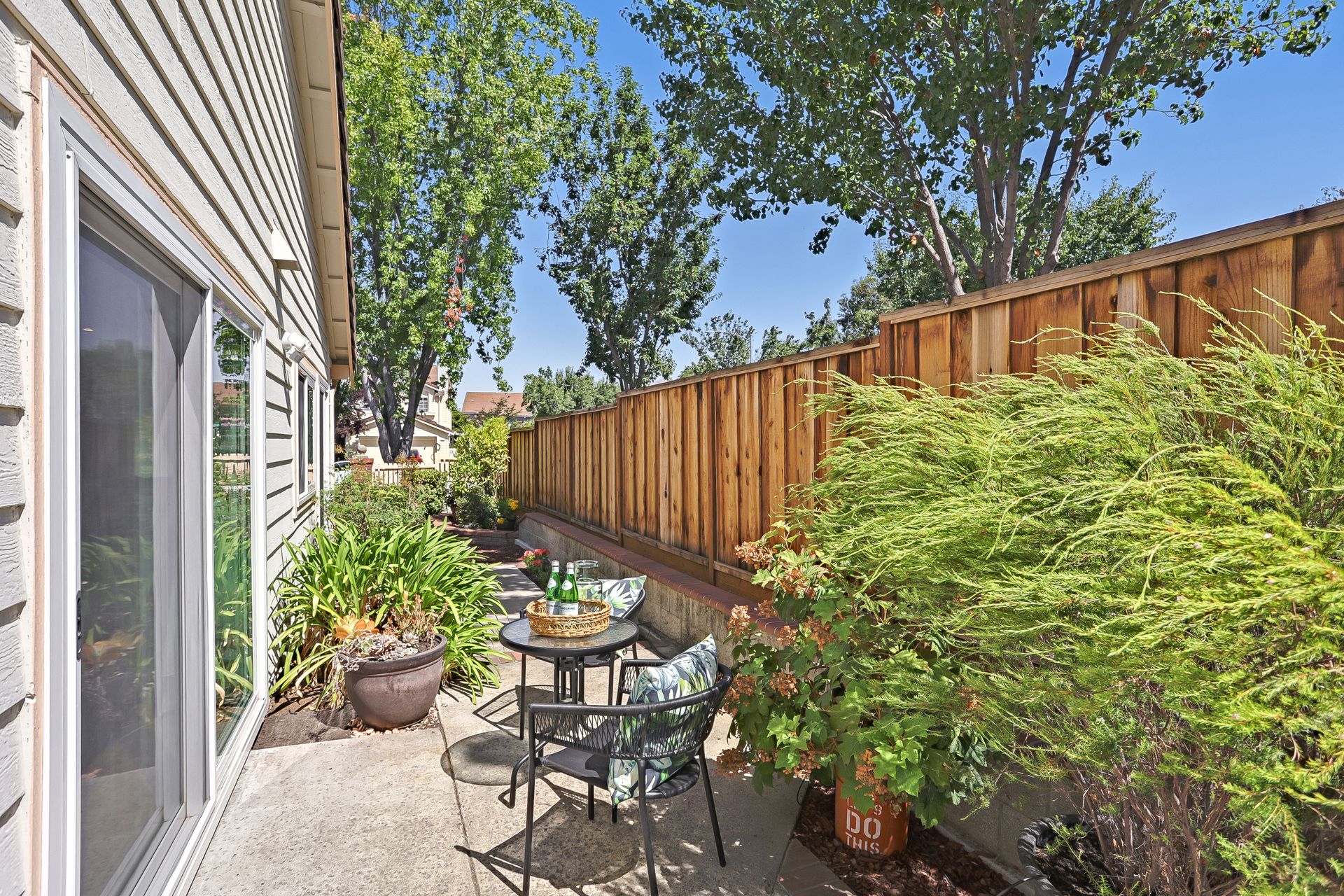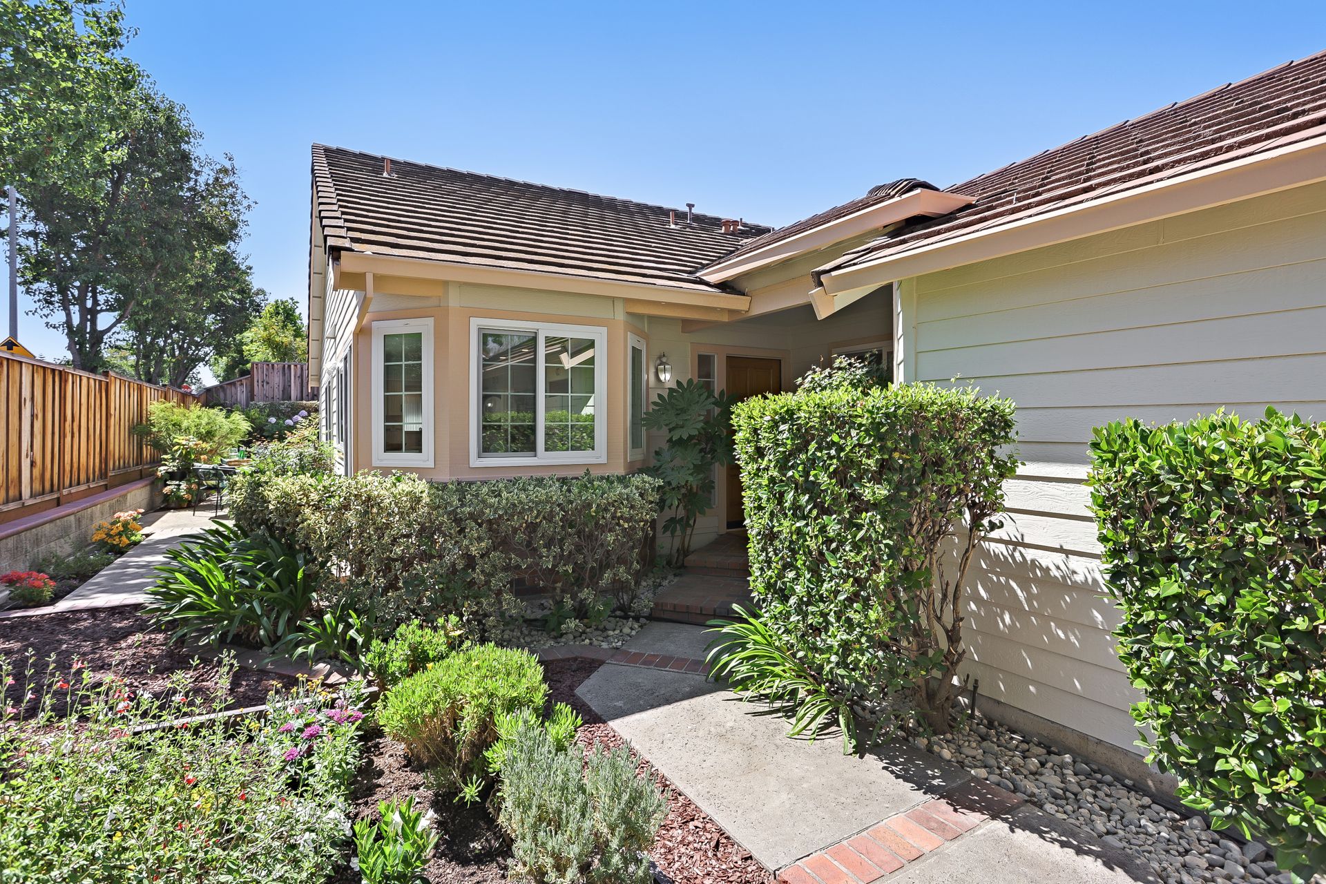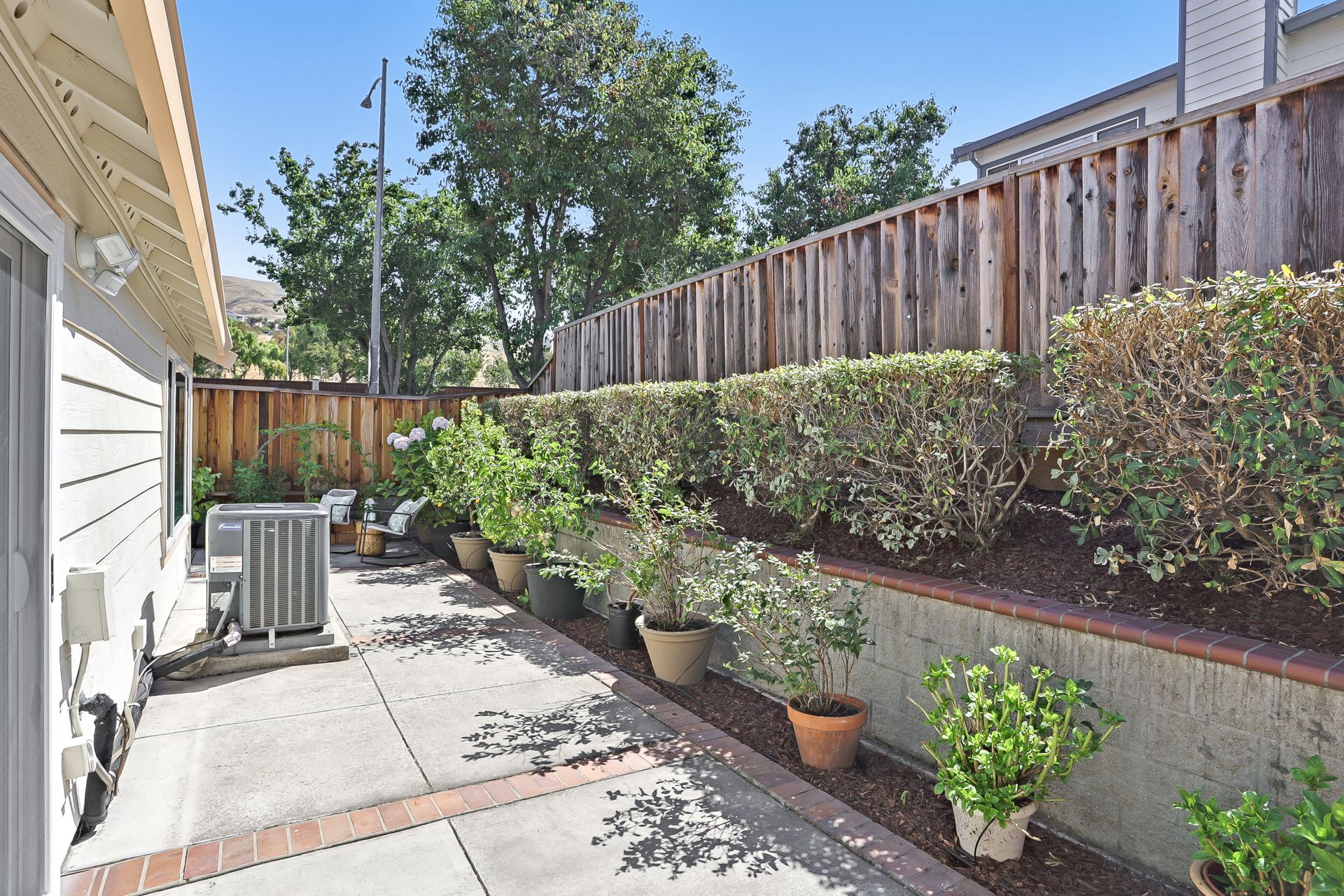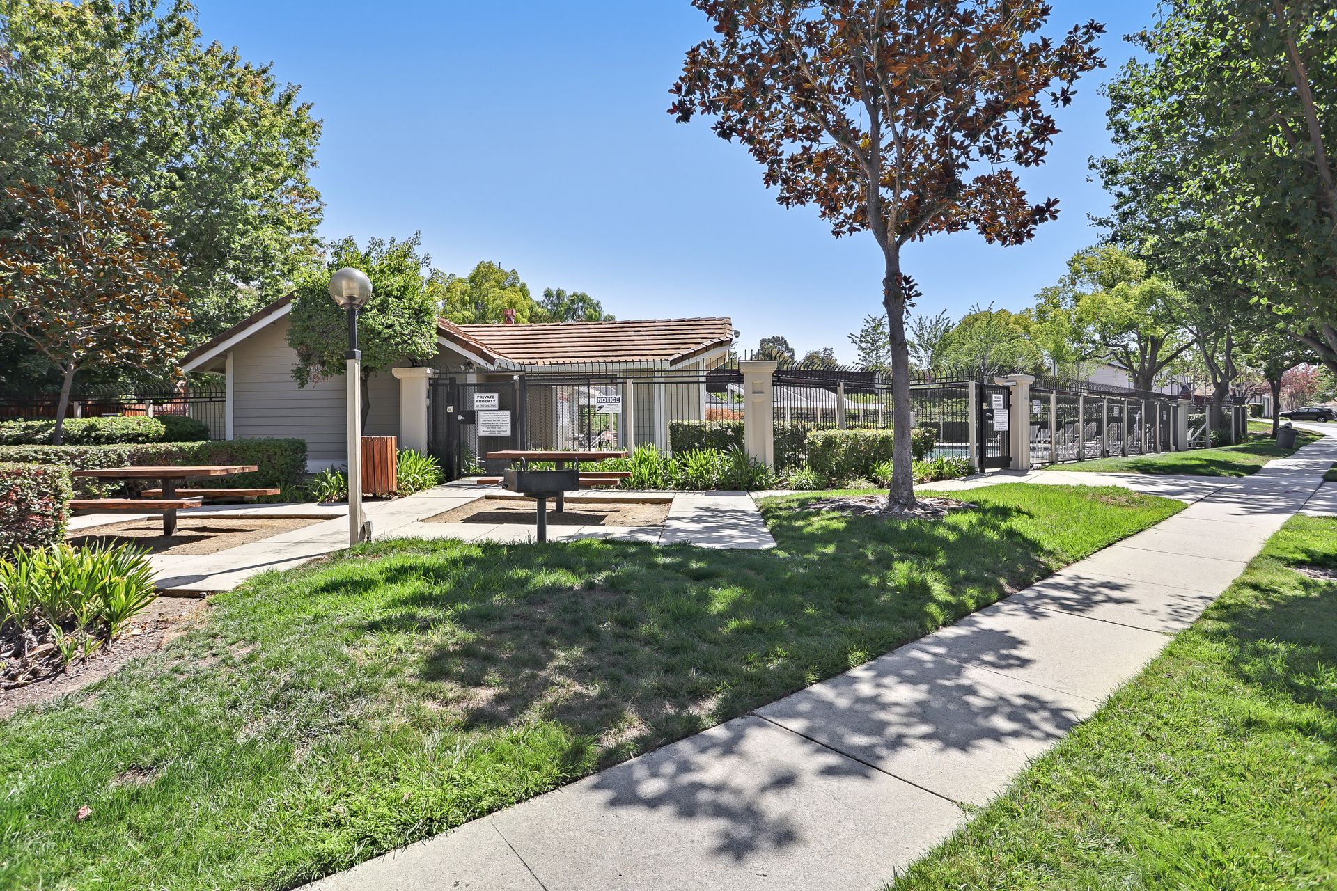 Welcome to this bright and beautiful home nestled near the foothills in the wonderful Hillcrest Villas community. This single-level home has been updated throughout including Hickory and tile flooring, recessed lighting, fabulous eat-in kitchen with lovely white cabinetry, ECO green rated counters, GE Profile Series oven, LG Radiant cooktop, Maytag JetClean Plus dishwasher and gleaming tile floors. The spacious dining and living room area with vaulted ceilings and gas starter fireplace is awash with natural light and connected to the peaceful outside space via sliding glass doors. Bathrooms include updated fixtures, lighting, newer tile flooring and a stunning shower in the hall bath. The primary suite boasts vaulted ceilings, two closets – one with mirrored doors, as well as a walk-in closet with organizers and a luxurious soaking tub. The waterwise garden wraps around three sides of the home with raised beds and numerous fruit trees, creating a tranquil setting for morning coffee or relaxing evenings. Enjoy use of the community pool and barbeque area, nearby Hillcrest Park, as well as highly rated Sinnott Elementary and Rancho Milpitas Middle Schools all in under a mile, Stratford School, The Great Mall and Bart all within two miles from this exceptional home.