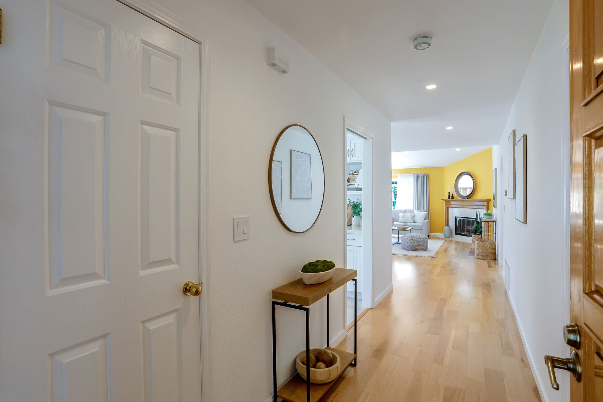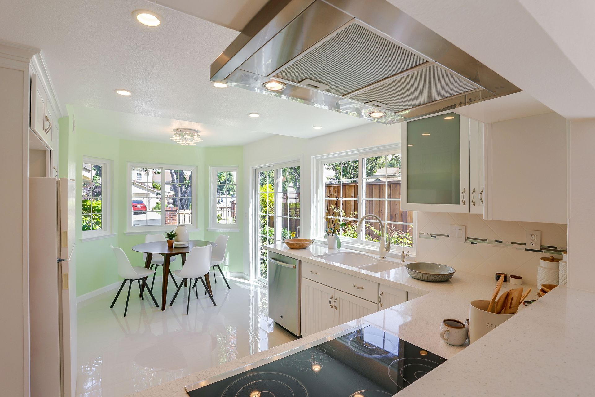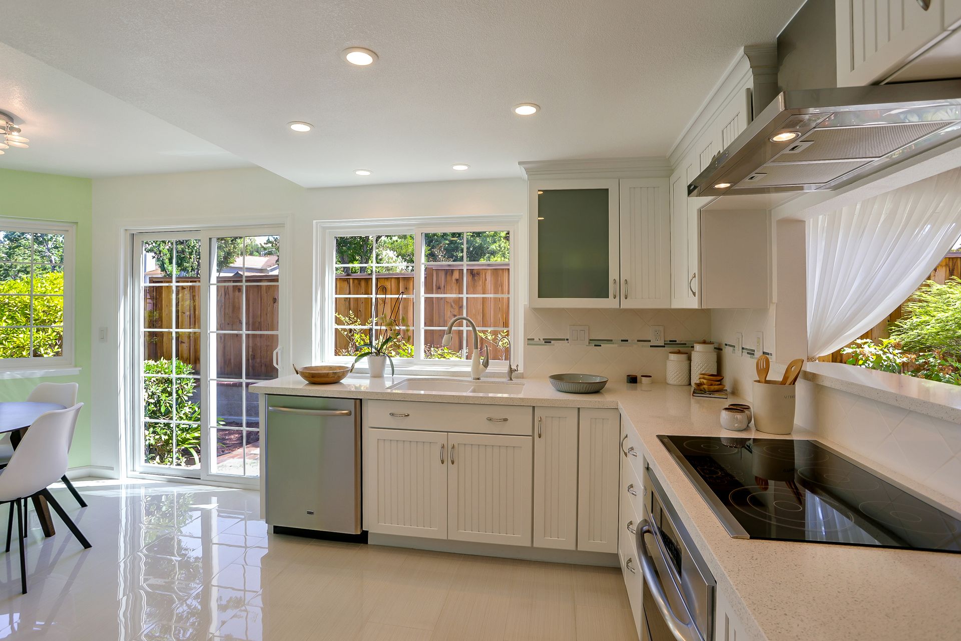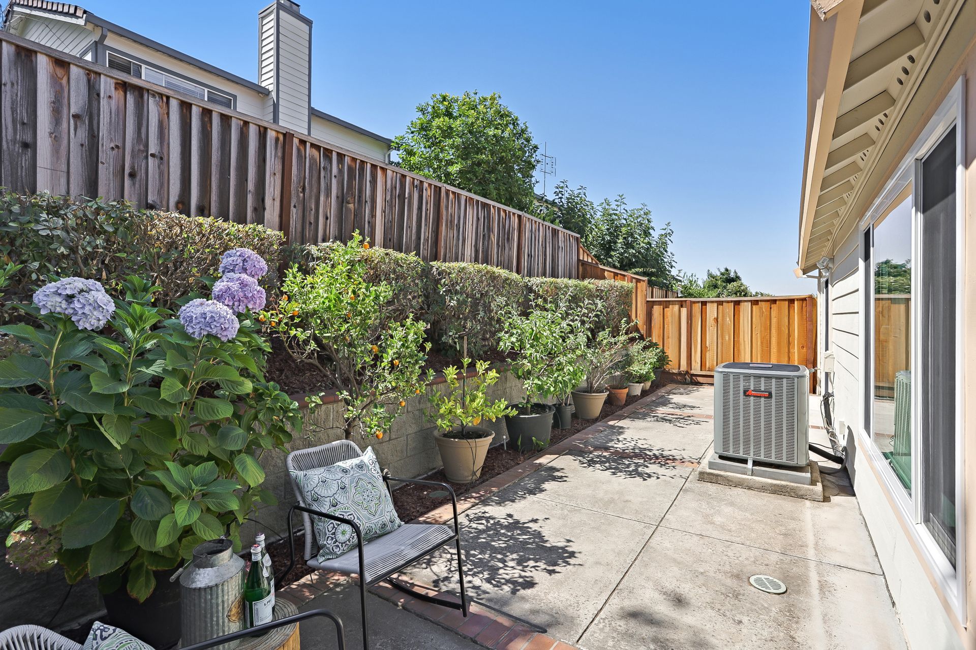 Welcome to this bright and beautiful home nestled near the foothills in the wonderful Hillcrest Villas community. This single-level home has been updated throughout including Hickory and tile flooring, recessed lighting, fabulous eat-in kitchen with lovely white cabinetry, ECO green rated counters, GE Profile Series oven, LG Radiant cooktop, Maytag JetClean Plus dishwasher and gleaming tile floors. The spacious dining and living room area with vaulted ceilings and gas starter fireplace is awash with natural light and connected to the peaceful outside space via sliding glass doors. Bathrooms include updated fixtures, lighting, newer tile flooring and a stunning shower in the hall bath. The primary suite boasts vaulted ceilings, two closets – one with mirrored doors, as well as a walk-in closet with organizers and a luxurious soaking tub. The waterwise garden wraps around three sides of the home with raised beds and numerous fruit trees, creating a tranquil setting for morning coffee or relaxing evenings. Enjoy use of the community pool and barbeque area, nearby Hillcrest Park, as well as highly rated Sinnott Elementary and Rancho Milpitas Middle Schools all in under a mile, Stratford School, The Great Mall and Bart all within two miles from this exceptional home.