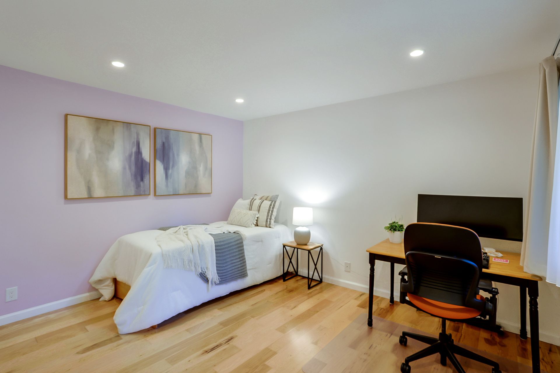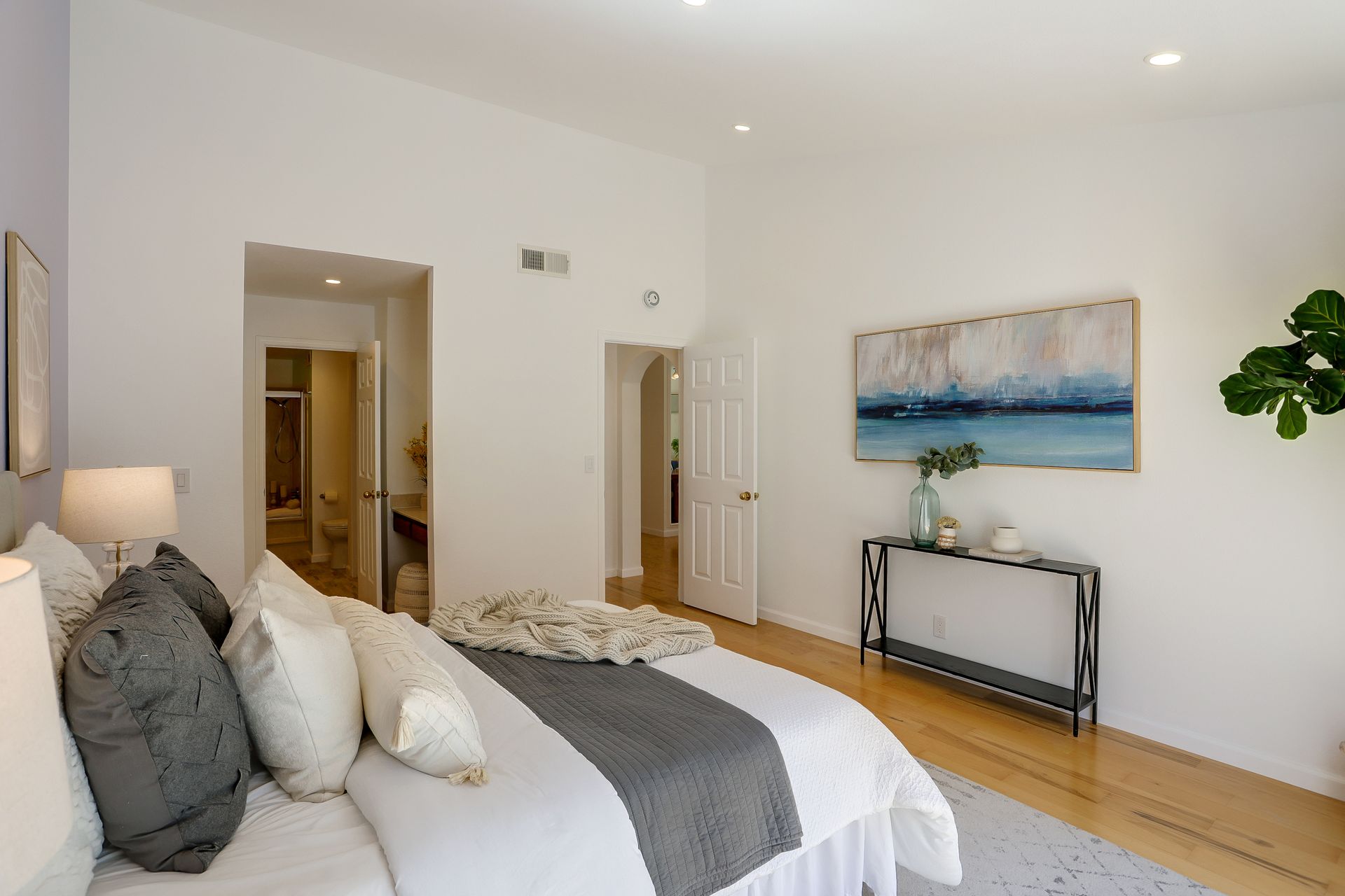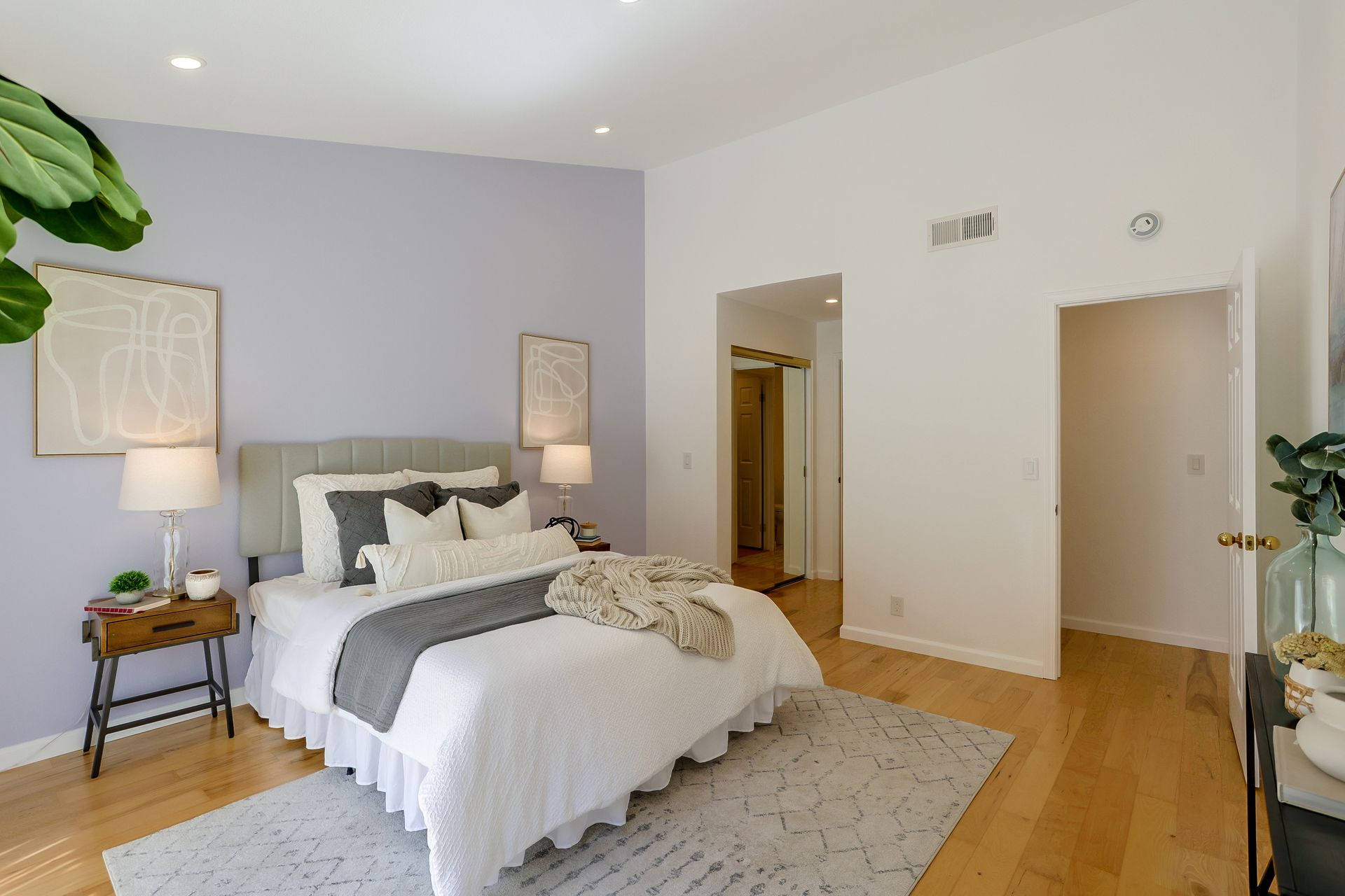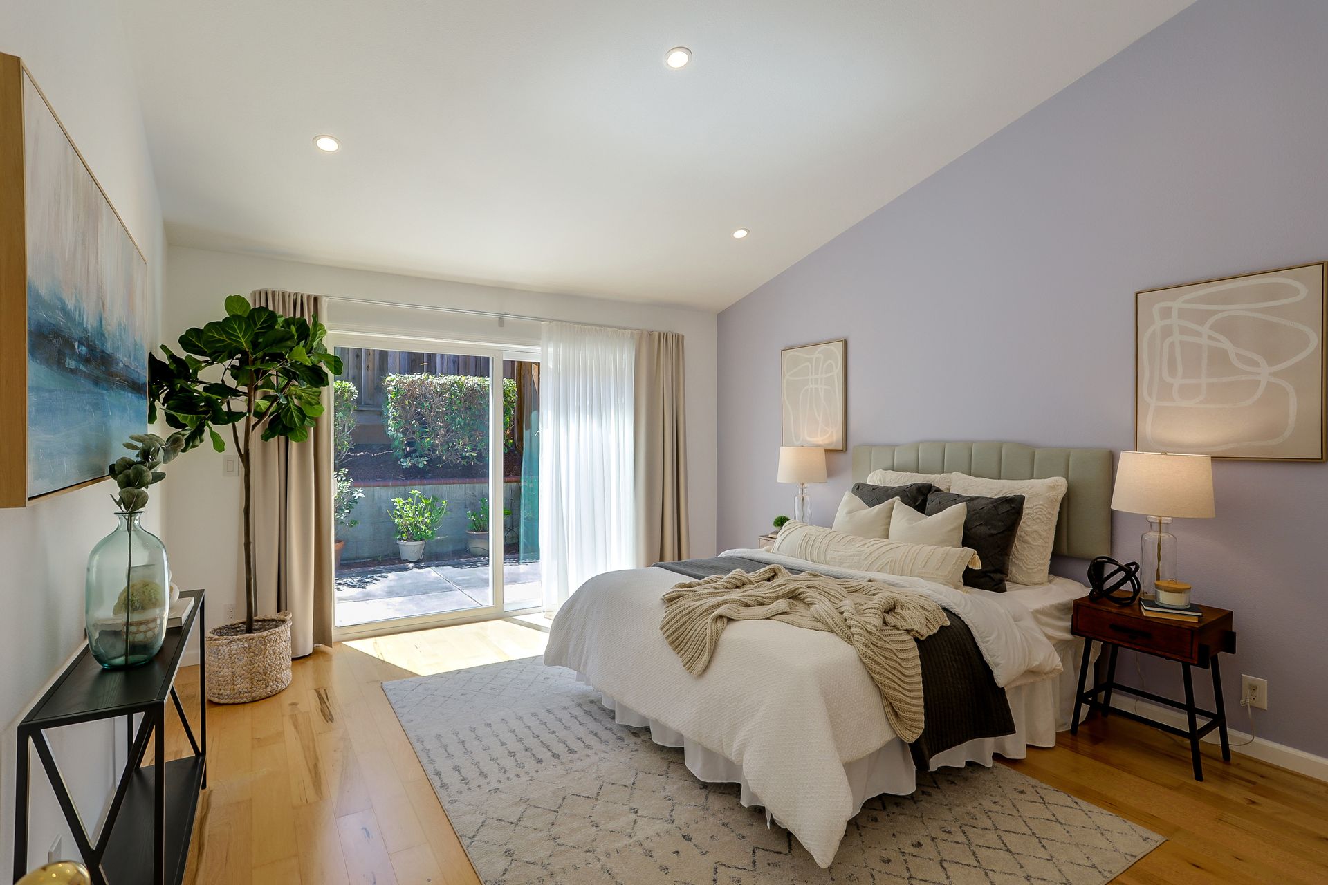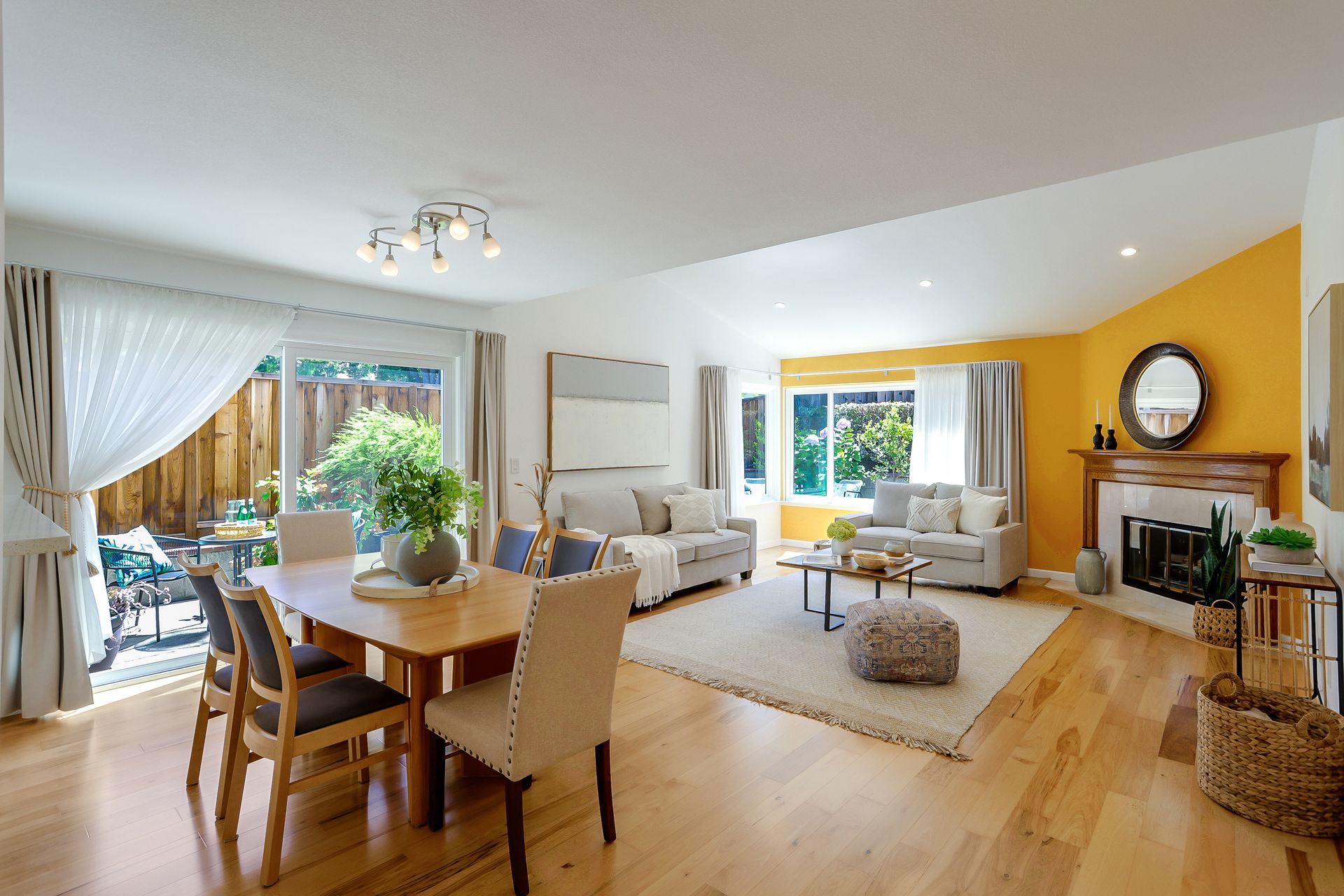 Welcome to this bright and beautiful home nestled near the foothills in the wonderful Hillcrest Villas community. This single-level home has been updated throughout including Hickory and tile flooring, recessed lighting, fabulous eat-in kitchen with lovely white cabinetry, ECO green rated counters, GE Profile Series oven, LG Radiant cooktop, Maytag JetClean Plus dishwasher and gleaming tile floors. The spacious dining and living room area with vaulted ceilings and gas starter fireplace is awash with natural light and connected to the peaceful outside space via sliding glass doors. Bathrooms include updated fixtures, lighting, newer tile flooring and a stunning shower in the hall bath. The primary suite boasts vaulted ceilings, two closets – one with mirrored doors, as well as a walk-in closet with organizers and a luxurious soaking tub. The waterwise garden wraps around three sides of the home with raised beds and numerous fruit trees, creating a tranquil setting for morning coffee or relaxing evenings. Enjoy use of the community pool and barbeque area, nearby Hillcrest Park, as well as highly rated Sinnott Elementary and Rancho Milpitas Middle Schools all in under a mile, Stratford School, The Great Mall and Bart all within two miles from this exceptional home.