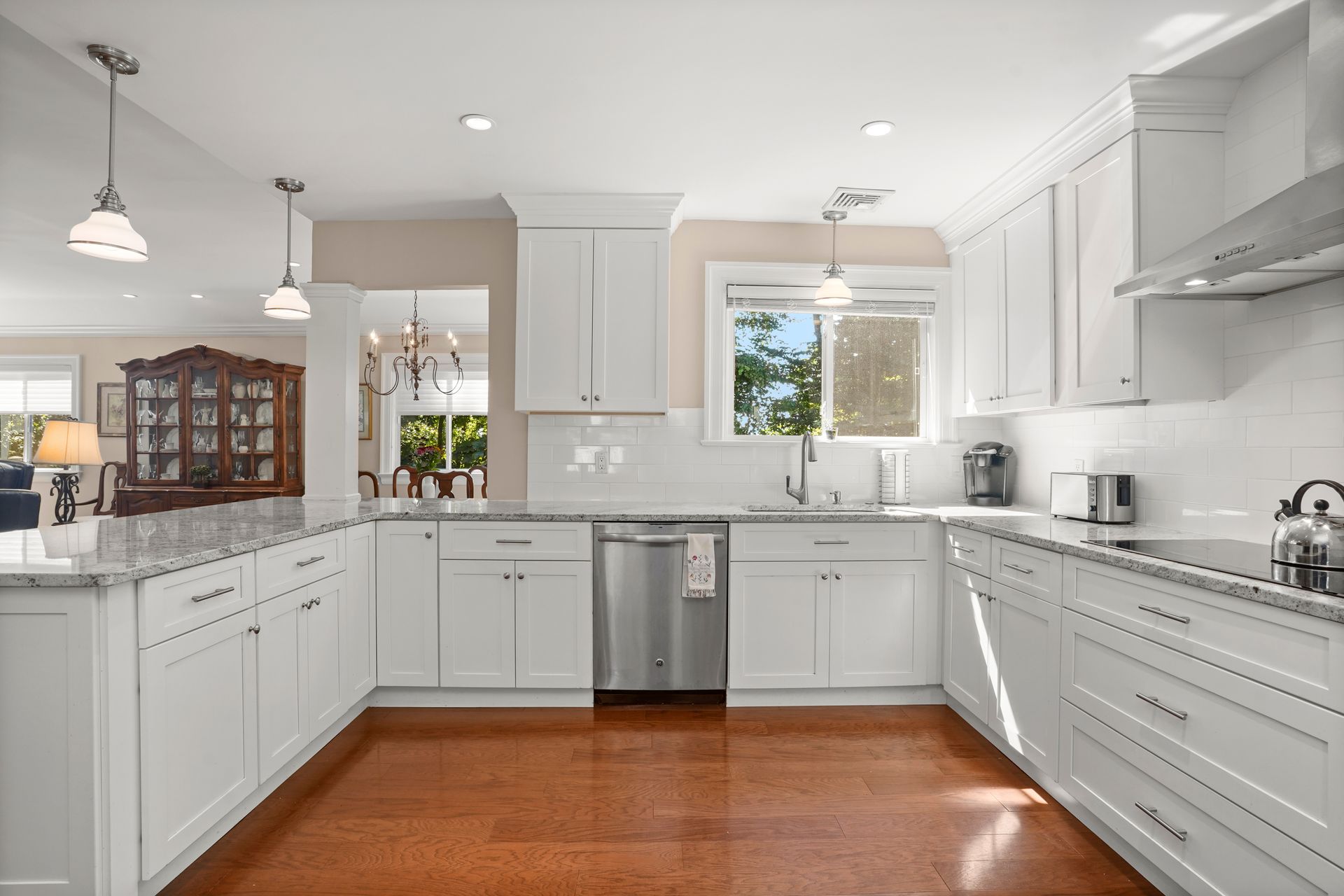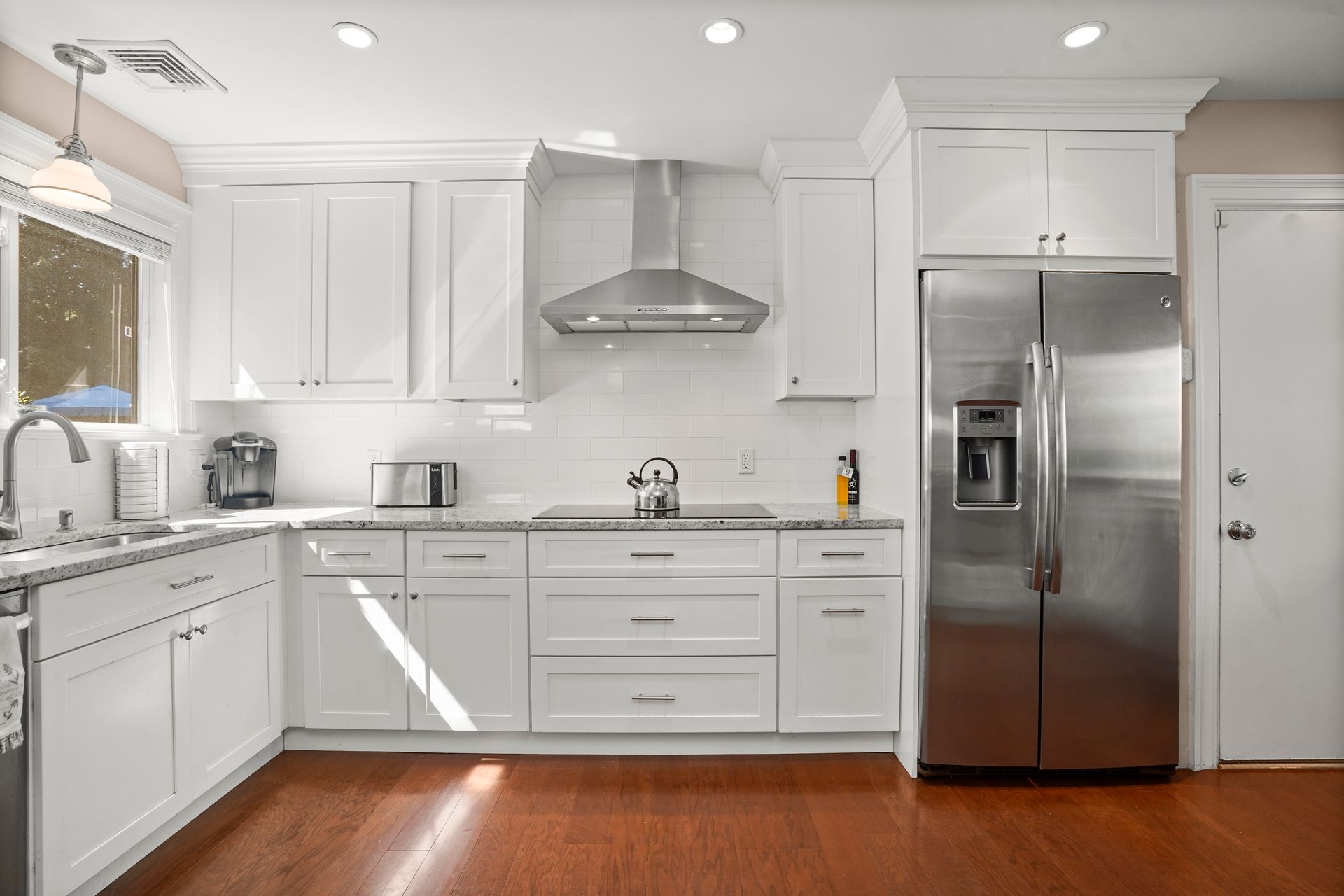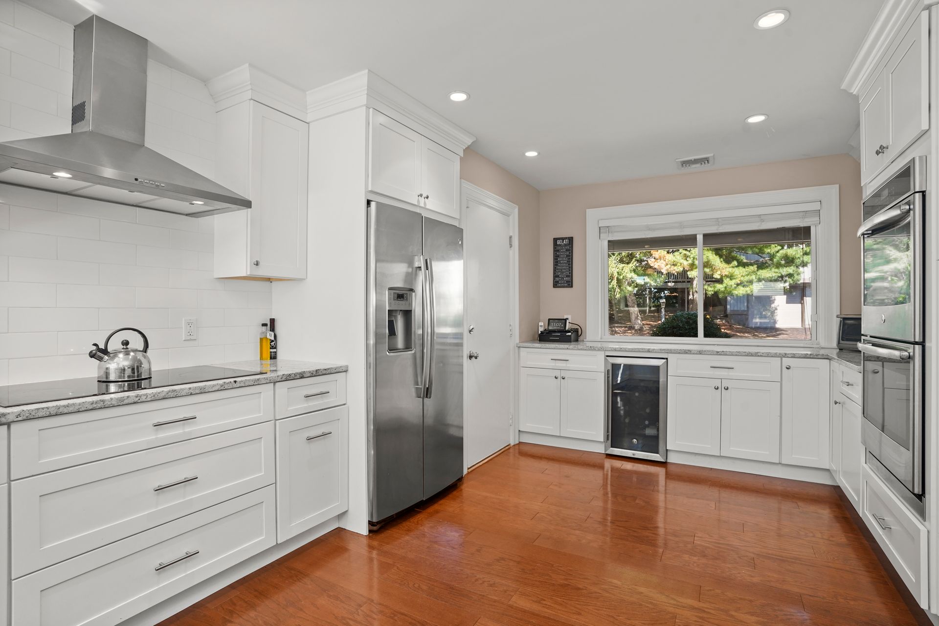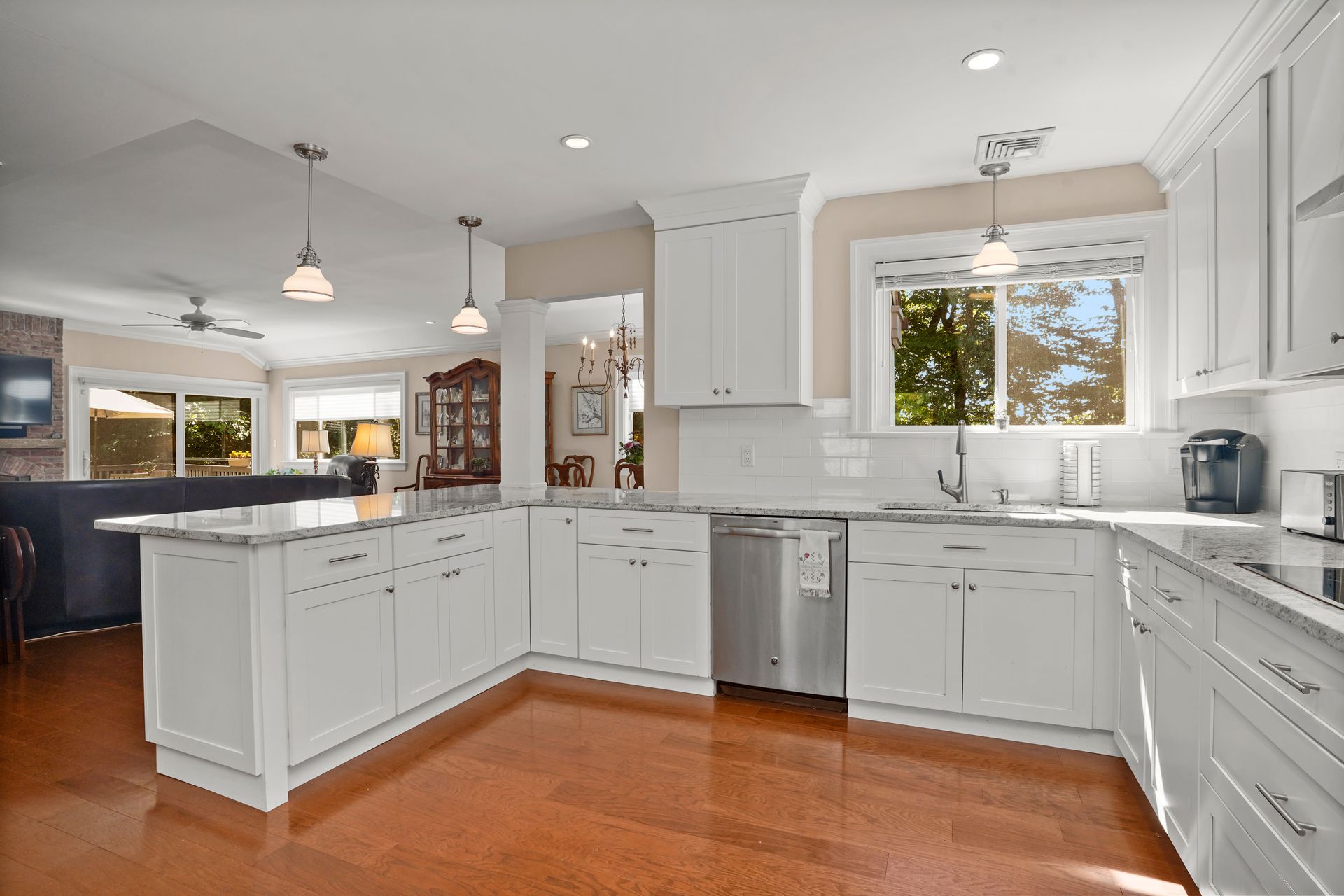 This property was FULLY RENOVATED from head to toe. OPEN FLOOR PLAN with granite peninsula for easy entertaining and gatherings. The custom Kitchen boasts stainless steel GE Profile appliances, double oven, wine cooler, subway tile back splash, and cabinetry and counter tops on four sides. Impressive WOOD FLOORS and recessed lighting throughout. The Primary suite boasts closets and full bath with beautiful full size walk-in shower. Additional Updates include: Custom Mill Work throughout, Ceiling Fans, Heat Pump, Smart Thermostat, new doors and windows, Gorgeous Barn Door to the laundry area, heated garage, legalized attic and radiant heated floors in the bathrooms. Two Sets of Sliding Glass Doors to a huge trex (2021) deck.