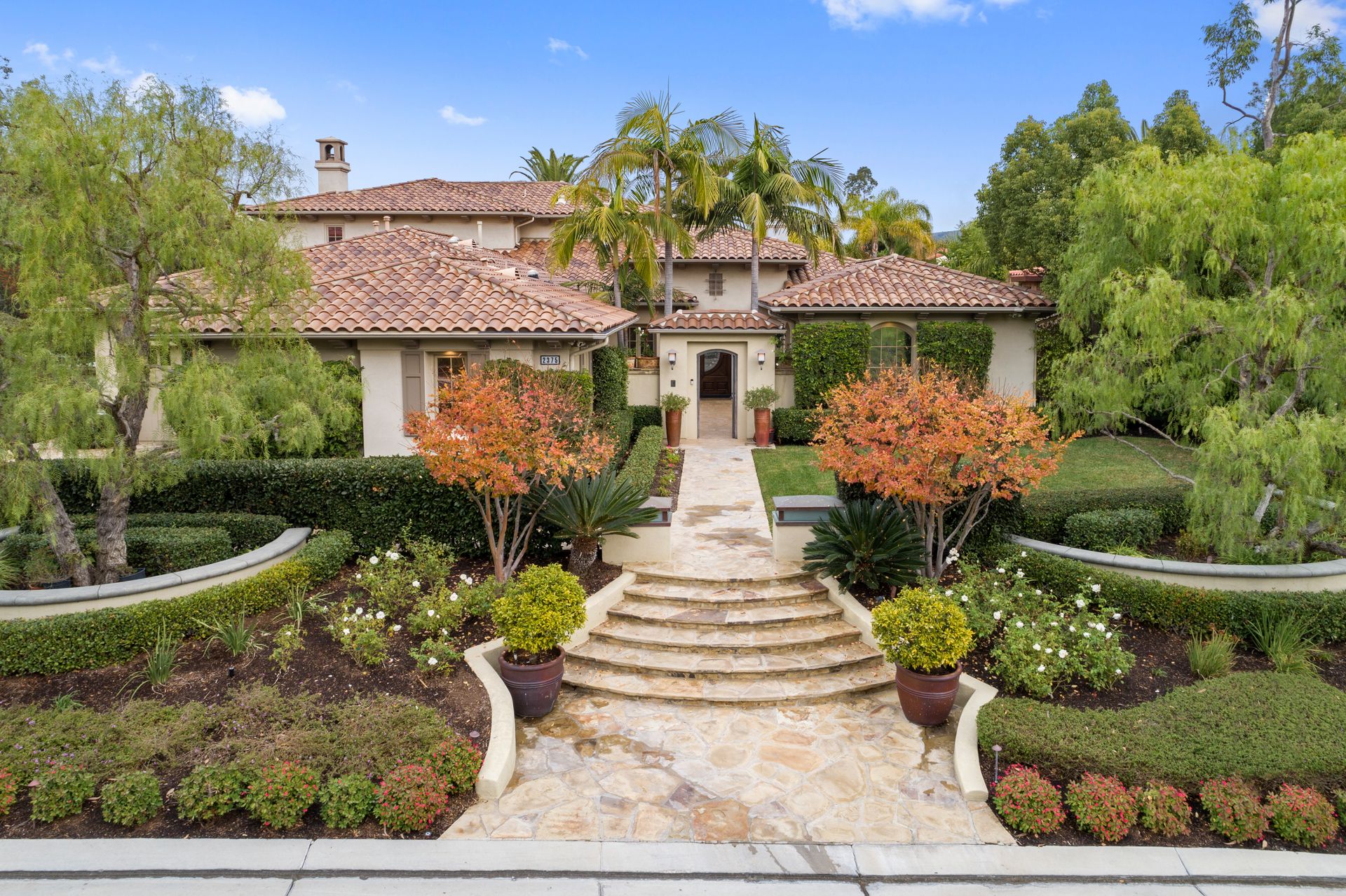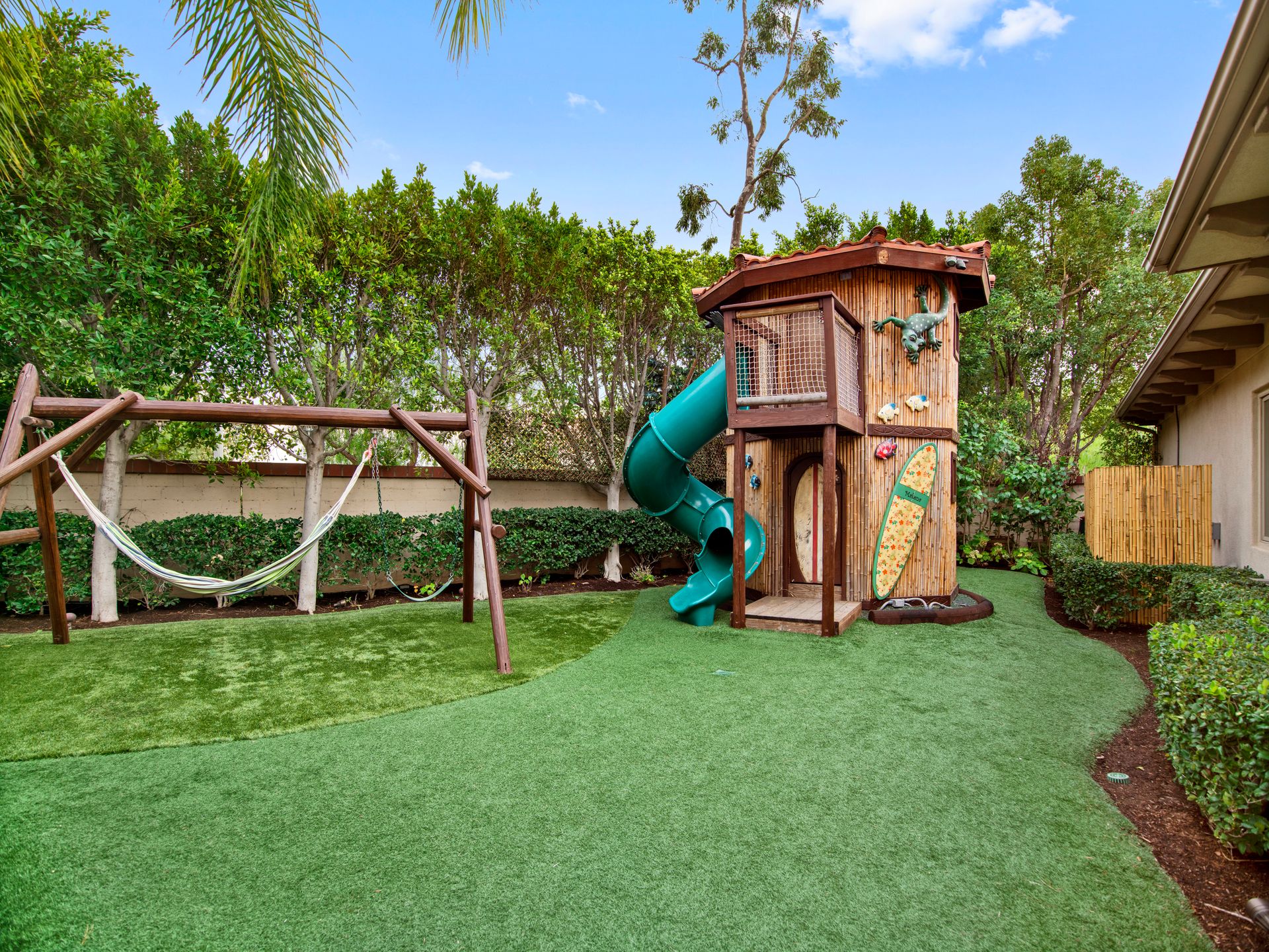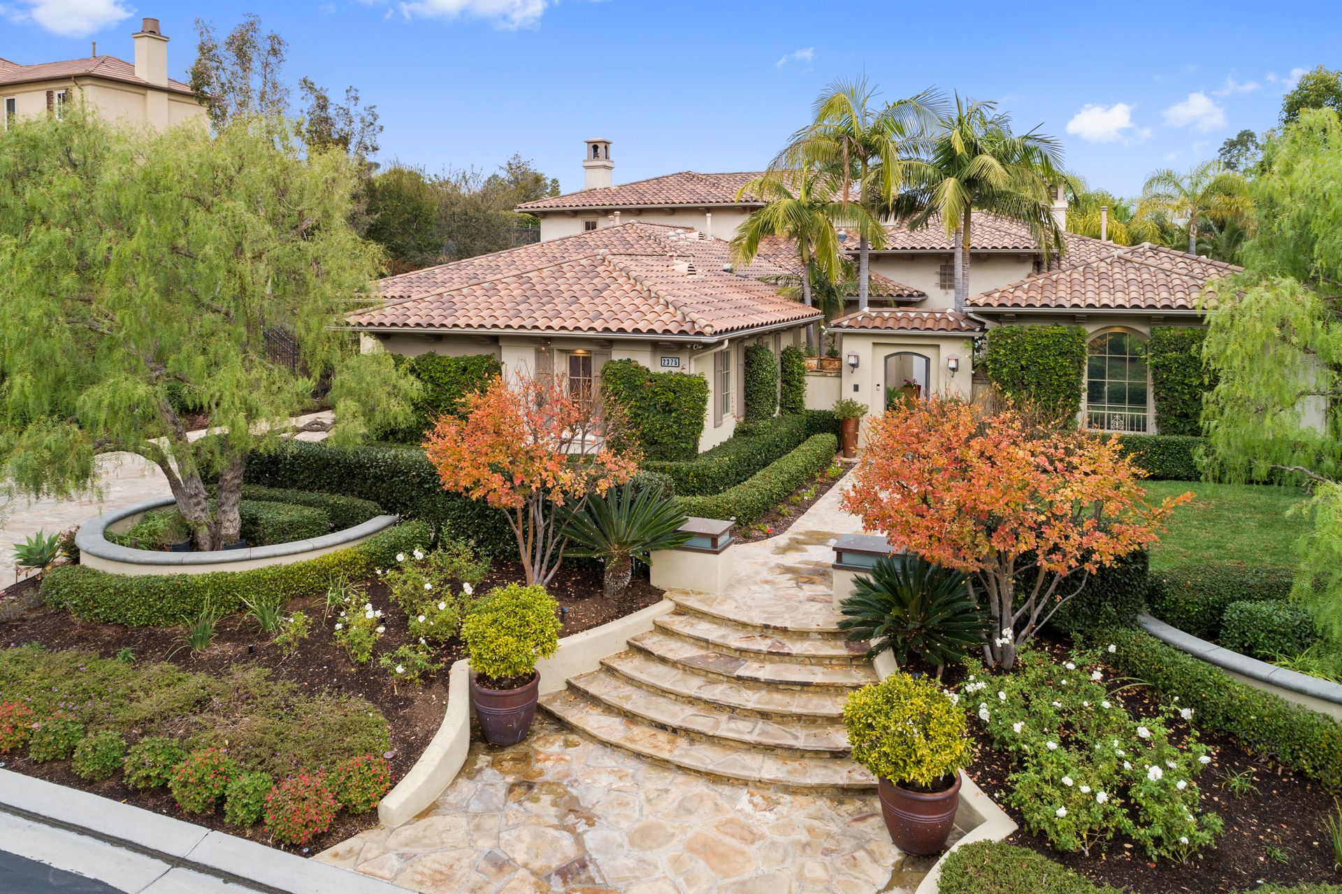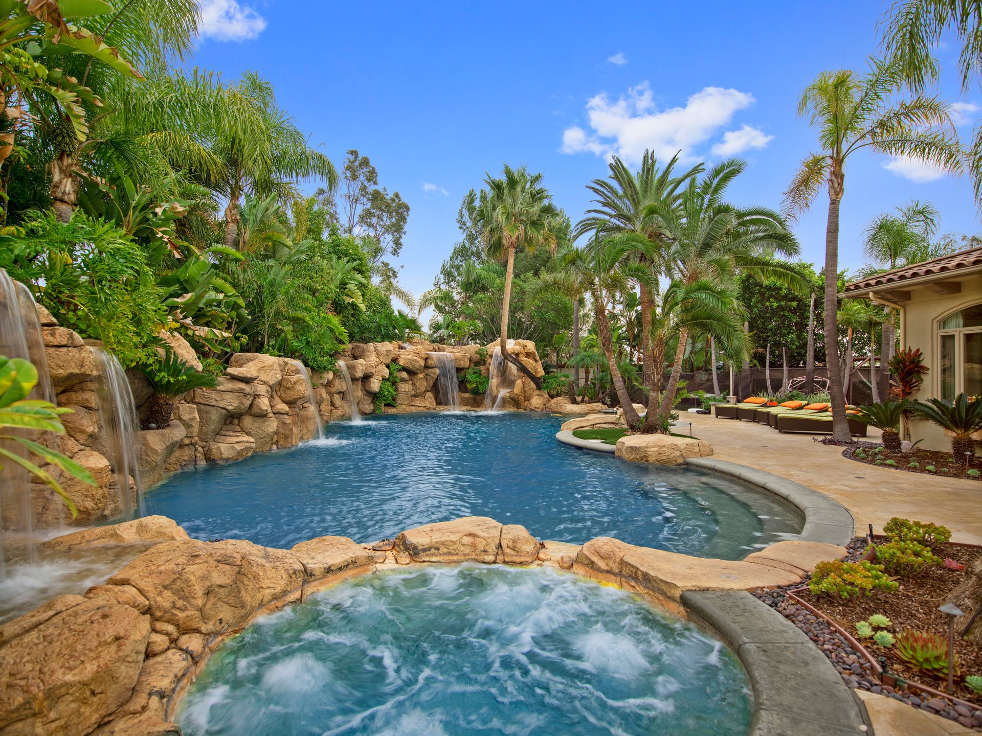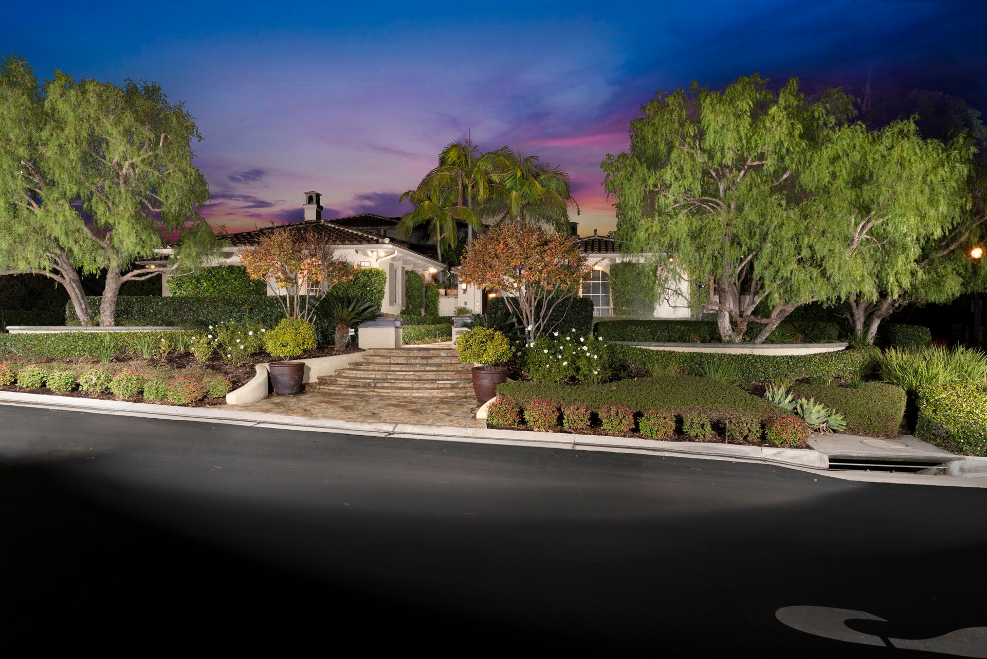 The crown jewel of Tustin Ranch Estates set atop an expansive 29,054 square foot corner lot, this slice of paradise exudes extravagance throughout! Rich in sophistication, this coastal contemporary sanctuary offers views of the spectacular backyard from every room. Chef-inspired kitchen & grand living space open to multiple entertaining areas, most notably an open-air lanai adorned w/Sapele wood ceilings & full custom bar offering unobstructed views through disappearing pocket glass doors that blend the home into its outdoor paradise of lush tropical gardens and cascading waterfalls. 4 bedrooms, including the master, are on the main level for a single-story feel, along w/ 4.5 baths, music room & office. 2nd-story great room offers panoramic views from adjacent viewing deck, plus 2 bedrooms and a full bath with a steam shower and dual towel warmers for the most discerning guests. Crafted as a seamless extension of the estate’s natural surroundings, every inch of outdoor space is complemented by lavish amenities, including mature Canary Island palms, private grotto, thatched-roof palapa bar, outdoor kitchen & fireplace, cavernous waterfalls, salt water pool & spa, 20-ft slide, sunning deck & charming child’s treehouse. This home’s desirable corner location and masterful resort-style craftsmanship make this a rare opportunity to purchase your own piece of paradise in the highly sought after, guard-gated community of Tustin Ranch Estates.