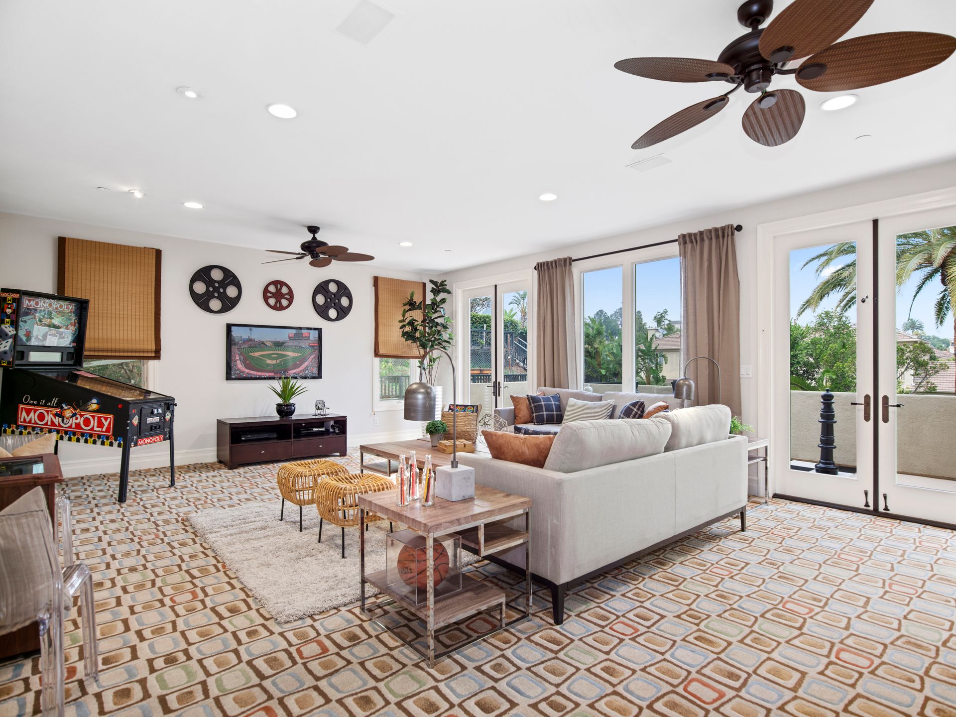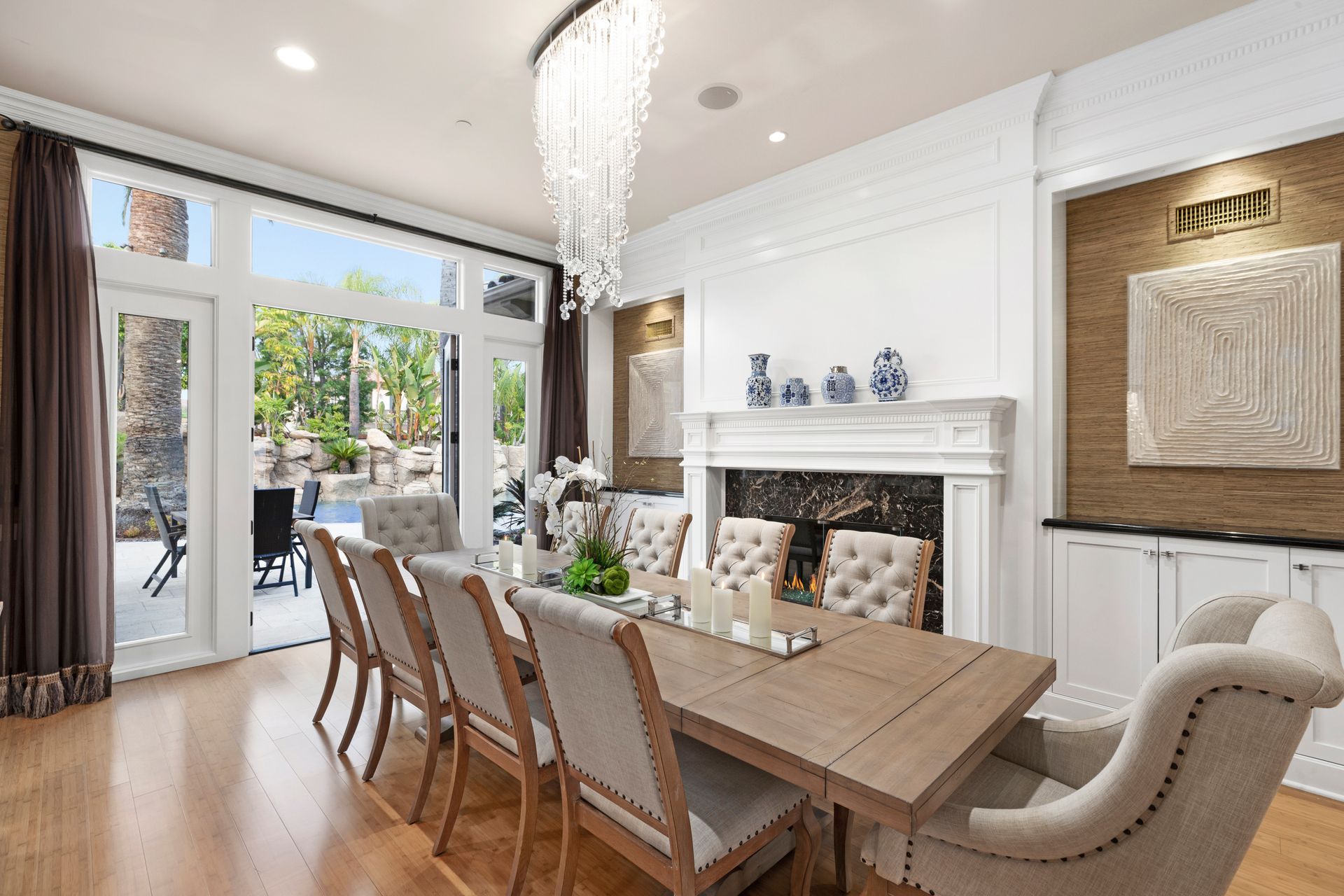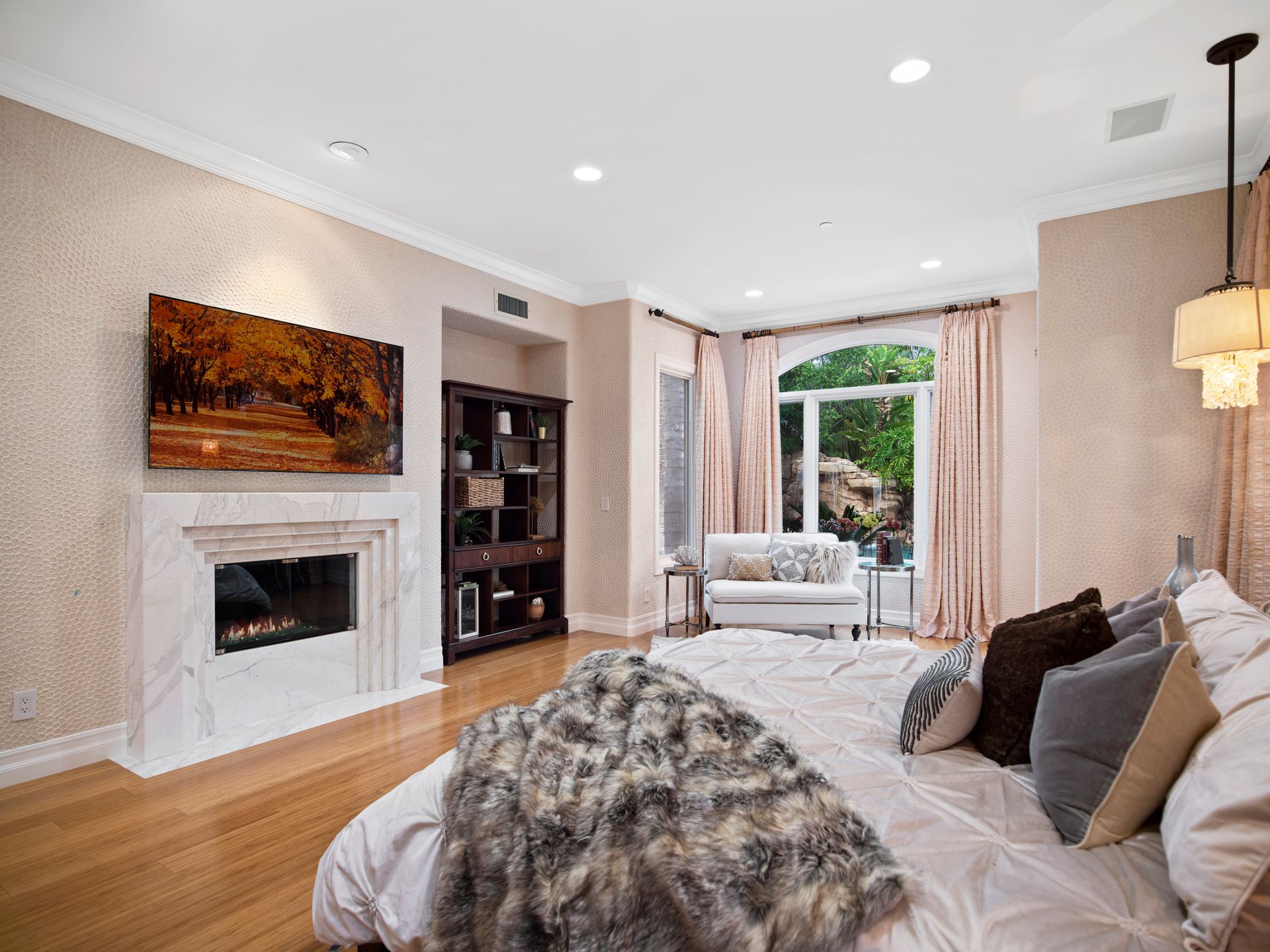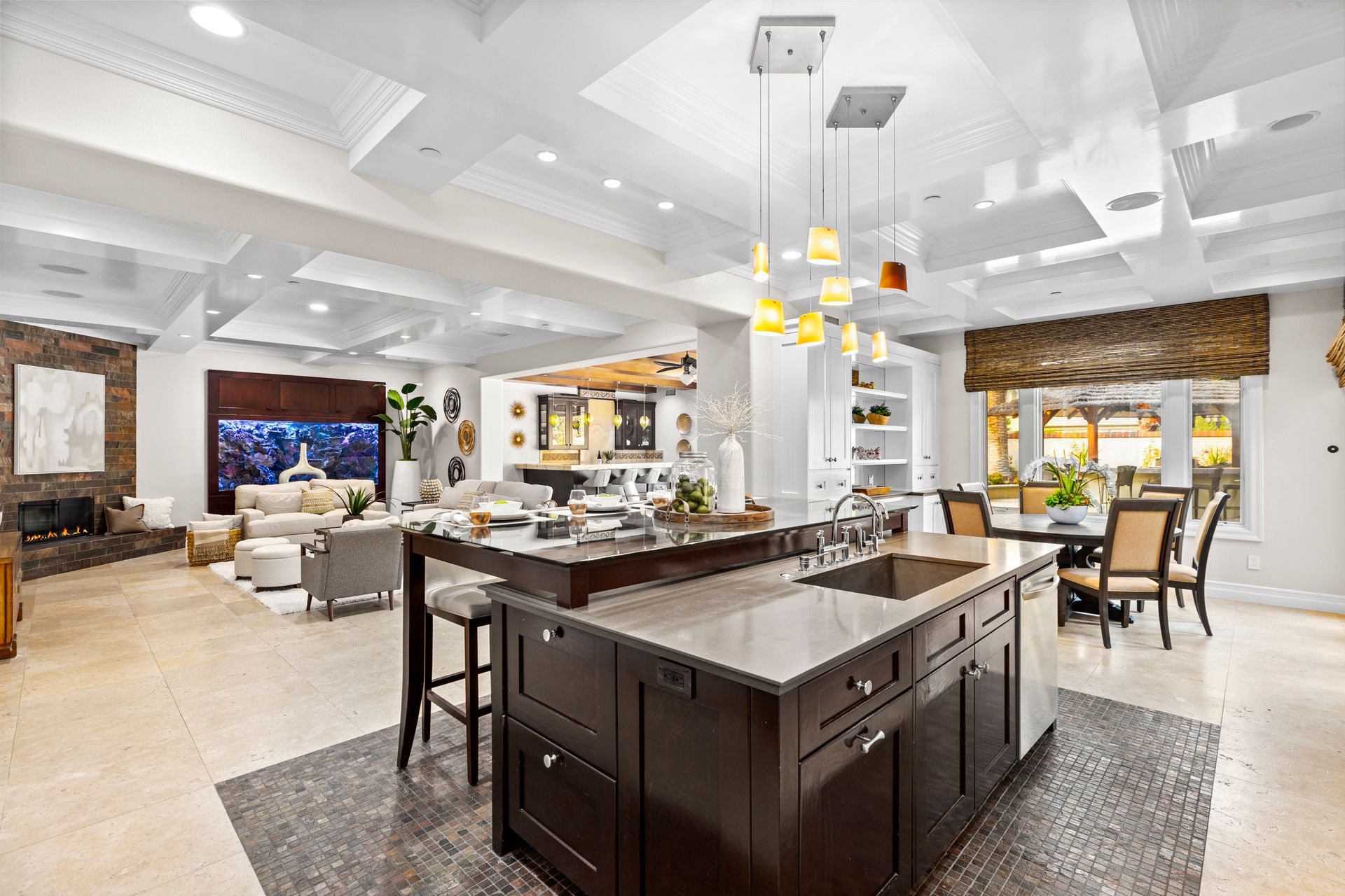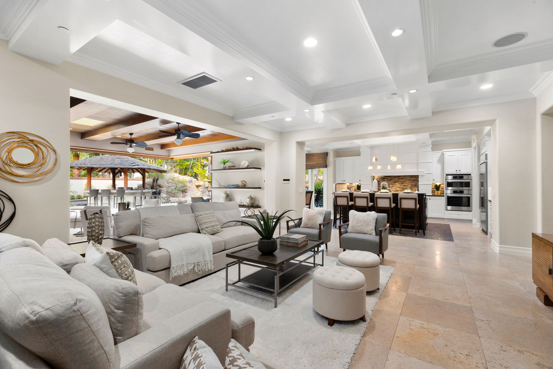 The crown jewel of Tustin Ranch Estates set atop an expansive 29,054 square foot corner lot, this slice of paradise exudes extravagance throughout! Rich in sophistication, this coastal contemporary sanctuary offers views of the spectacular backyard from every room. Chef-inspired kitchen & grand living space open to multiple entertaining areas, most notably an open-air lanai adorned w/Sapele wood ceilings & full custom bar offering unobstructed views through disappearing pocket glass doors that blend the home into its outdoor paradise of lush tropical gardens and cascading waterfalls. 4 bedrooms, including the master, are on the main level for a single-story feel, along w/ 4.5 baths, music room & office. 2nd-story great room offers panoramic views from adjacent viewing deck, plus 2 bedrooms and a full bath with a steam shower and dual towel warmers for the most discerning guests. Crafted as a seamless extension of the estate’s natural surroundings, every inch of outdoor space is complemented by lavish amenities, including mature Canary Island palms, private grotto, thatched-roof palapa bar, outdoor kitchen & fireplace, cavernous waterfalls, salt water pool & spa, 20-ft slide, sunning deck & charming child’s treehouse. This home’s desirable corner location and masterful resort-style craftsmanship make this a rare opportunity to purchase your own piece of paradise in the highly sought after, guard-gated community of Tustin Ranch Estates.