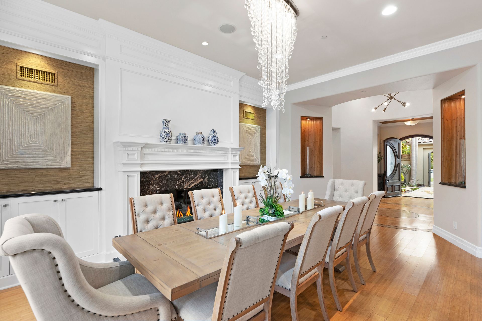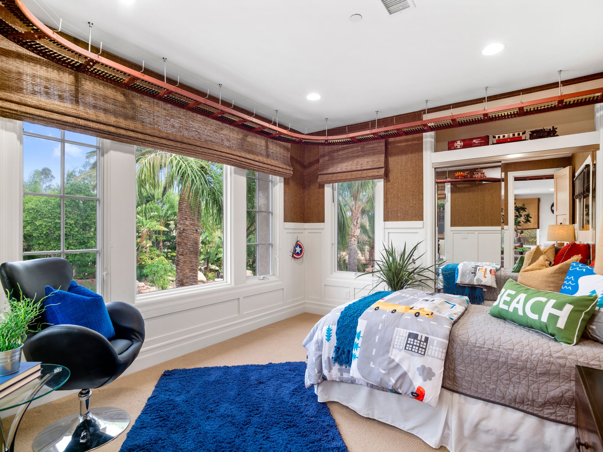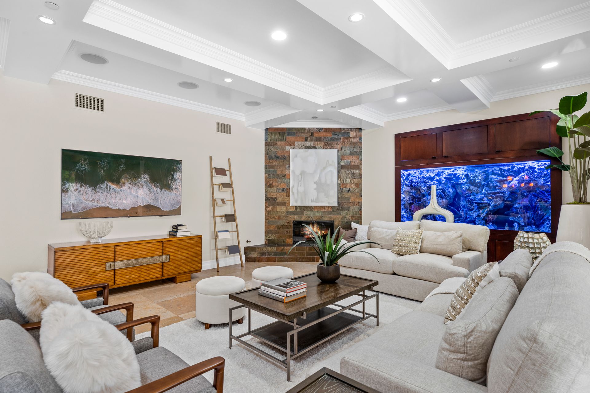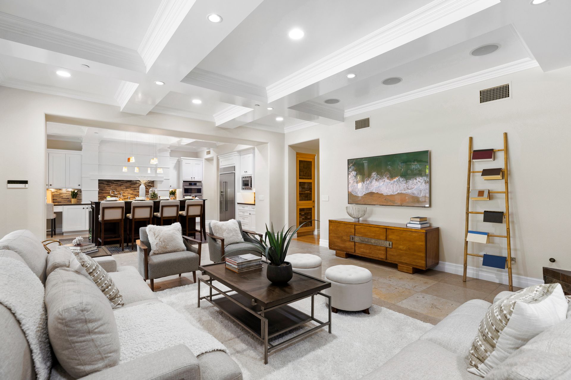 The crown jewel of Tustin Ranch Estates set atop an expansive 29,054 square foot corner lot, this slice of paradise exudes extravagance throughout! Rich in sophistication, this coastal contemporary sanctuary offers views of the spectacular backyard from every room. Chef-inspired kitchen & grand living space open to multiple entertaining areas, most notably an open-air lanai adorned w/Sapele wood ceilings & full custom bar offering unobstructed views through disappearing pocket glass doors that blend the home into its outdoor paradise of lush tropical gardens and cascading waterfalls. 4 bedrooms, including the master, are on the main level for a single-story feel, along w/ 4.5 baths, music room & office. 2nd-story great room offers panoramic views from adjacent viewing deck, plus 2 bedrooms and a full bath with a steam shower and dual towel warmers for the most discerning guests. Crafted as a seamless extension of the estate’s natural surroundings, every inch of outdoor space is complemented by lavish amenities, including mature Canary Island palms, private grotto, thatched-roof palapa bar, outdoor kitchen & fireplace, cavernous waterfalls, salt water pool & spa, 20-ft slide, sunning deck & charming child’s treehouse. This home’s desirable corner location and masterful resort-style craftsmanship make this a rare opportunity to purchase your own piece of paradise in the highly sought after, guard-gated community of Tustin Ranch Estates.