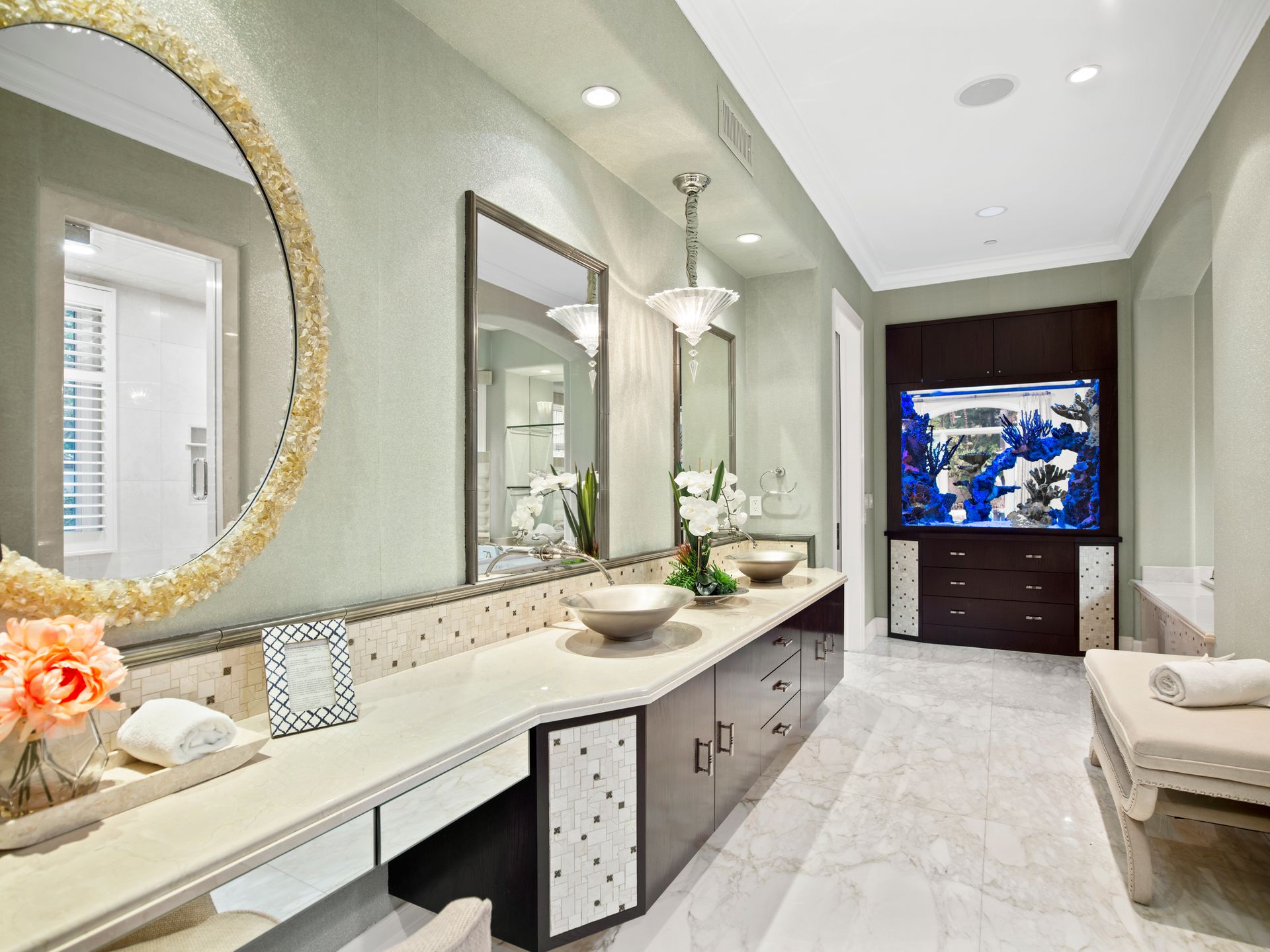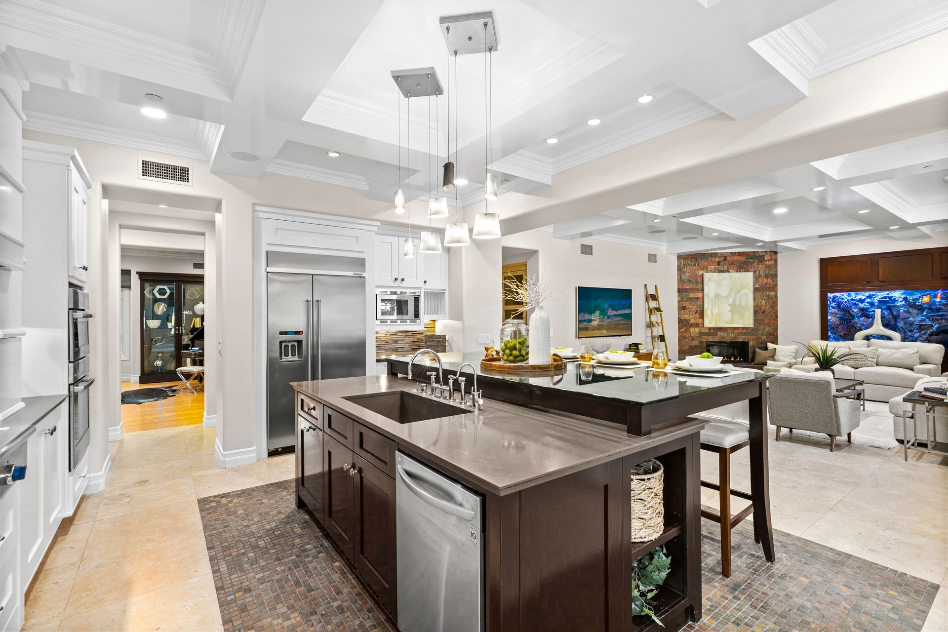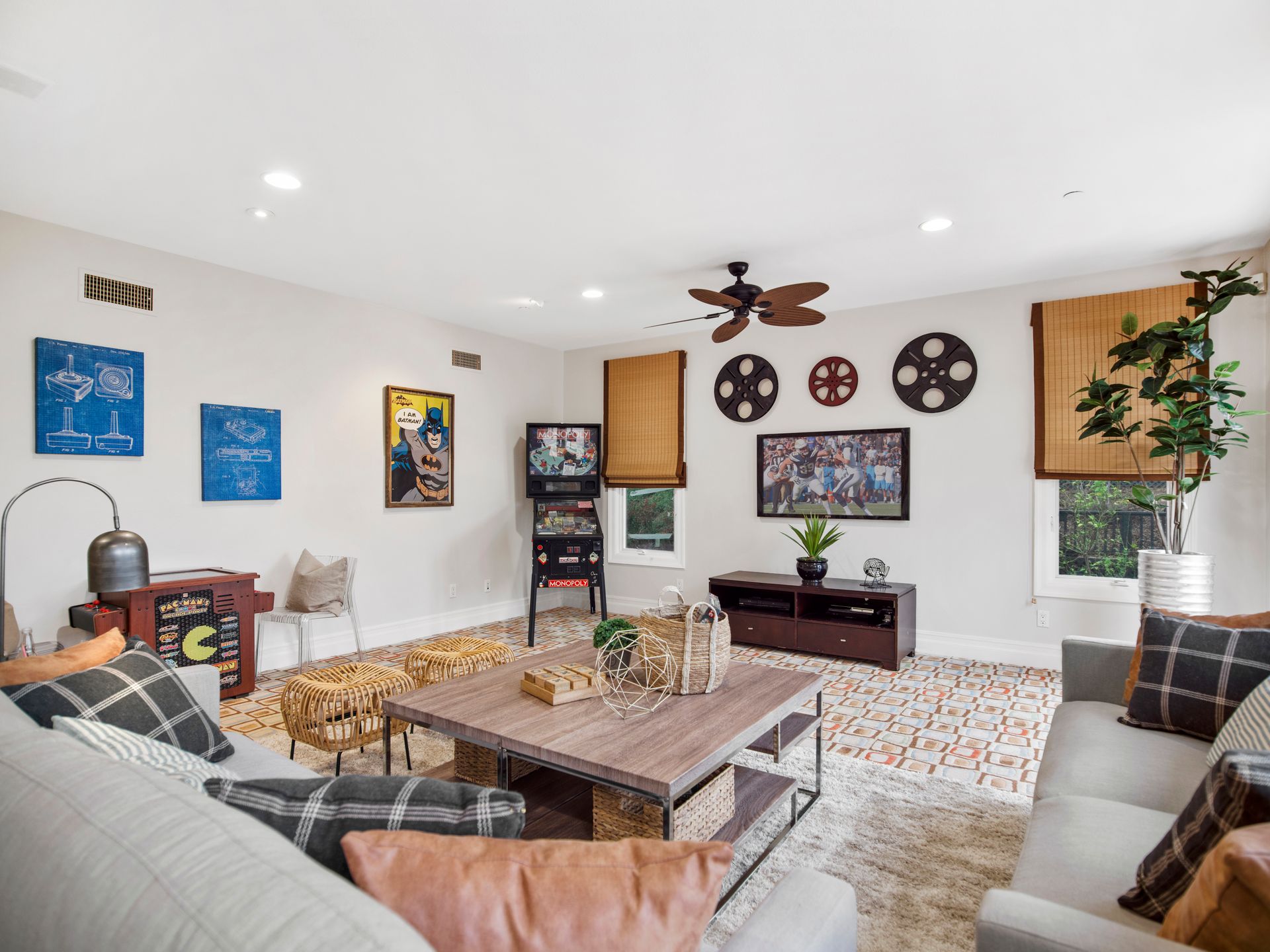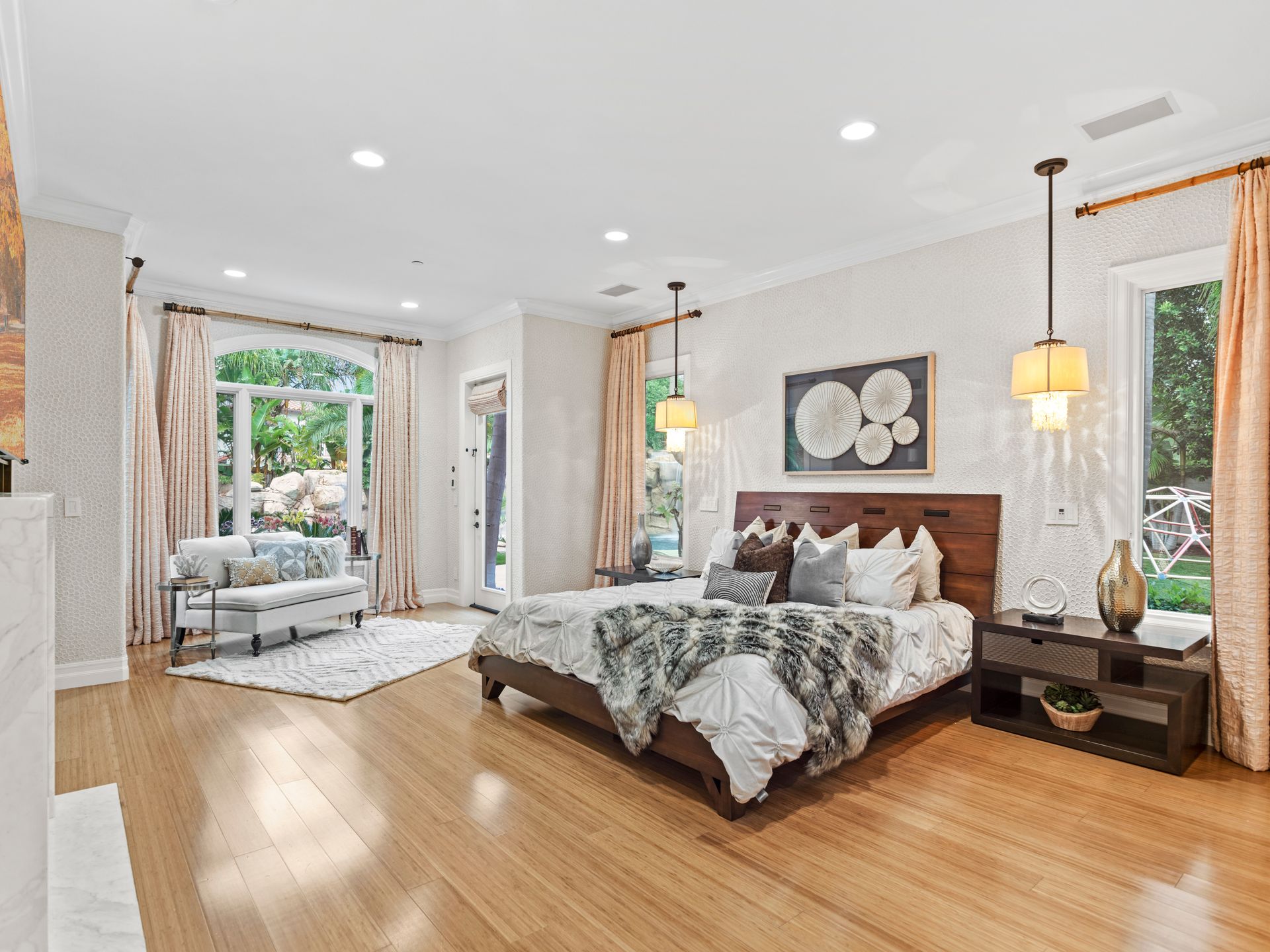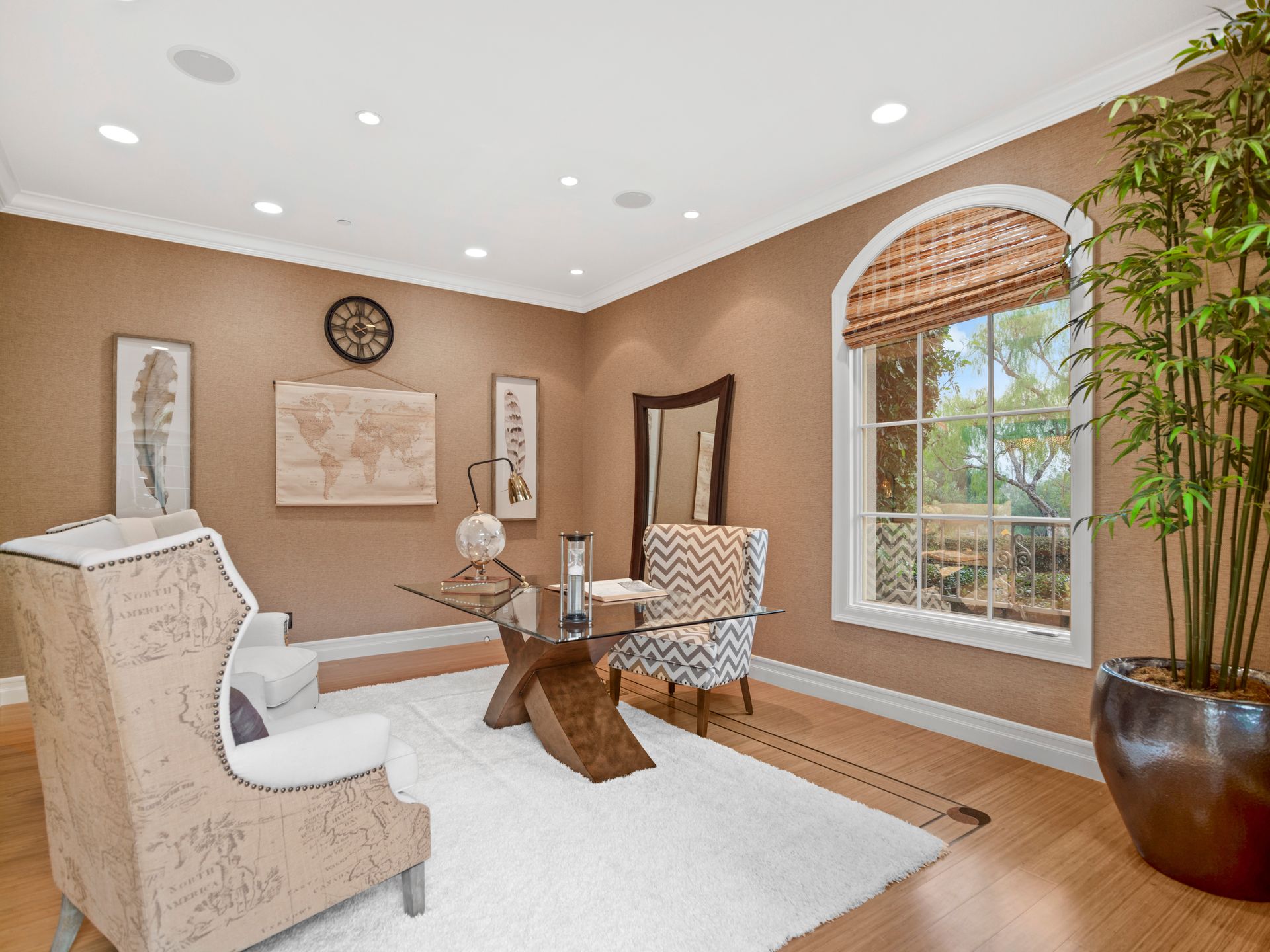 The crown jewel of Tustin Ranch Estates set atop an expansive 29,054 square foot corner lot, this slice of paradise exudes extravagance throughout! Rich in sophistication, this coastal contemporary sanctuary offers views of the spectacular backyard from every room. Chef-inspired kitchen & grand living space open to multiple entertaining areas, most notably an open-air lanai adorned w/Sapele wood ceilings & full custom bar offering unobstructed views through disappearing pocket glass doors that blend the home into its outdoor paradise of lush tropical gardens and cascading waterfalls. 4 bedrooms, including the master, are on the main level for a single-story feel, along w/ 4.5 baths, music room & office. 2nd-story great room offers panoramic views from adjacent viewing deck, plus 2 bedrooms and a full bath with a steam shower and dual towel warmers for the most discerning guests. Crafted as a seamless extension of the estate’s natural surroundings, every inch of outdoor space is complemented by lavish amenities, including mature Canary Island palms, private grotto, thatched-roof palapa bar, outdoor kitchen & fireplace, cavernous waterfalls, salt water pool & spa, 20-ft slide, sunning deck & charming child’s treehouse. This home’s desirable corner location and masterful resort-style craftsmanship make this a rare opportunity to purchase your own piece of paradise in the highly sought after, guard-gated community of Tustin Ranch Estates.