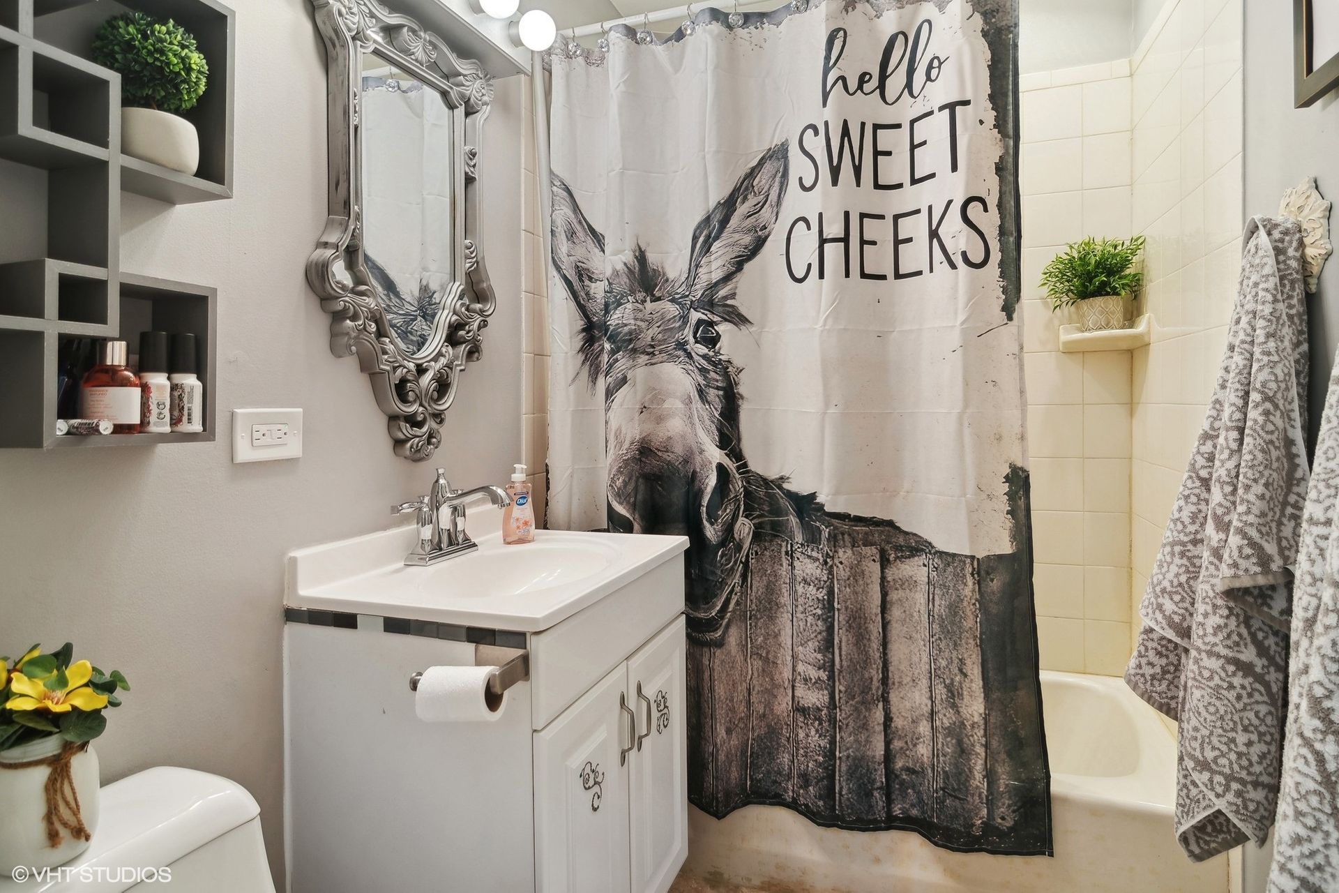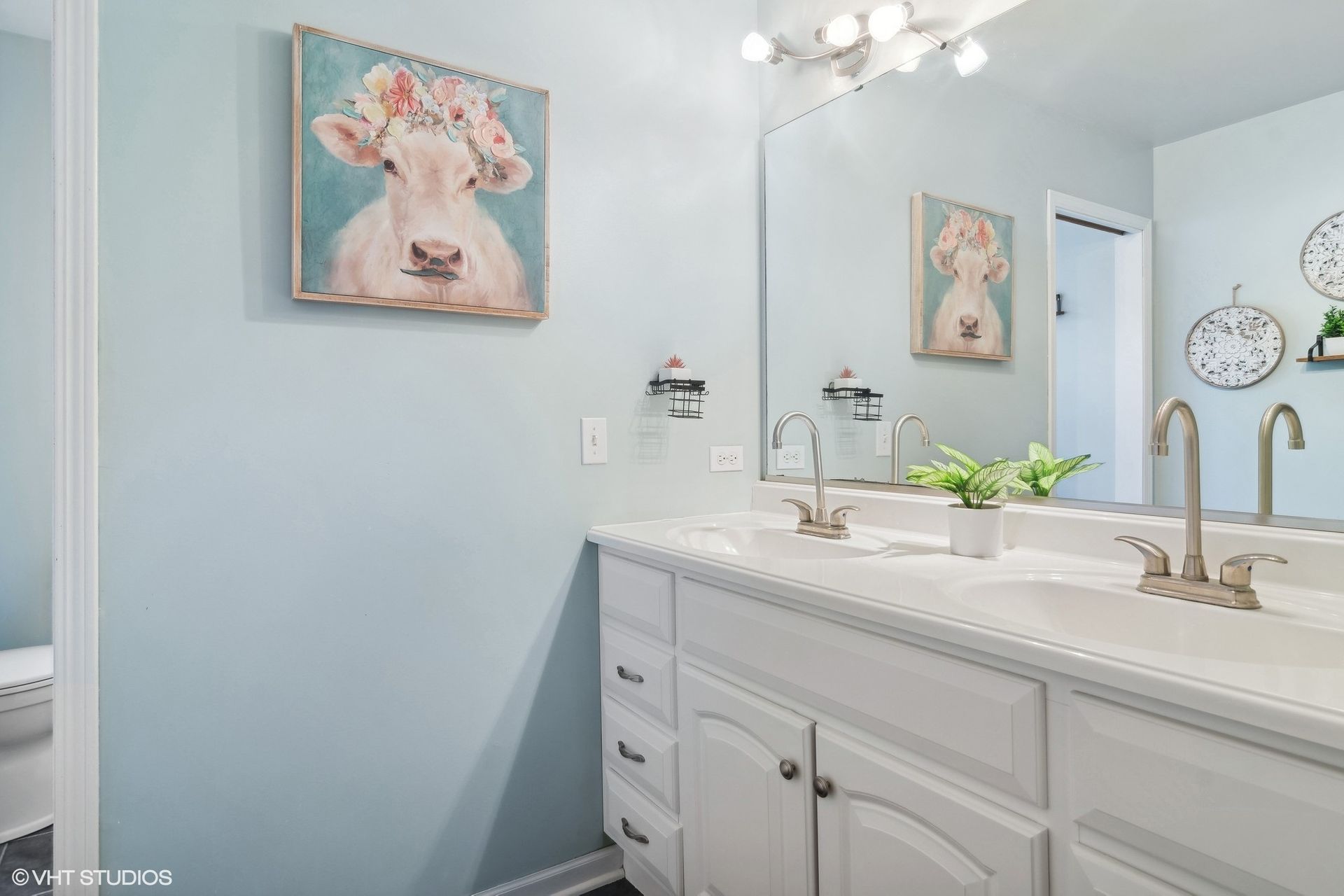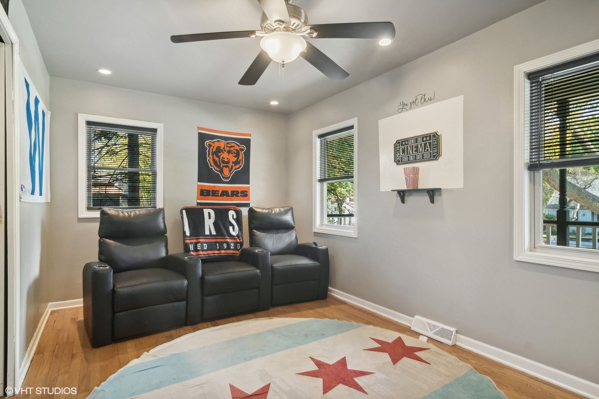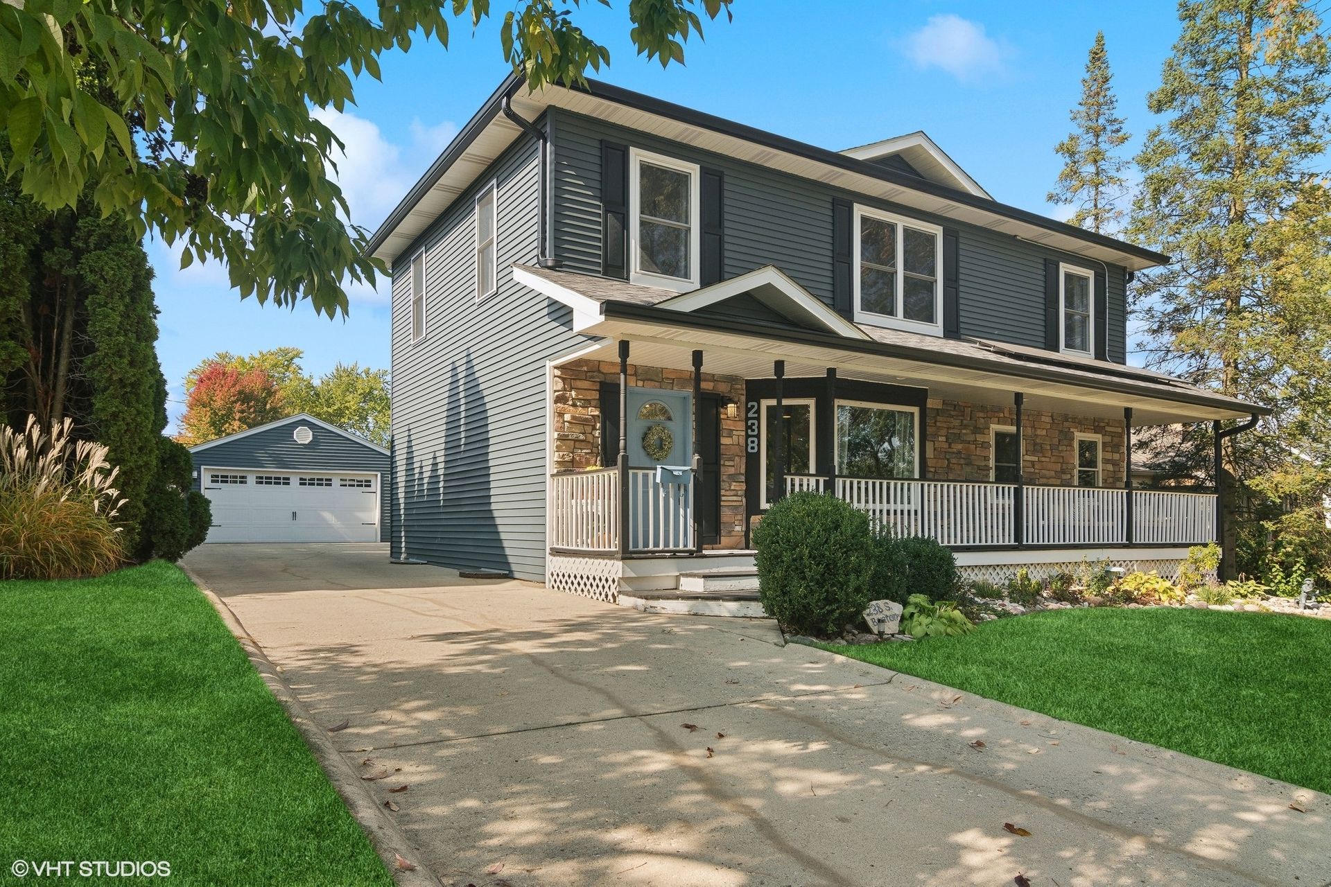 The three full bathrooms are fitted with modern fixtures and finishes. The half-bathroom provides additional convenience.