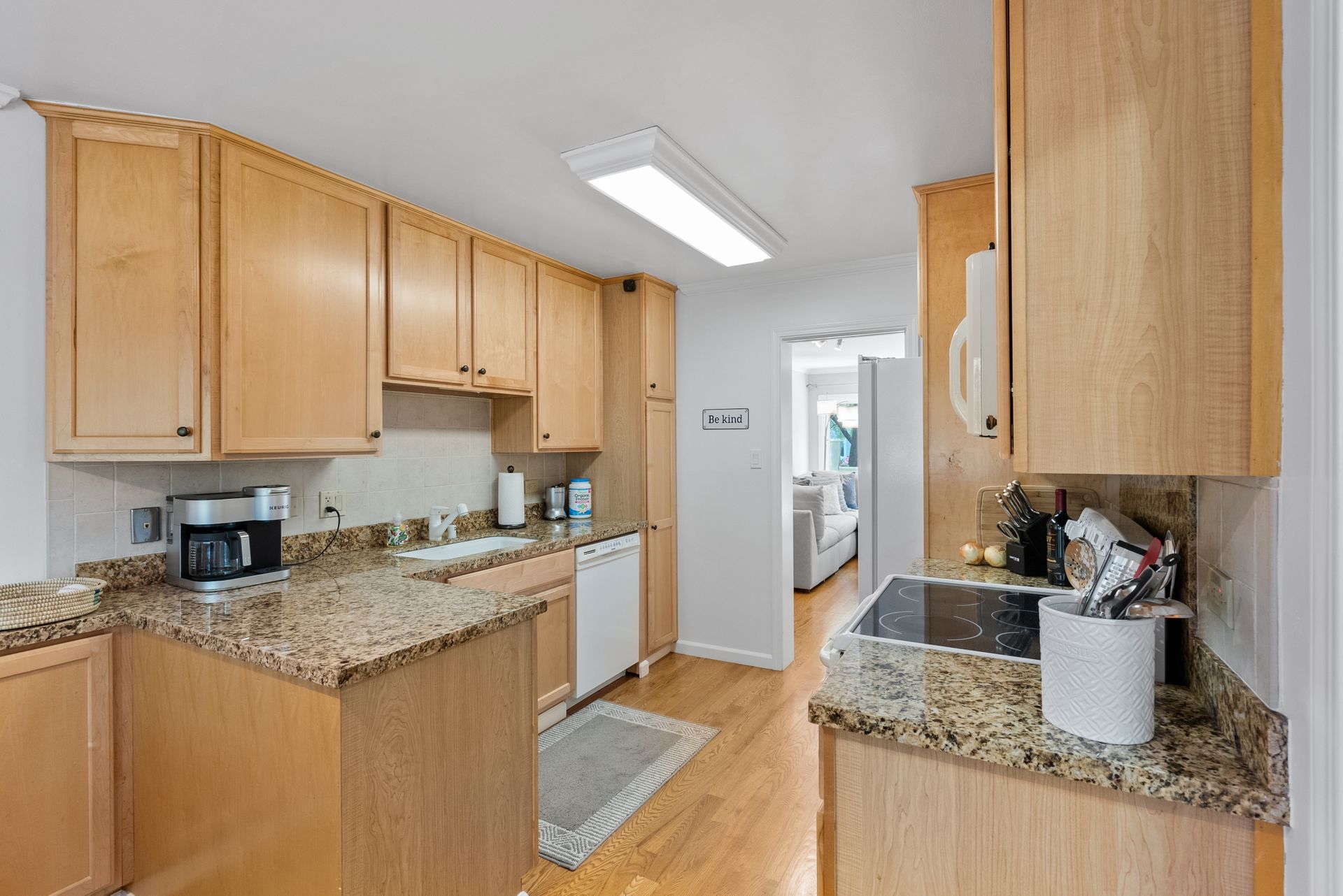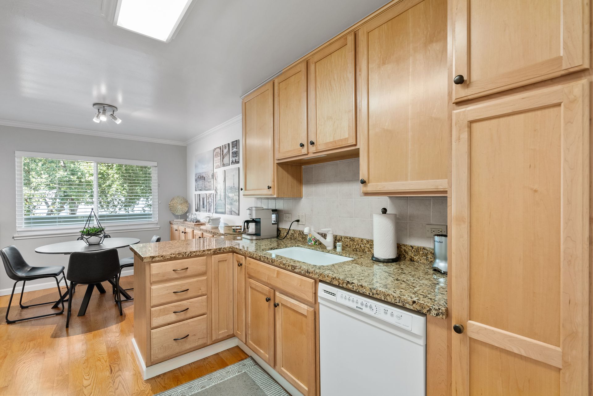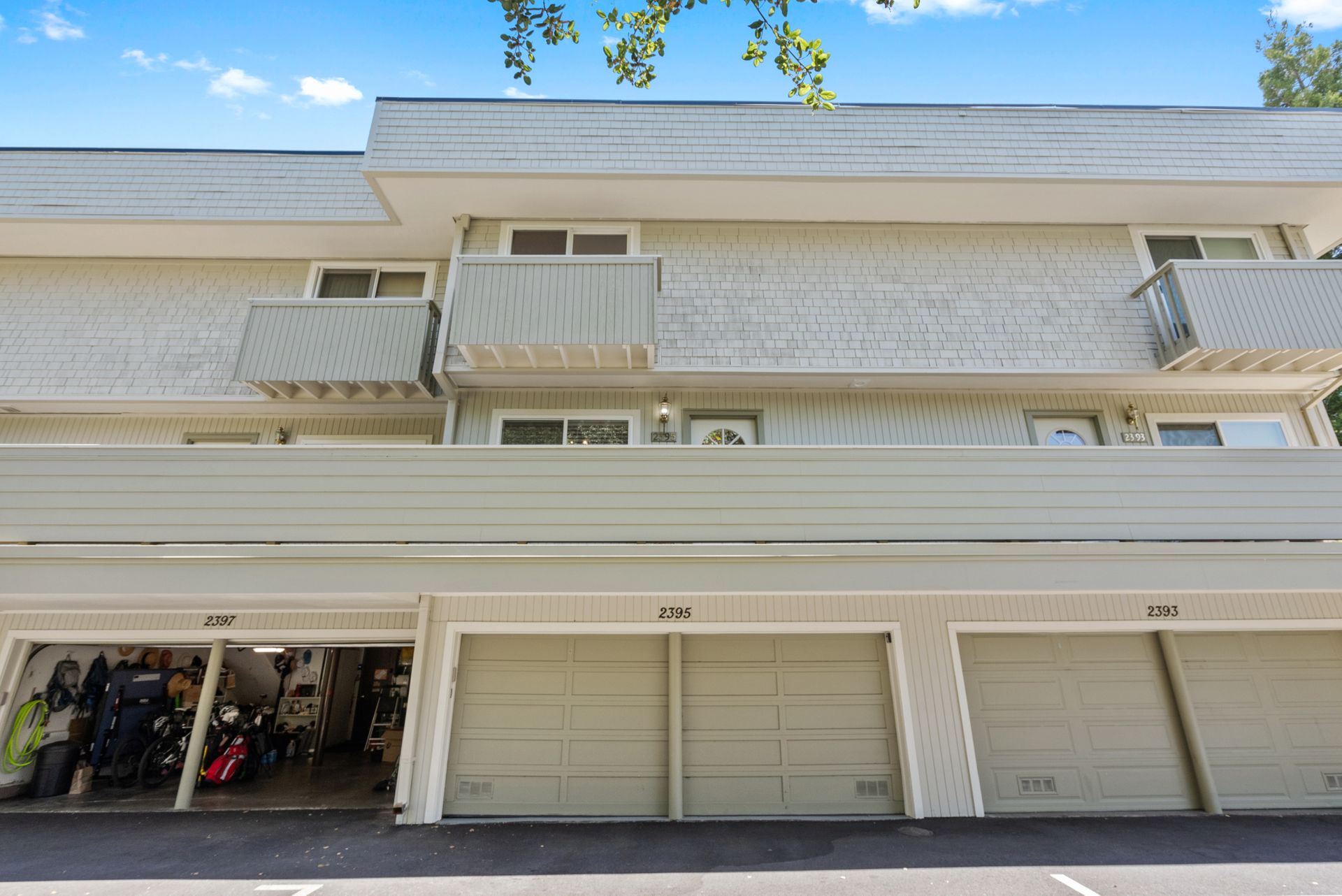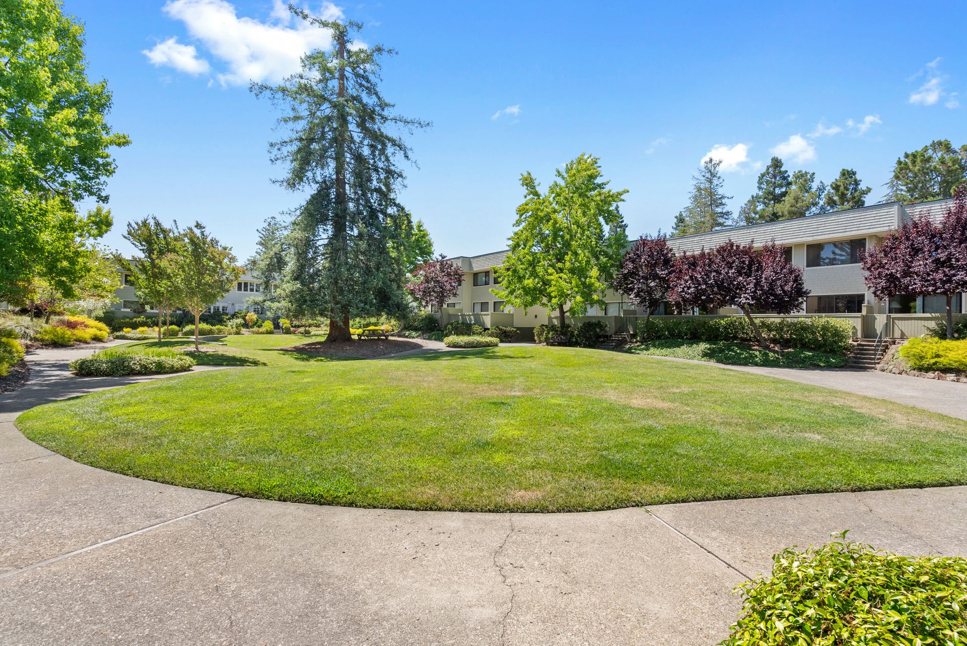 Welcome to this spacious, sunny and charming townhome in the sought-after Sharon Heights neighborhood of Menlo Park. This fabulous floorplan features 3 bedrooms and 2.5 bathrooms and flows flawlessly between each level. The ground level features a tidy, well-maintained, attached 2-car garage that hosts a laundry area with washer and dryer and an additional bonus room, perfect for an exercise studio or extra storage space. Up the steps, the main living level can be accessed directly from the garage or through an exterior stairway leading to the main level balcony and front door. A cheery atmosphere greets you as you step inside this warm and welcoming home adorned with rich hardwood floors, crown molding and classic elegance. An extra deep utility closet and half bath are conveniently located on the main level. The inviting kitchen hosts copious maple cabinetry, granite counters, Kenmore appliances, a large pantry cupboard, a spacious eat-in area and a fantastic peninsula feature, dividing the cooking area from the eat-in nook and providing a perfect serving space for meals and entertaining. The kitchen connects to the spacious living room lined in glass patio doors leading out to a large lounging deck and flooding the space with natural light and a lush backdrop of greenery. The elongated patio off the living room offers its own private access gate down a few steps to bask in the serenity of the grass lounging and picnic area.