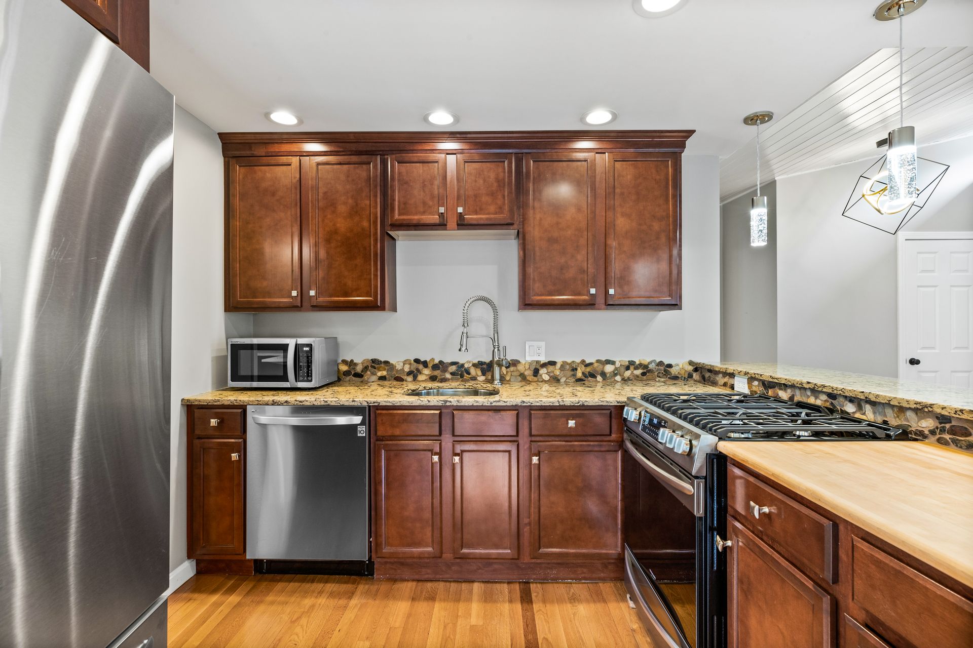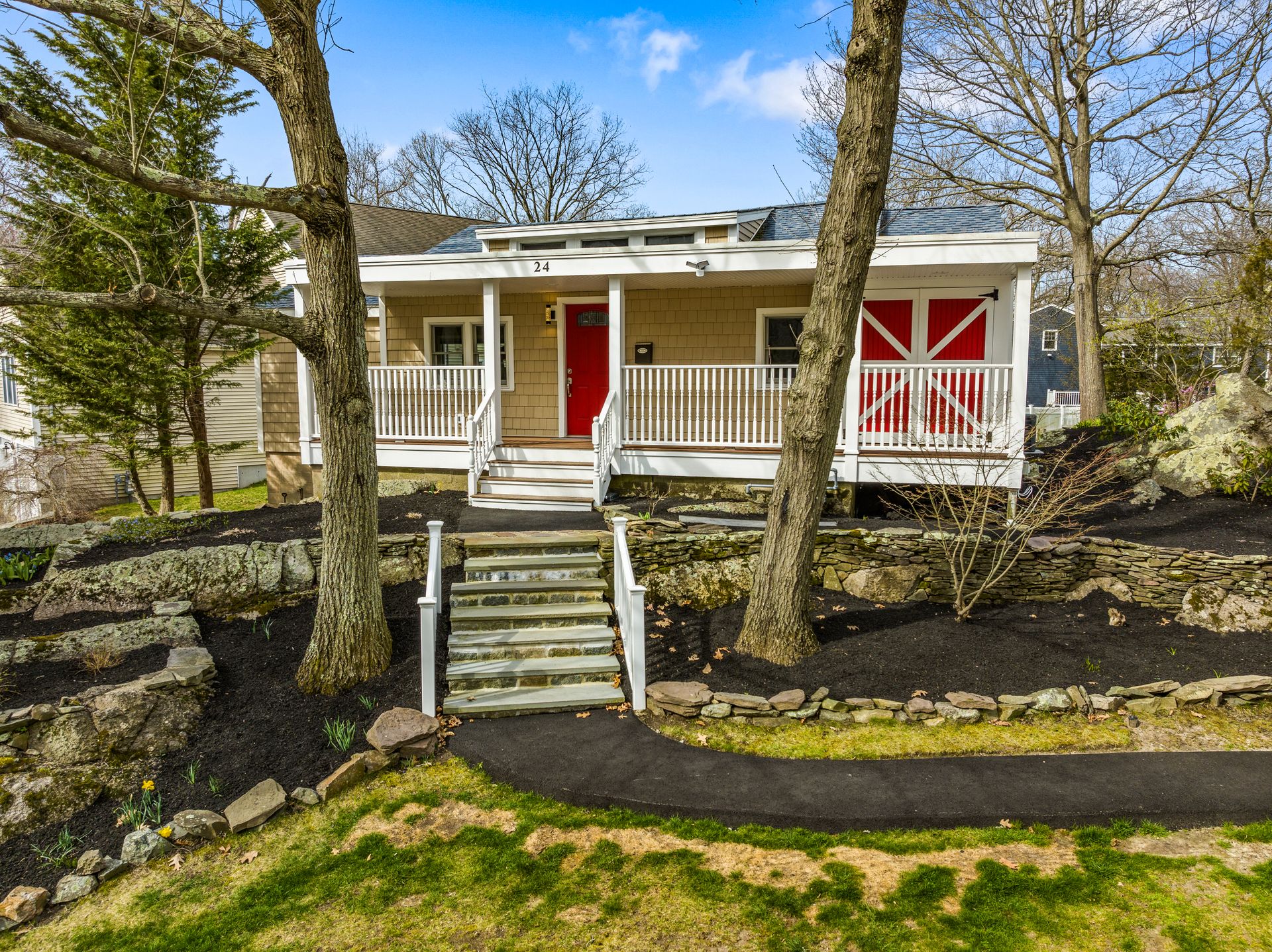 Fabulous opportunity to live in the highly sought after Crowes Point neighborhood close to beaches, marina, shopping, dining, commuter boat and more! This home features an open-concept layout with the benefit of single floor living. Central kitchen is open to eating and dining areas ideal for hosting. A generous primary suite with walk-in closet, barn door and shiplap - Second bedroom boasts built-ins - additional room for home office option for those working remote. Back Trex deck with gas feed awaits your barbecue and the circular patio just perfect for a fire pit to savor those lazy summer days. This property has had many upgrades and additions (previously gutted to the studs) and is nestled among higher priced homes. Sun lit throughout, gleaming hardwood floors, stainless steel appliances, central air conditioning, plenty of closet space, walk-in pantry and laundry efficiently located off kitchen, unfinished basement with storage shelves and professional landscaping.