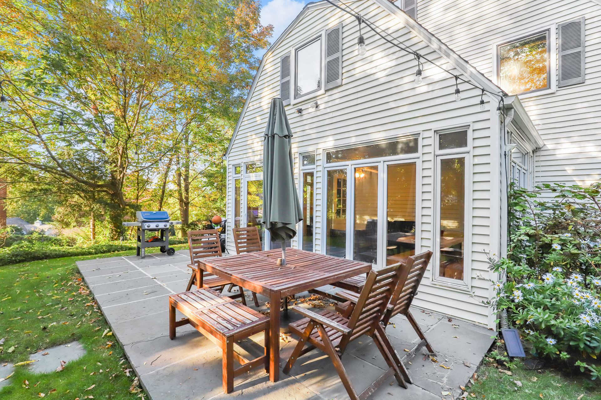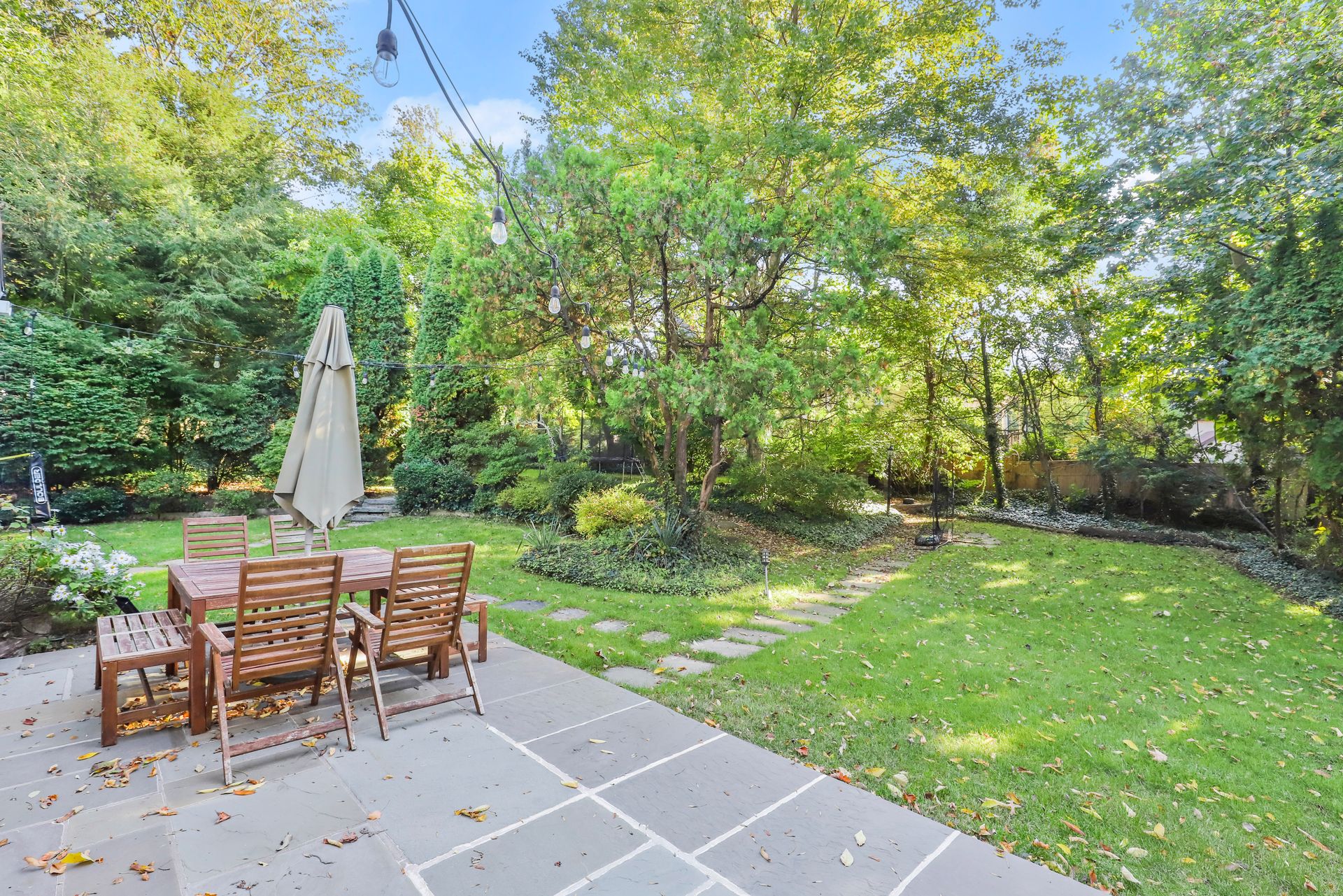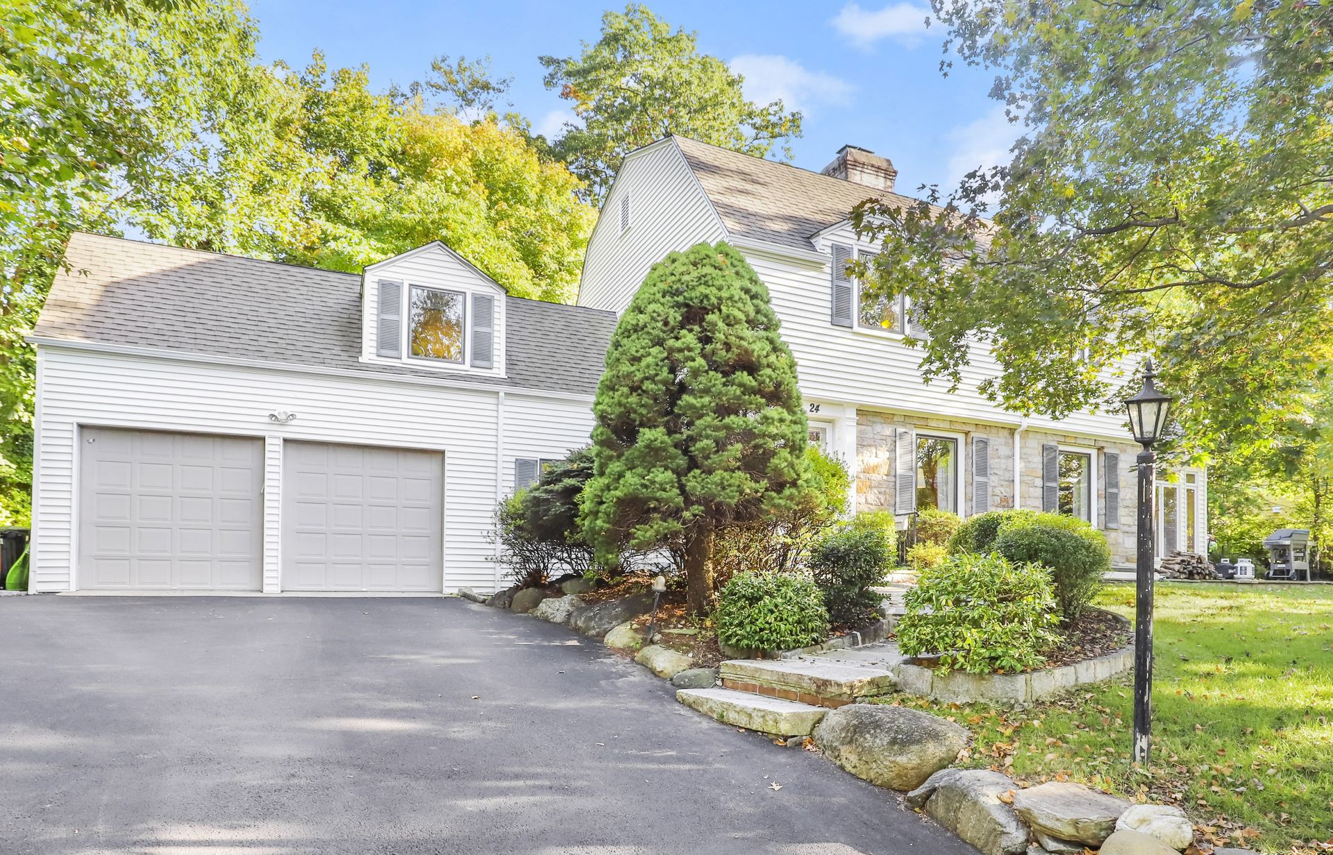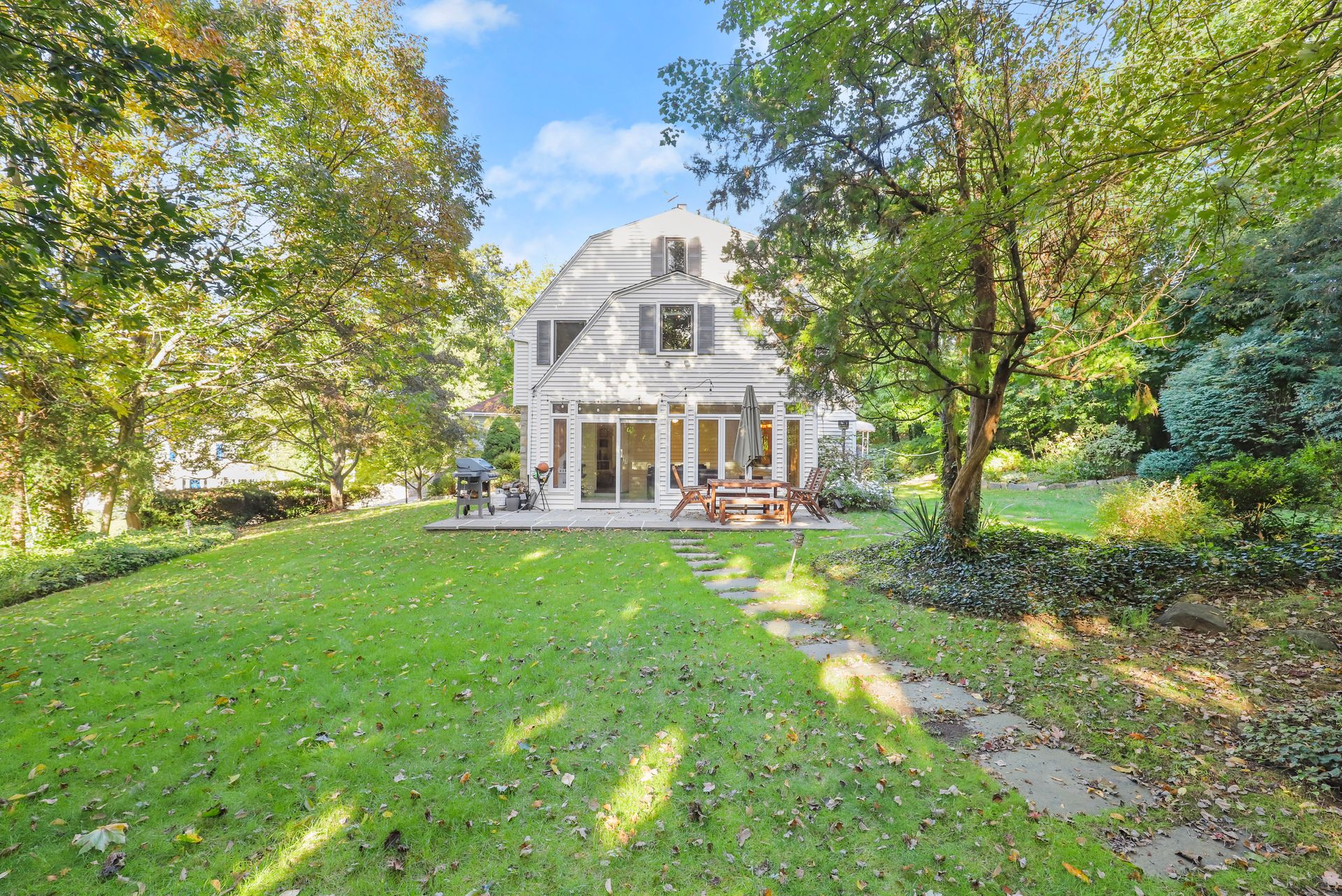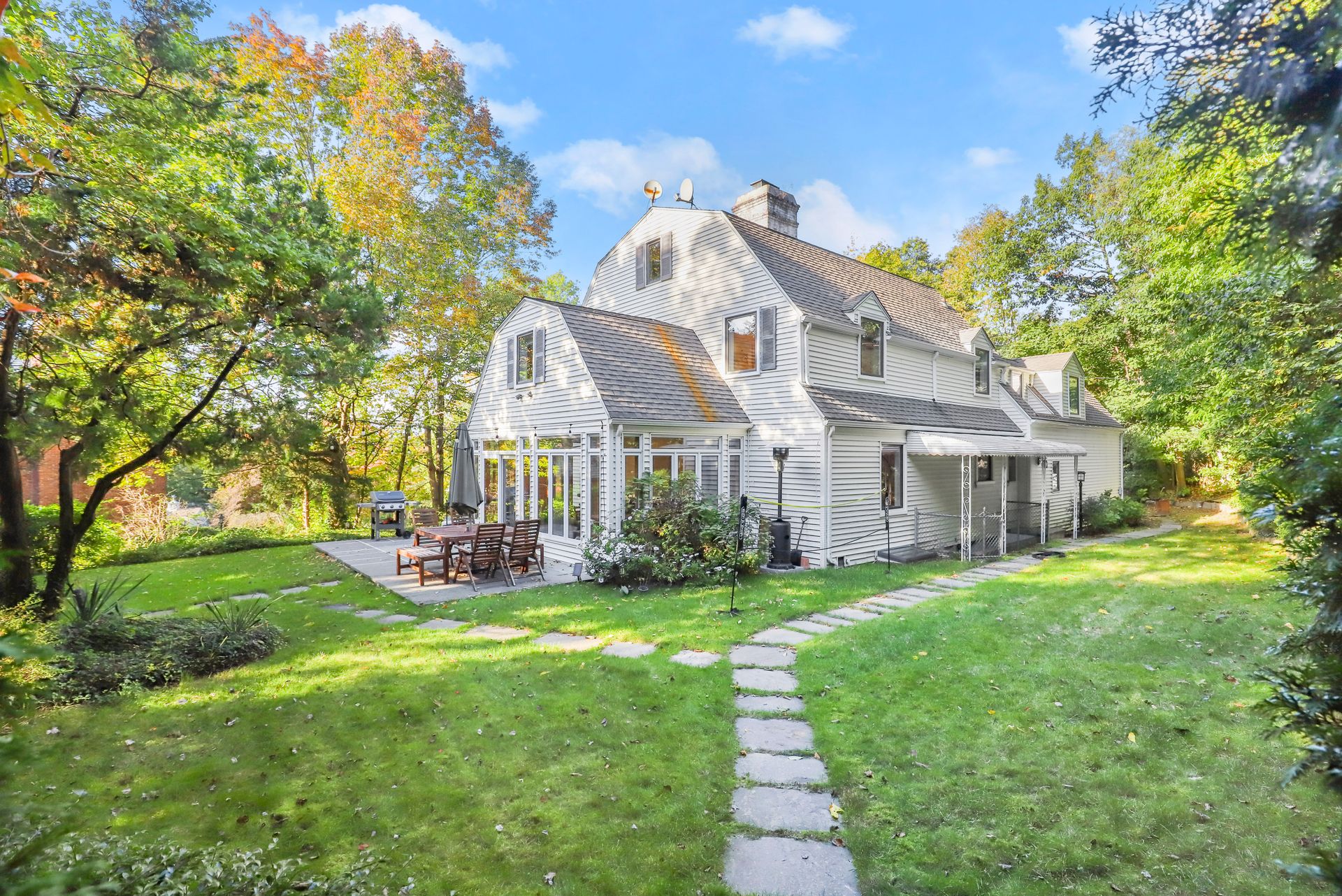 Elegant Geothermal Colonial home features a living room with a traditional wood-burning fireplace, gleaming hardwood floors and a door to a heated sunroom that leads to a stone patio and private yard. There is a formal dining room and an eat-in kitchen with a door to the backyard. Also on the first floor is the fifth bedroom (great for guests, home office or au pair) and full bath with shower. A two-car garage is accessed from the first floor as well. The second floor has a spacious main bedroom with lots of closets and full bath with a Jacuzzi. Second and Third bedrooms have good closet space. The fourth bedroom is currently being used as a family room with access to a loft play area. The basement features a recreation room/exercise space, laundry, utilities and a fourth full bathroom. Close to Scarsdale Village, Schools and Metro North.
