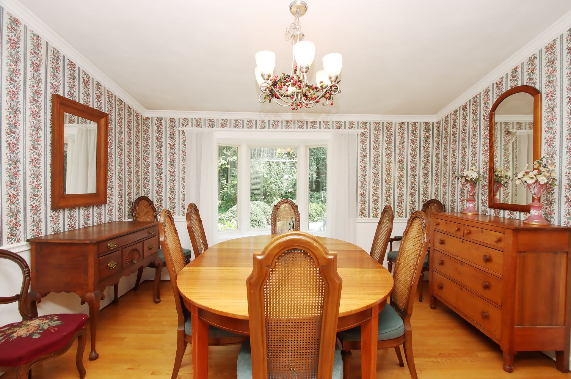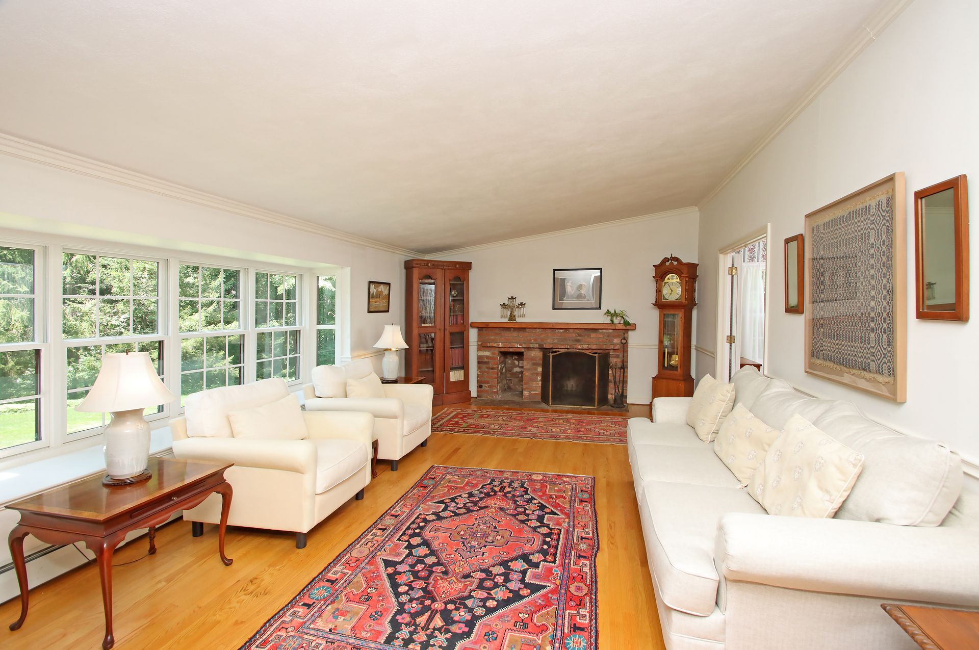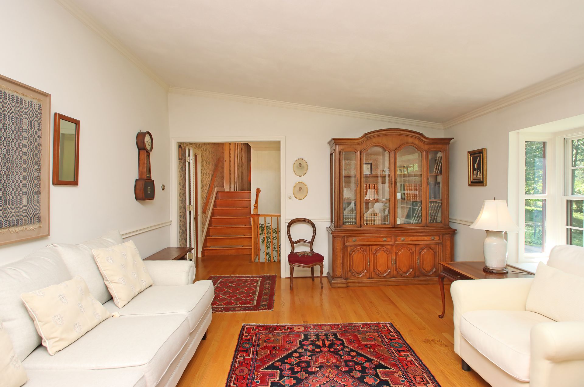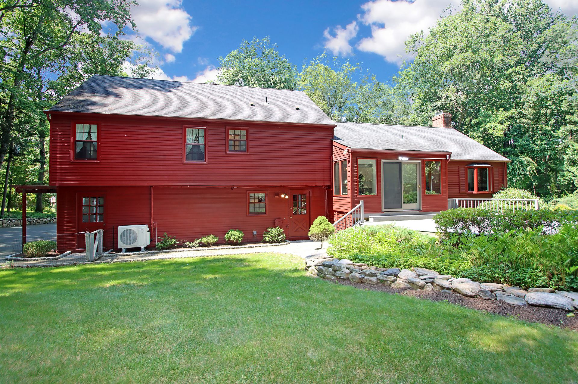 Phenomenal end of cul de sac location! This enchanting, single owner home invites you into a welcoming and sunny brick floor foyer with Palladian window. Not your cookie cutter, this custom-built home boasts cathedral ceilings on the main level that create a sense of light and airiness. You will love the huge living room with its extra wide bay window and lovely brick fireplace. Those cathedral ceilings carry through the dining room with a second beautiful bay window frames a peaceful parklike yard. The sky-lit eat in kitchen gleams with white cabinetry, Corian counters, and stainless appliances that bounce the light. Cozy sunroom is a great spot for a home office or to curl up with a cup of coffee to start your day! Newer 26x24 composite deck overlooks private yard with mature landscaping and curved stone walls. Back inside, the upper level has 4 bedrooms; the primary with a spacious full bath, dressing area, walk in closet with a bonus cedar closet! Three other bedrooms and full bath on this level. Walk down to the third level for a terrific den, powder room and convenient laundry. Need more space? Head down another level to the huge family room with 2nd brick fireplace; plenty of space here to keep the toys out of sight and to have a home office, home theatre or exercise room! Well maintained mechanicals with multizone Well McLain boiler, 3 Splits on the upper levels, 200-amp electrical service, Honeywell whole house generator that conveys and replacement windows throughout. Come see the lovely 24 Wolf Tree today and find yourself Home, Sweet HOME tomorrow!