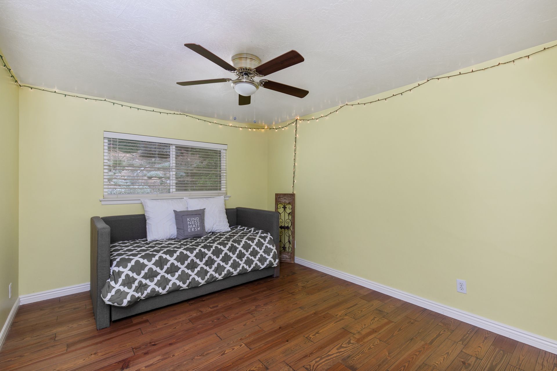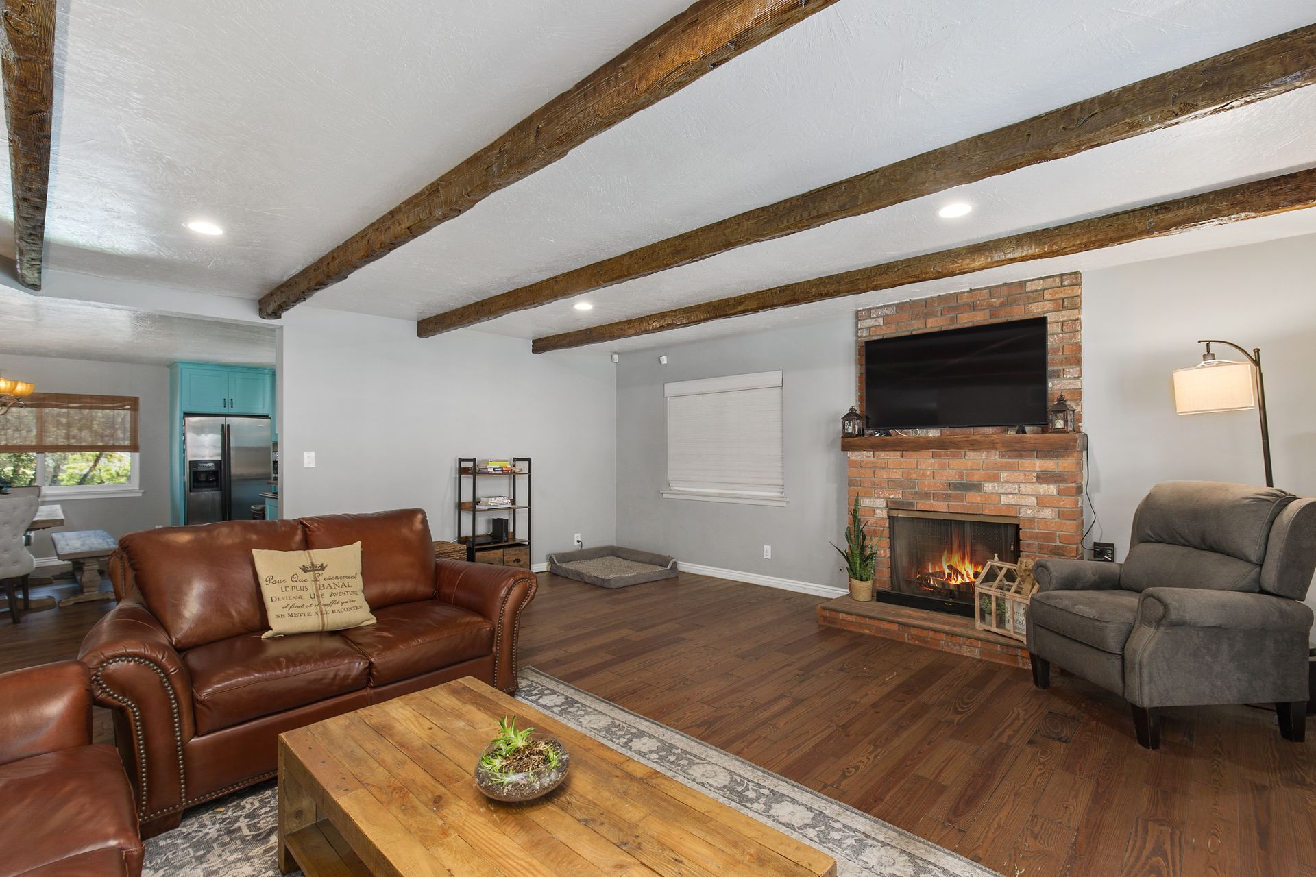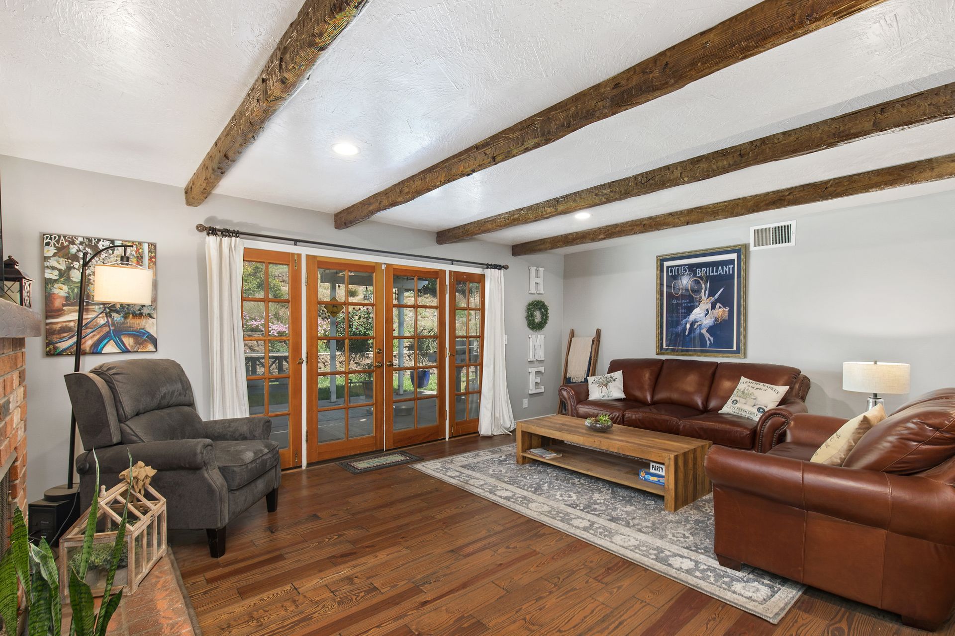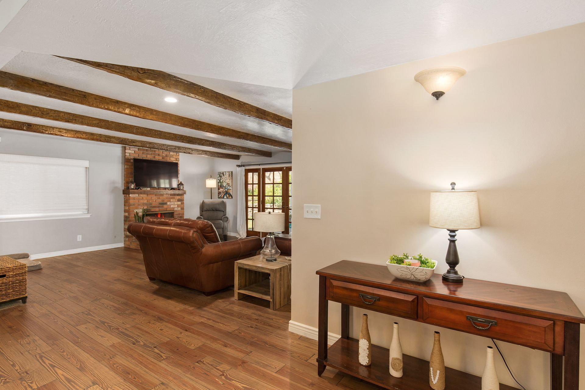 This turnkey single-story home is located in the desirable and well-established neighborhood of Royal Hills. Our property offers a wonderful location as it sits on a large, elevated corner lot of a cul-de-sac with great views of Riverside and is just minutes from Poly High School. Enjoy a cozy shaded front porch and beautiful doubled glassed entry doors to welcome you into this inviting ranch-style home with beautiful dark wood planked flooring which takes you throughout the home. Other features include a remodeled and updated Chef’s kitchen with an island, wine fridge, and an incredible THOR oven along with pull-out drawers in the cabinets. The ideal place to hang out and entertain. The bedrooms are typical of a mid-60s home...LARGE! There is a newer HVAC with state-of-the-art allergy protection, and the Energy efficient double-pane windows will help with your utility bills. The spacious pool-sized lot is more than one-third of an acre at 15,682 square feet. It's an awesome family and pet-friendly backyard with a large, covered patio! There are producing fruit trees along with grape vines, bougainvillea, and many water-saving flowers including California Poppies. The large extra-wide driveway allows for an RV, toy hauler, trailer, or boat. Close to Shopping, Churches, freeways, and Metro to either OC or LA is within 10 minutes. The neighborhood offers Charm, Character, Safety, and community. Lovely shade trees line the streets. This fantastic home is Move-In Ready!