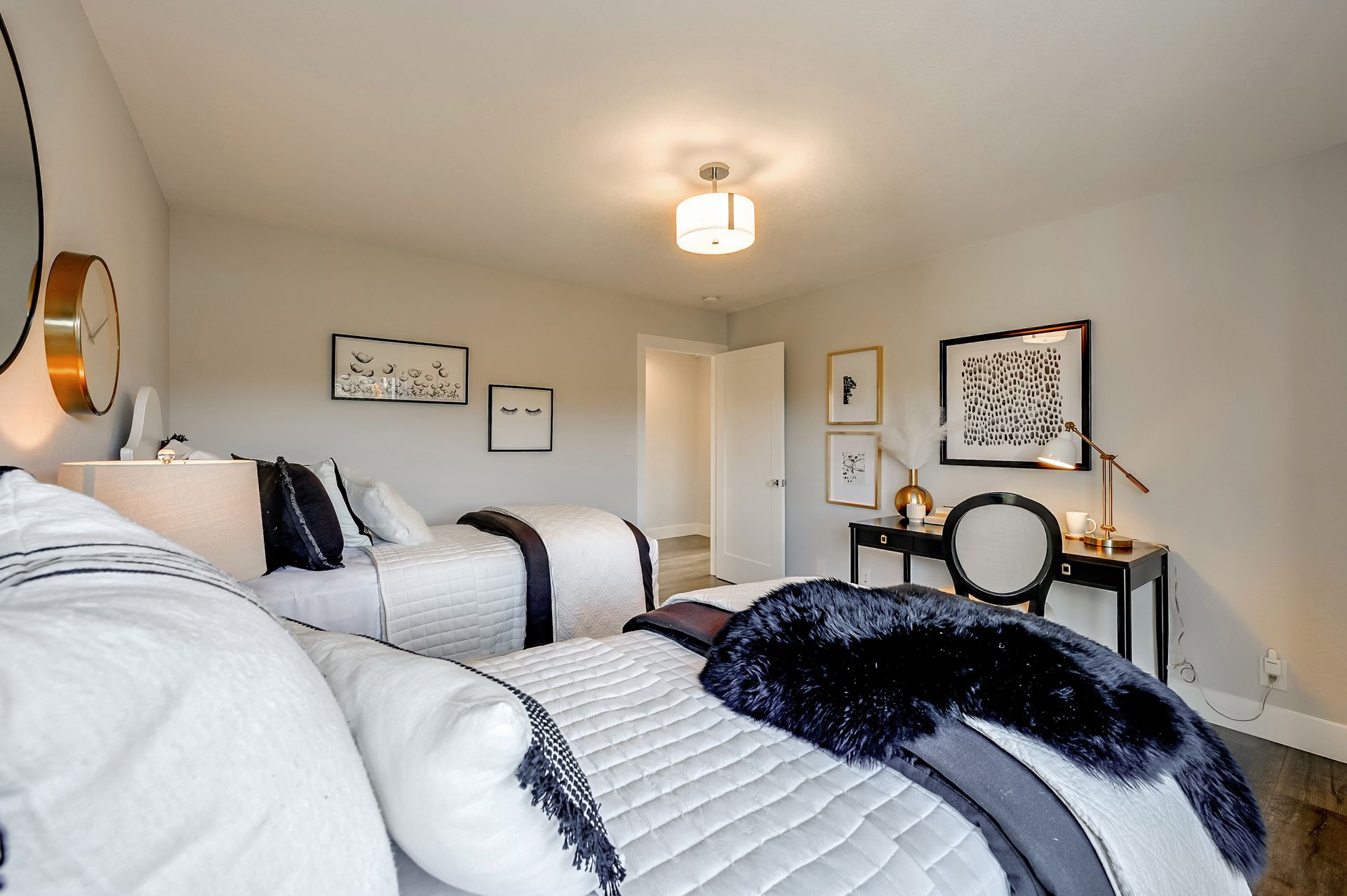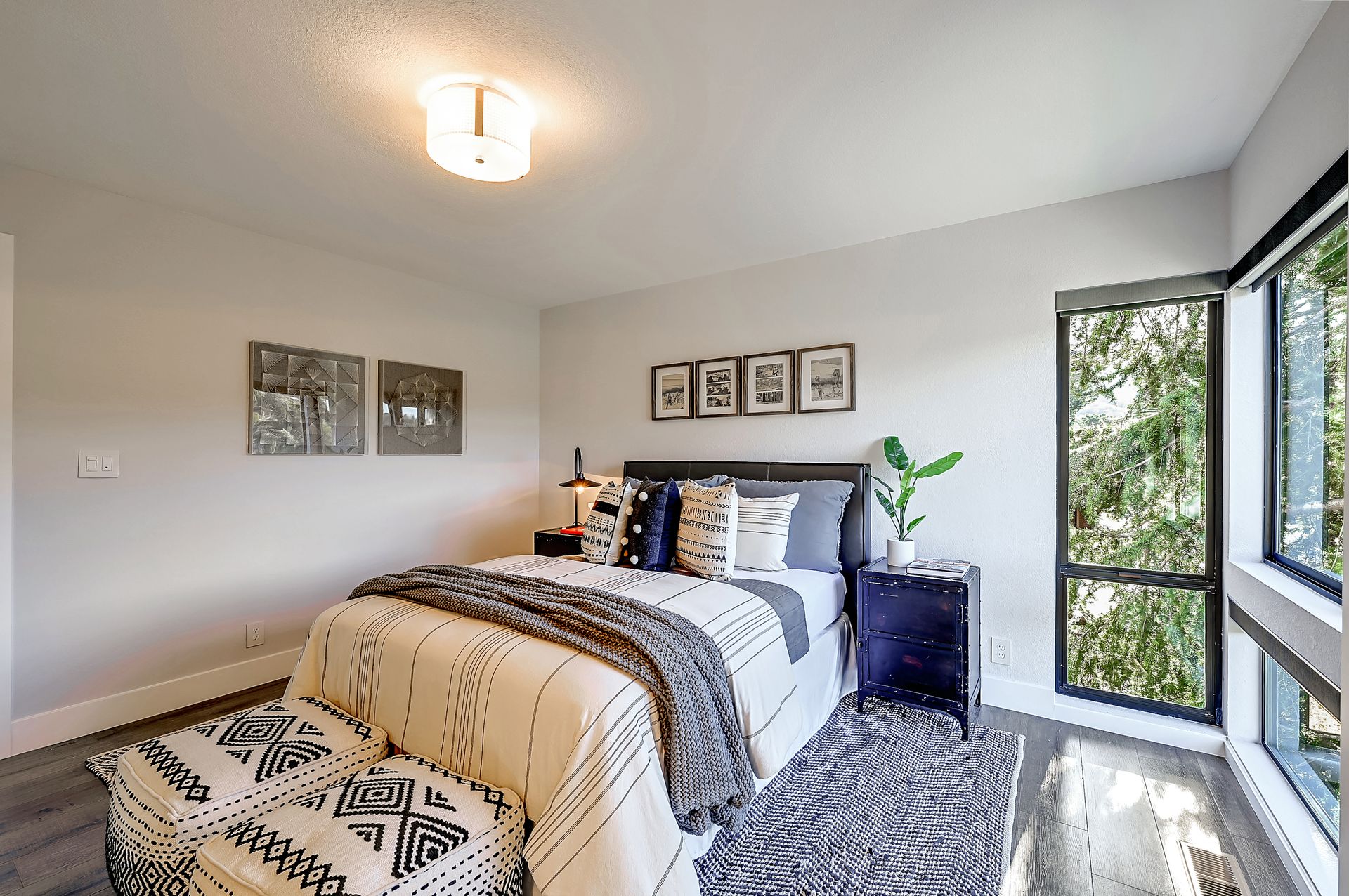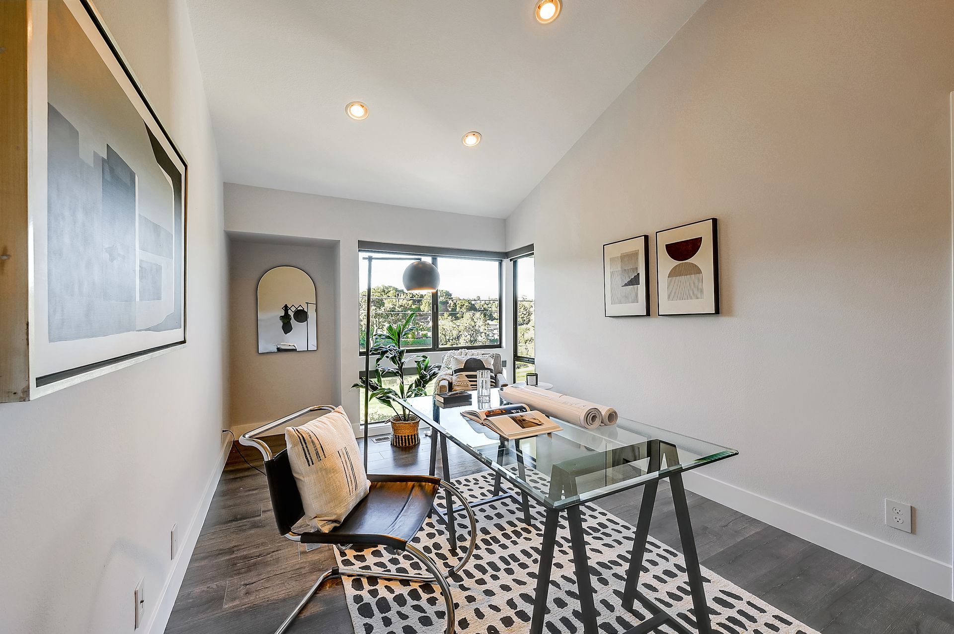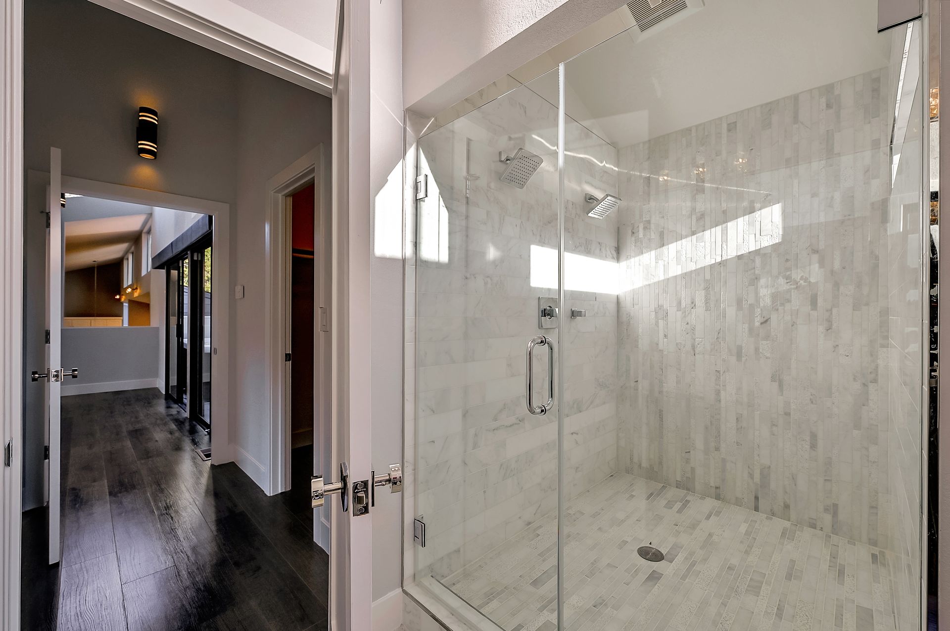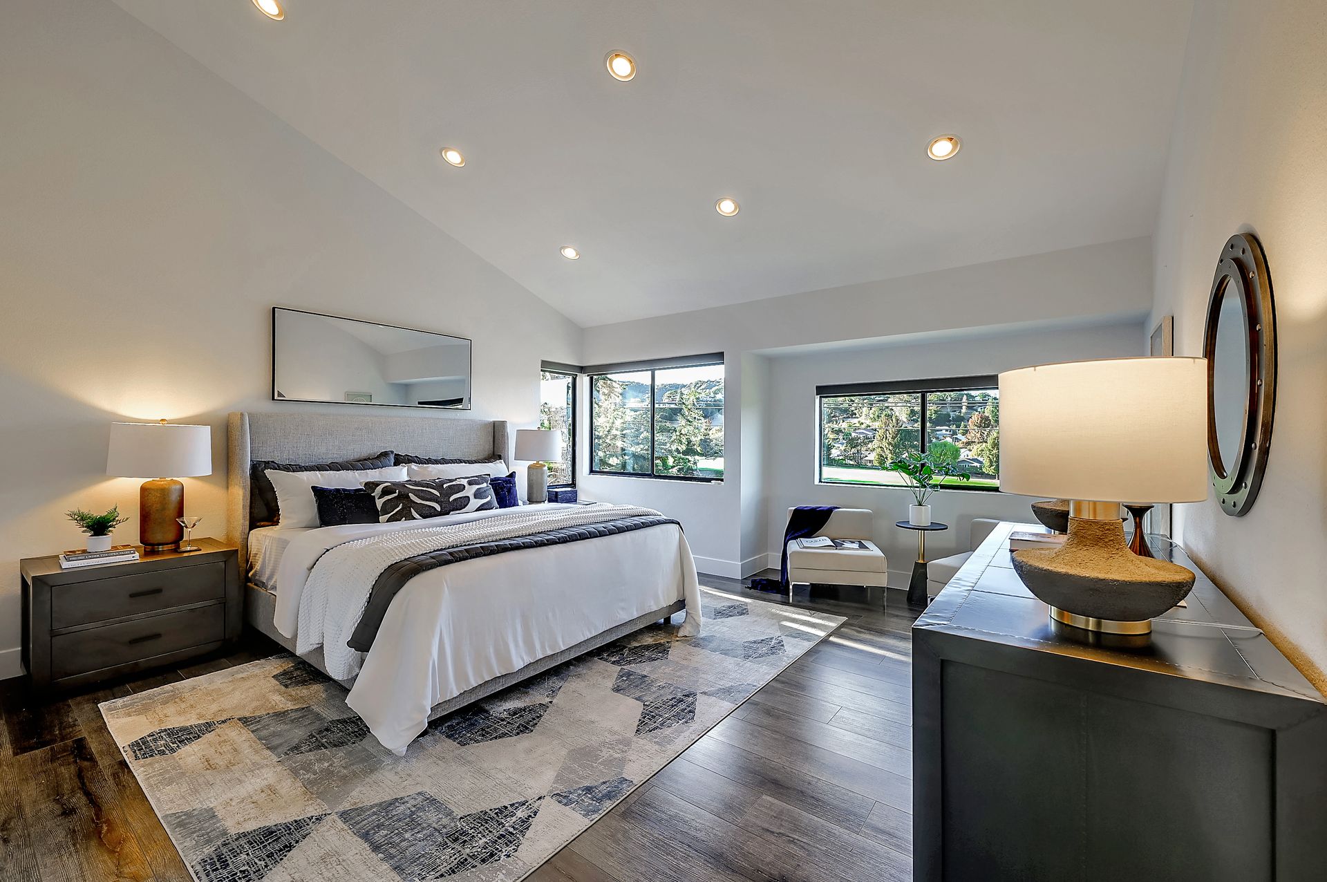 The open livable space, spacious deck and well-appointed gourmet kitchen is ideal for entertaining. The split-level configuration of the four bedrooms, with two bedrooms on each level, nicely separate the guest bedrooms from the upstairs owner's suite & office, effectively creating a private oasis which includes a walk-in closet, a large primary bath with an oversized shower, a private balcony and a Hotsprings saltwater hot tub. All three bathrooms have been updated with high-end finishes, under cabinet lighting and beautiful tile work.