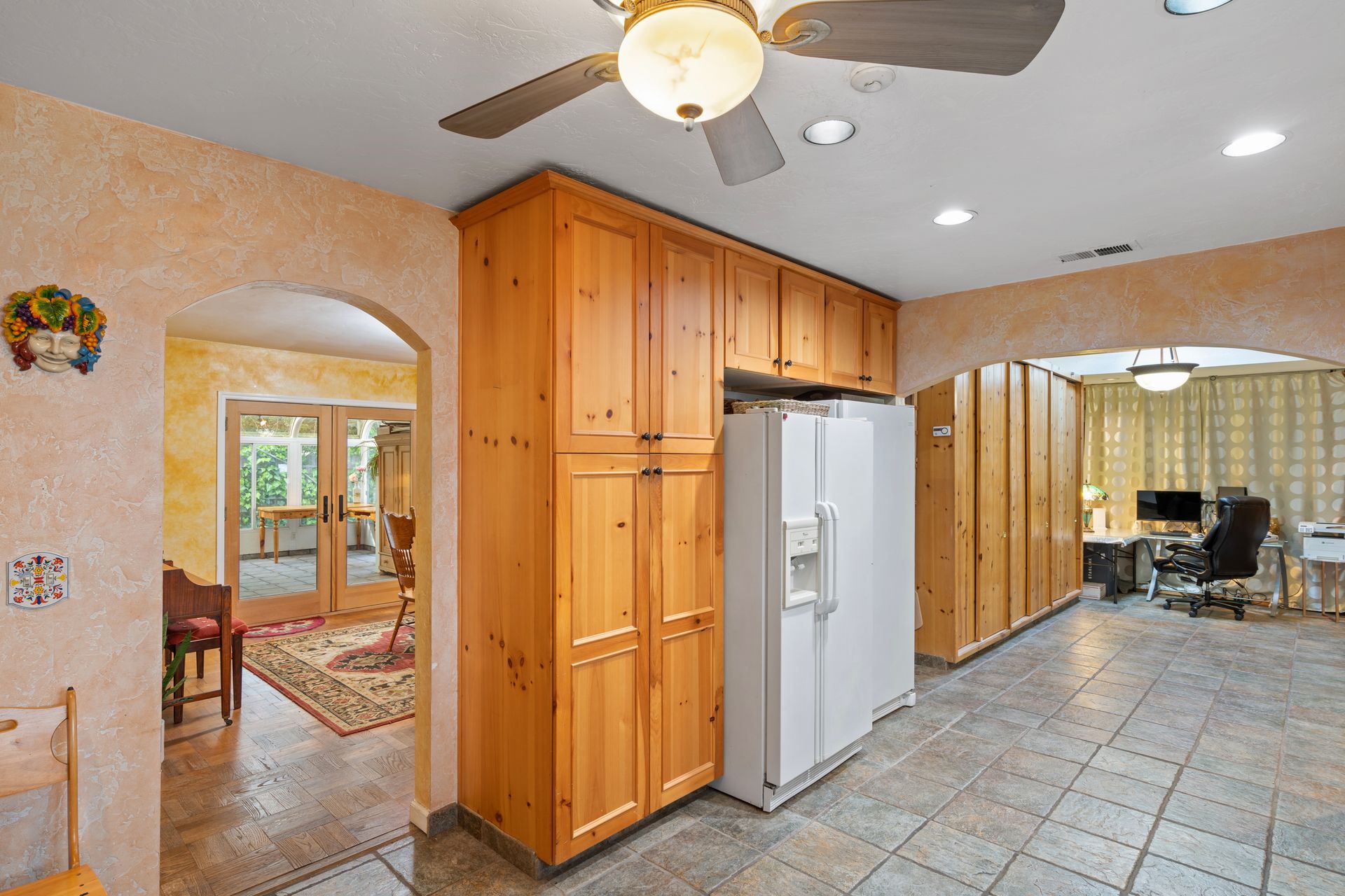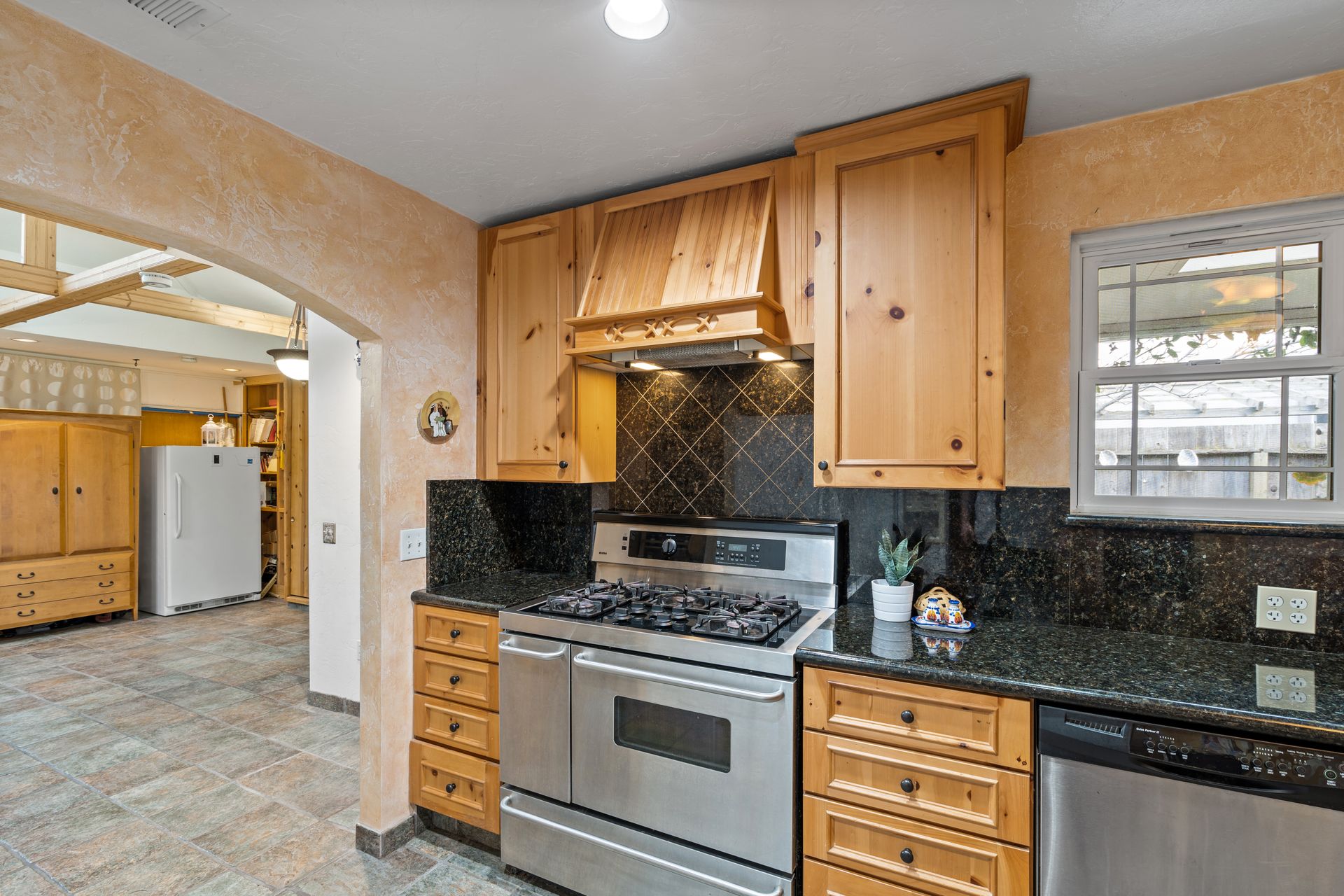 Enjoy, remodel, expand or build new in great Midtown neighborhood. Explore all the possibilities for this home with a generous lot incl adding an ADU. Great bones include tankless water heater, central heat/AC, 200 amp electrical panel, dual pane windows, metal and foam roofs and newer sewer lines. Huge remodeled kitchen has generous wood cabinets and granite counter space next to bonus room (can be garage) w/tons of storage. Permitted sunroom (243 sq ft). Remodel and put your personal touch on the bathroom. Spacious backyard with many fruit trees, space for play, gardening and entertaining. Great neighborhood schools incl El Carmelo, JLS Middle and Palo Alto High. Conveniently located near commuter routes, shopping/dining and Ross Rd Bicycle Boulevard.