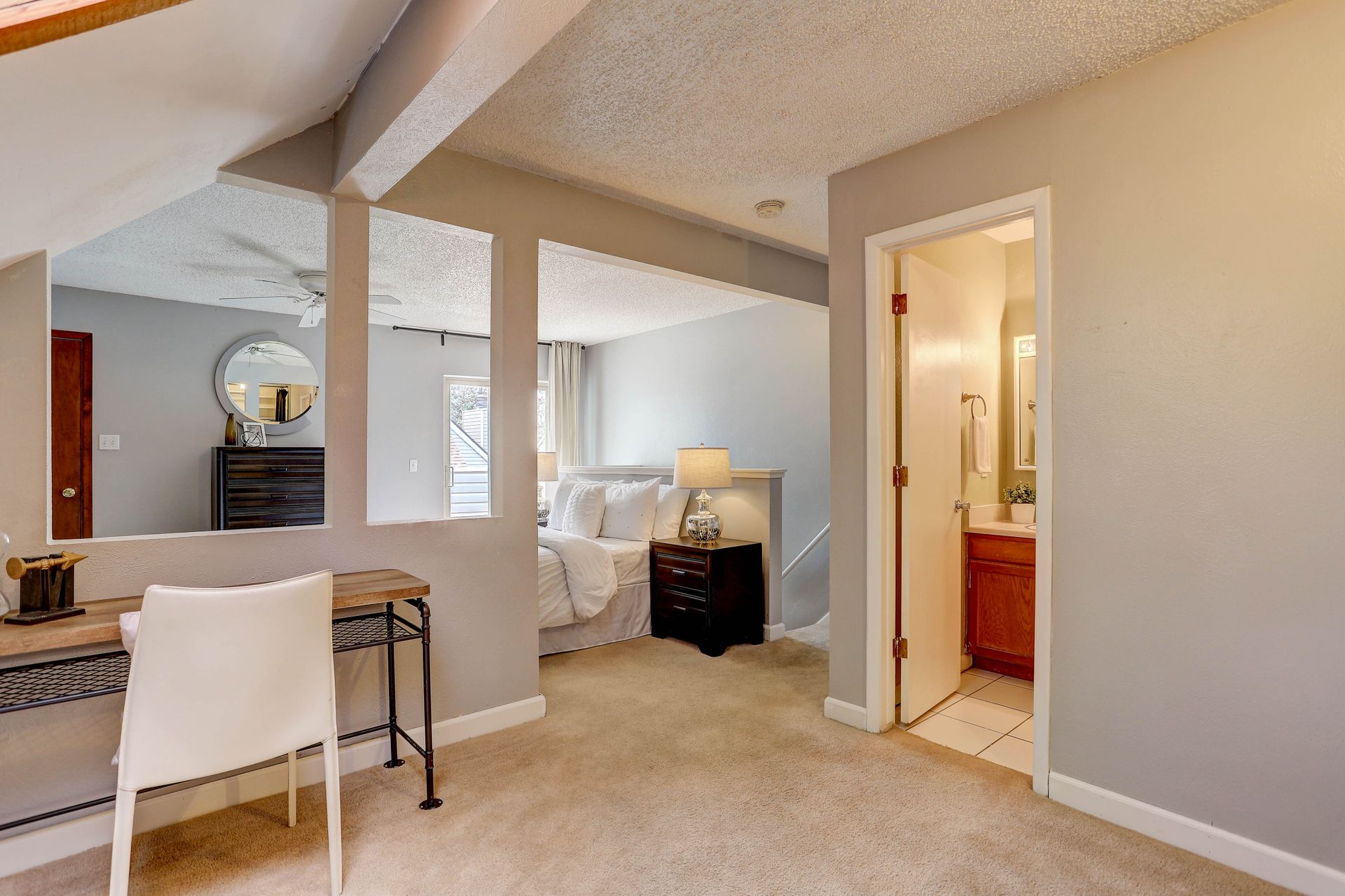 The upper level offers a second bedroom loft with large closet, another full bath and private balcony with views of the Heather Ridge Course and a serene pond. There is a bonus space upstairs with a skylight which would work well as an office, hobby or play area.