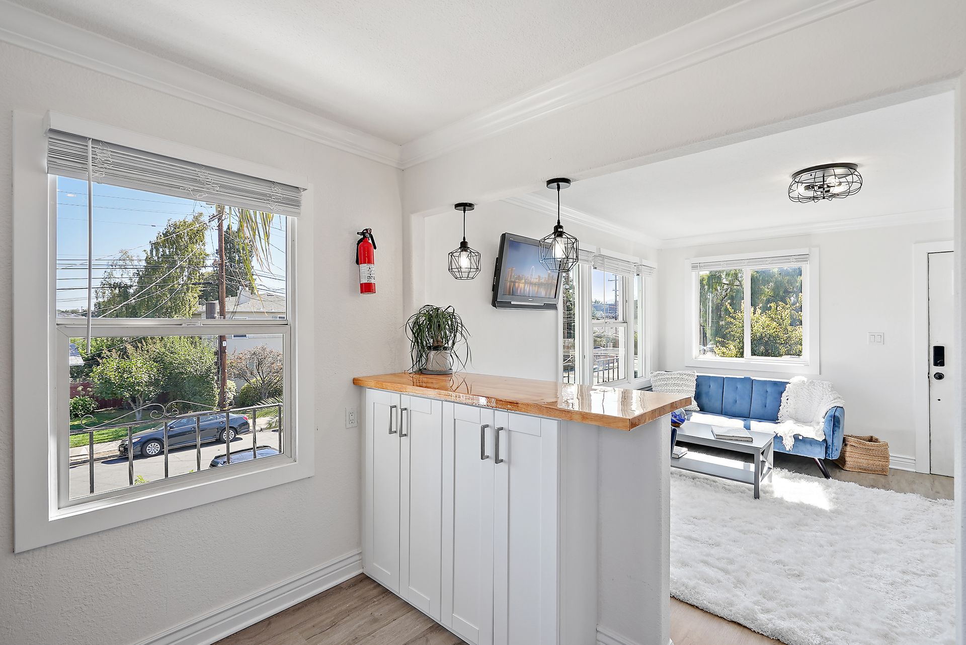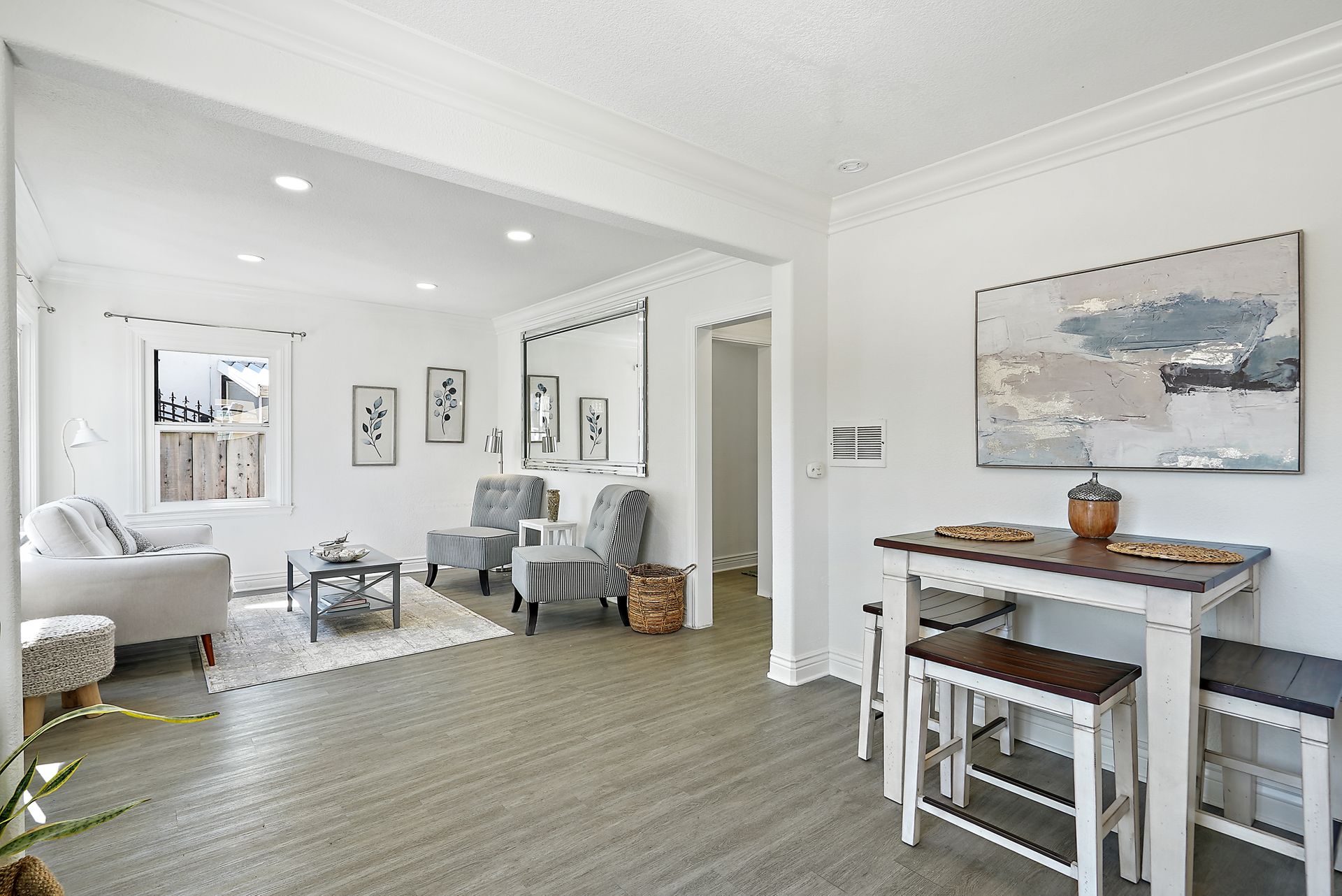 Opportunity for multi-level living or investment property. The lower home has three rooms used as bedrooms, two remodeled full baths, a living room, a dining area, a nicely remodeled kitchen with an eating bar and a back deck. The upper home offers a one bedroom, remodeled bathroom and kitchen and a spacious living room. In addition, there is a generous upper deck with city views, great for gathering with guests. The property has a long driveway for off-street parking. Front and backyards are shared. The two-car garage has an approximately 160-square-foot annex area allowing for multi-purpose work/play uses or bonus storage. Excellent commuter-friendly desirable location near schools, Sequoia Station Train, shopping, Whole Foods and Redwood City Downtown conveniences.