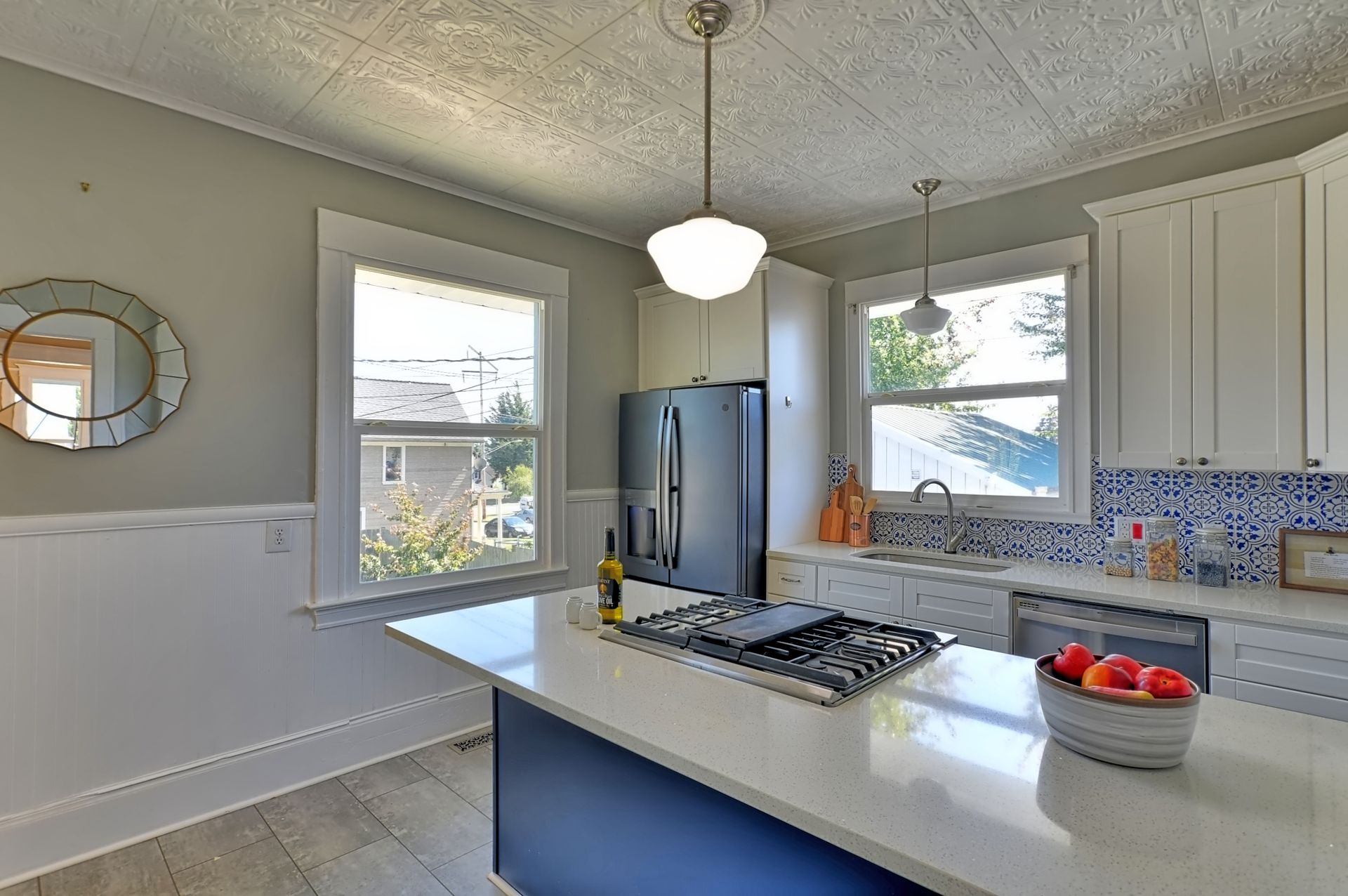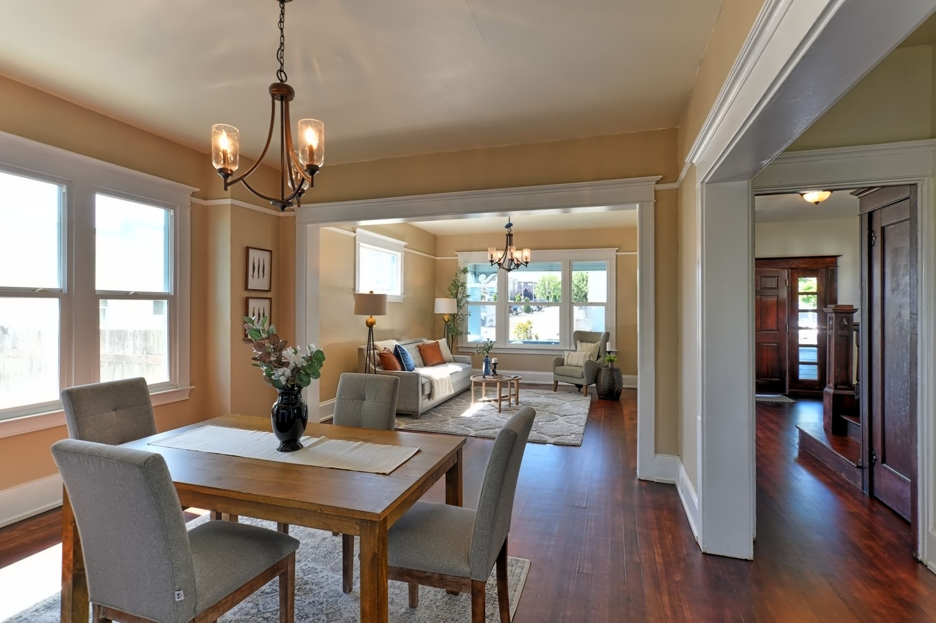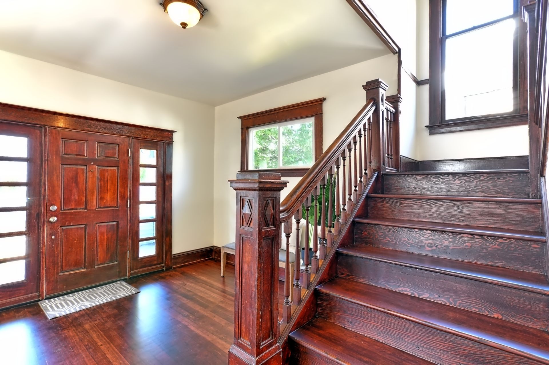 Venture into this handsome two-story+ home. It has been well cared for and brimming with old-world charm and original woodwork. With 4 large bedrooms and 1.5 bathrooms, this 1920 square foot home offers large windows that flood the home with natural light and spacious rooms with nine-foot ceilings create an airy open feel. The renovated kitchen with high-end appliances, gas cooking and an eating bar add modern convenience to this classic beauty. Stunning dark wood floors, wood-wrapped windows and a signature staircase add a flair of sophistication. Entertain in the large, fenced backyard with patio and terraced garden beds. Use your creativity in the full unfinished basement with an outside entrance to add square footage. Don't miss this rare offering and unique home! Click Here for Tour!