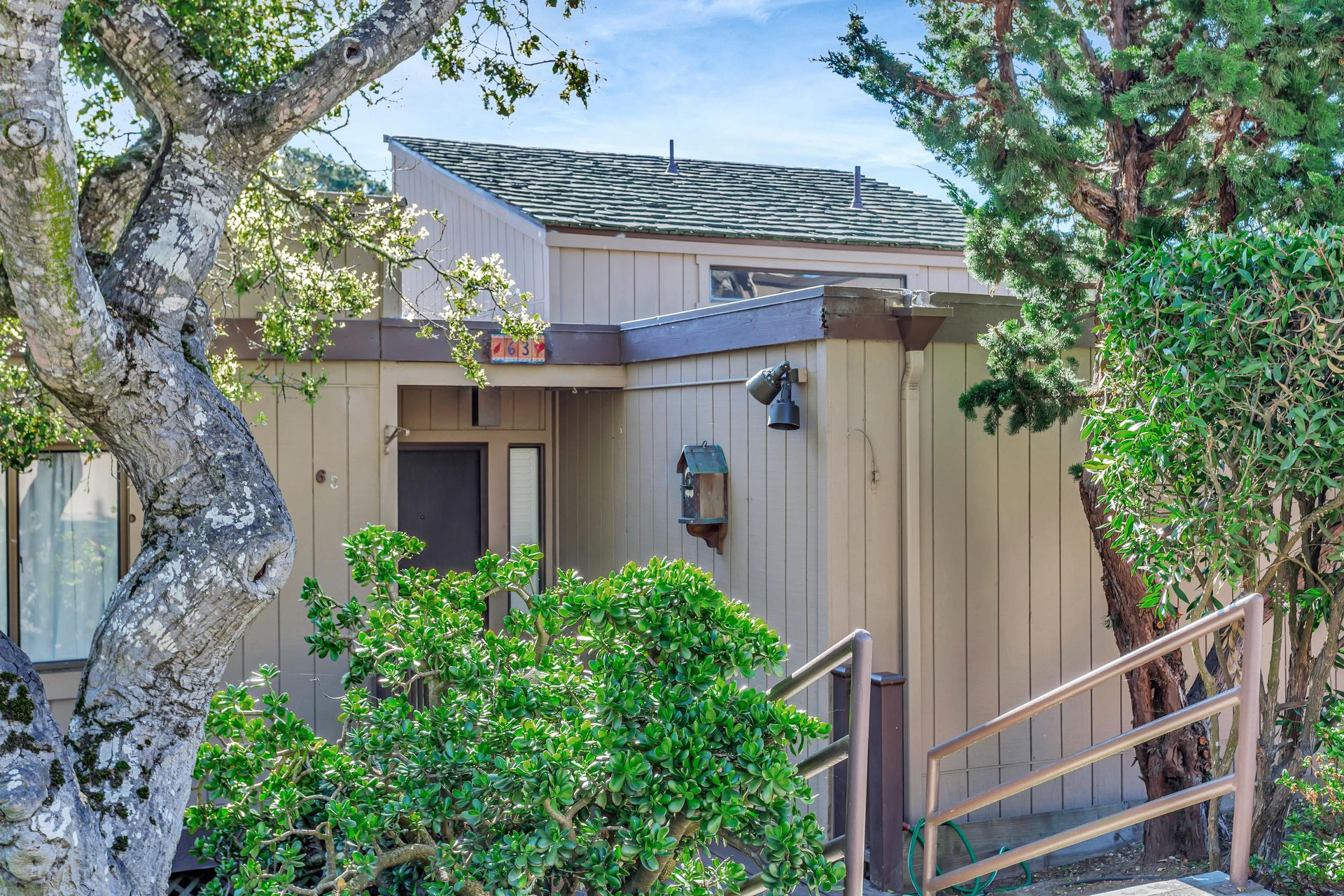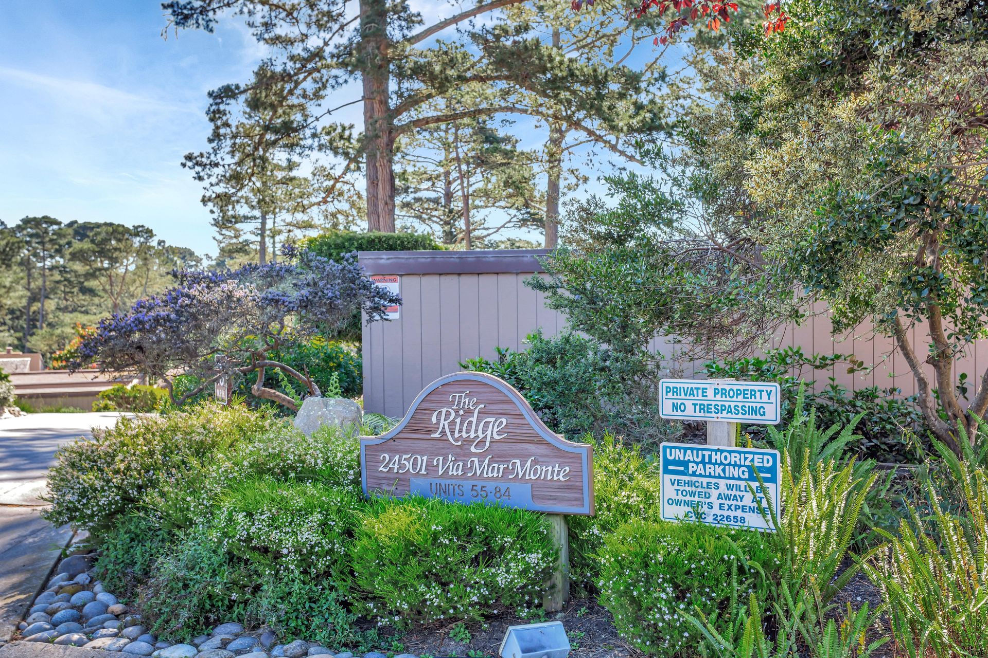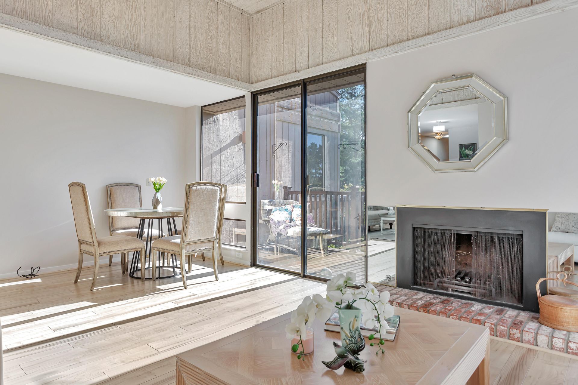 This highly desirable, end unit model in the High Meadow is conveniently located with easy access to Carmel, the South Coast and the commuter corridors to the north. Nestled in the forest, the freshly painted condo offers two generously sized bedrooms and two full baths. The primary suite has a huge walk-in closet, sink vanity and a second closet with convenient shelving for extra storage. The second bedroom, also a suite, is a versatile space which can ideally serve as a second bedroom, or a guest room/home office. The living room dining space is huge with high ceilings offering a sense of space. There is a brick wood-burning fireplace for those cozy Carmel nights. The deck overlooking the greenbelt is the ideal spot for a café in the mornings. This complex offers plenty of guest parking, a bank of three open spaces just outside the condo and has a detached single-car garage. There are inviting walking areas to explore, tennis courts/pickle ball courts and a lovely pool to relax and enjoy. Welcome home to The Ridge a PUD in the High Meadows.