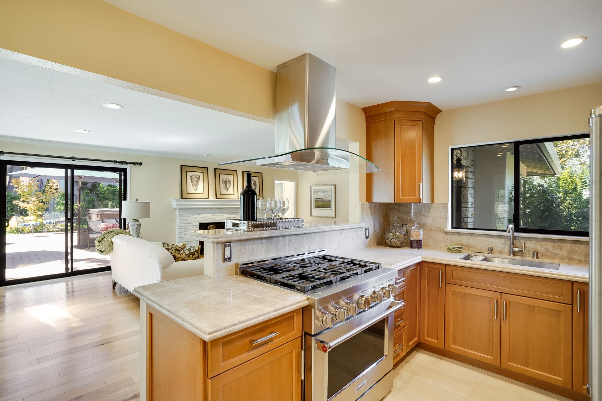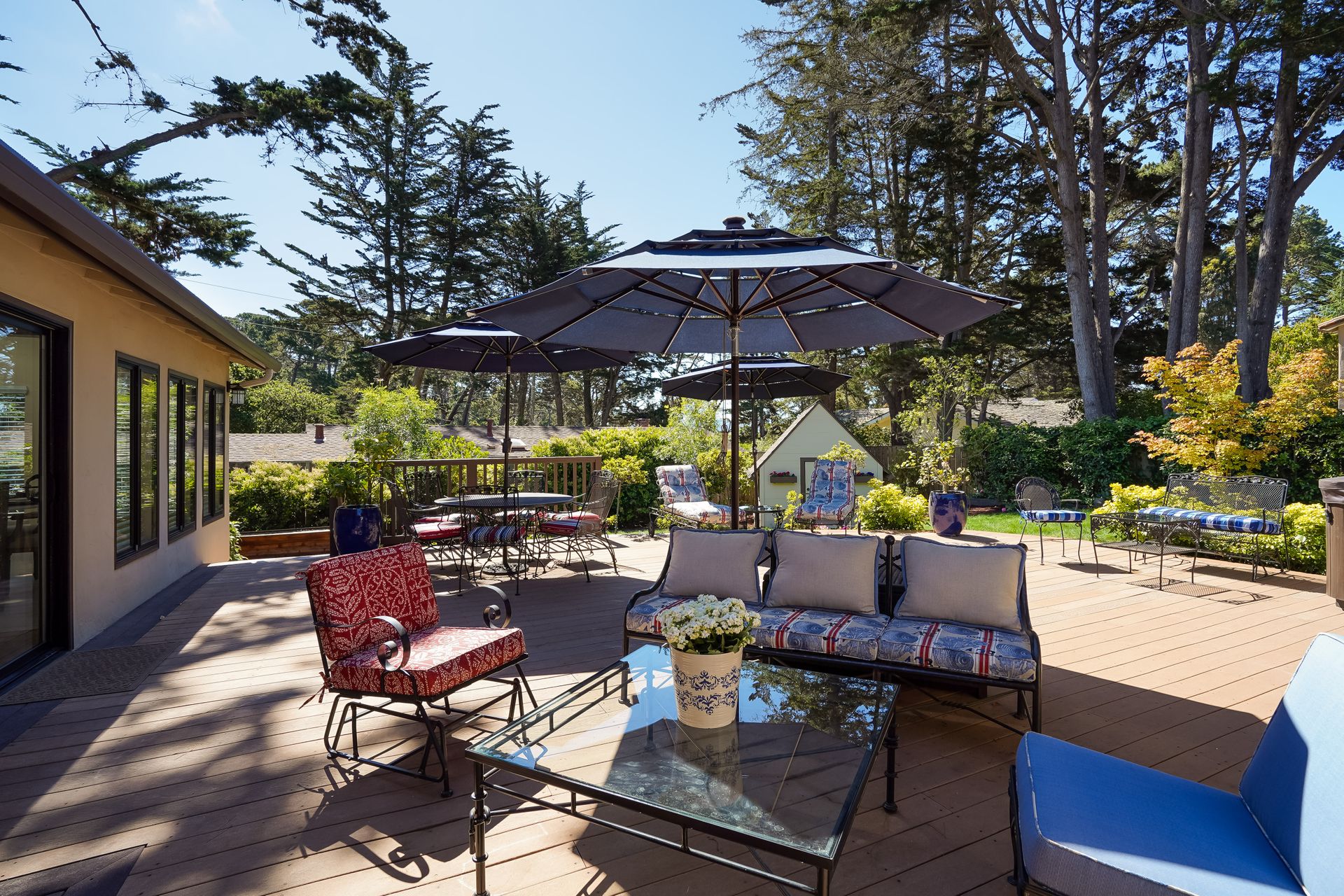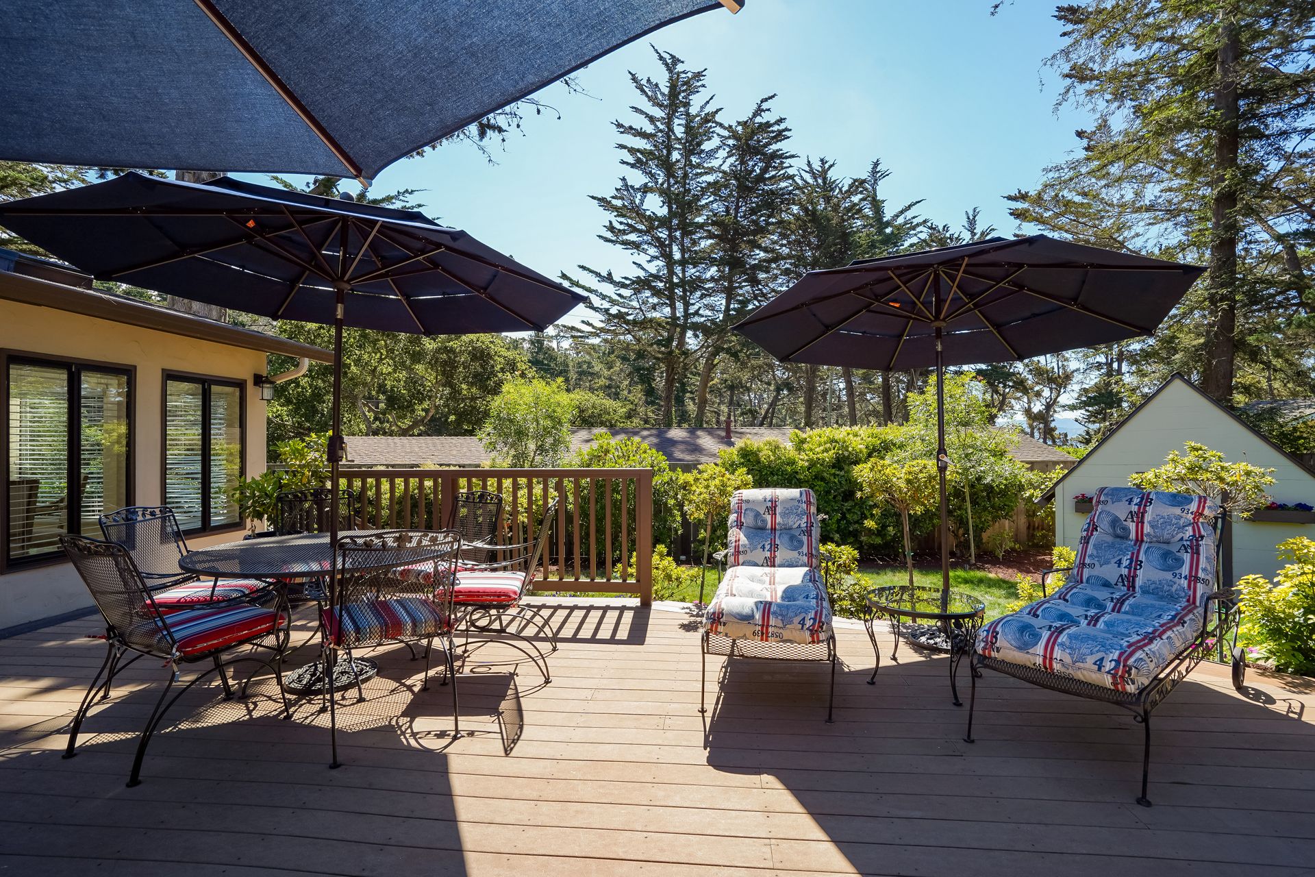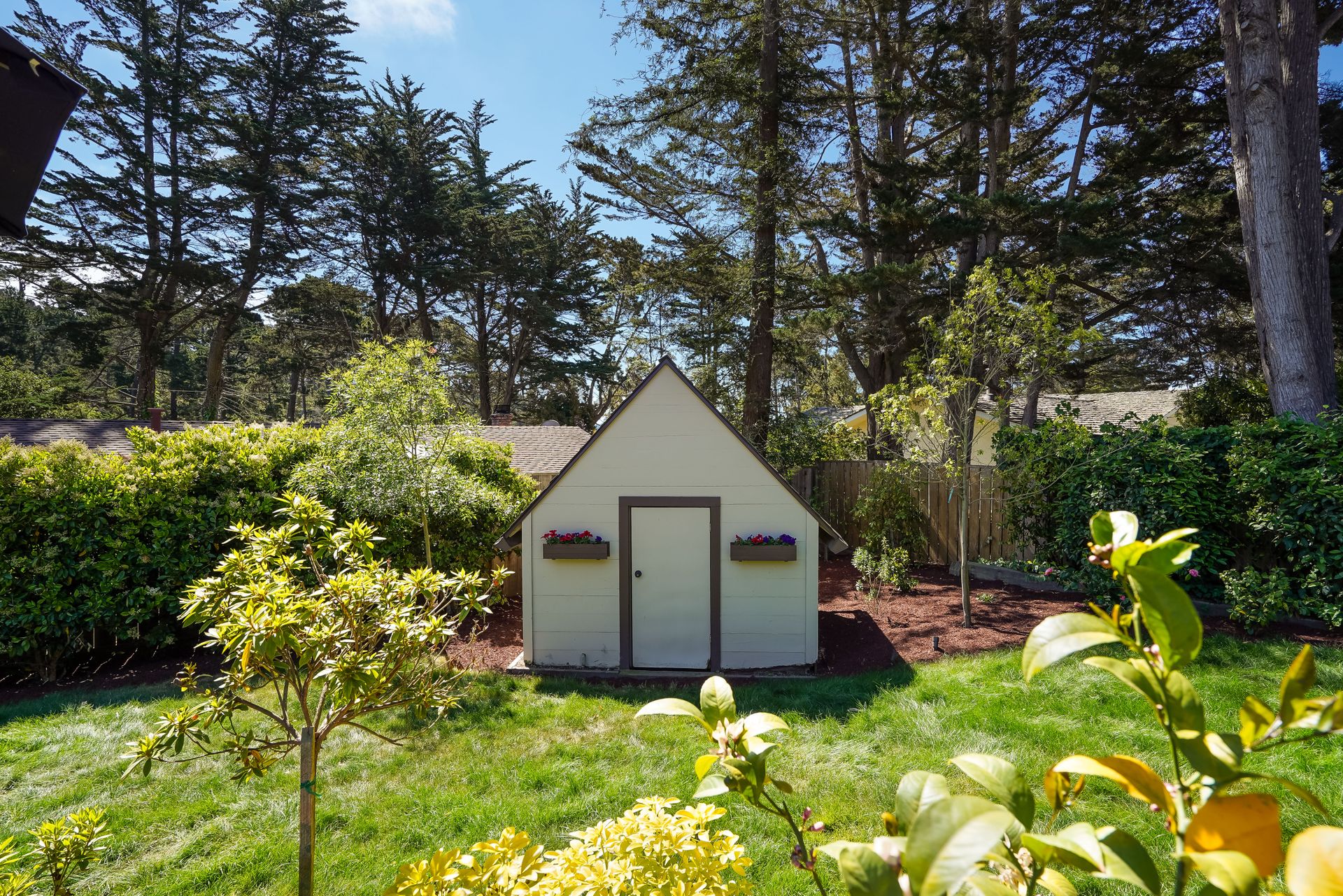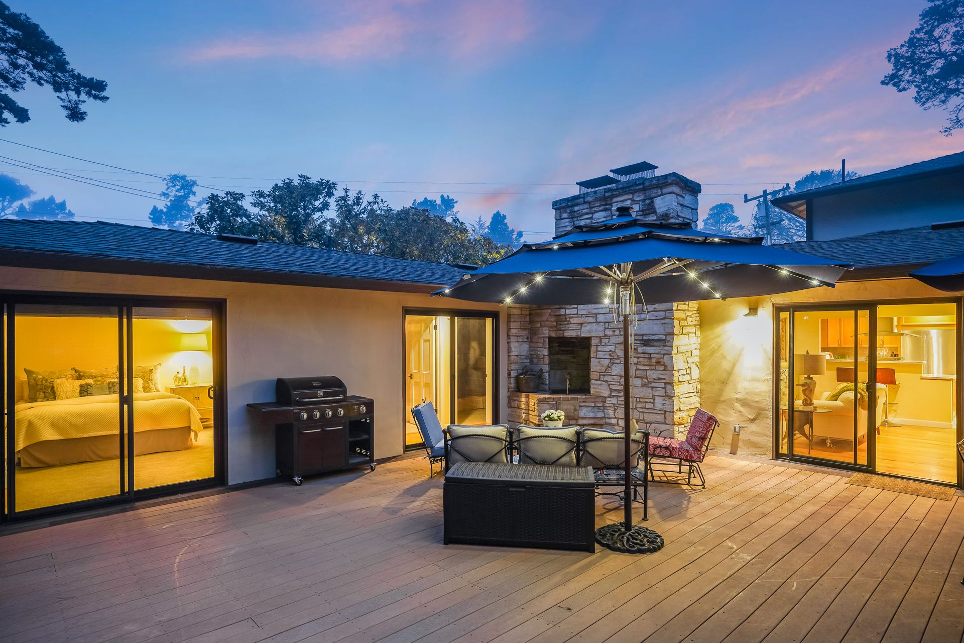 STUNNING, newly remodeled Carmel home with a magical garden only moments to downtown. The lush garden features a flowing fountain that draws you in. Freshly painted inside and out, this three bedroom, three bath home with an office is situated on approximately one-third of an acre and has numerous upgrades. Upgrades include a beautiful kitchen remodel with hickory cabinets, butler's pantry, stainless steel appliances, six-burner cooktop and porcelain tile floors. The private upstairs primary suite with approximately 800 square feet features a luxurious spa bathroom and has been beautifully redesigned and offers a peek of the ocean. It boasts a custom wrought-iron Juliet balcony and multiple closets including a shoe closet and natural hickory bookshelves. Additional features include a spacious living room with wood floors, large stone fireplace, light-filled dining area with skylights and a cozy family room with a separate entrance. Additional upgrades include dual pane windows and newer roof and gutters. A large two-car garage with ample parking features custom epoxy floors and an abundance of storage cabinets, a homeowner’s dream. Enjoy a nearly 800 square foot Trex deck and outdoor Carmel Stone fireplace in the backyard. The sunsets and sunrises are mesmerizing.