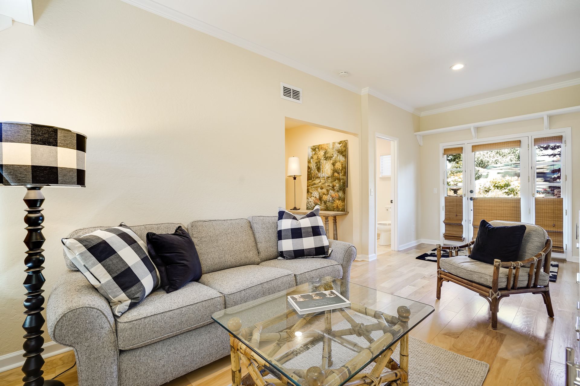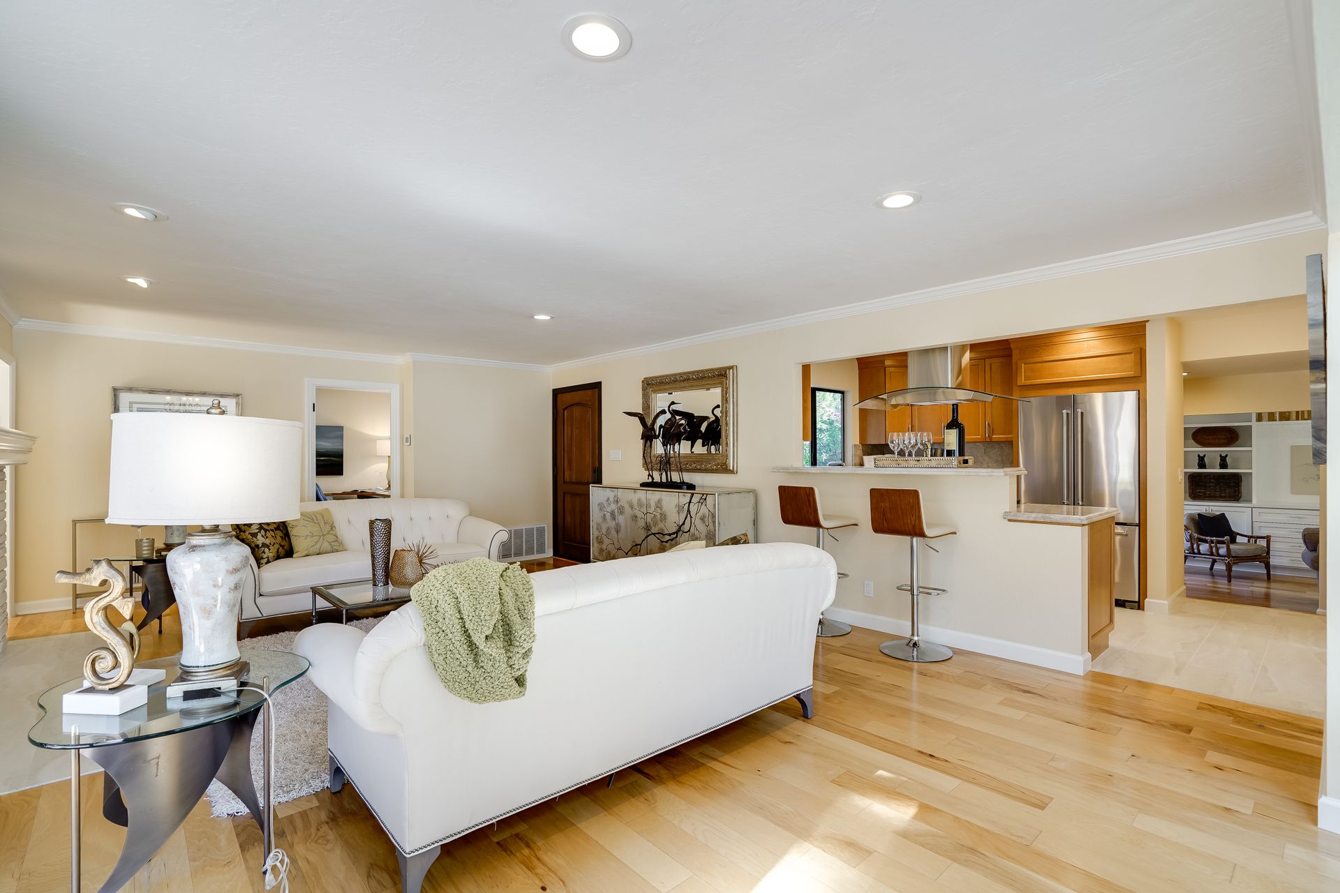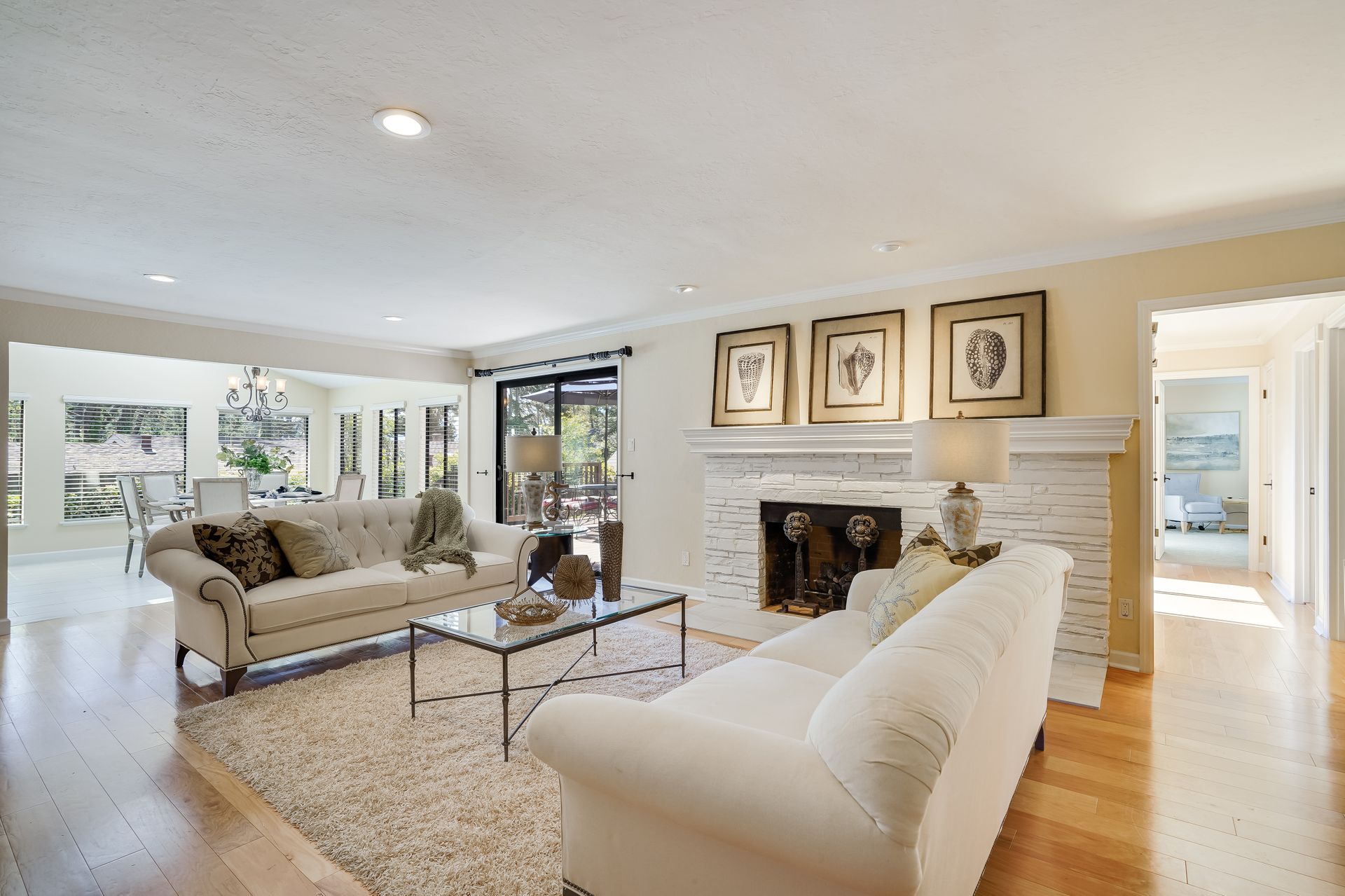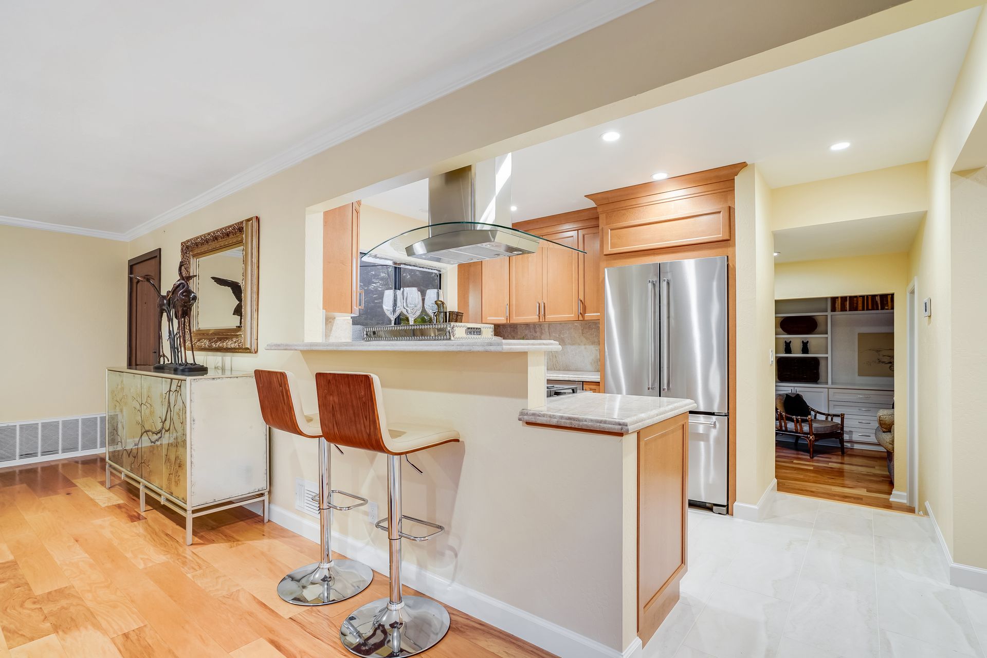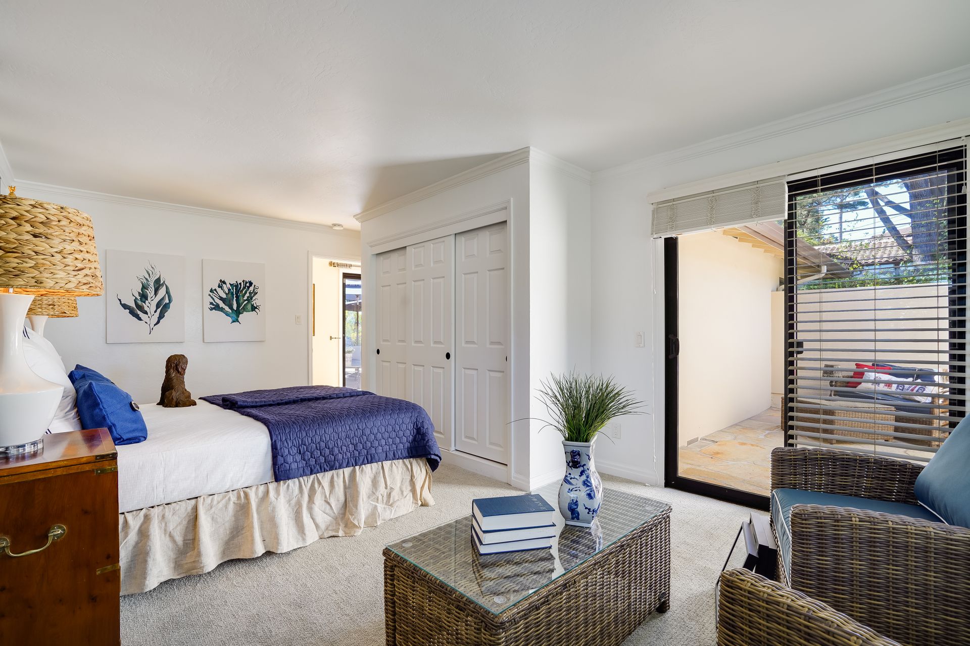 STUNNING, newly remodeled Carmel home with a magical garden only moments to downtown. The lush garden features a flowing fountain that draws you in. Freshly painted inside and out, this three bedroom, three bath home with an office is situated on approximately one-third of an acre and has numerous upgrades. Upgrades include a beautiful kitchen remodel with hickory cabinets, butler's pantry, stainless steel appliances, six-burner cooktop and porcelain tile floors. The private upstairs primary suite with approximately 800 square feet features a luxurious spa bathroom and has been beautifully redesigned and offers a peek of the ocean. It boasts a custom wrought-iron Juliet balcony and multiple closets including a shoe closet and natural hickory bookshelves. Additional features include a spacious living room with wood floors, large stone fireplace, light-filled dining area with skylights and a cozy family room with a separate entrance. Additional upgrades include dual pane windows and newer roof and gutters. A large two-car garage with ample parking features custom epoxy floors and an abundance of storage cabinets, a homeowner’s dream. Enjoy a nearly 800 square foot Trex deck and outdoor Carmel Stone fireplace in the backyard. The sunsets and sunrises are mesmerizing.