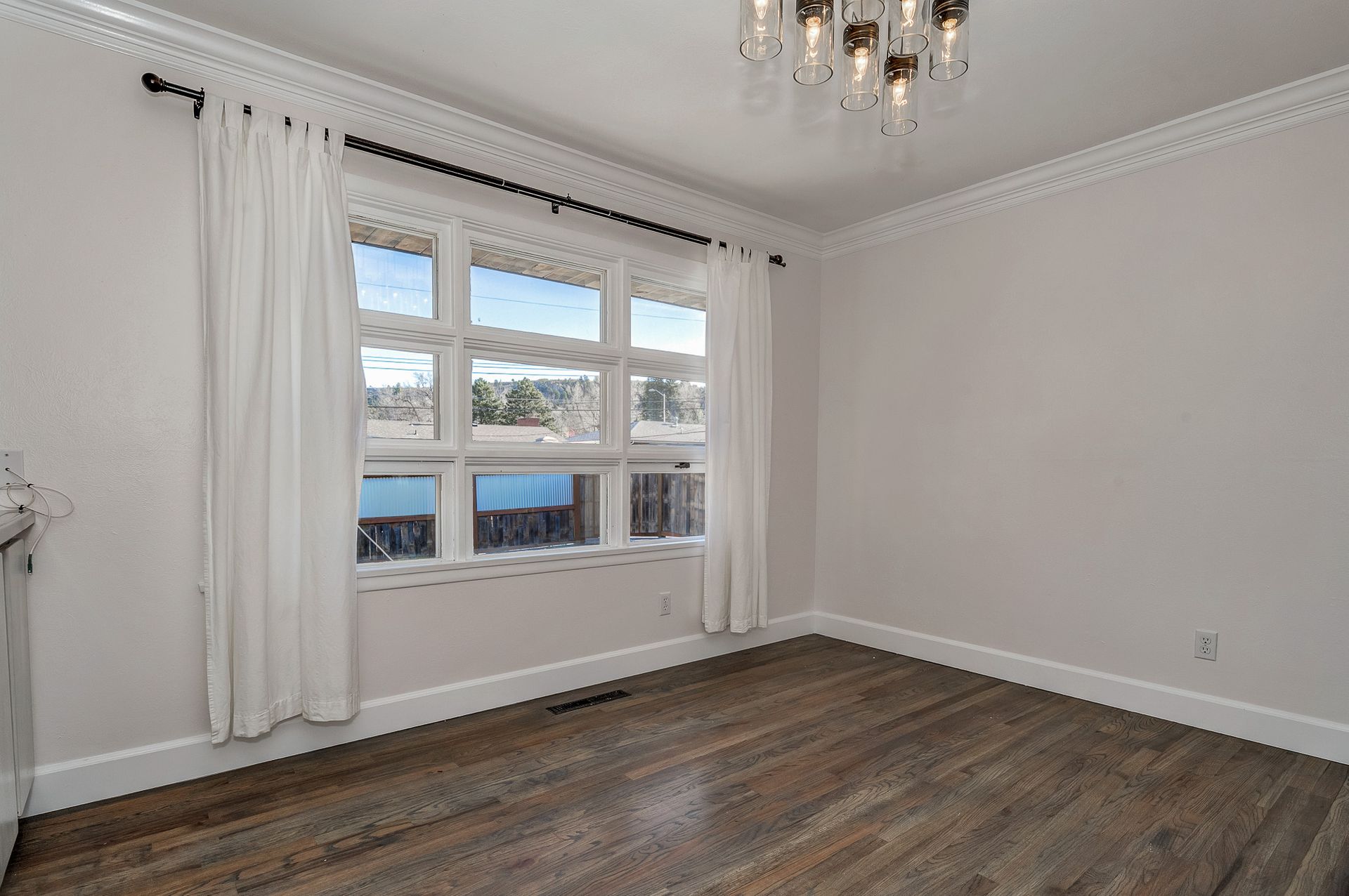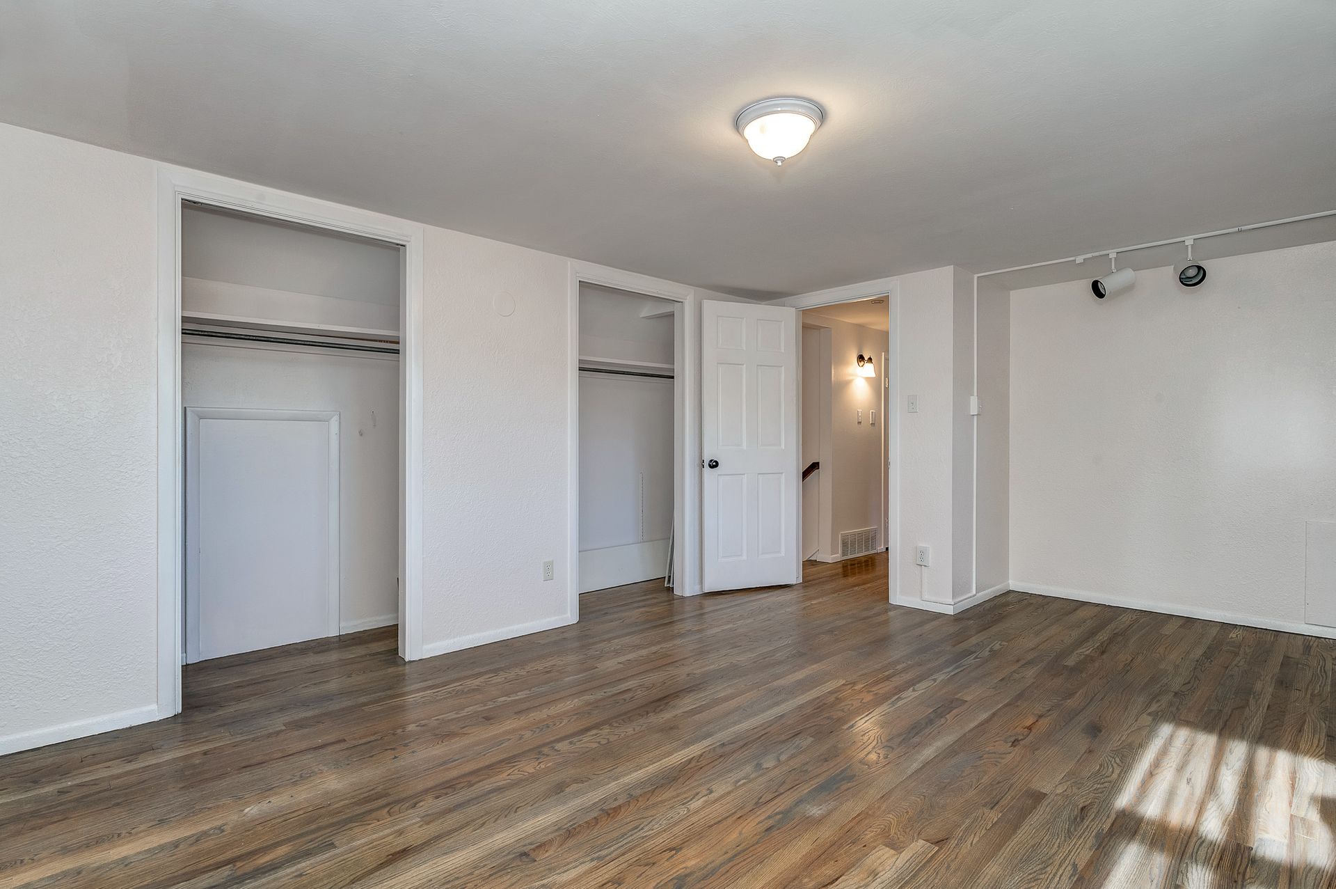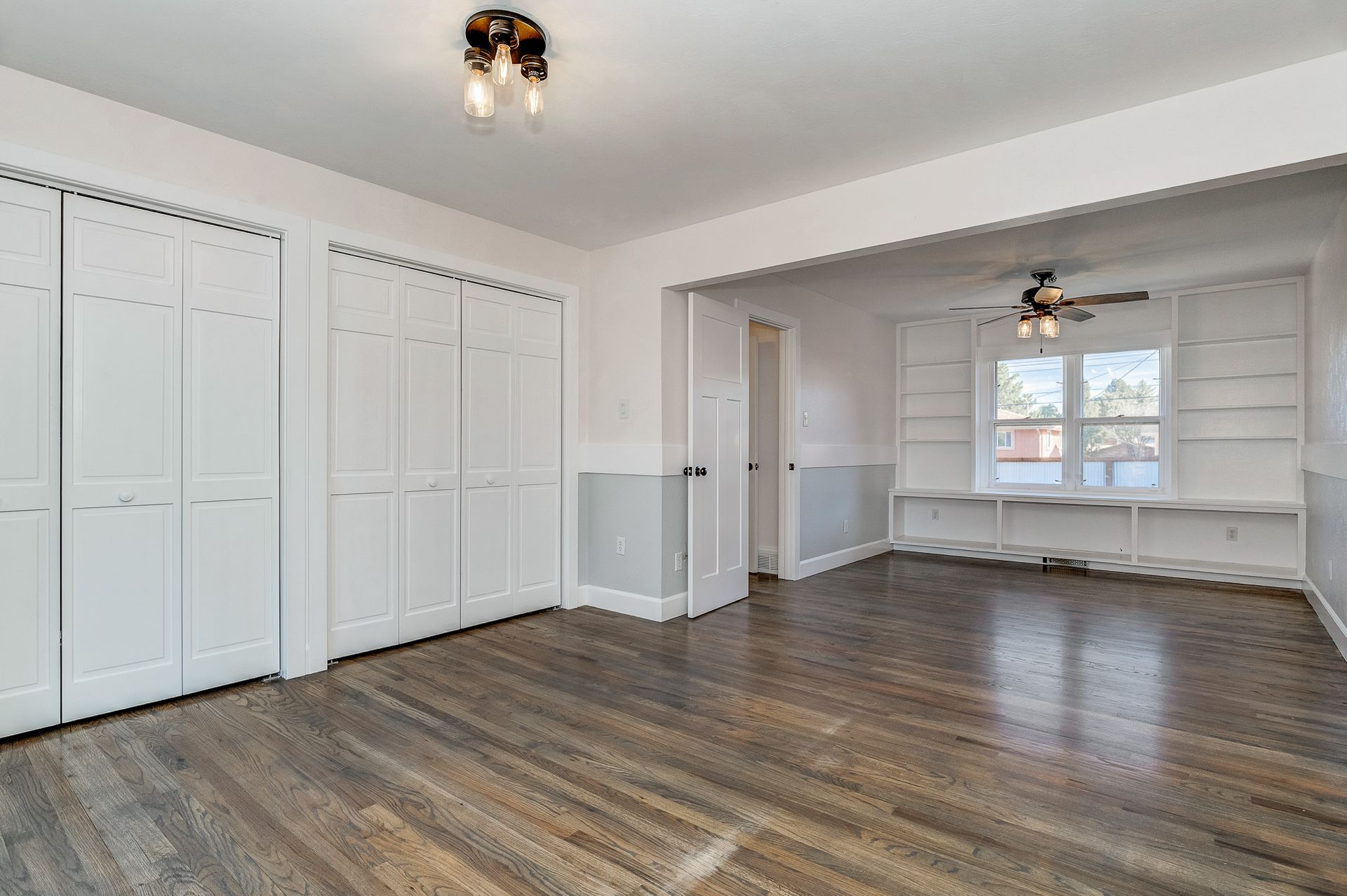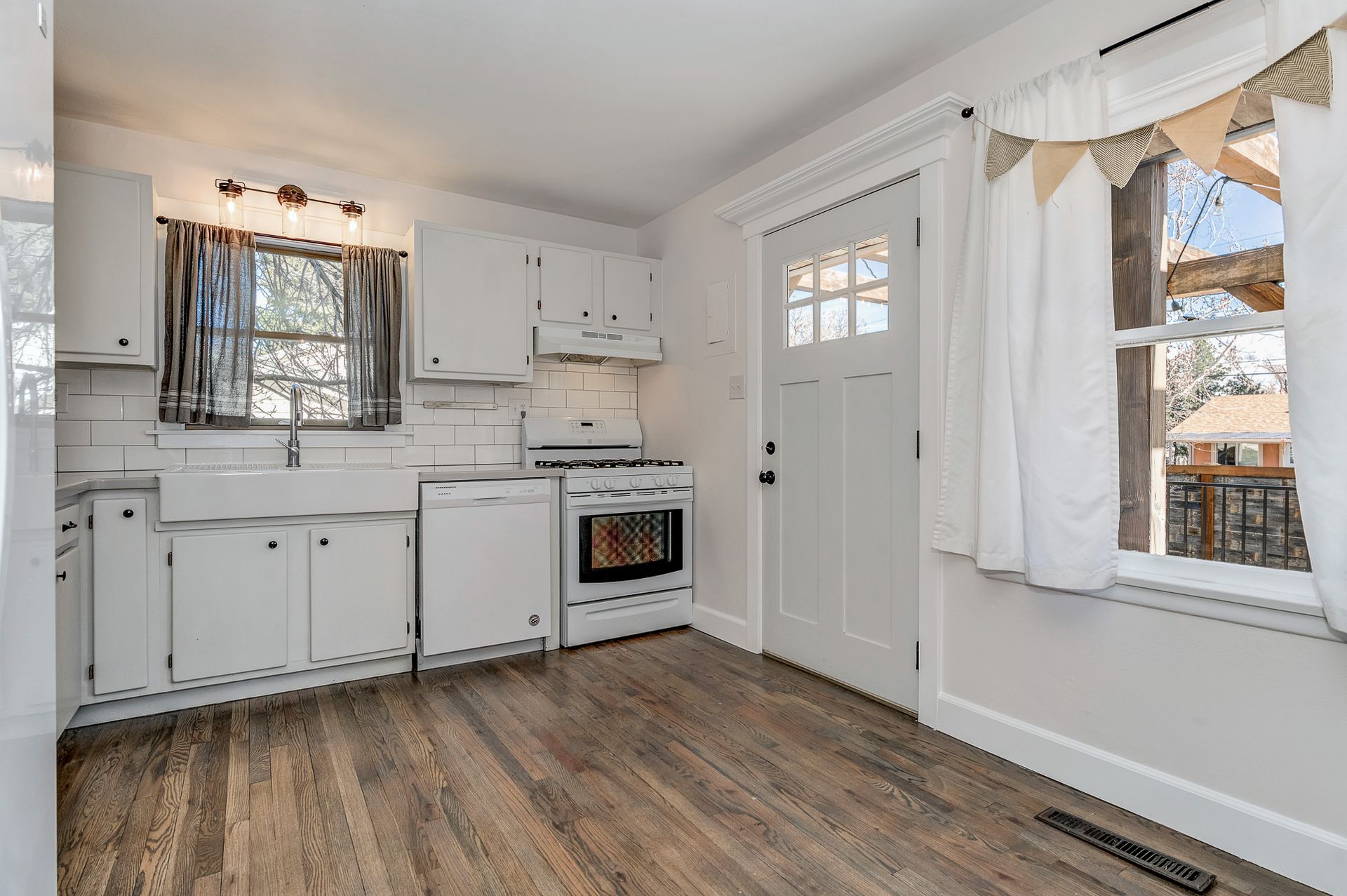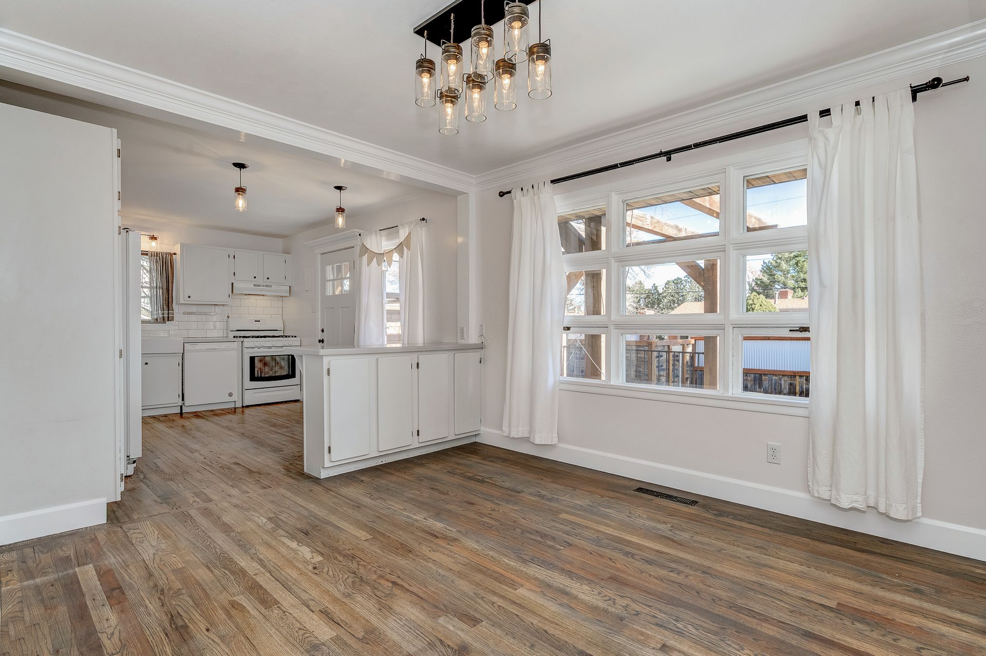 The curb appeal alone will draw you in with a freshly painted exterior and red brick accents! This home is in a great central location – minutes from I25, Palmer Park, Patty Jewett Golf Course, Colorado Country Club, shopping, businesses and schools – you can’t miss beautiful Audubon Park across the street! The interior has real hardwood flooring throughout and new carpeting in the basement area. The spacious living room is accented with crown molding and no popcorn ceilings! The kitchen with gas stove/range and plenty of cabinet space walks out to back patio and has a counter bar seating and opens to the dedicated dining room. Also on the main floor is a full bath and huge master bedroom with sitting area. Fantastic natural sunlight throughout! The upper level has two very spacious bedrooms – with one bedroom having a ‘harry potter’ room! There is also a full hallway bath on the upper level. The walk-out basement area (private side entrance!) is quite charming! There is a large bedroom with loft bed; storage room which can easily be converted to a bedroom; 2nd bedroom with loft bed and awesome brick wall; ¾ hallway bath; and huge laundry area! The back area has a nice sized concrete patio with pergola, yard area with side gate, and ample parking for 4 cars in the rear driveway area. The garage is 1 car but oversized! Pikes Peak Views! Good Bones!