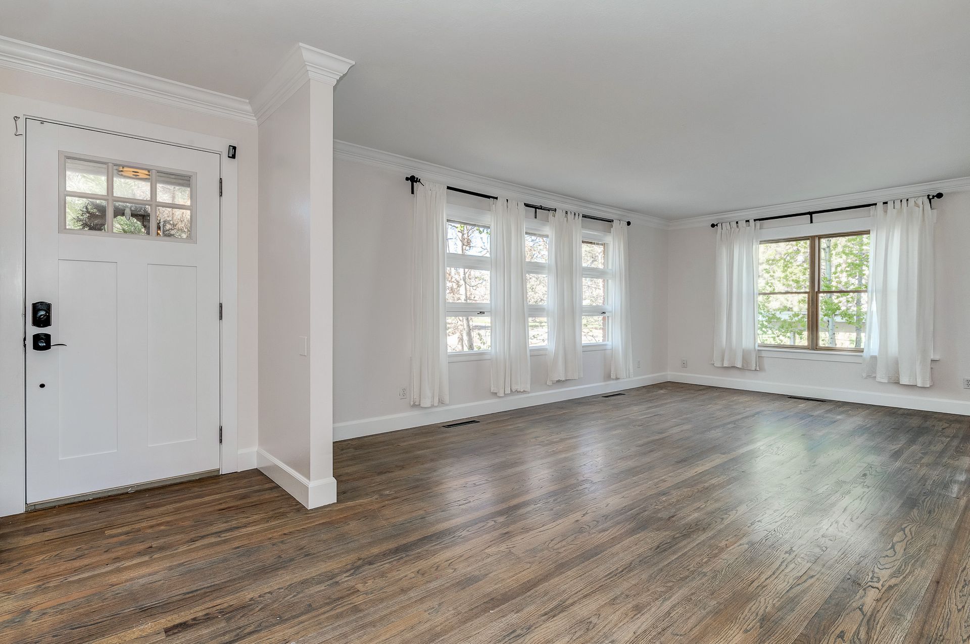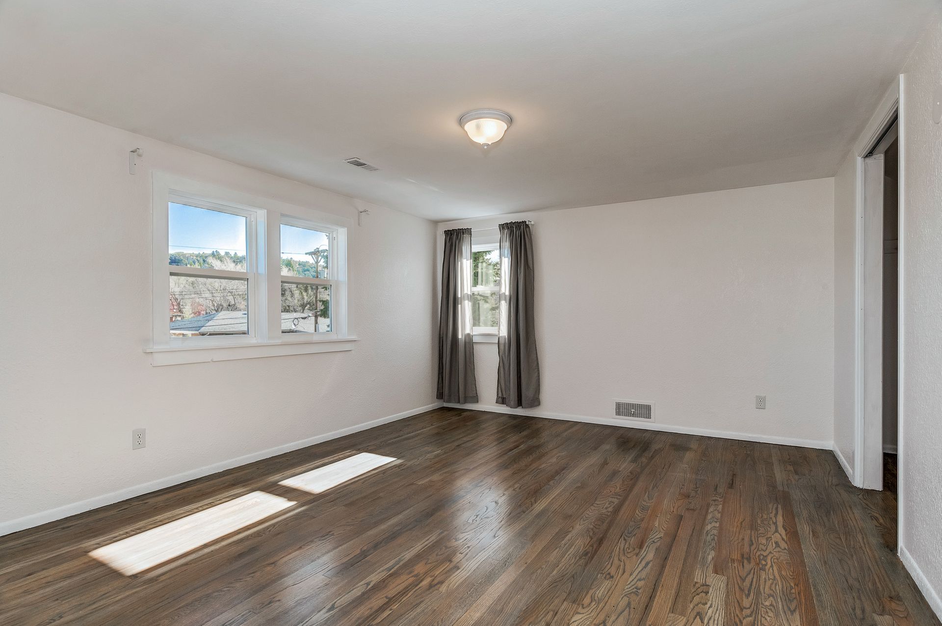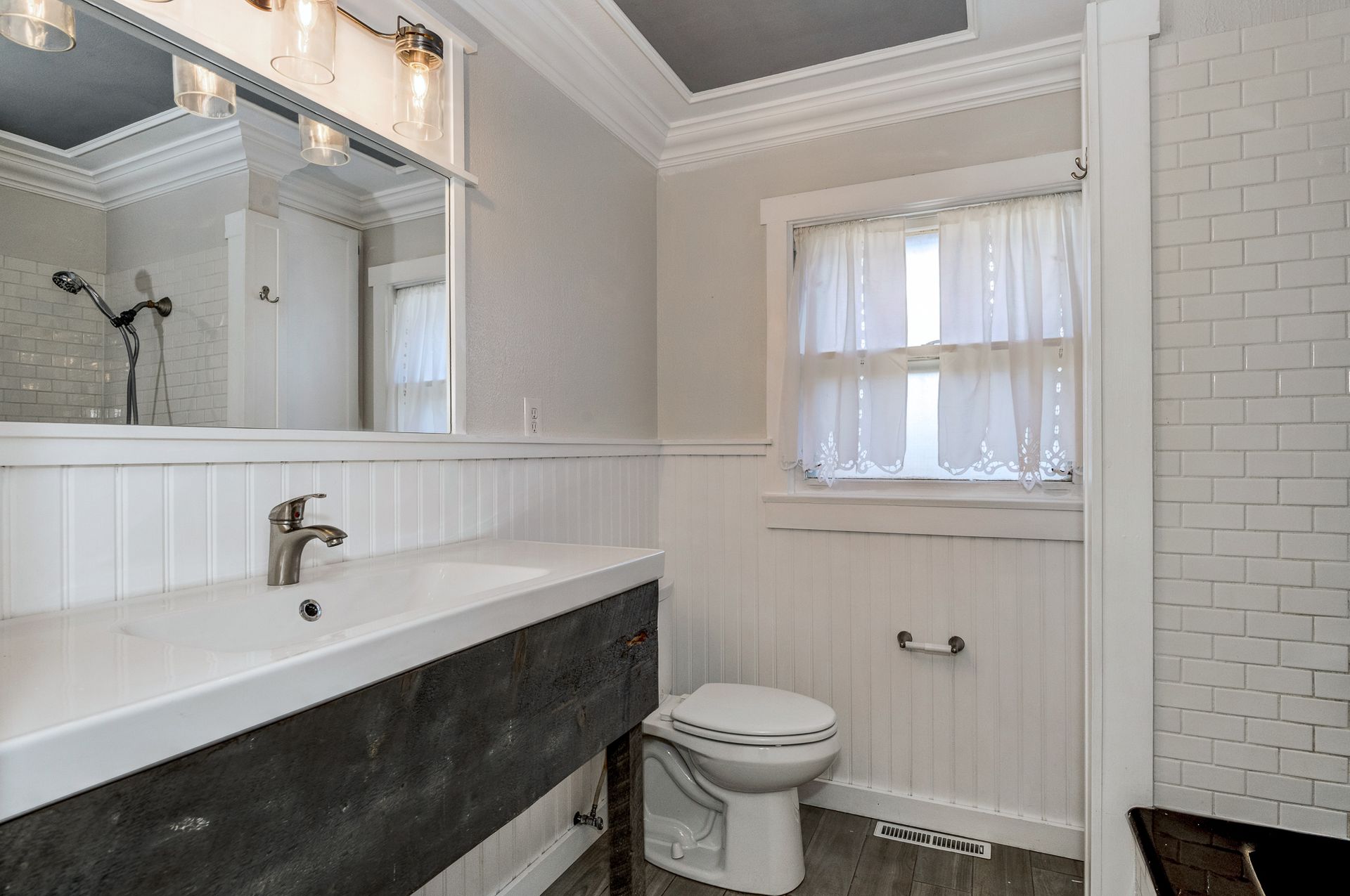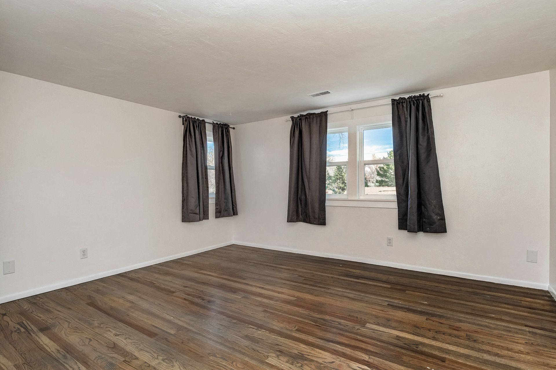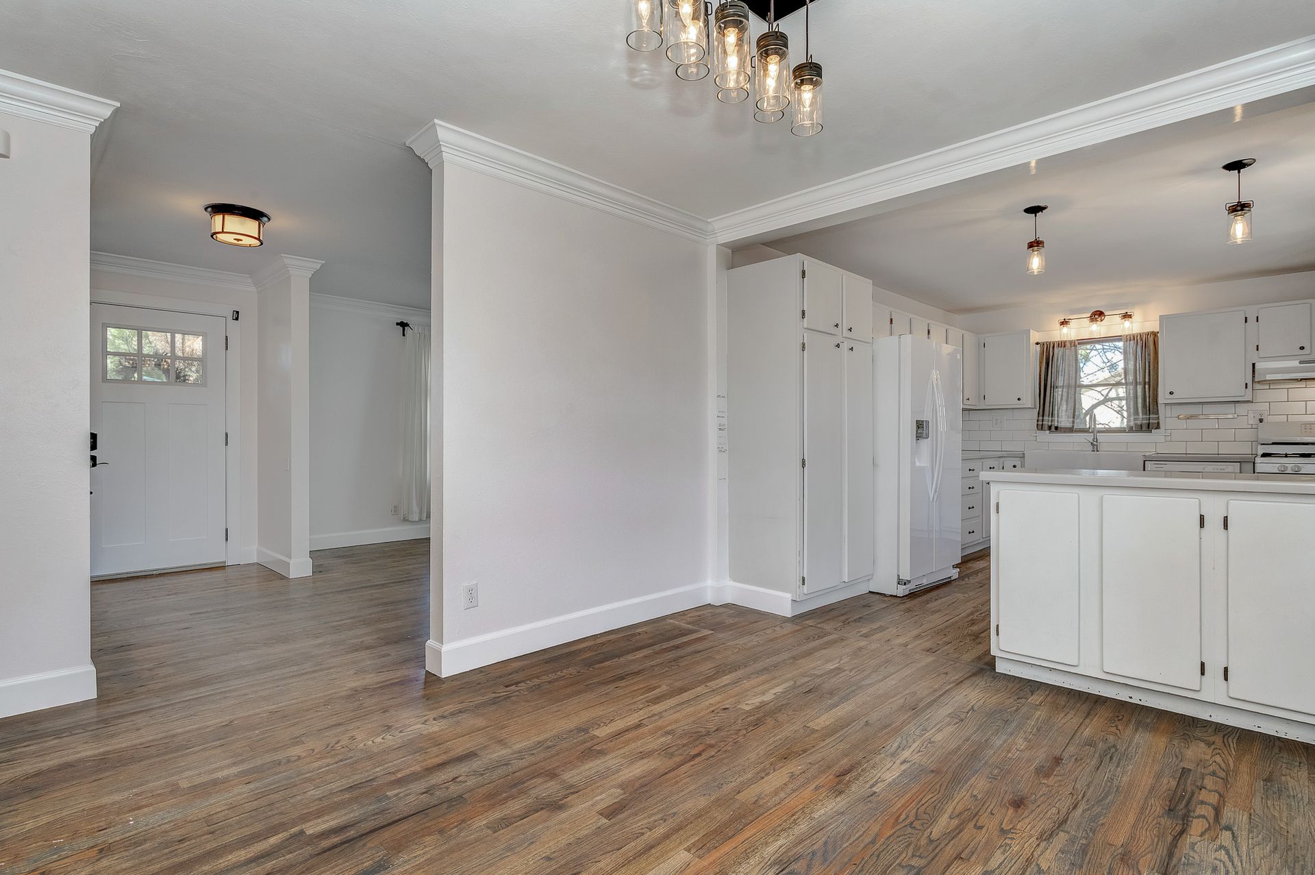 The curb appeal alone will draw you in with a freshly painted exterior and red brick accents! This home is in a great central location – minutes from I25, Palmer Park, Patty Jewett Golf Course, Colorado Country Club, shopping, businesses and schools – you can’t miss beautiful Audubon Park across the street! The interior has real hardwood flooring throughout and new carpeting in the basement area. The spacious living room is accented with crown molding and no popcorn ceilings! The kitchen with gas stove/range and plenty of cabinet space walks out to back patio and has a counter bar seating and opens to the dedicated dining room. Also on the main floor is a full bath and huge master bedroom with sitting area. Fantastic natural sunlight throughout! The upper level has two very spacious bedrooms – with one bedroom having a ‘harry potter’ room! There is also a full hallway bath on the upper level. The walk-out basement area (private side entrance!) is quite charming! There is a large bedroom with loft bed; storage room which can easily be converted to a bedroom; 2nd bedroom with loft bed and awesome brick wall; ¾ hallway bath; and huge laundry area! The back area has a nice sized concrete patio with pergola, yard area with side gate, and ample parking for 4 cars in the rear driveway area. The garage is 1 car but oversized! Pikes Peak Views! Good Bones!