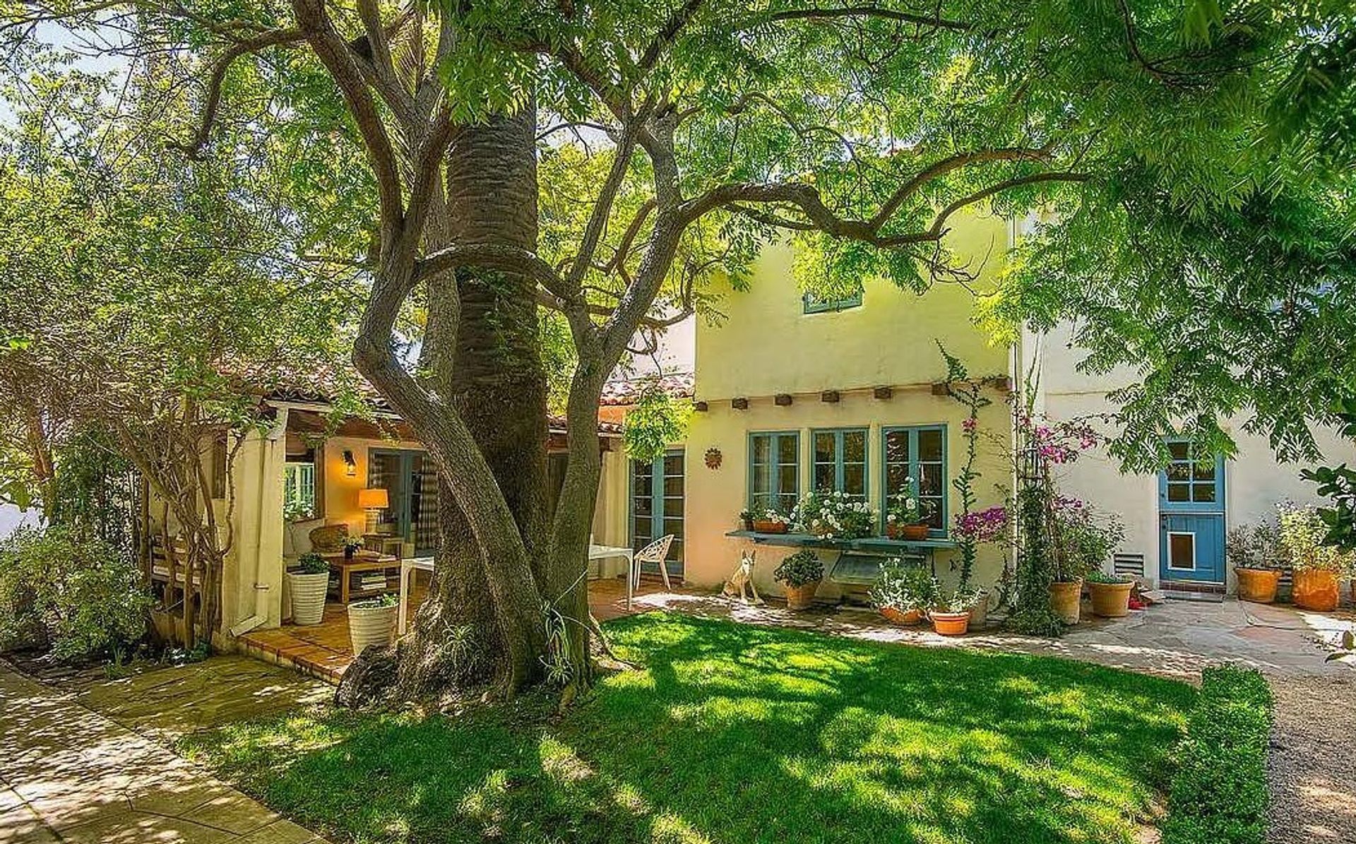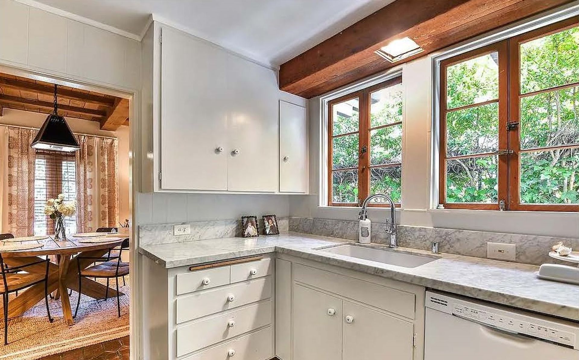 This Classic Spanish home North of Montana has retained all the desirable characteristics of the period. Charm, Charm, Charm!!! It is complete with a dramatic wood beamed cathedral ceiling, unique beamed dining room and entry, original stone floors and arched doorways with recently updated kitchen and pantry. There are French doors throughout that access the large loggia, lush grounds with fire pit and garage. The three upstairs bedrooms with recently updated en-suite primary and bath are generous in size and filled with sunlight. The downstairs bedroom/office has its own Dutch door entrance and private bath. Located close to the shops and restaurants on Montana Ave. and the Country Mart, as well as in the coveted Franklin School district.
