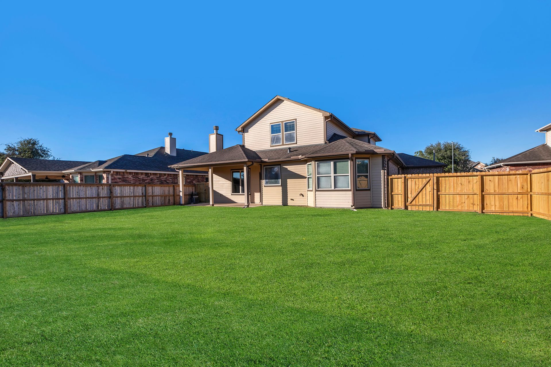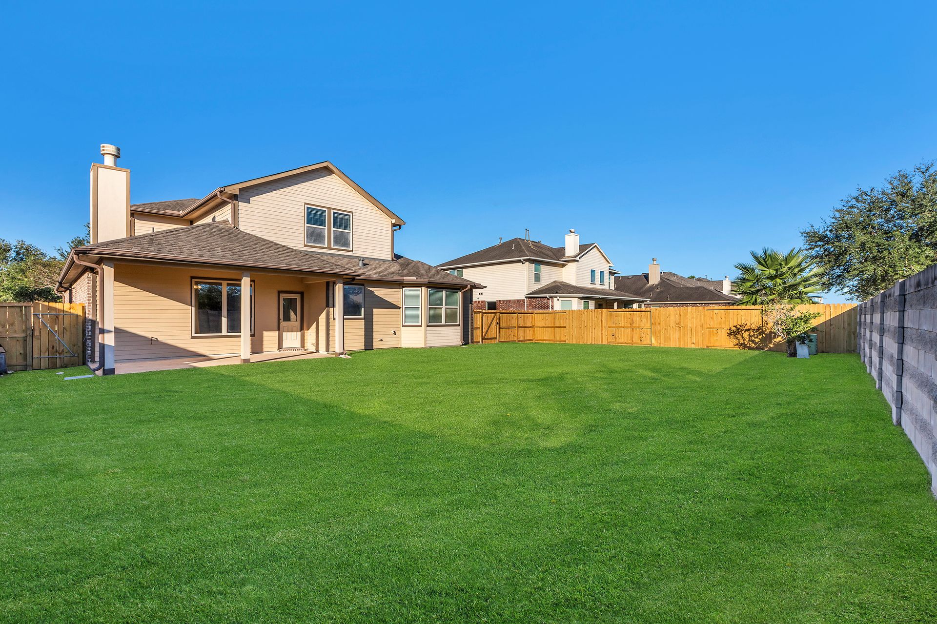 Welcome to 2506 Copper Fields Drive in the beautiful, gated community of Sterling Lakes. Enjoy the numerous amenities such as the junior Olympic pool, sports courts, scenic lakes, Texas Splash Pad and more! Conveniently located with easy access to Highway 288 and close to nearby shopping, dining, and entertainment at either Manvel or Pearland Town Centers. This well-maintained and manicured property is on a large lot with no back neighbors for privacy. This lovely property has an open floor plan and is full of hard-to-find features and upgrades including but not limited to a three-car garage, rich wood laminate floors, refinished cabinets, walk-in closets, massive island kitchen, granite counters in kitchen, ample counter space, awesome breakfast bar, incredible second primary bedroom setup upstairs with en suite bath, massive game room, huge backyard, cool covered patio, recent fencing, gutters all around, recently replaced water heater, and more! Make your appointment to see this gem today!