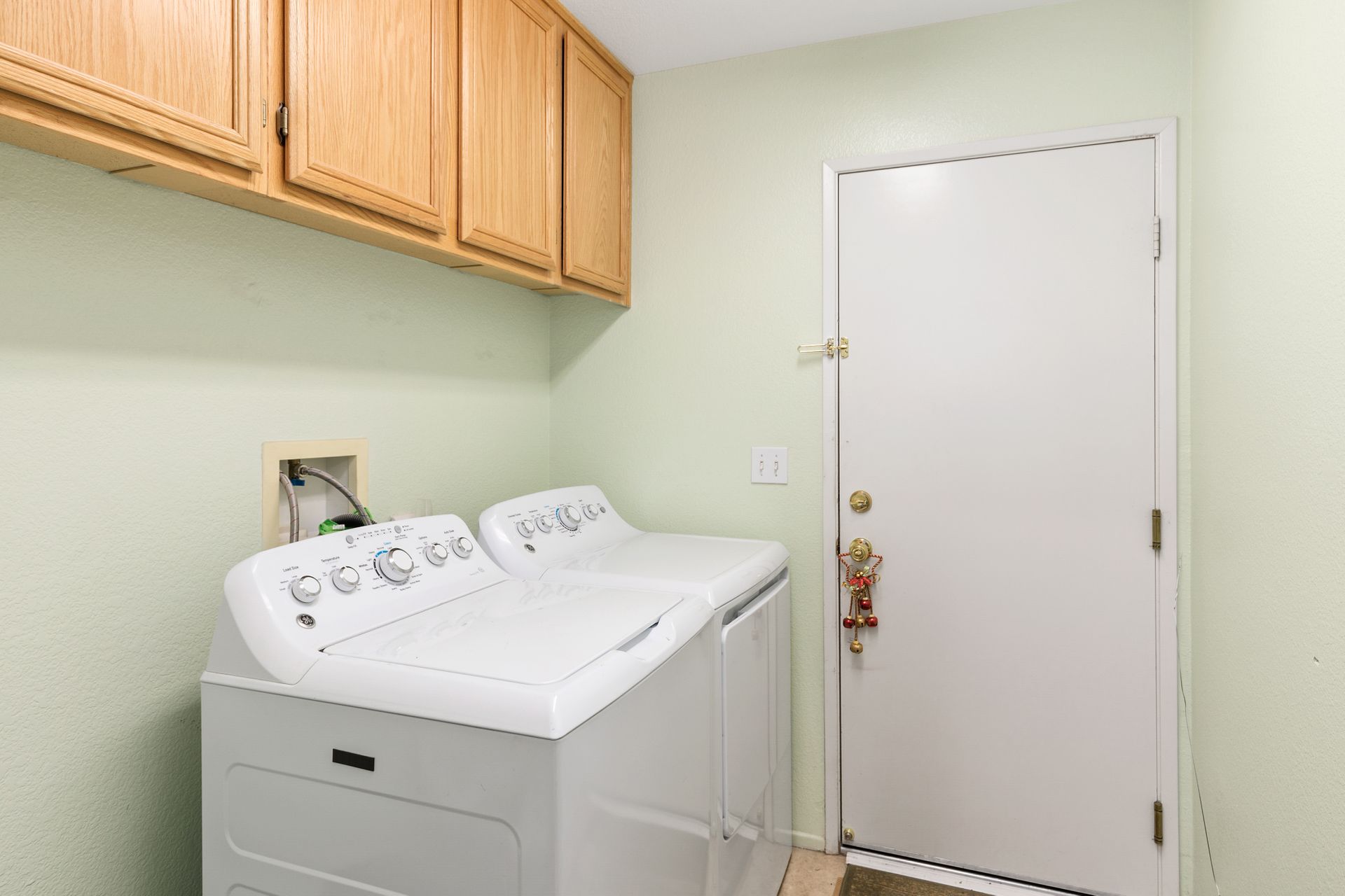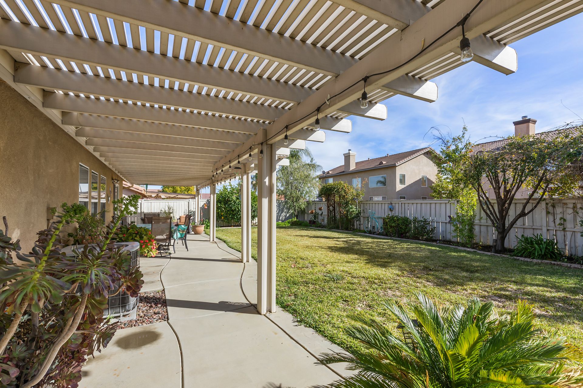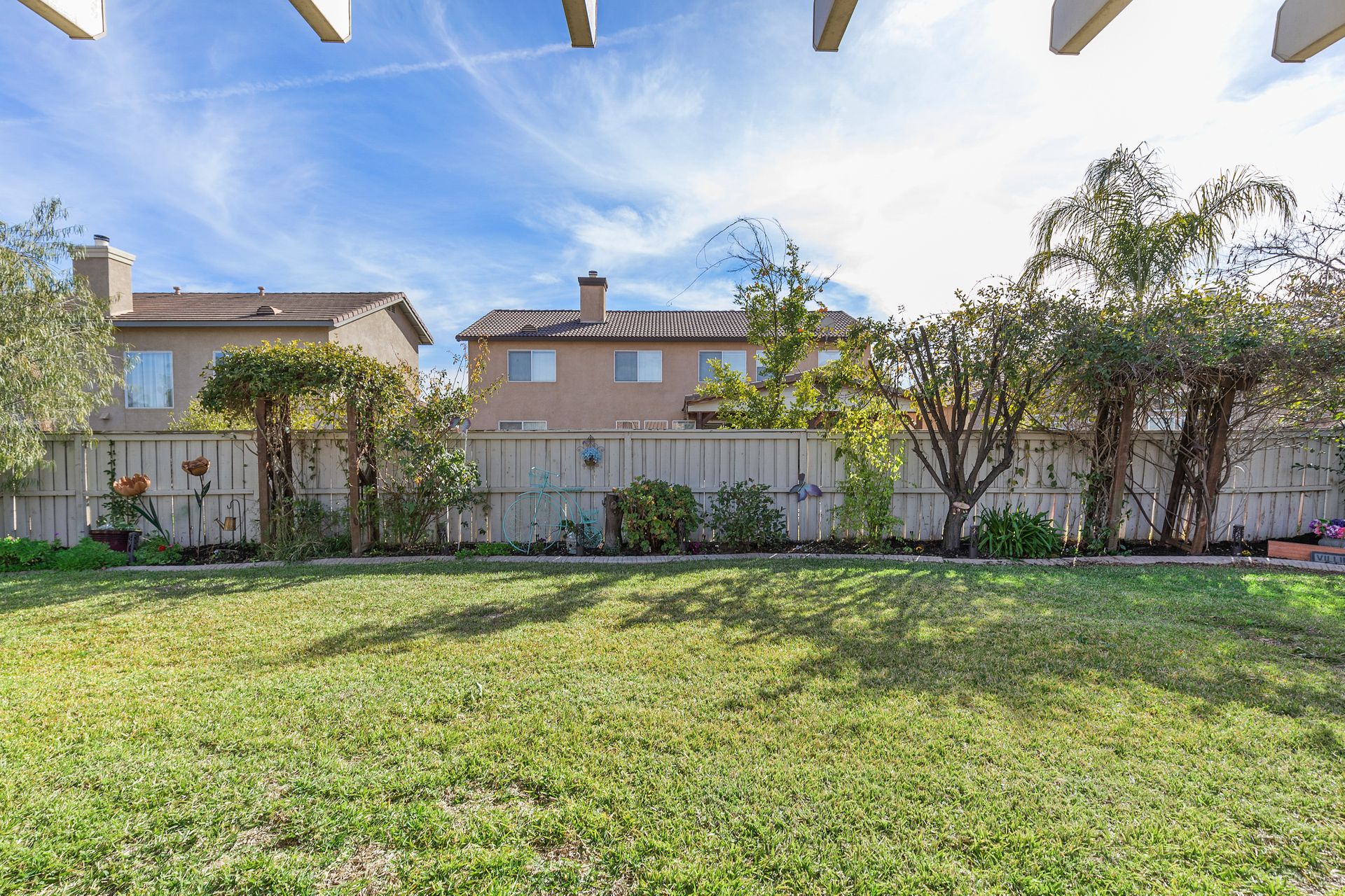 The backyard has a fully covered patio cover and was professionally landscaped boasting of green grass, mature plants and a Myer lemon tree.