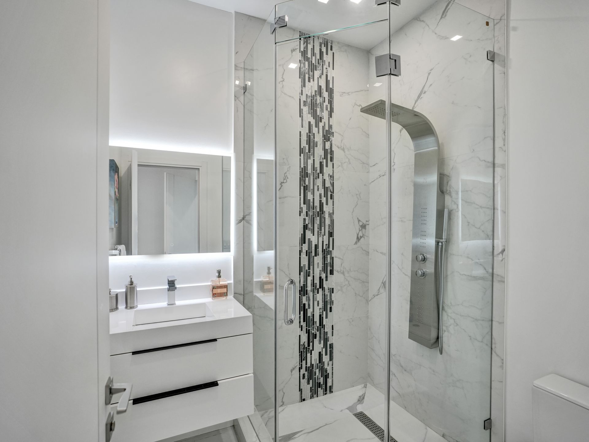 Experience the epitome of luxury in this modern, two-story residence, featuring three bedrooms and three and one-half bathrooms—all en-suite with private balconies—plus a den in the desirable Bayview Elementary School Zone. This intelligent, wired home is graced with 10-foot high ceilings and floor-to-ceiling impact glass windows, ensuring a lavish influx of natural light and a sense of expansive openness throughout.