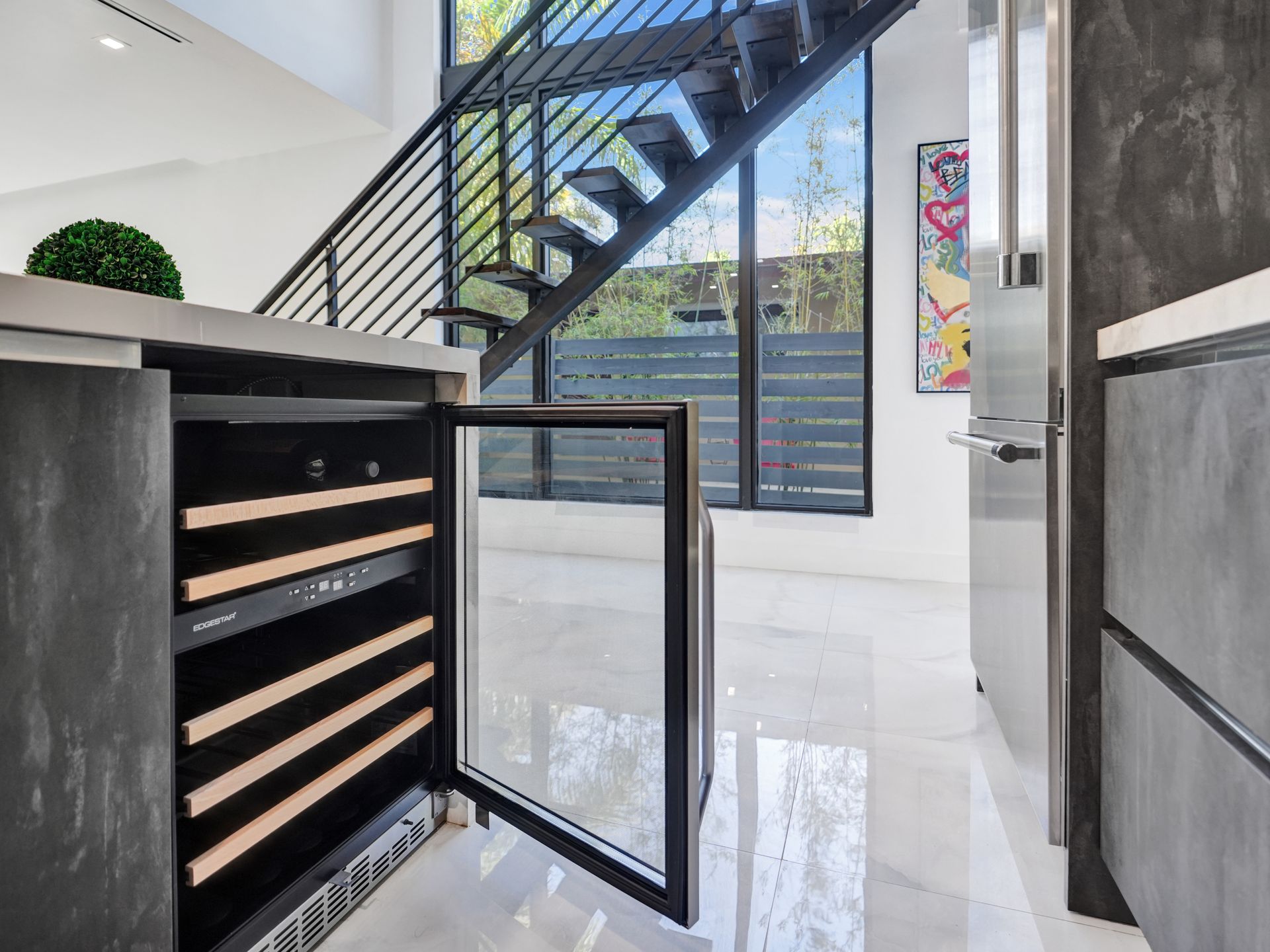 This exquisite home's heart lies in its state-of-the-art European kitchen with high-end cabinetry and appliances. It is set against an elegant, open-space floor plan that effortlessly connects living spaces with an outdoor haven, including a private swimming pool and fenced backyard. The residence also showcases a sleek staircase, enhancing the luxurious ambiance of the interior.