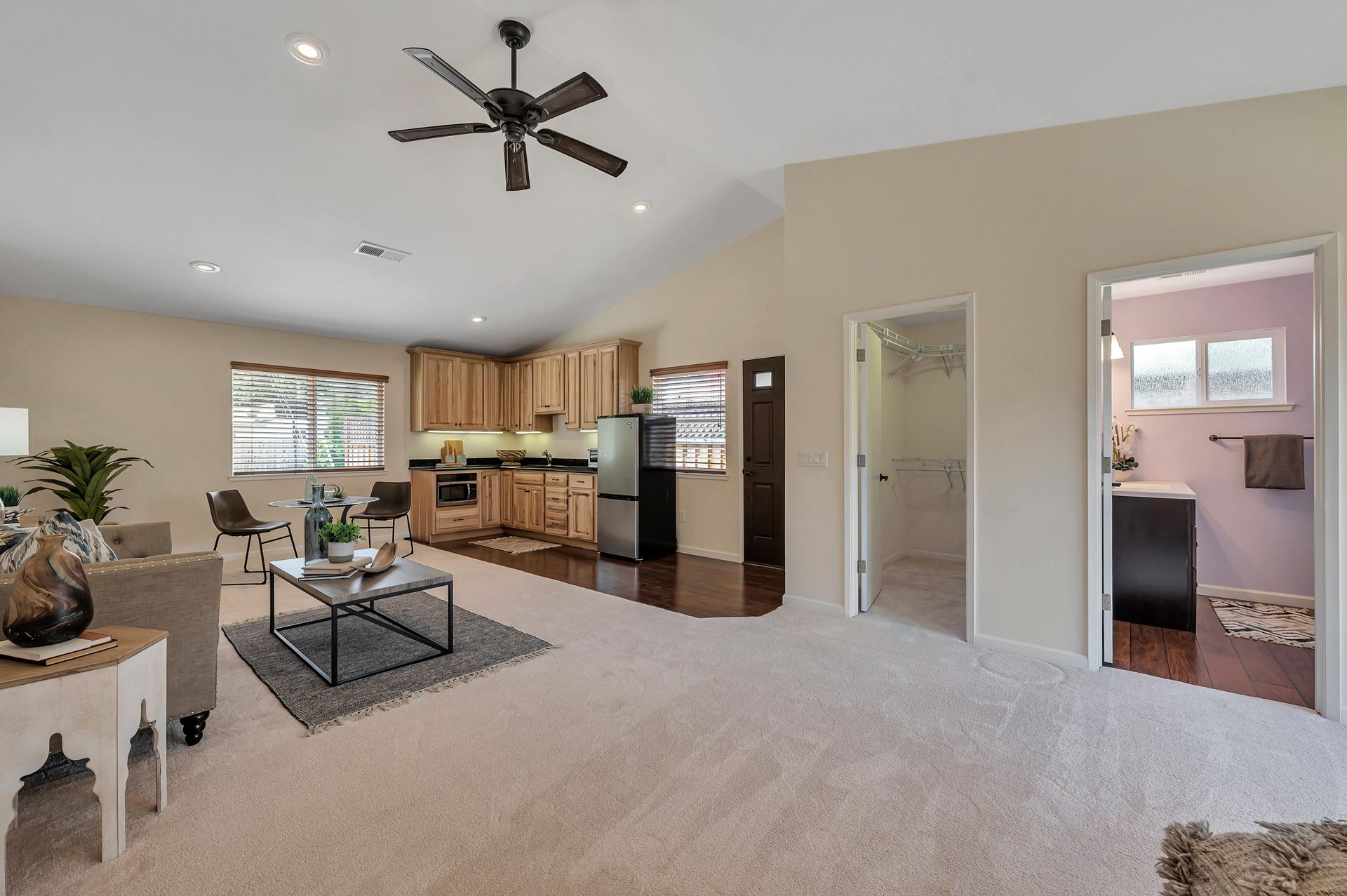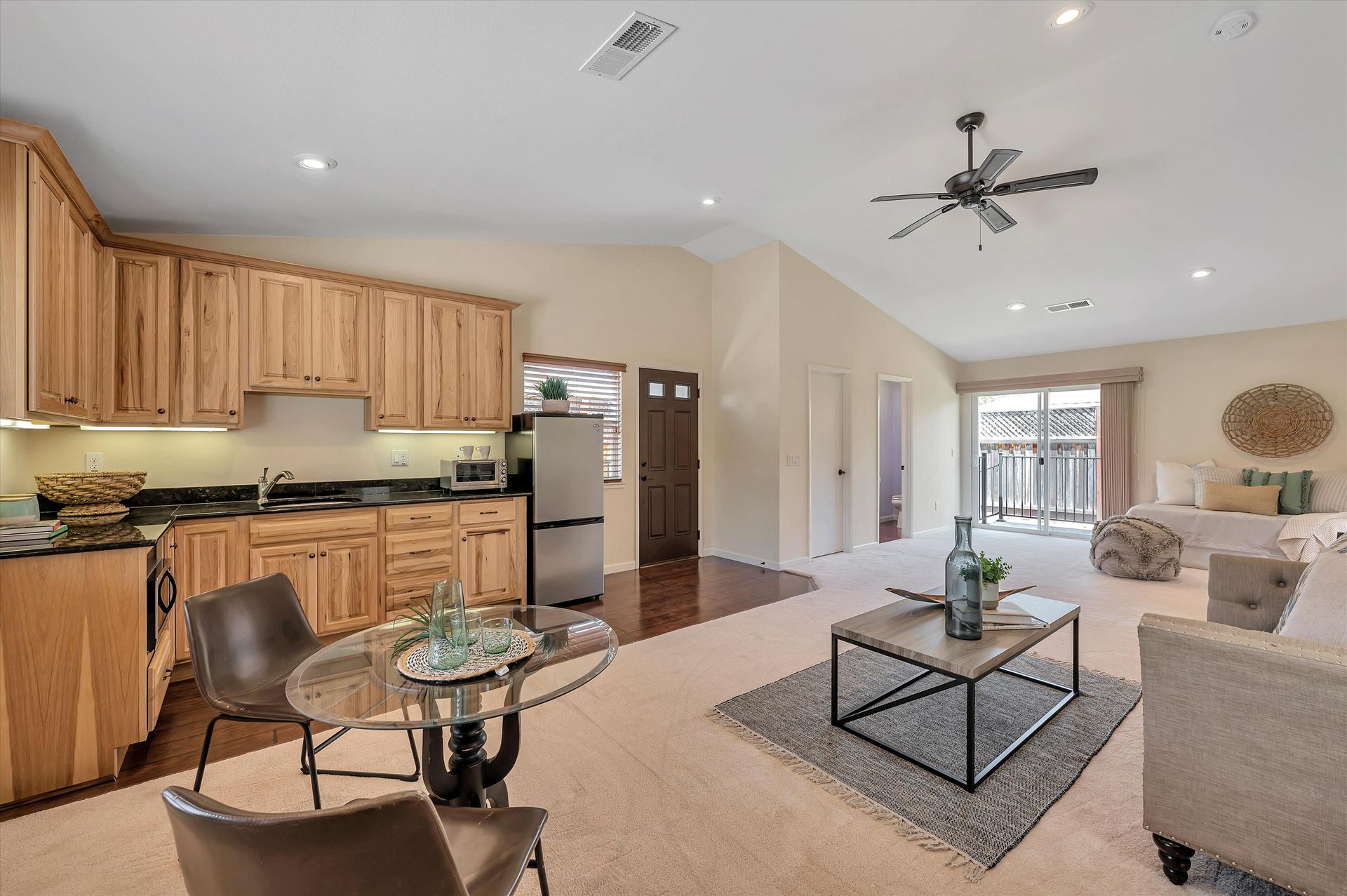 Versatile single-level home nestled in the heart of Bennett Valley offering a unique blend of comfort and functionality. The main home features three bedrooms, two full bathrooms, an updated kitchen that opens to a dedicated dining area, and a charming living room with abundant natural light, a gas fireplace insert, and convenient access to the rear yard.