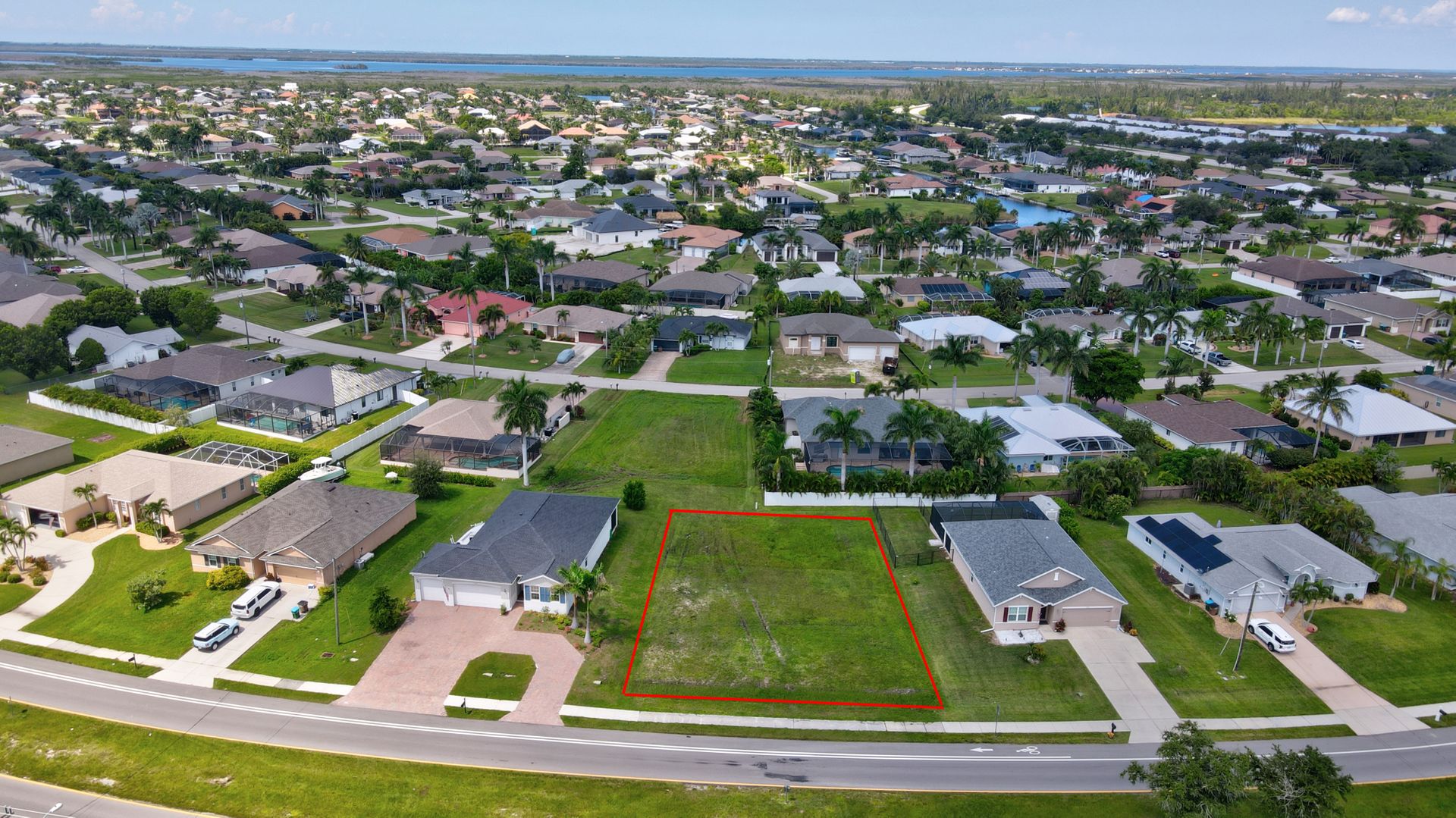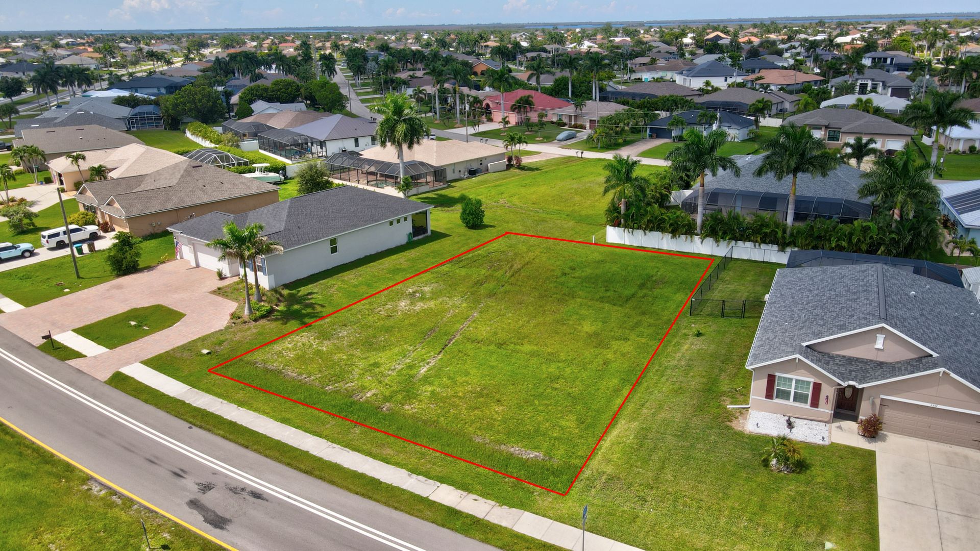 Discover the perfect location to build your dream home on this prime vacant land facing east, offering stunning sunsets from your backyard, swimming pool, or lanai. Situated on the legendary Surfside Blvd, renowned for its million-dollar waterfront homes, this lot boasts an unbeatable location! Key Features: •Prime Location: Enjoy the convenience of being just a few blocks away from the Surfside shops, where you can find medical healthcare, Lee Health medical facilities, and charming coffee shops. •Utilities Ready: Public water and central sewer have been paid by the seller, ensuring no assessment balance. •Easy Access: Veterans Parkway is just a hop, skip, and a jump away, providing quick access to Matlacha and Pine Island. Explore a variety of dining spots, entertainment venues, barrier islands, and beautiful beaches. Don’t miss this opportunity to create your own piece of paradise in one of Cape Coral’s most sought-after neighborhoods!
