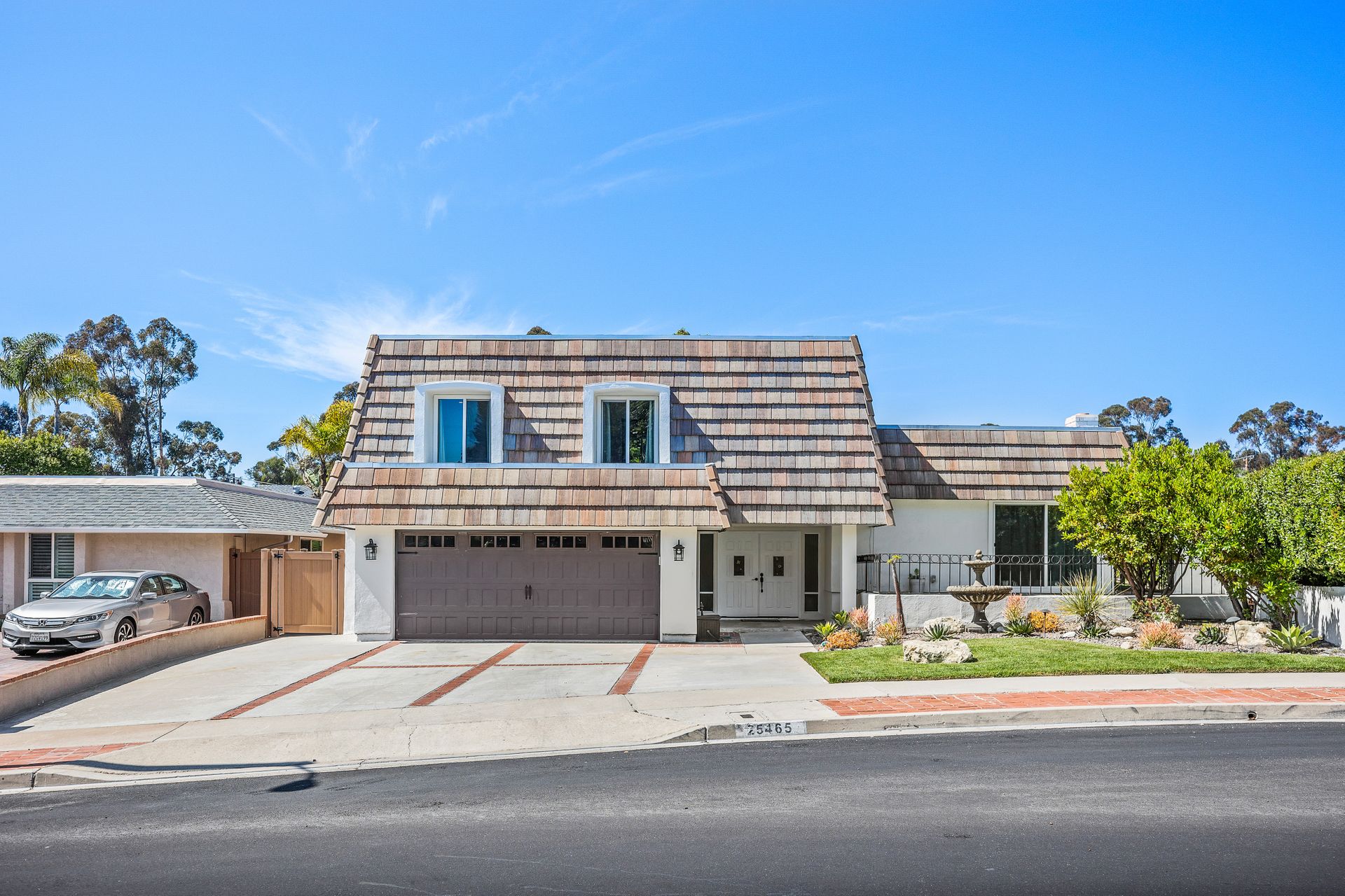 Welcome to 25465 Classic Drive, a captivating oasis nestled in the prestigious community of Mission Viejo. As you arrive at this enchanting residence, you are greeted by its stunning curb appeal and lush landscaping. Enter through the gorgeous-custom-doors to discover a world of sophistication, where every detail has been meticulously crafted to perfection. The grand foyer beckons you with high ceilings, half-turn stairs, light oak flooring, an abundance of natural light and an open floor plan seamlessly flowing into the heart of the home. The gourmet kitchen is a culinary masterpiece, featuring top-of-the-line stainless steel appliances, custom soft close cabinetry, granite island countertops and an oversized kitchen island. Retreat to the tranquil dual primary suites with luxurious ensuite bathrooms and walk-in closets. The additional two bedrooms and two bathrooms ensure that guests are treated to the same level of comfort and luxury throughout their stay. Venture outside to discover approximately 8,000-square feet of entertaining dreamscapes. The meticulously landscaped backyard is a covered patio area perfect for alfresco dining or a morning coffee featuring a plethora of greenery and serene surroundings. 25465 Classic Drive is more than just a house—it's a place to call home. With its exquisite craftsmanship, unparalleled elegance, and idyllic surroundings, this listing presents a rare opportunity to live a life of luxury and comfort. Don't miss your chance to experience the epitome of Southern California living—schedule your private tour today and embrace the lifestyle you've always dreamed of.