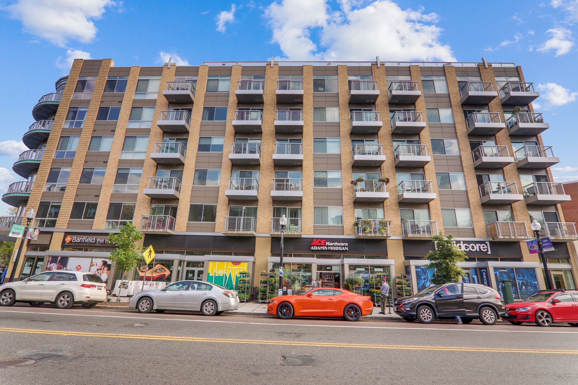 Rare find studio with balcony in the heart of Adams Morgan. This unit is move-in ready. Great kitchen with plenty of cabinetry, granite counters, dishwasher. There is a unit washer and dryer in the unit. Good size bathroom. While this is a studio, the open floor layout is very efficient and combined with the high ceiling makes this a very comfortable unit that feels bigger than its size. The balcony off the living area overlooking Adams Morgan is a great addition. There is a customized Murphy bed sofa system as well also with plenty of built-in storage. All appliances are energy efficient. There is a concierge in the lobby, secure resident entrance to a modern lobby with elegant waiting and sitting areas, flat screen TV and gas fireplace. There is also a stunning roof terrace with breathtaking views of DC and monuments. You also have an Ace Hardware store, SolidCore Fitness and Banefield Animal Hospital. This is a pet friendly building. Harris Teeter is just 2 blocks away, Meridian Park also a few blocks away and of course, vibrant night life in all directions as well as delightful restaurants and shops. The seller currently rents a parking space in the building garage. Parking owner contact information available. All this at a price substantially below the market! This unit is part of the DC Inclusionary Zone program which provides housing at substantially below market pricing. Prospective buyers income can not exceed $70,550 for 1 person or $80,650 if 2 people and complete short on-line course. Please go to the Department of Housing and Community Development website for additional information. Copy and paste website address in your browser. https://dhcd.dc.gov/service/inclusionary-zoning-affordable-housing-program.