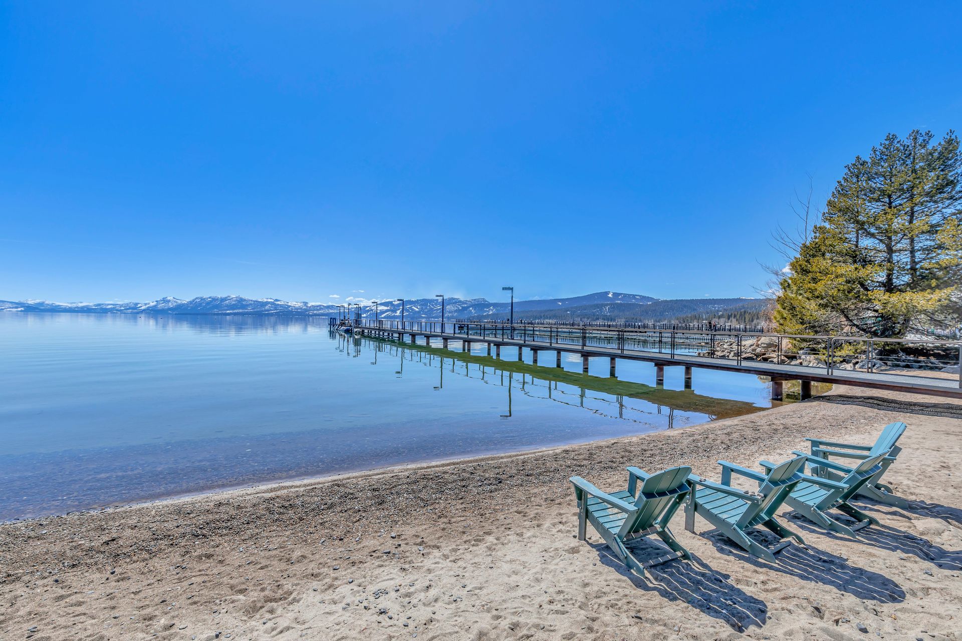 The Saint Francis condominium complex is nestled on the North Shore of Lake Tahoe with exceptional amenities including swimming pool, hot tub, sand volleyball court, horseshoe pit, tennis courts, and private beach with stunning views of Lake Tahoe and the snow-capped Sierra. Next door to the complex is a public boat ramp, and Pomin park with baseball and soccer fields. Easy access to Skylandia Park, dog friendly Lake Forest Beach, bike trail to Tahoe City, West Shore, and the Truckee River corridor. A short drive to Palisades, Alpine Meadows, Homewood, and Northstar Ski Areas. The unit is south facing, bathing the living area in natural light. The interior features an open living/dining/kitchen area, high-vaulted pine ceilings with exposed beams, recently installed gas-burning living room stove, and filtered lake and Rocky Ridge views. Large, sunny deck from which to enjoy the peaceful mountain setting.