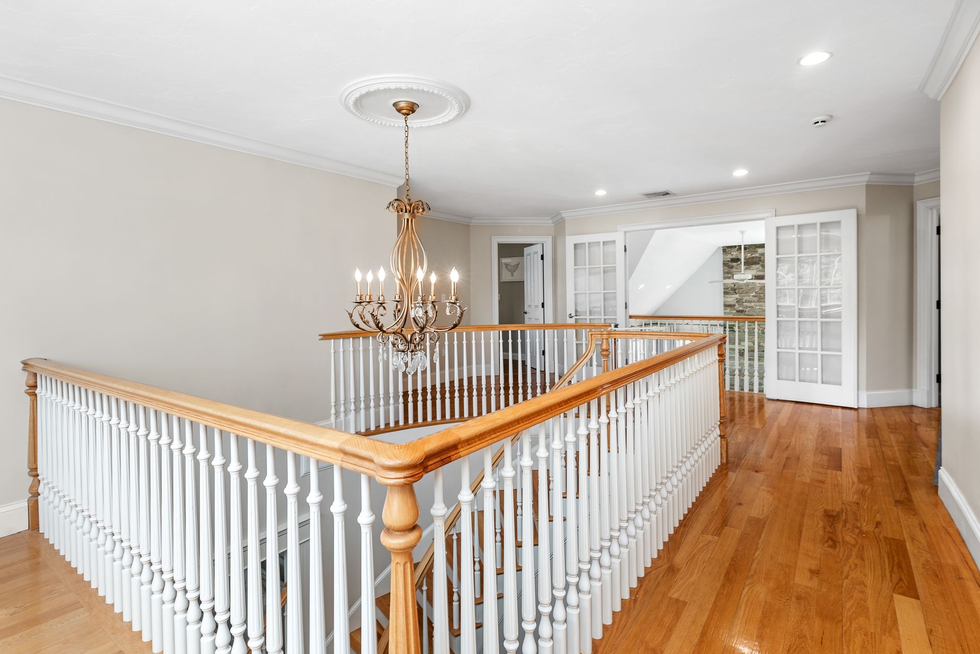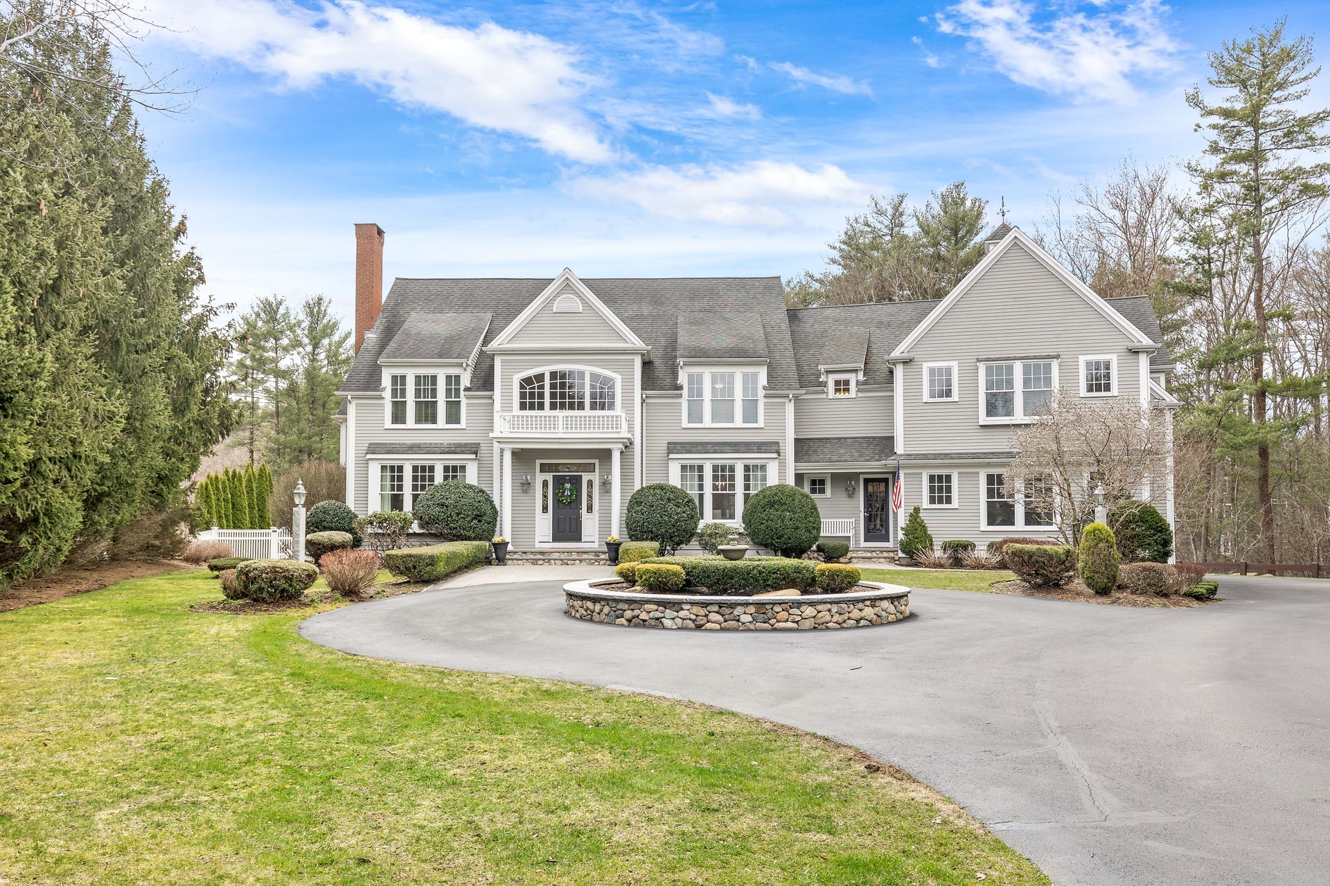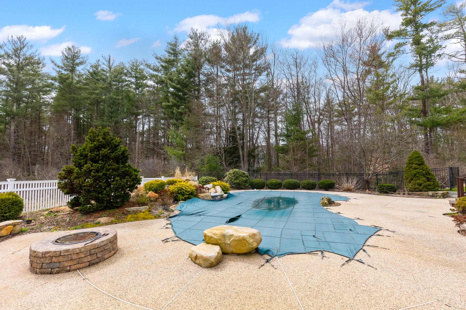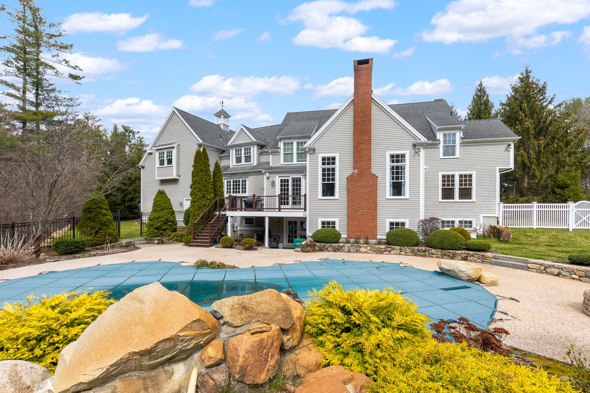 Located in Hanover's coveted Stone Meadow Estates, this sun-filled Falconi built colonial is situated on the end of a cul-de-sac. Throughout the home you will find incredible craftmanship and endless amounts of detail in moldings and woodworking. The first floor hosts an open concept kitchen featuring double ovens, two dishwashers, two sinks, ample counter space and cabinets for storage. The kitchen flows into the soaring family room with vaulted ceilings, large windows and the centerpiece- a stone floor to ceiling wood burning fireplace. Mudroom, butler's pantry, formal dining area, living room and office with built ins. Both half bathrooms complete the first floor. The second floor's large primary suite with his and her walk in closets, has an en suite bathroom with dual vanities, jacuzzi tub and walk in shower with multiple shower heads. Additionally, you will find an updated laundry room, two bedrooms with a Jack & Jill setup, guest room with en suite bathroom, and additional bedroom. All bedrooms are a generous size and have ample closet space. The third floor walk up, now utilized as a children's playroom, can be used for additional storage or living space. The fully finished basement has a full bathroom, built in bar, kitchenette with microwave and refrigerator. Walk out to your private oasis, surrounded by conservation and jump into your heated inground Gunite pool. A fenced in backyard allows your children or pets to play. Don't miss out on this beautiful home!