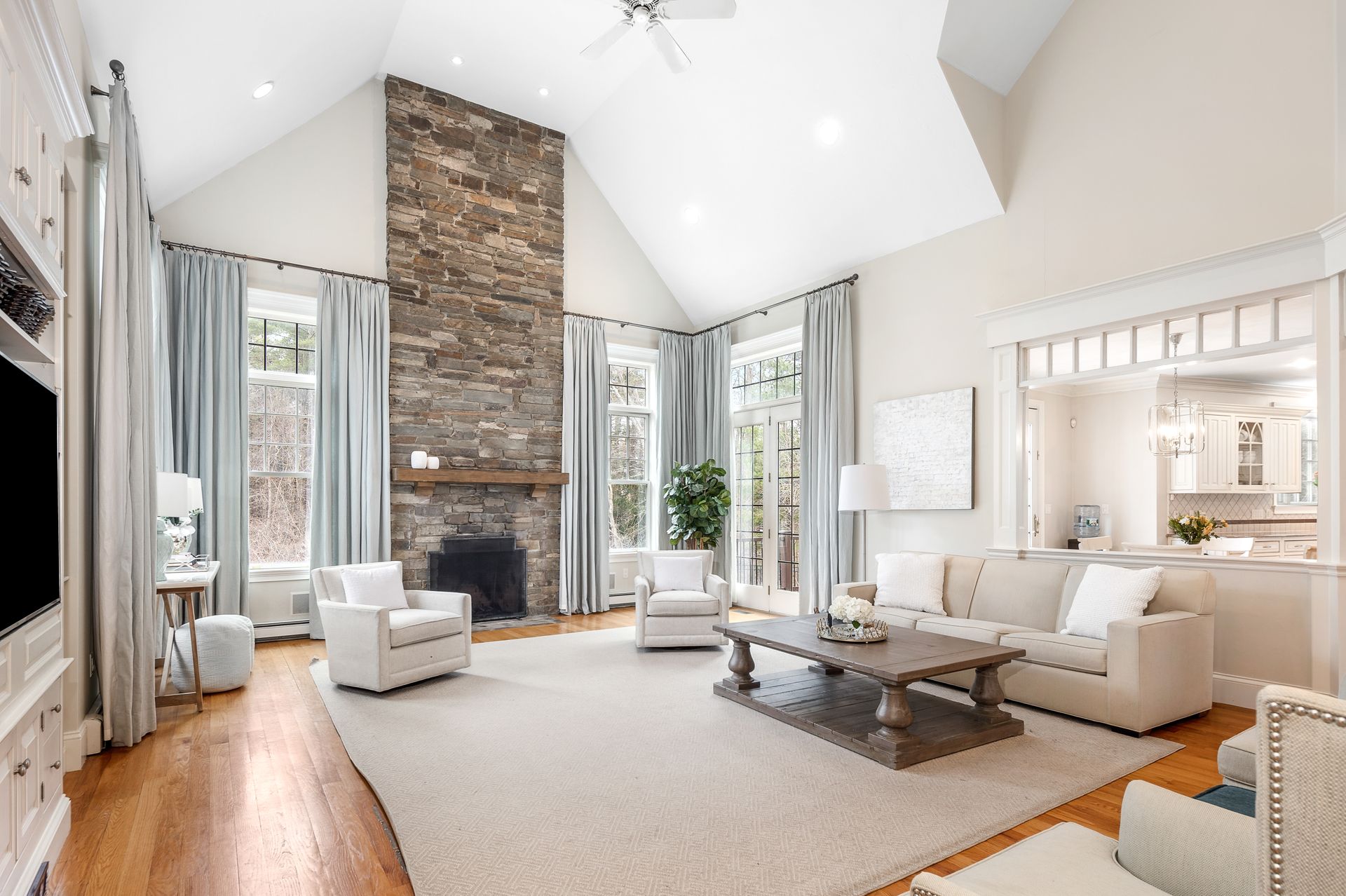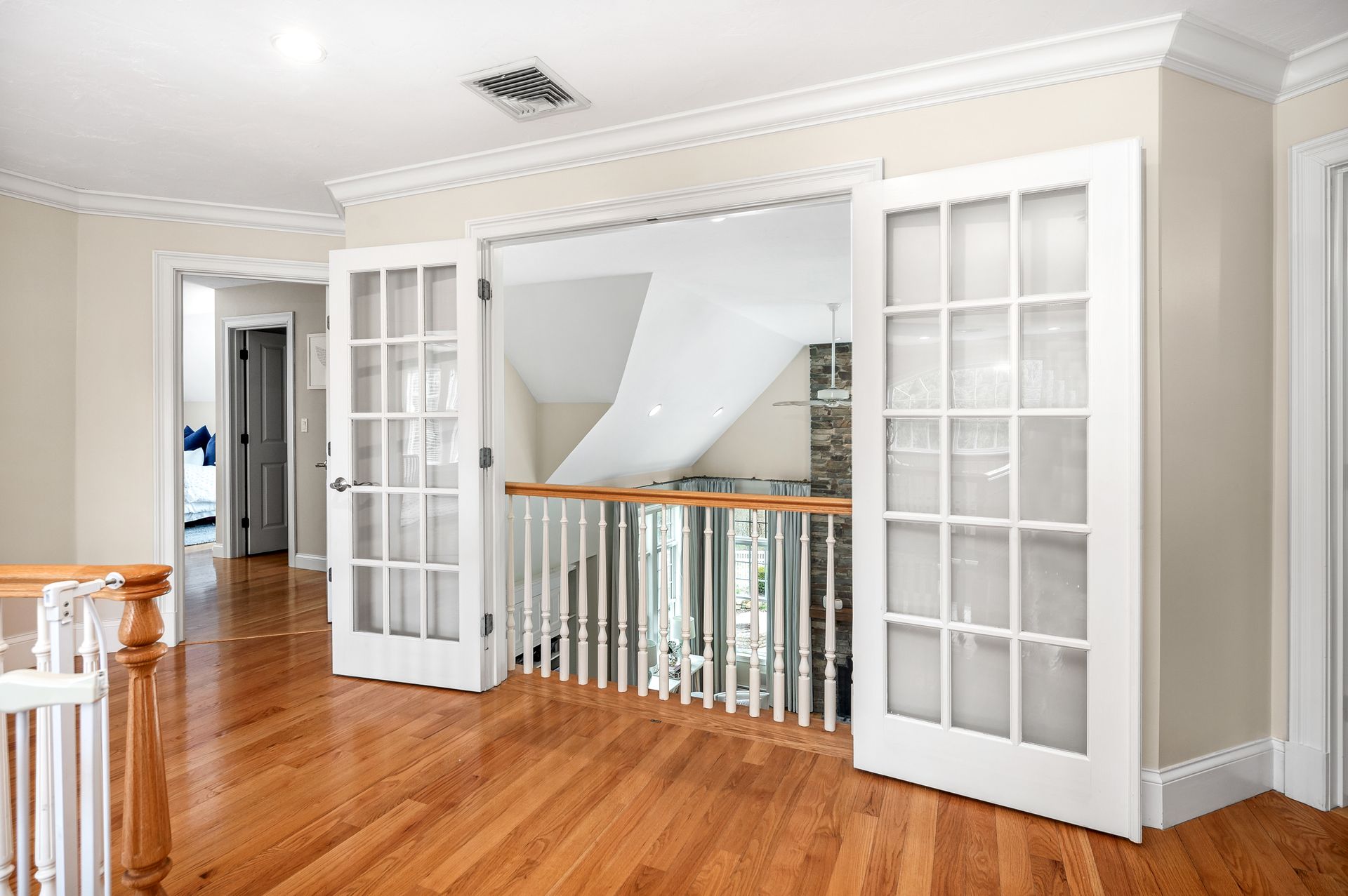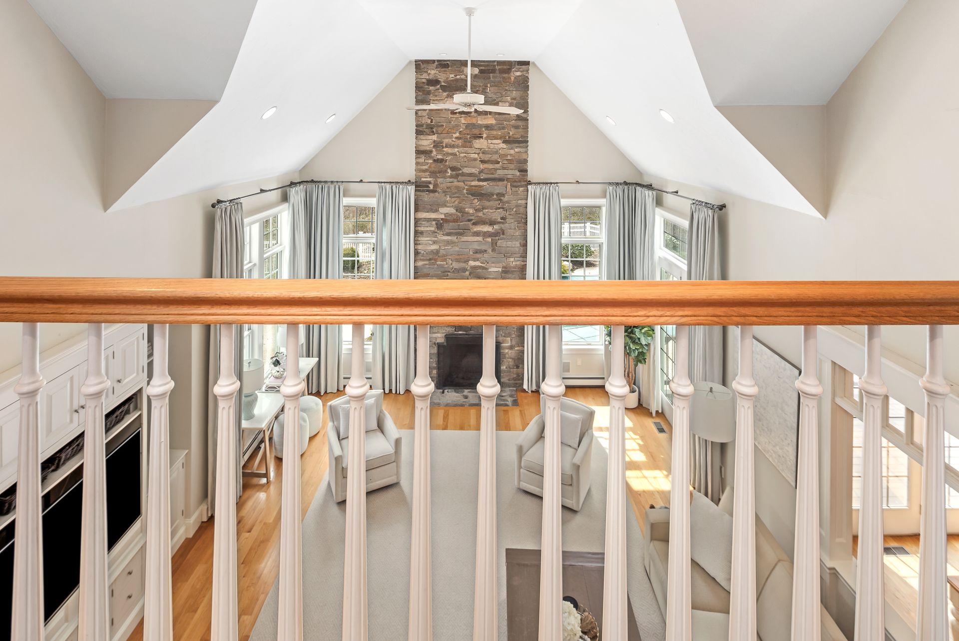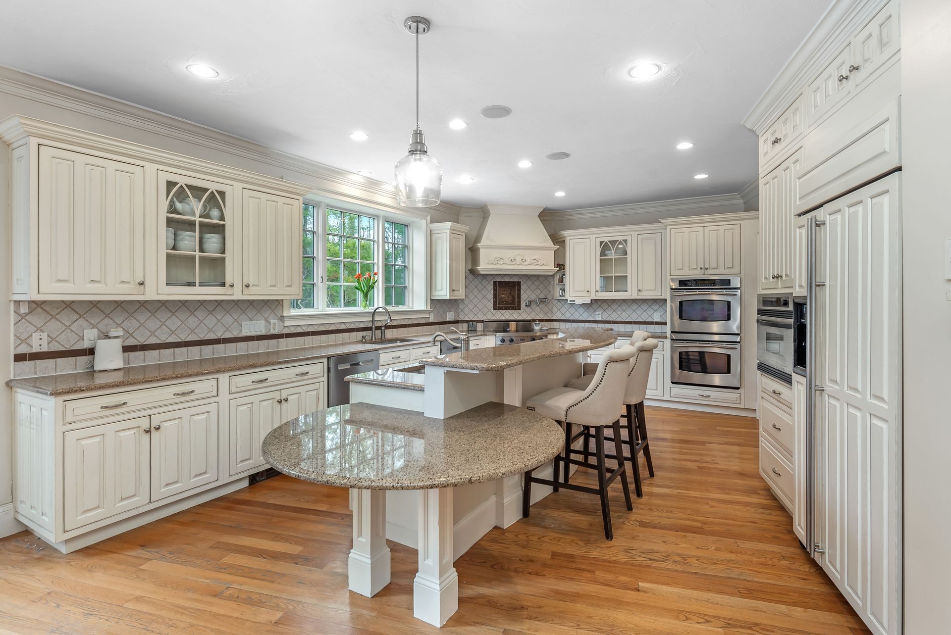 Located in Hanover's coveted Stone Meadow Estates, this sun-filled Falconi built colonial is situated on the end of a cul-de-sac. Throughout the home you will find incredible craftmanship and endless amounts of detail in moldings and woodworking. The first floor hosts an open concept kitchen featuring double ovens, two dishwashers, two sinks, ample counter space and cabinets for storage. The kitchen flows into the soaring family room with vaulted ceilings, large windows and the centerpiece- a stone floor to ceiling wood burning fireplace. Mudroom, butler's pantry, formal dining area, living room and office with built ins. Both half bathrooms complete the first floor. The second floor's large primary suite with his and her walk in closets, has an en suite bathroom with dual vanities, jacuzzi tub and walk in shower with multiple shower heads. Additionally, you will find an updated laundry room, two bedrooms with a Jack & Jill setup, guest room with en suite bathroom, and additional bedroom. All bedrooms are a generous size and have ample closet space. The third floor walk up, now utilized as a children's playroom, can be used for additional storage or living space. The fully finished basement has a full bathroom, built in bar, kitchenette with microwave and refrigerator. Walk out to your private oasis, surrounded by conservation and jump into your heated inground Gunite pool. A fenced in backyard allows your children or pets to play. Don't miss out on this beautiful home!