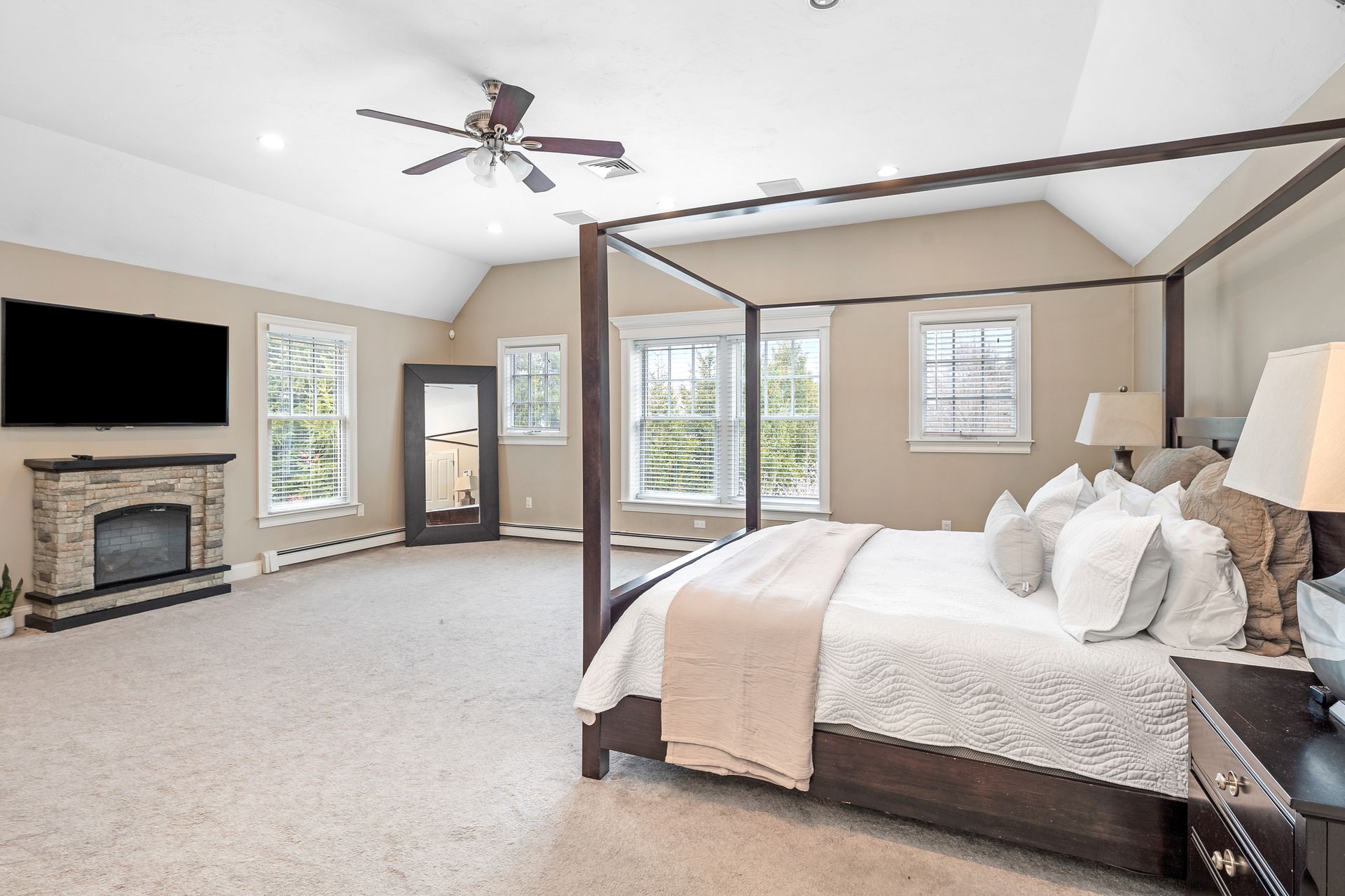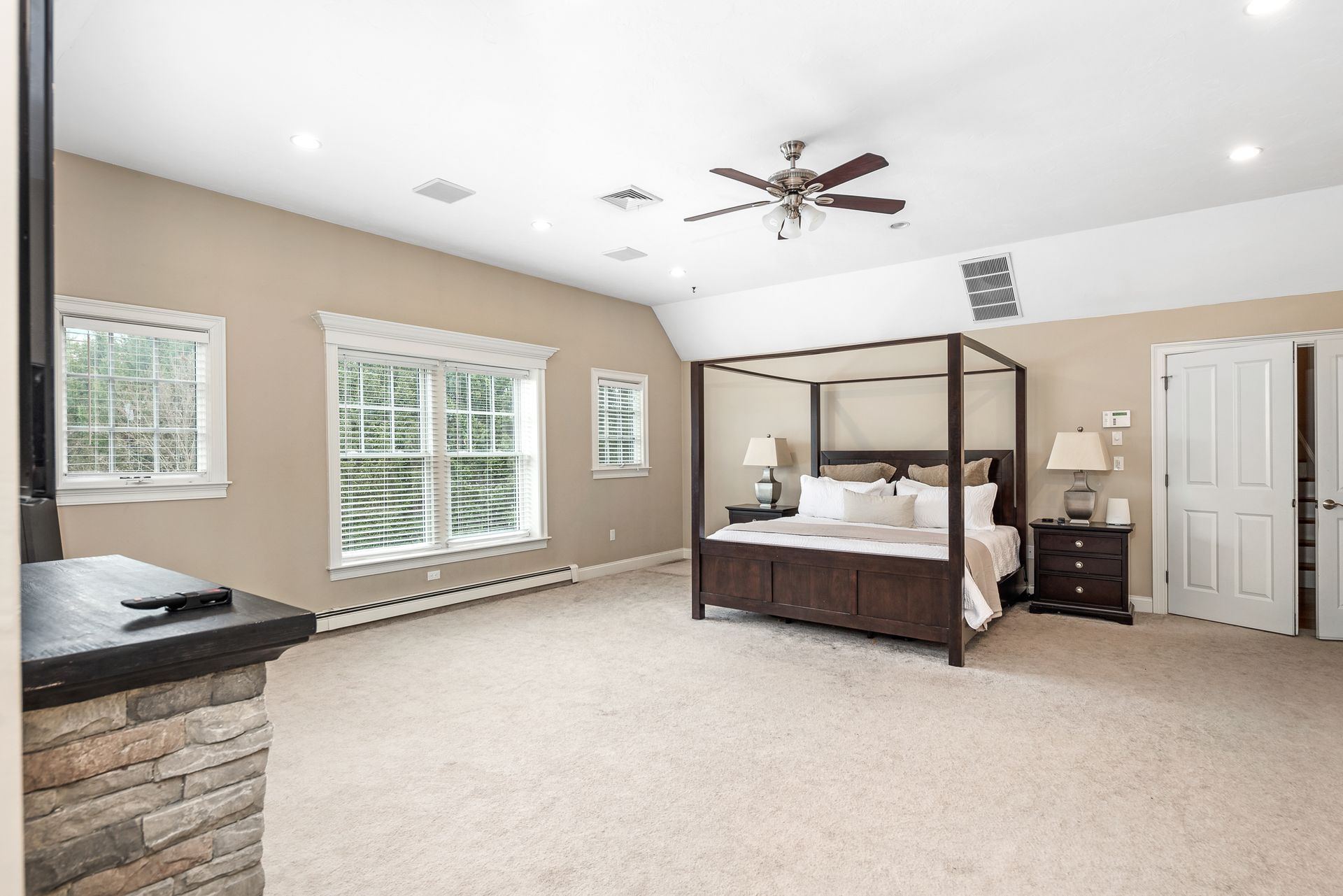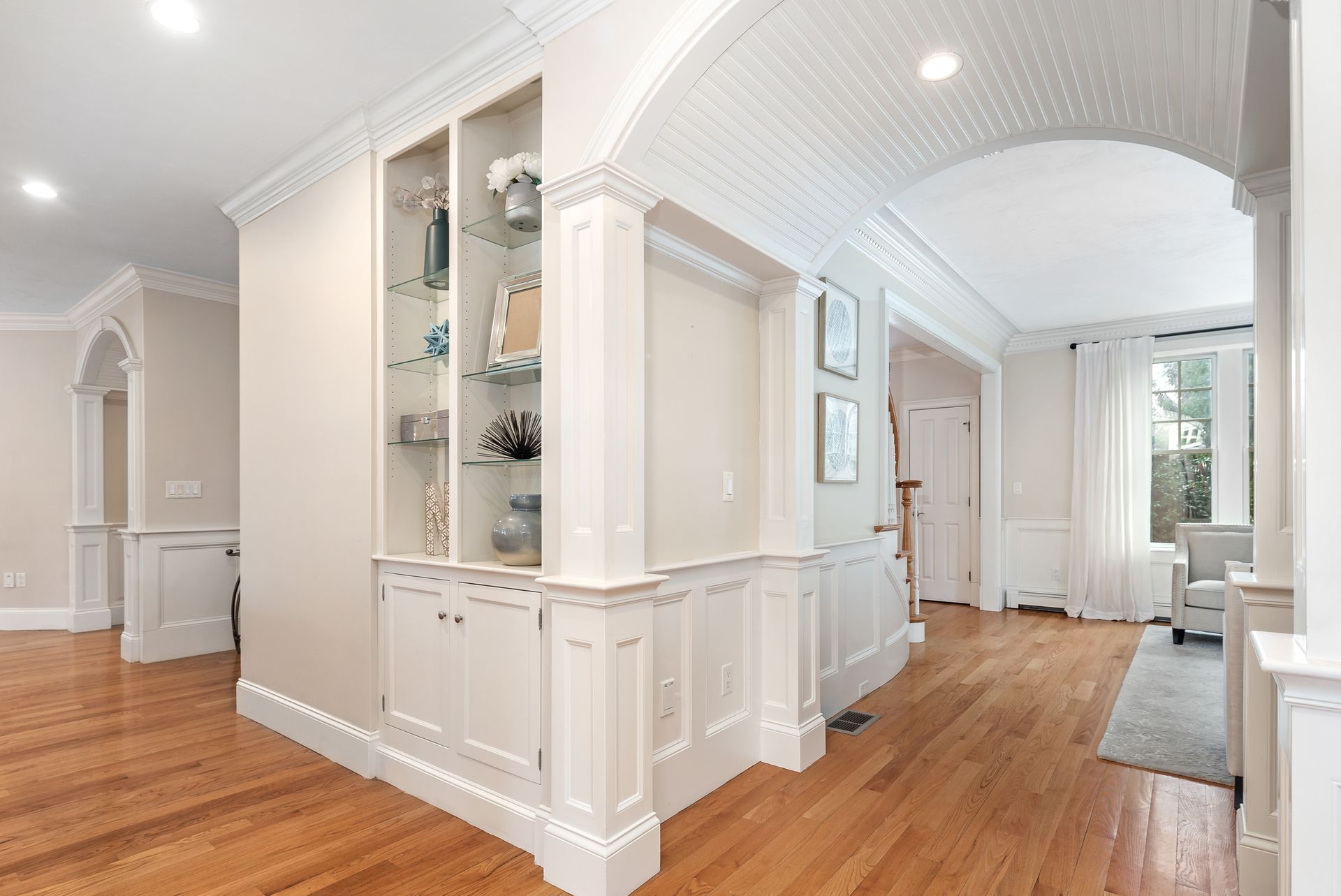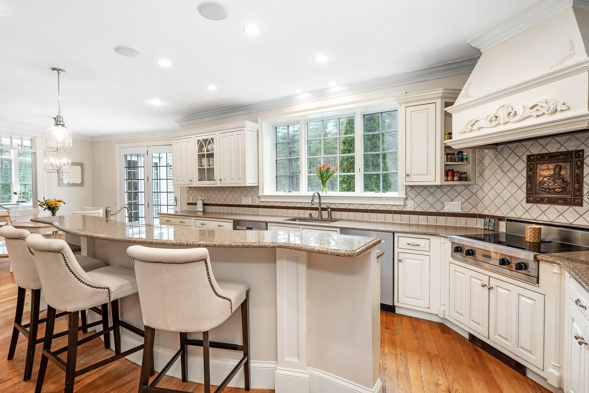 Located in Hanover's coveted Stone Meadow Estates, this sun-filled Falconi built colonial is situated on the end of a cul-de-sac. Throughout the home you will find incredible craftmanship and endless amounts of detail in moldings and woodworking. The first floor hosts an open concept kitchen featuring double ovens, two dishwashers, two sinks, ample counter space and cabinets for storage. The kitchen flows into the soaring family room with vaulted ceilings, large windows and the centerpiece- a stone floor to ceiling wood burning fireplace. Mudroom, butler's pantry, formal dining area, living room and office with built ins. Both half bathrooms complete the first floor. The second floor's large primary suite with his and her walk in closets, has an en suite bathroom with dual vanities, jacuzzi tub and walk in shower with multiple shower heads. Additionally, you will find an updated laundry room, two bedrooms with a Jack & Jill setup, guest room with en suite bathroom, and additional bedroom. All bedrooms are a generous size and have ample closet space. The third floor walk up, now utilized as a children's playroom, can be used for additional storage or living space. The fully finished basement has a full bathroom, built in bar, kitchenette with microwave and refrigerator. Walk out to your private oasis, surrounded by conservation and jump into your heated inground Gunite pool. A fenced in backyard allows your children or pets to play. Don't miss out on this beautiful home!