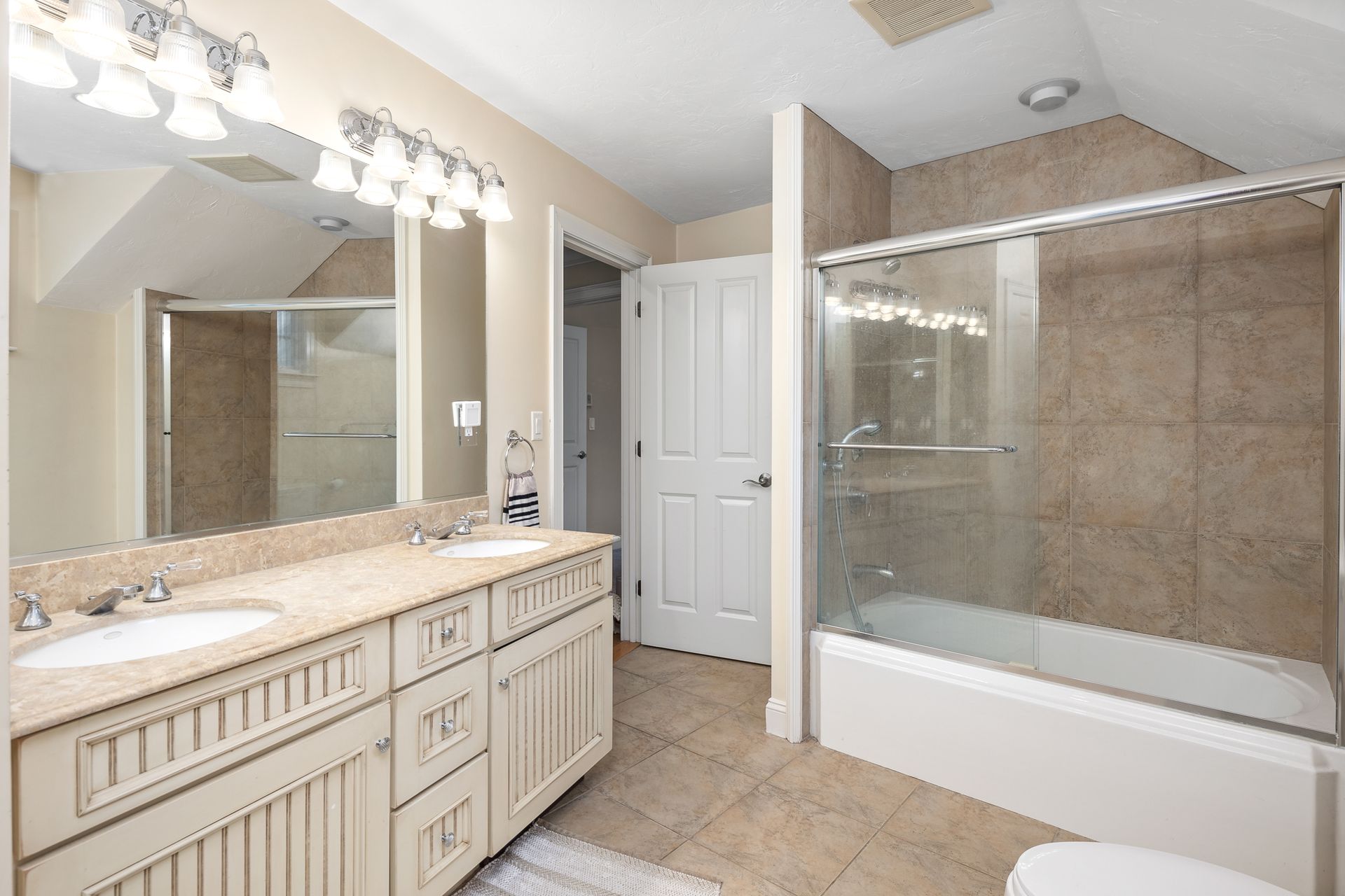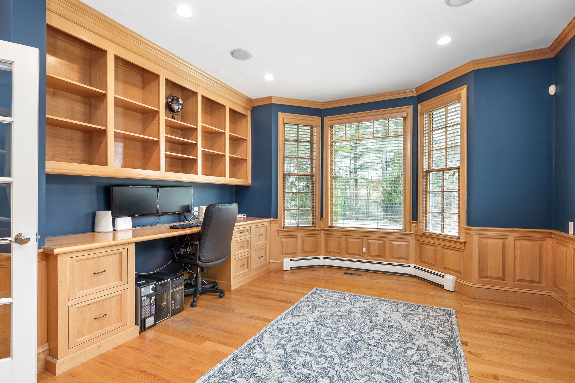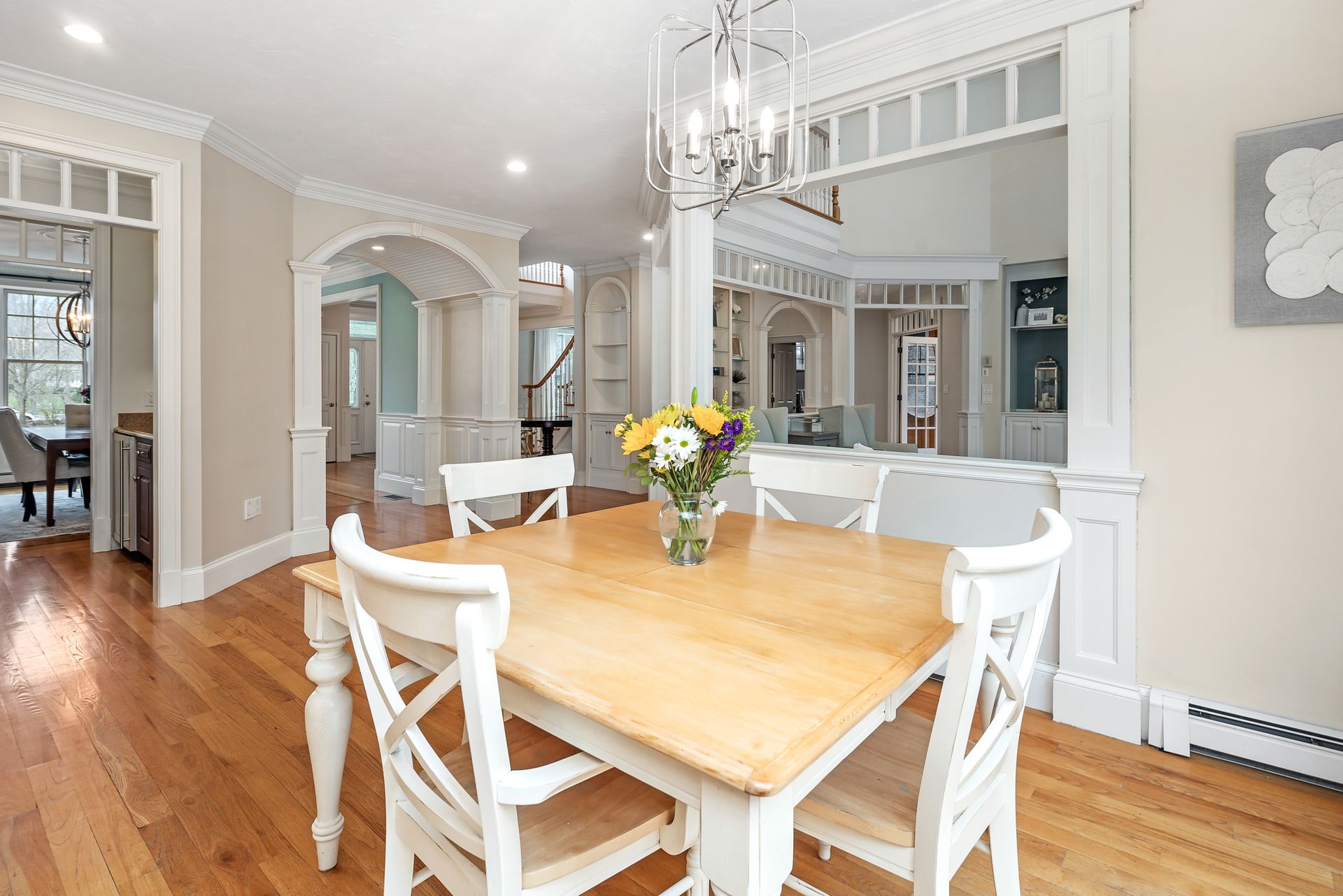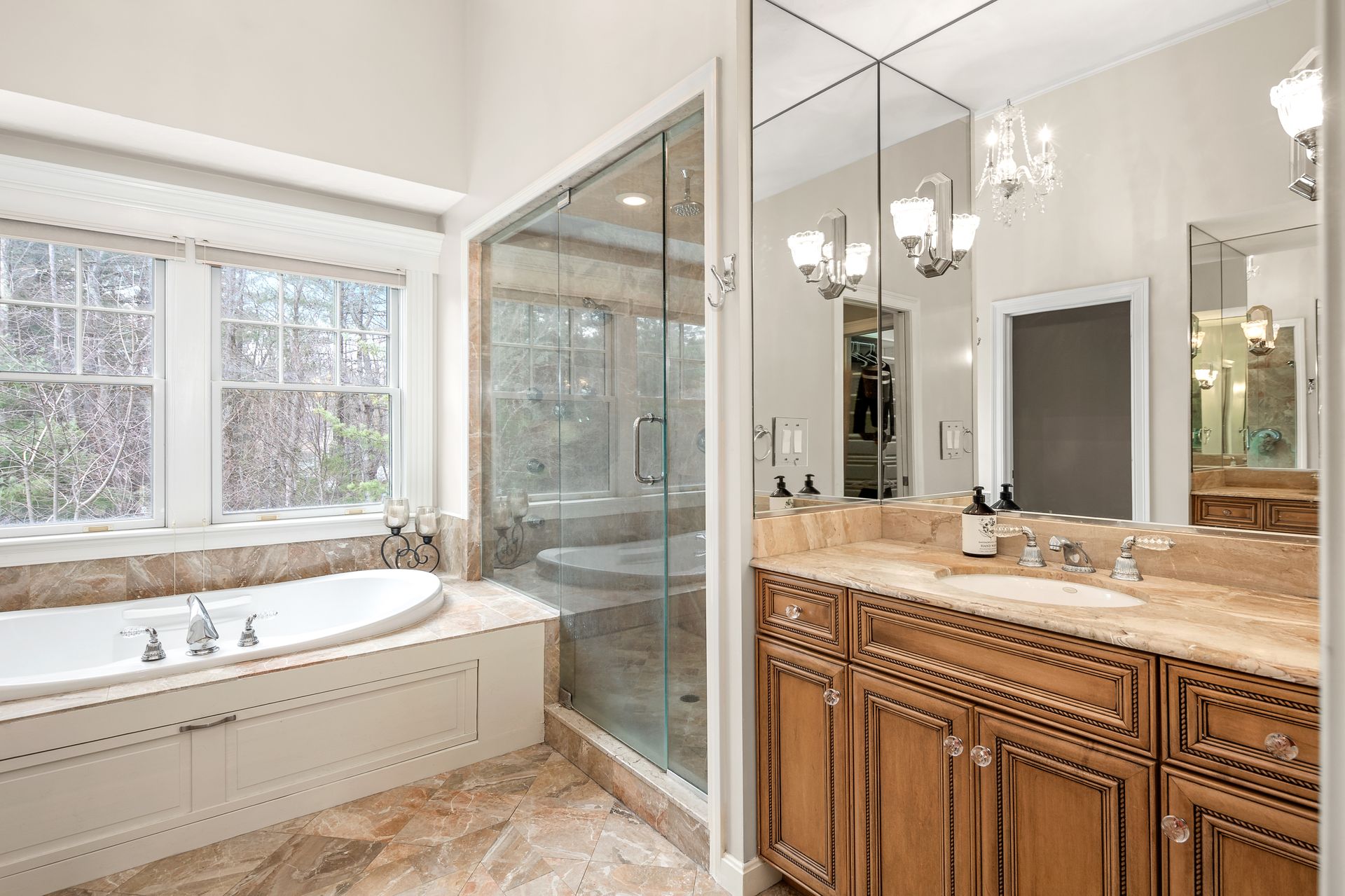 Located in Hanover's coveted Stone Meadow Estates, this sun-filled Falconi built colonial is situated on the end of a cul-de-sac. Throughout the home you will find incredible craftmanship and endless amounts of detail in moldings and woodworking. The first floor hosts an open concept kitchen featuring double ovens, two dishwashers, two sinks, ample counter space and cabinets for storage. The kitchen flows into the soaring family room with vaulted ceilings, large windows and the centerpiece- a stone floor to ceiling wood burning fireplace. Mudroom, butler's pantry, formal dining area, living room and office with built ins. Both half bathrooms complete the first floor. The second floor's large primary suite with his and her walk in closets, has an en suite bathroom with dual vanities, jacuzzi tub and walk in shower with multiple shower heads. Additionally, you will find an updated laundry room, two bedrooms with a Jack & Jill setup, guest room with en suite bathroom, and additional bedroom. All bedrooms are a generous size and have ample closet space. The third floor walk up, now utilized as a children's playroom, can be used for additional storage or living space. The fully finished basement has a full bathroom, built in bar, kitchenette with microwave and refrigerator. Walk out to your private oasis, surrounded by conservation and jump into your heated inground Gunite pool. A fenced in backyard allows your children or pets to play. Don't miss out on this beautiful home!