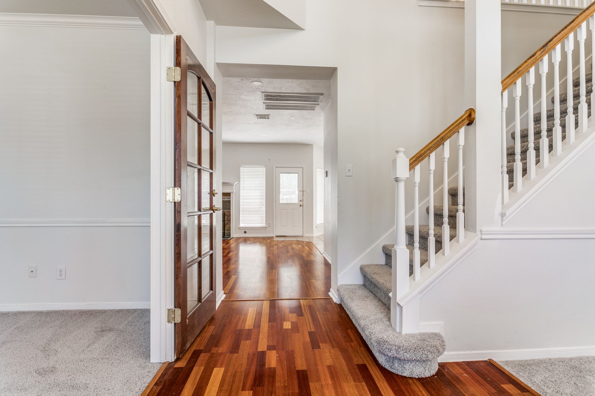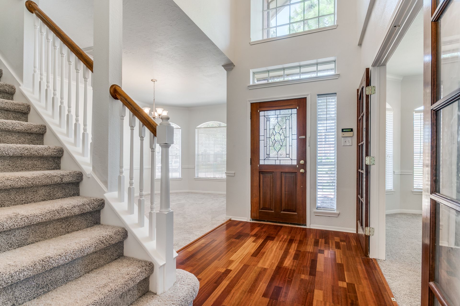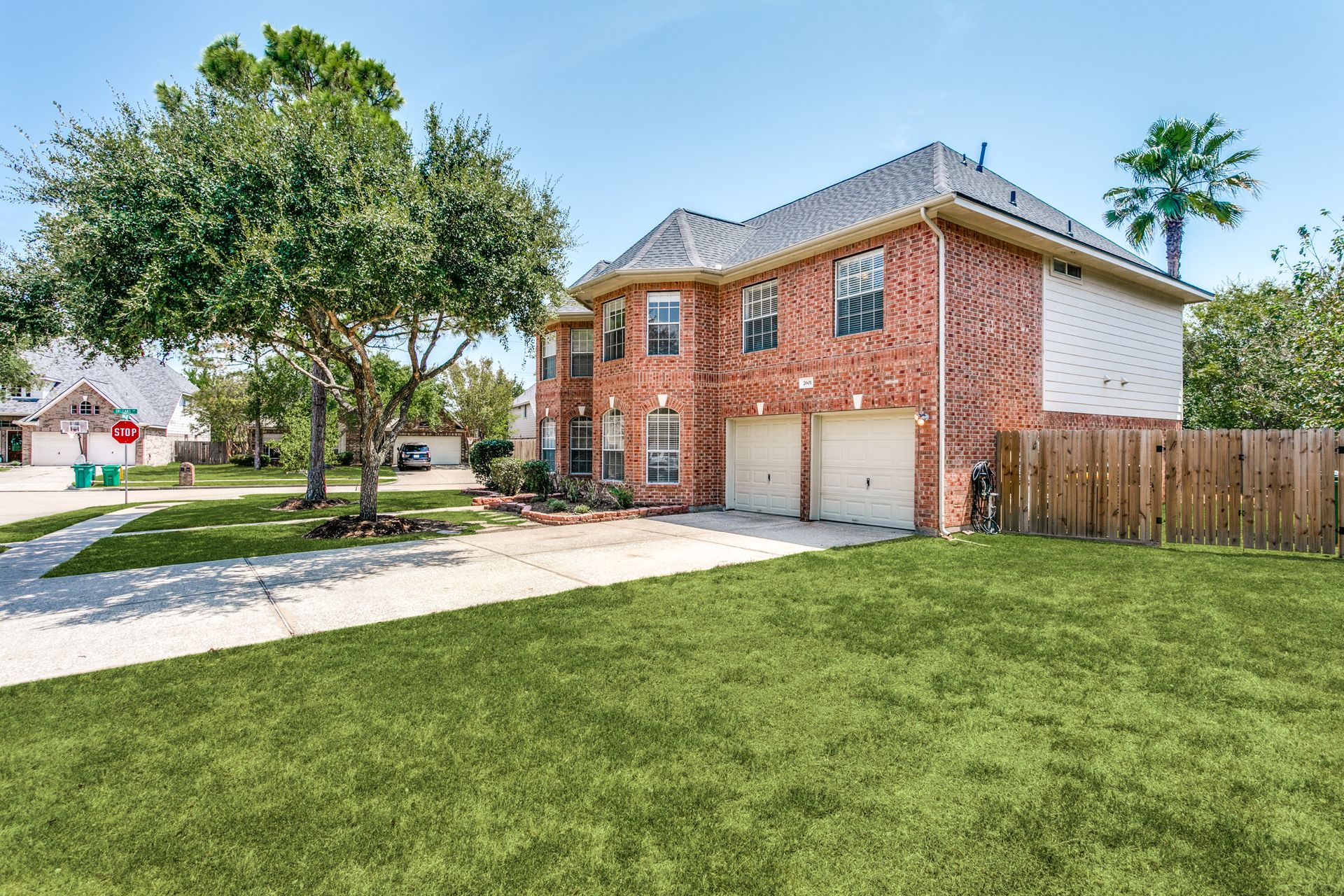 A soaring entry and wood floors greet you as you enter this beautiful 5 bedroom two-story home. Recent updates include brushed nickel and LED lighting throughout, quartz counter tops, Electrolux gas cooktop and vent hood. The den is prewired for surround sound! Primary bath featuring double sink split vanities, Jet spay shower, and separate jetted tub. A complete twin A/C and Heating system including ductwork, just installed. The home is freshly painted and new carpeting was installed 08/23. The home sits on a large corner lot with double gate access to a spacious backyard with a dog run. A new roof was installed (06/23) and features lovely pinacols atop two-story bay windows. This impressive home is located in the popular Lake Cove of Seabrook. The neighborhood offers a clubhouse, pool, tennis courts, basketball, sand volleyball, and walking paths. Enjoy using the clubhouse marina boat ramp which gives you access to Taylor Lake, Clear Lake and Galveston Bay.